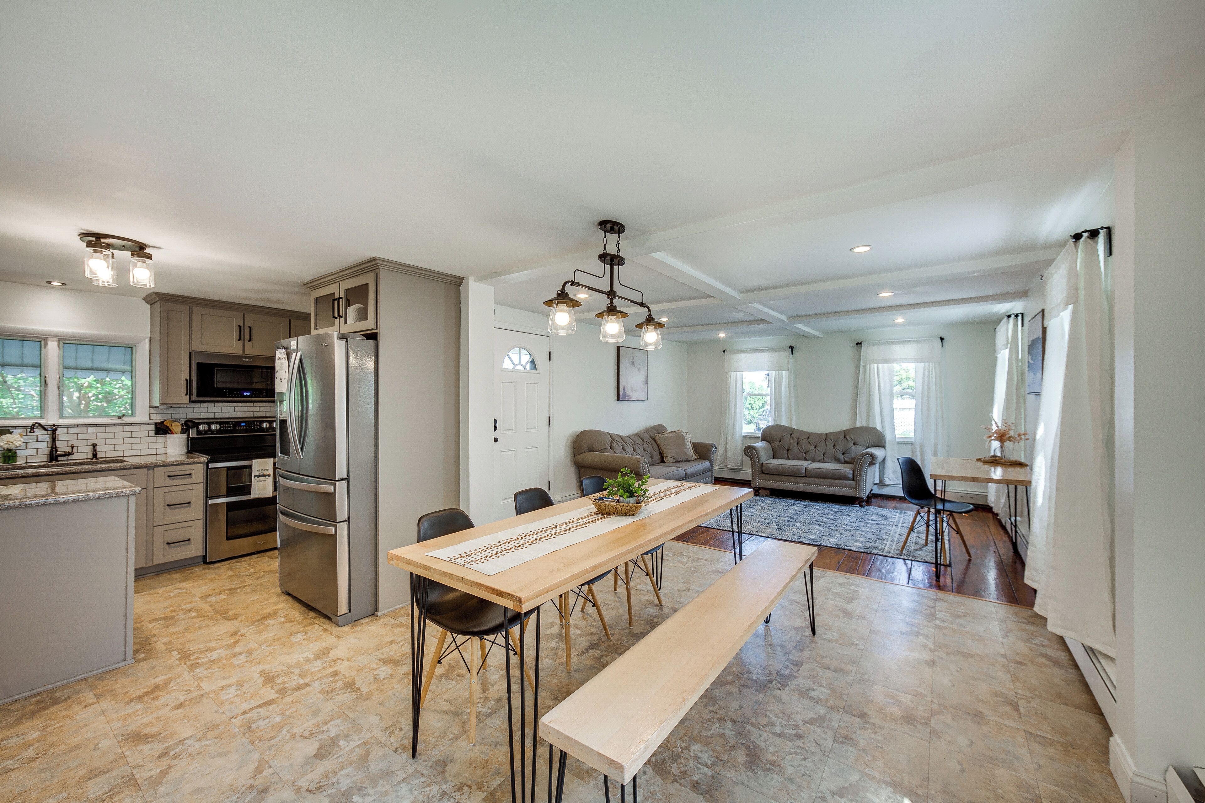 Pet-Friendly Bernville Home w/ Fenced Backyard! Traveling to Bernville? Make yourself at home in this welcoming 2-bedroom, 1-bathroom vacation rental! With its sleek interior design and pet-friendly policy, this home is ideal for a top-notch getaway. Explore Blue Marsh Lake Park for outdoor adventures, and afterward, kick back around the fire pit while dinner heats up on the grill. With easy access to top attractions, like Koziar's Christmas Village and the scenic Appalachian Trail, this property is the perfect base for fun and relaxation.-- THE PROPERTY --Washer + Dryer | Furnished Deck | 3 Mi to Blue Marsh Lake Park | Pet Friendly w/ Fee (2 Dogs Max)Bedroom 1: Queen Bed | Bedroom 2: Queen Bed | Front Room: Twin Sleeper Sofa | Additional Sleeping: Twin Air Mattress, Queen Air MattressMAIN FEATURES: Fireplace, 3 Smart TVs, private backyard, gas grill, fire pit, board games, dining tableKITCHEN: Dishwasher, stove/oven, refrigerator, microwave, toaster, coffee maker, blender, cooking basics, dishware + flatware, ice maker, water filter, trash bags + paper towelsGENERAL: Free WiFi (laptop friendly), central heating, window A/C units, iron/board, laundry detergent, linens/towels, complimentary toiletries/shampoo, hangers, hair dryer, keyless entryFAQ: Stairs required, 2 exterior security cameras (facing out), pet fee (paid pre-trip)PARKING: Street parking (first-come, first-served)-- THE LOCATION --NATURE: Blue Marsh North Boat Launch (3 miles), Blue Marsh Nat'l Recreation Area (7 miles), Gring's Mill Recreation Area (11 miles), Jim Dietrich Park (14 miles), Antietam Lake Park (17 miles), French Creek State Park (29 miles) LOCAL HISTORY: Mid Atlantic Air Museum (10 miles), Reading Railroad Heritage Museum (14 miles), Reading Public Museum (14 miles)MORE TO SEE + DO: Clover Hill Vineyards & Winery (4 miles), Stoudts Winery (6 miles), Antique Treasures (7 miles), Terry Williams Antiques (8 miles), Deerfoot Vineyards and Winery (13 miles), Santander Performing Arts Center (14 miles)AIRPORTS: Lehigh Valley International Airport (46 miles), Philadelphia International Airport (82 miles)-- REST EASY WITH US --Evolve makes it easy to find and book properties you’ll never want to leave. You can relax knowing that our properties will always be ready for you and that we’ll answer the phone 24/7. Even better, if anything is off about your stay, we’ll make it right. You can count on our homes and our people to make you feel welcome--because we know what vacation means to you.-- POLICIES --- No smoking- Pet friendly w/ $150 fee (+ fees & taxes, 2 dogs max)- No events, parties, or large gatherings- Must be at least 25 years old to book- Additional fees and taxes may apply- Photo ID may be required upon check-in- NOTE: The property requires stairs to access- NOTE: This property sleeps 5 guests in 2 beds and a twin sleeper sofa, with room for 8 total by using the twin and queen air mattresses- NOTE: Your safety matters. This property features 2 exterior security cameras: 1 camera is located on the front door facing out, and 1 camera is on the front of the home facing the road. The cameras are outward facing and do not look into interior spaces. The cameras record video and sound when activated by motion. They will record when they first sense motion and 30 seconds after the last motion is detected