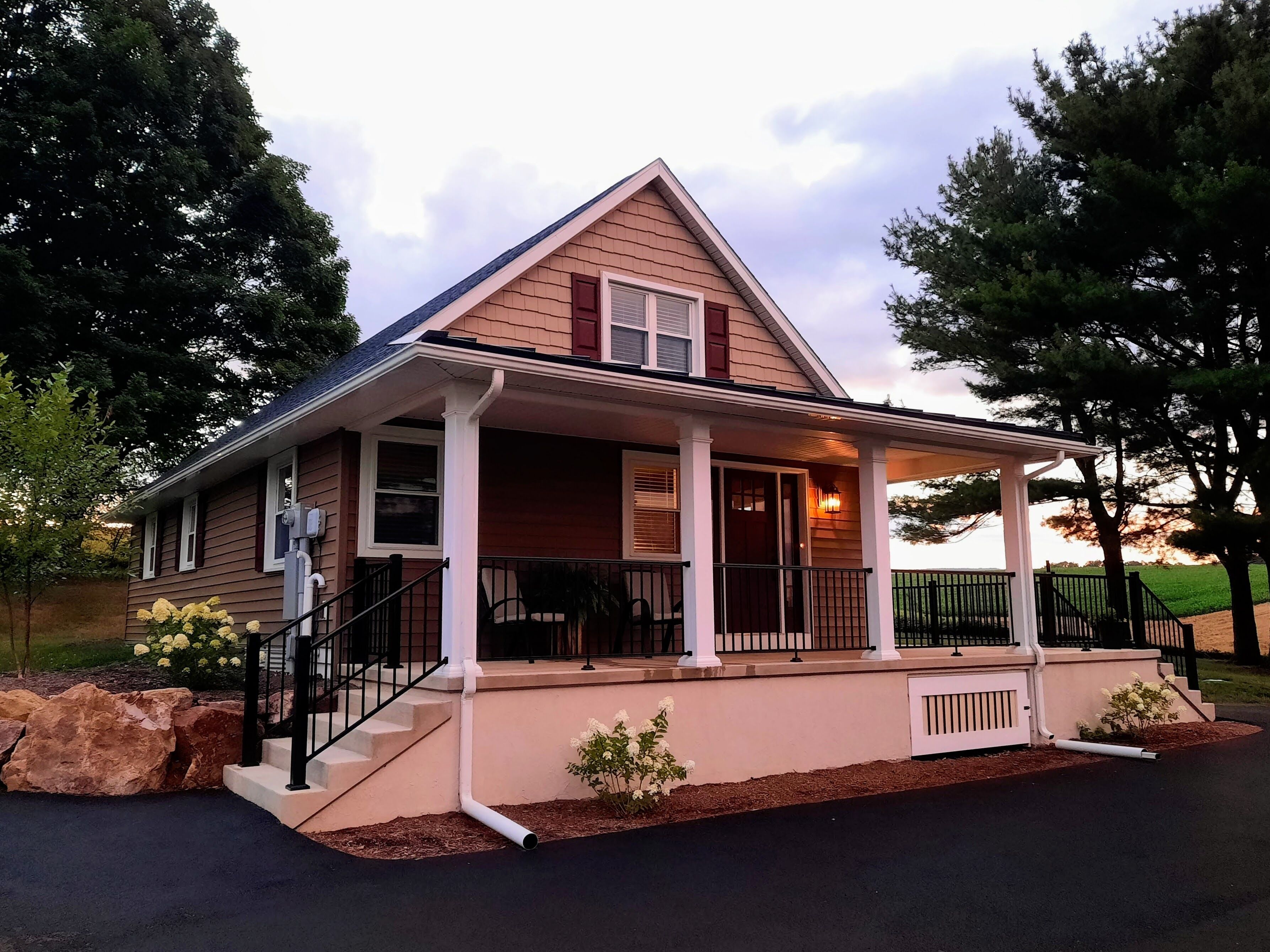 Cozy Cottage- Beautiful Porch Views Welcome to Whispering Pines Cottage! Come and enjoy misty summer mornings on the porch overlooking the rolling hills of Berks County! This cottage was completely remodeled in 2021. It is finished with uniquely refurbished furniture, cozy blankets, and brand-new couches and beds. Take time to relax in the hammock and listen to the soft whisper of winds in the sta...