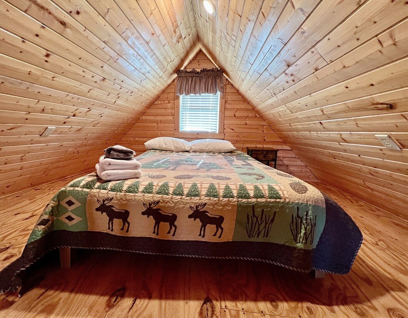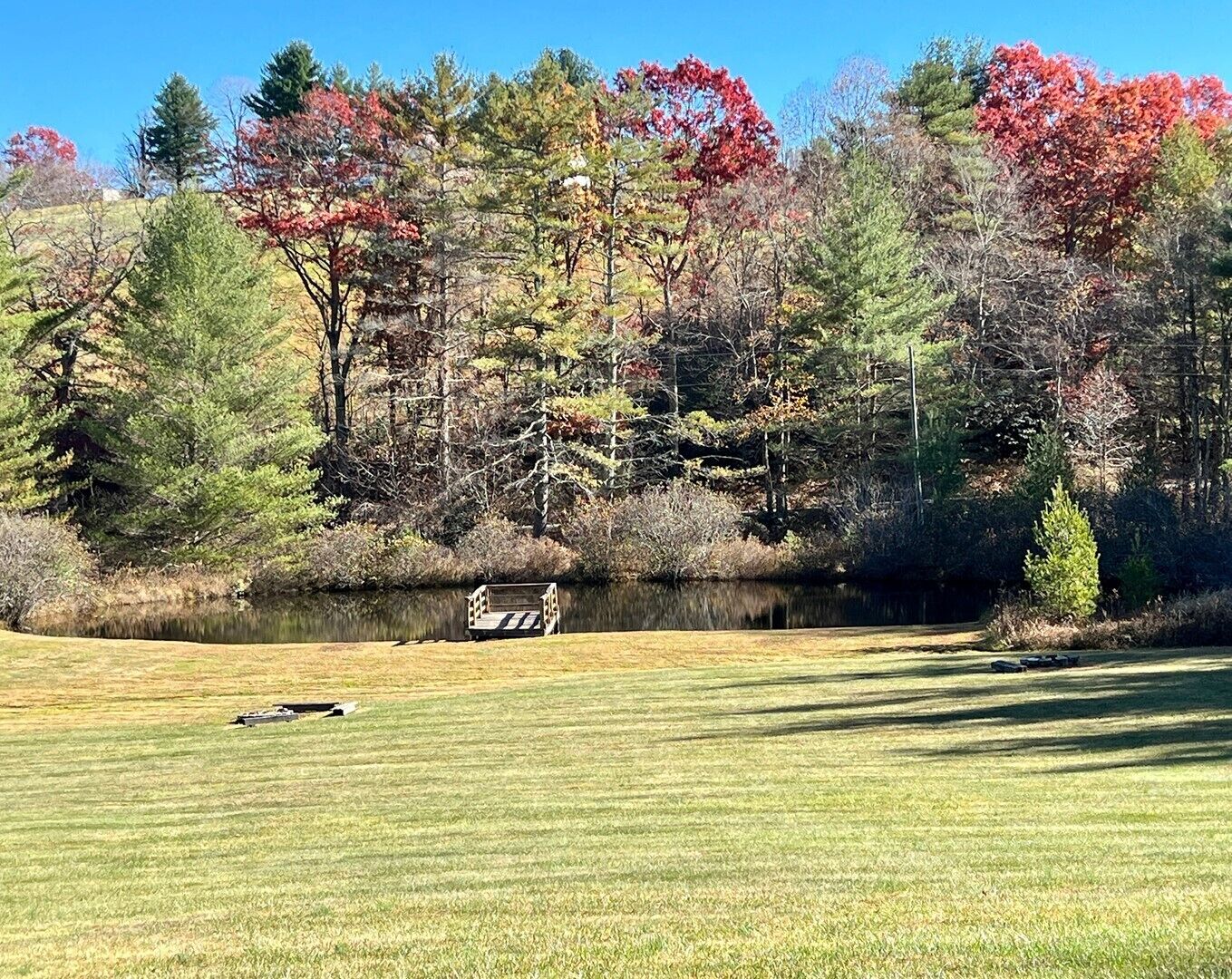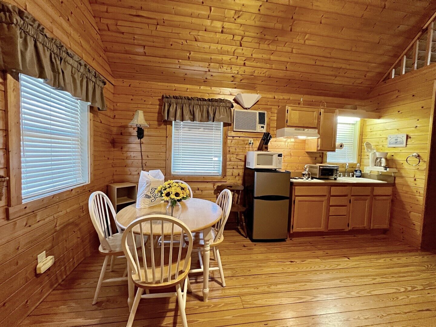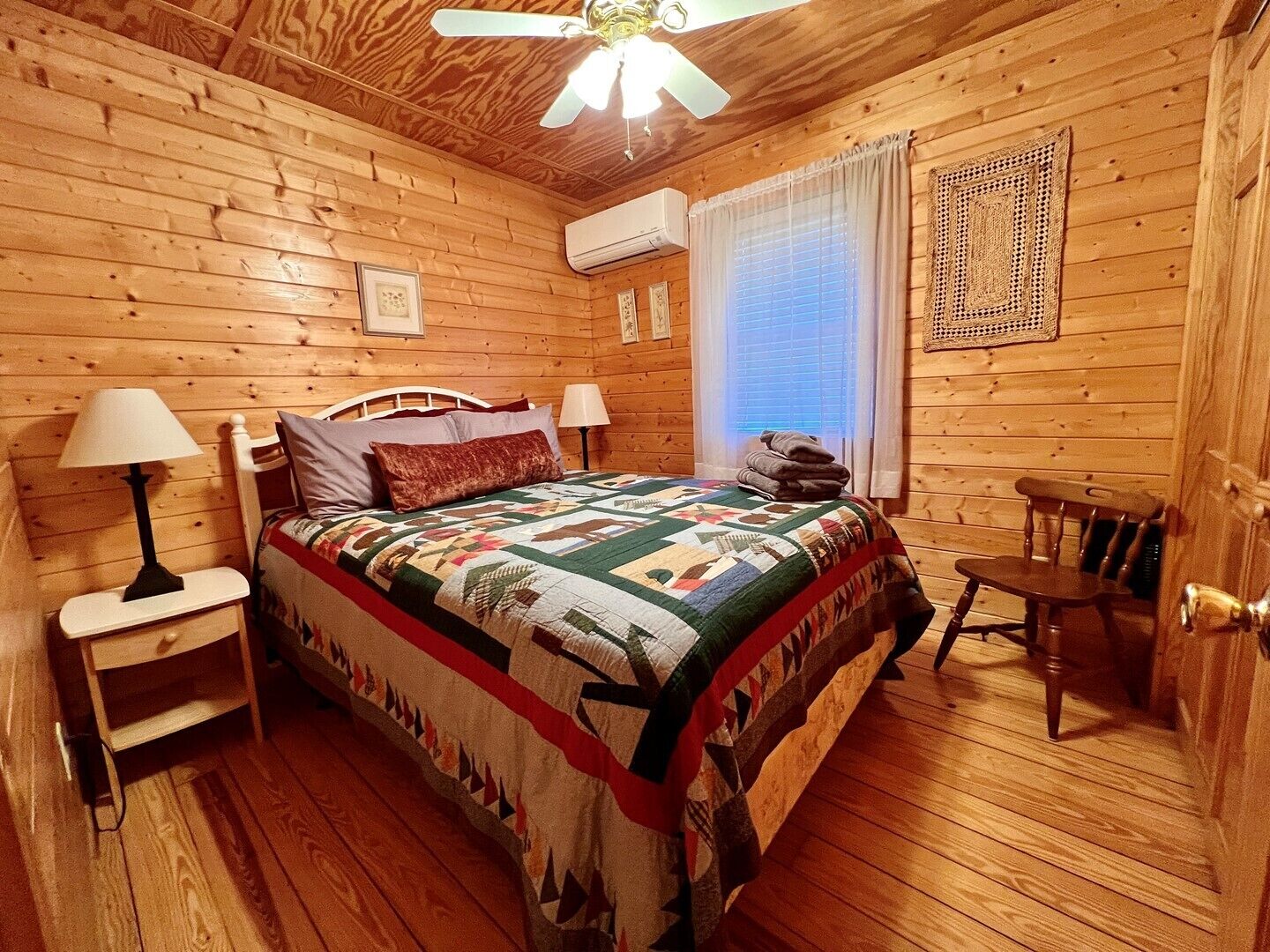 Pond, fireplace, WIFI, No Pets, near Blue Ridge Parkway MEADOWVIEW LOG CABIN in Laurel Springs, NC offers a relaxing meadow and pond view surrounded by mountain vistas. This pet friendly cabin will sleep up to four guests comfortably. There is a queen size bed in the bedroom and a sofa that faces the gas log fireplace. Picnic beside pond on the property. Quaintly situated on 10 acres with large pond and 2 similar log cabins. Located just off the Blue Ridge Parkway and convenient 25-30 minute drive to West Jefferson. Efficiency style kitchen includes full size refrigerator, build in cook top, microwave, toaster oven, coffee maker, cookware and dishes. The bathroom is fully stocked with fresh linens and a hairdryer.The cabin is air conditioned with ceiling fans and cathedral ceilings, heat, gas log fireplace keeps the cabin warm and cozy on chilly nights. The living room includes Smart TV, DVD player, Reliable WIFI added 3/2022.Max Guest 4 (including children).1 queen bed, 1 queen mattress in ladder loftPETS NOT ALLOWED.Group Retreat: Rent All 3 cabins on this 10 acre tract (Ravine, Meadow View and Whitetail Log Cabins) and receive a 10% discount.Our Vacation Rental Agreement is on this site and will be emailed to you and by reserving you are agreeing to these terms & policies. Upon booking we will email you a confirmation, followed by a check-in package, just prior to your arrival date.Closest towns are Jefferson, West Jefferson, and Sparta-about 25-30 minutes away.The beds are ready with fresh linens when you arrive. A guest book with all area information is included in each of our properties, some of which is highlighted below. We look forward to serving you! Enjoy BLUE RIDGE MOUNTAIN ATTRACTIONS near Boone NC and West Jefferson NC including: -Shopping: Local shops including Antiquing and Art Galleries in downtown West Jefferson and Boone, Tanger Outlet in Blowing Rock, Groceries Stores including Super Walmart -Dining: Casual and fine dining in West Jefferson and Boone, Local Brewery's (Boondock's Brewing, Appalachian Mountain Brewery), Winery Tours (Thistle Meadow Winery, New River Winery)-Canoe: Canoe, Tube and Kayak the New River with local outfitters including New River Outfitters, Zaloo's Canoes, Wahoo's Adventures, River Girl Fishing Company-Trails: Waterfalls, Scenic Overlooks and Hiking/ Running Trails on the Blue Ridge Parkway, Mount Jefferson State Natural Area, New River State Park, Elk Knob State Park, Grandfather Mountain, Rocky Knob, Kerr Scott Dam, and Grayson Highlands State Park. Mountain Biking at the Blue Ridge Parkway, Kerr Scott, Rocky Knob, Virginia Creeper Trail, and others. Sight-seeing, photography, scenic drives, and bird watching also at these locations.-Ski: Skiing, Snowboarding offered at Sugar Mountain, Beech Mountain, and Appalachian Ski Mountain (also offers Ice Skating and lessons). Snow tubing at Hawksnest. -Zip-lining: Hawsknest, Sky Valley Zip Tours, High Gravity Adventures, Virginia Creeper Trail-Fishing: State stocked trout stream, fly fishing, freshwater fishing -Horseback Riding: Burnt Hill Stables-Major Attractions: Gem Valley Gem Mine, Tweetsie Railroad, Grandfather Mountain, Mountain Air Golf Course, Jefferson Landing Golf Course, Church of the Frescos-Festivals, Music & Marathons: Christmas in July, Merle Fest, Faith Fest, Blue Ridge Brutal, West Jefferson Backstreet Concerts, Fiddler’s Convention, Local Concerts, New River Marathon, West Jefferson Gallery Crawls-Additional Sites: Ashe County History Museum, Local Parks, Fitness Centers, Public Library, Bank/ATM-Medical Services: Ashe County Memorial Hospital, Mountain Family Urgent Care