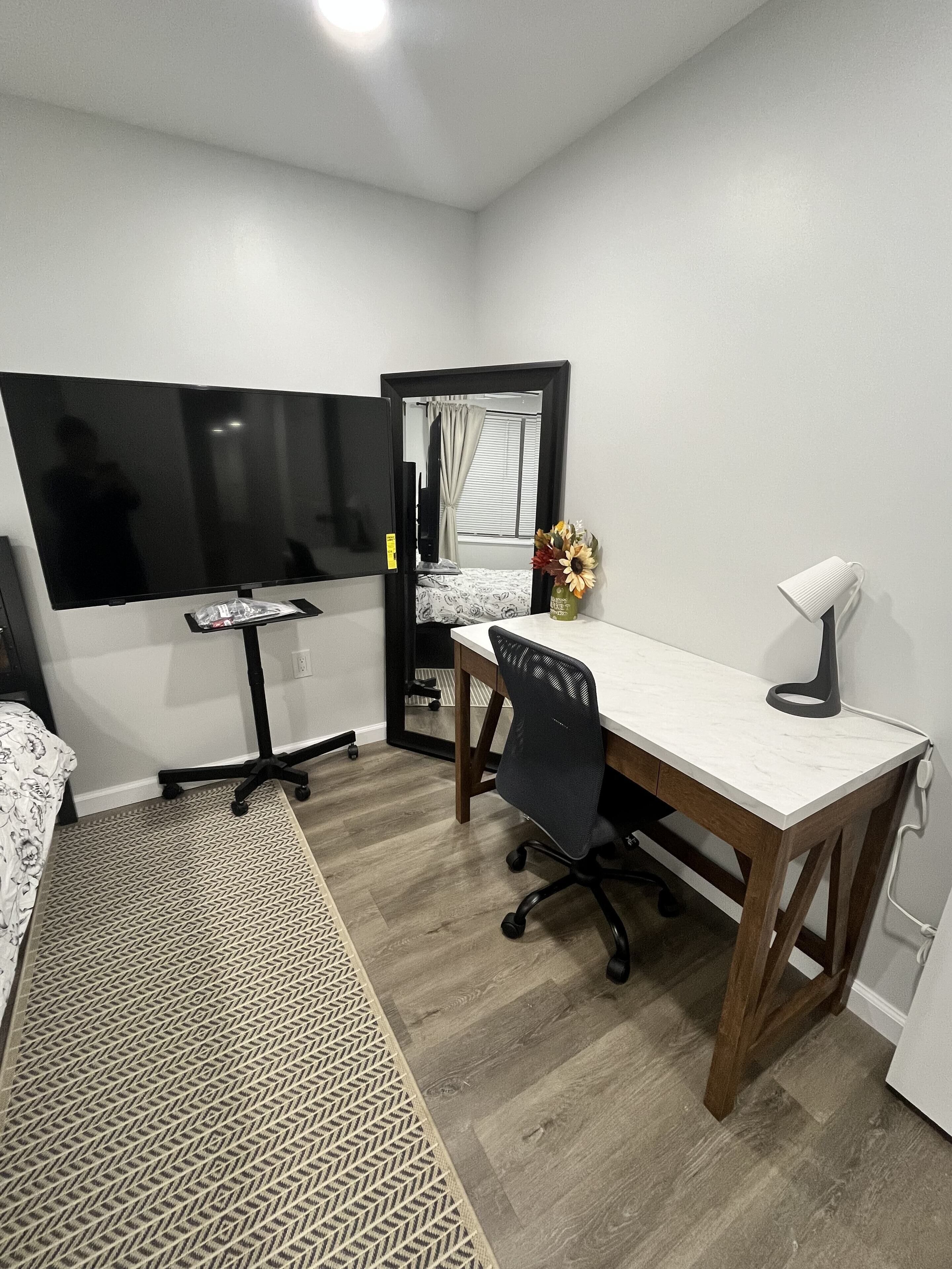 Newly Renovated Master Bedroom w/Private Bath. Access to Kitchen & Washer/Dryer. The room is in a newly renovated, above-ground & separate downstairs unit w/private entrance:-You will be provided with personal door code and room key.-ALL utilities included.-Fully Furnished Bedroom w/Queen bed, desk, chair, nightstand, closet, mirror & brand new 50" smart TV.-Access to a fully equipped Kitchen, Keurig coffee maker & In-unit Washer/Dryer that are shared among tenants.-Shared Living room with TV/cable, big sofa & sunroom with lots of sunlight.-Safe, quiet neighborhood w/ plenty of free street parking, lots of walking space.-Large front yard and fully fenced backyard.Nearby Facilities:-INOVA FAIRFAX, FAIR OAKS & ALEXANDRIA hospitals, VHC Health, Fairfax Medical Center, MedStar, Georgetown University Hospital, etc.-10min to NOVA & George Mason University (GMU).-18min to Pentagon and US Department of State.It is also only 2mins from 495 N/S freeway, 3mins to groceries/restaurants. 10mins to Mosaic, 12mins to Tysons Corner, 15min to Arlington and 20min to DC.