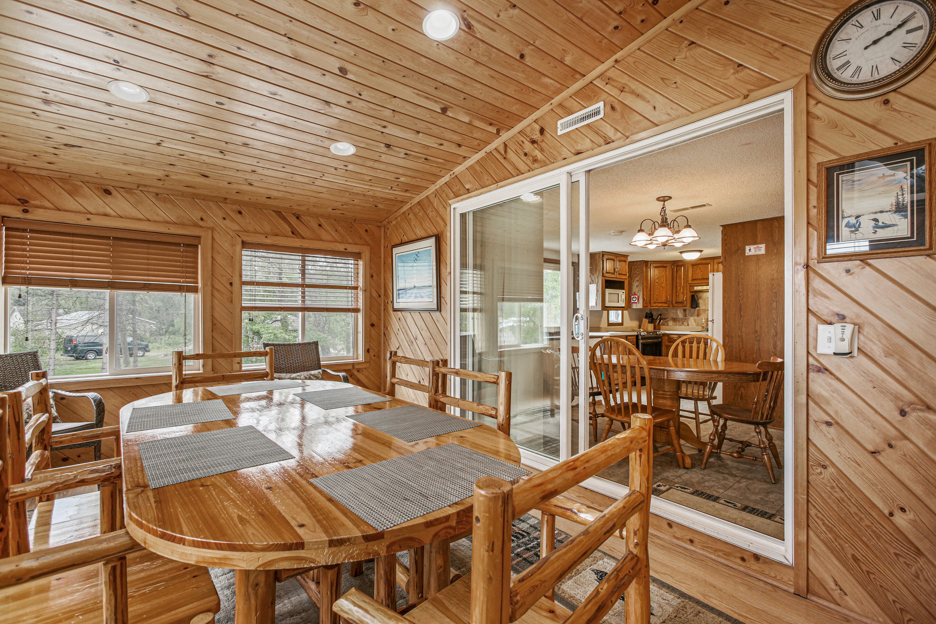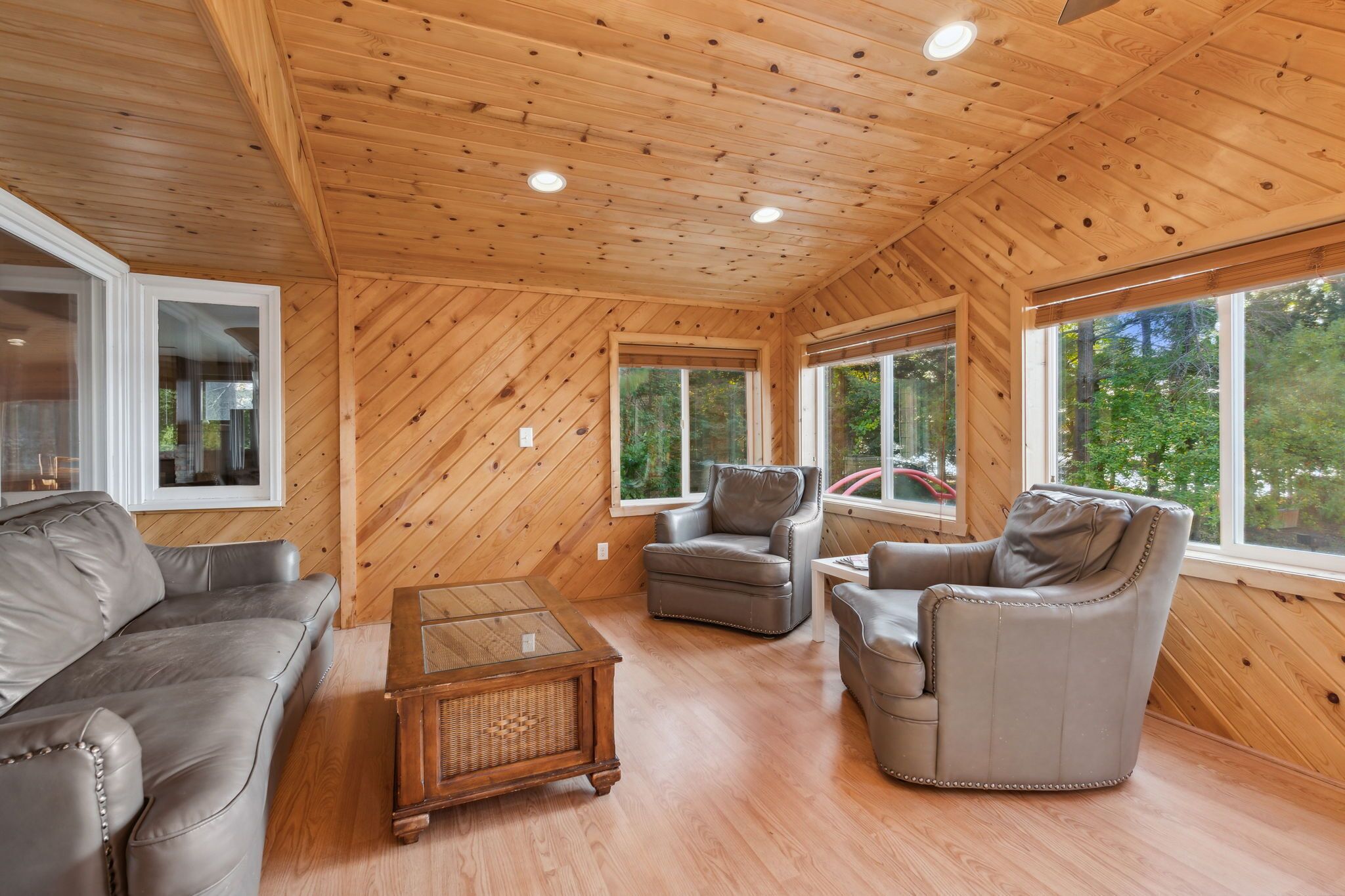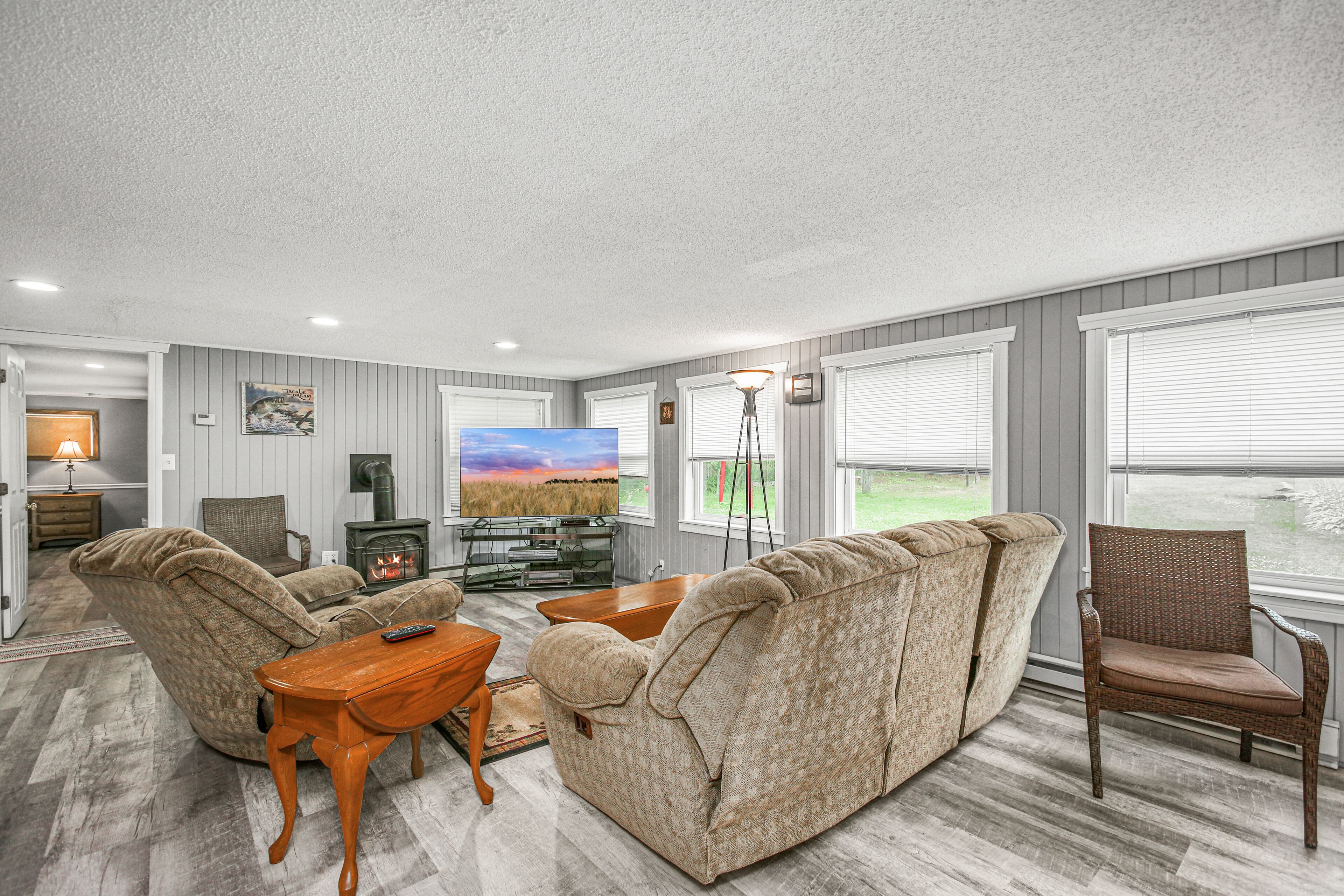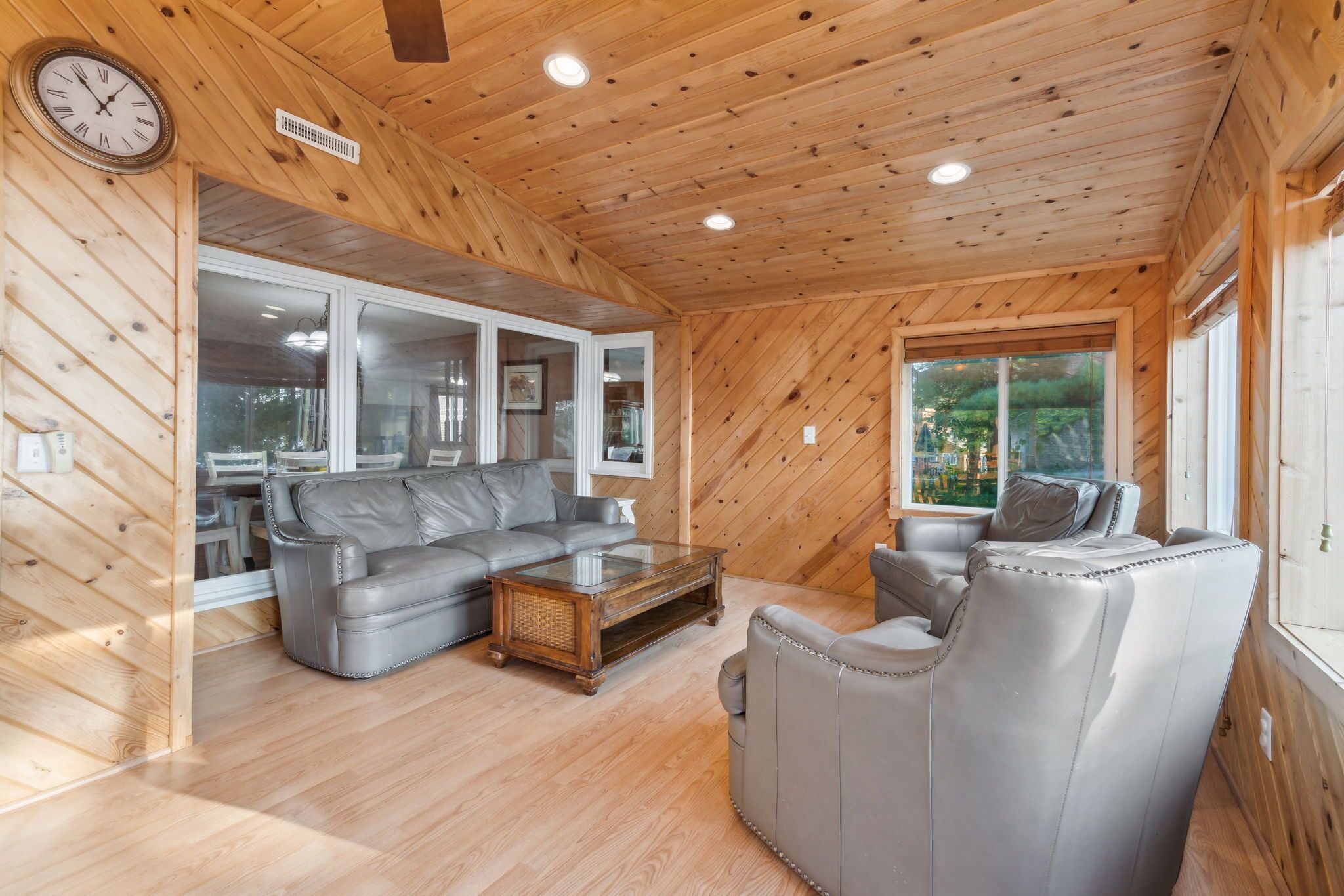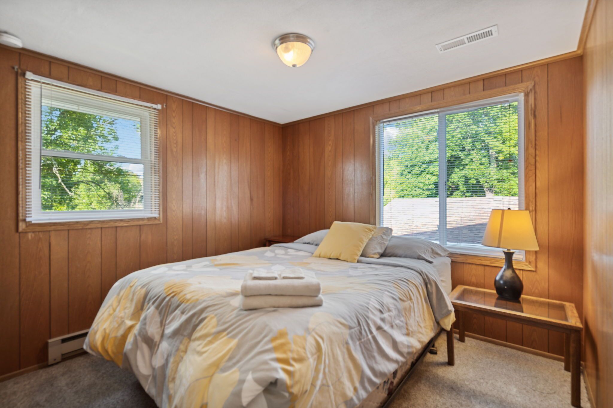 Fish, swim, boat and relax on beautiful Bass Lake Beautiful home right on the shores of sandy Bass Lake! 92’ of private waterfront with two private docks. Bass Lake is a fully recreational lake with 200+ acres and 15’ of water clarity! Enjoy s’mores by the campsite and lake life at its finest! Fish, swim, boat and relax in comfort! This getaway is a the ultimate private retreat with over1 acres of land, a private sand beach, and 2 private docks. There is plenty of space for everyone with 5 bedrooms/3 bathrooms and 3 large seating areas -- a sunroom overlooking the lake, a living room, a family room and a gaming area. Fully equipped kitchen with refrigerator, stove, and microwave with laundry on site. Free use of kayaks. 40 horsepower 18' pontoon with 4-stroke engine available for rental as well. If you’re looking for other adventures, the local flea market 5 miles away, every Saturday morning, and there is a local bait store nearby including groceries, fishing licenses, tackle and video rentals. Home has been upgraded to include: new beds/bedding, new furniture, new refridgerator & dishwasher, & new upper level shower surround. Guest cabin (2 bedrooms/1 bath) is also on site and is rented separately from the main home. Outdoor space is common area, but each home is entirely private with separate entrances. Please inquire if interested in renting or for any questions. Interested in just the guest cabin? Look for VRBO ID #2643525Interested in renting the main house AND guest cabin? Look for VRBO ID #2917378