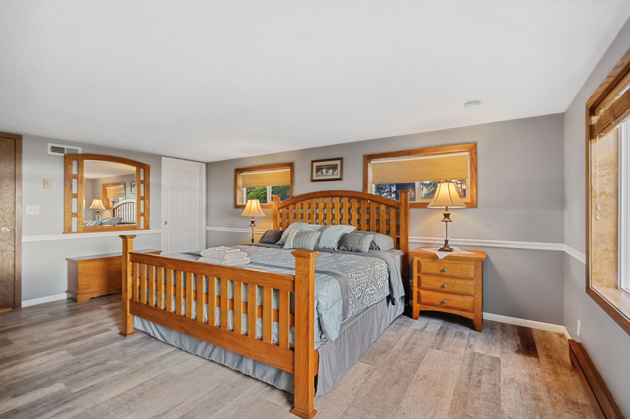 Fish, swim, boat and relax on beautiful Bass Lake Beautiful home right on the shores of sandy Bass Lake! 92’ of private waterfront with two private docks. Bass Lake is a fully recreational lake with 200+ acres and 15’ of water clarity! Enjoy s’mores by the campsite and lake life at its finest! Fish, swim, boat and relax in comfort! This getaway is a the ultimate private retreat with over1 acre...