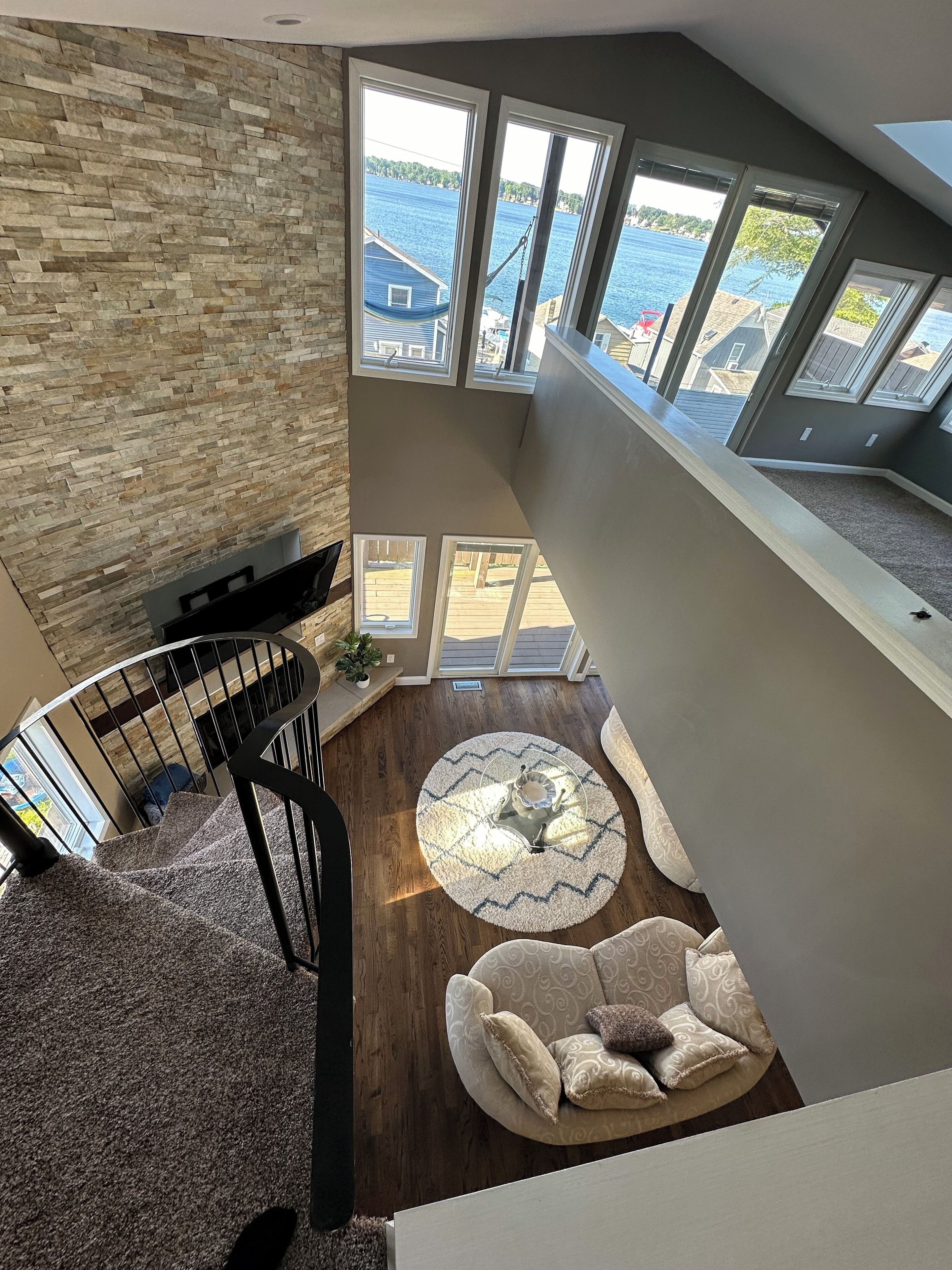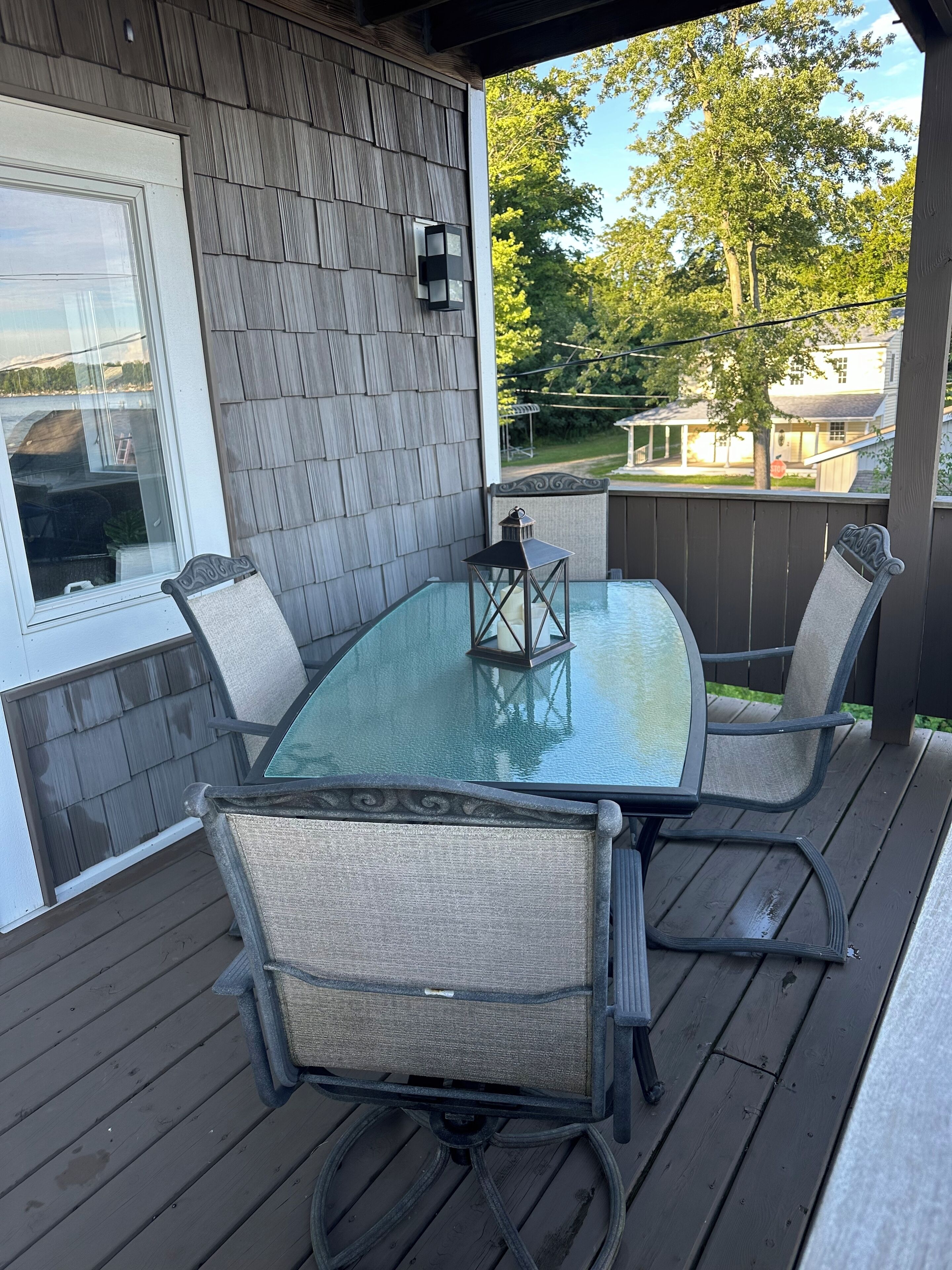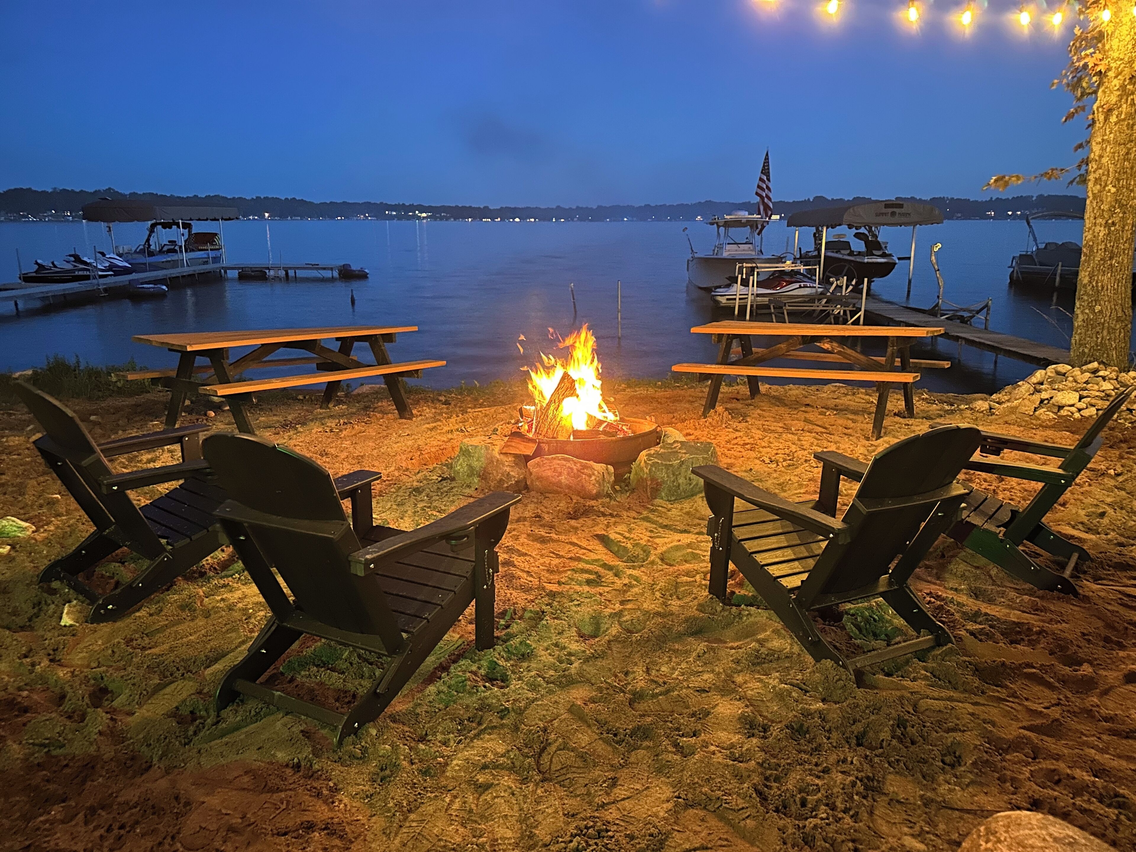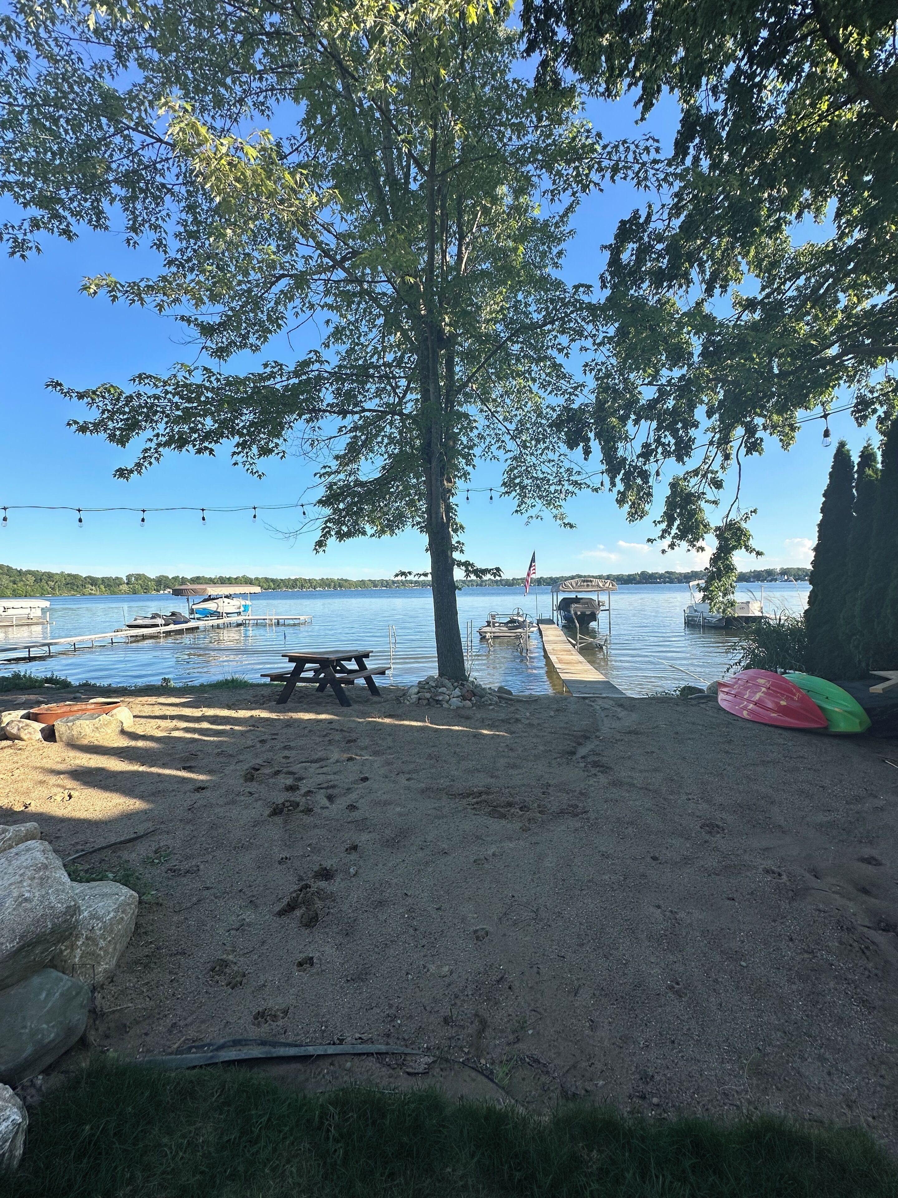 4 bedroom Retreat at Tice beach on Indian lake Experience the ultimate lakeside getaway at our beautiful home on Indian Lake, Michigan. This spacious three story, four-bedroom retreat is perfect for relaxation and adventure. With stunning lake views, modern amenities, and ample space, your stay promises to be unforgettable. Beach/lake access just steps away. Float and relax in the sandy bottom lake or enjoy the fire pit! All sports lake with sandbar charter, surf lessons and boat docking available. Please inquire. Your paradise awaits you!Boasting 3200 square feet and three stories, this four bedroom (two king beds, two queen beds and a queen air mattress) home has three full bathrooms (one on each level) and plenty of space for everyone to spread out! 2 separate living room areas. The entry level first floor has one bedroom with king bed and a full bathroom. Large living area with sectional couch. Rear sliding doors open to a patio with fenced yard. Gas fire pit In the outdoor patio seating area. Washer and dryer. The second story has bright light and panoramic lake views from the 2 large windows and 4 sliding doors that open to a large deck (half covered and half open) overlooking the picturesque lake. It has two bedrooms with queen beds. Full bathroom and an open floor plan with stocked kitchen, large living area and game room. Ample seating at the large family style dining table. Rear covered deck on this floor off of the kitchen space. Spiral staircase to the third story master loft offers a king bed where you will wake up to sunrise lake views. A large walk-in shower, closet and a jet tub for ultimate relaxation. Private master balcony on the third story where you can lay in the hammock overlooking the lake or enjoy your morning coffee on the bistro in set. Amenities include beach/lake access steps from the home, outdoor shower, WiFi for entertainment and remote work. Game room with card, board games, bumper pool andpoker table. 3 decks and a Patio with a gas fire pit. Grill. Parking for 4 vehicles (Garage access is not available). Home is available for short term rental and part of the home is available as there is no use of the garage or owners closet in the kitchen. All other spaces are available for use.