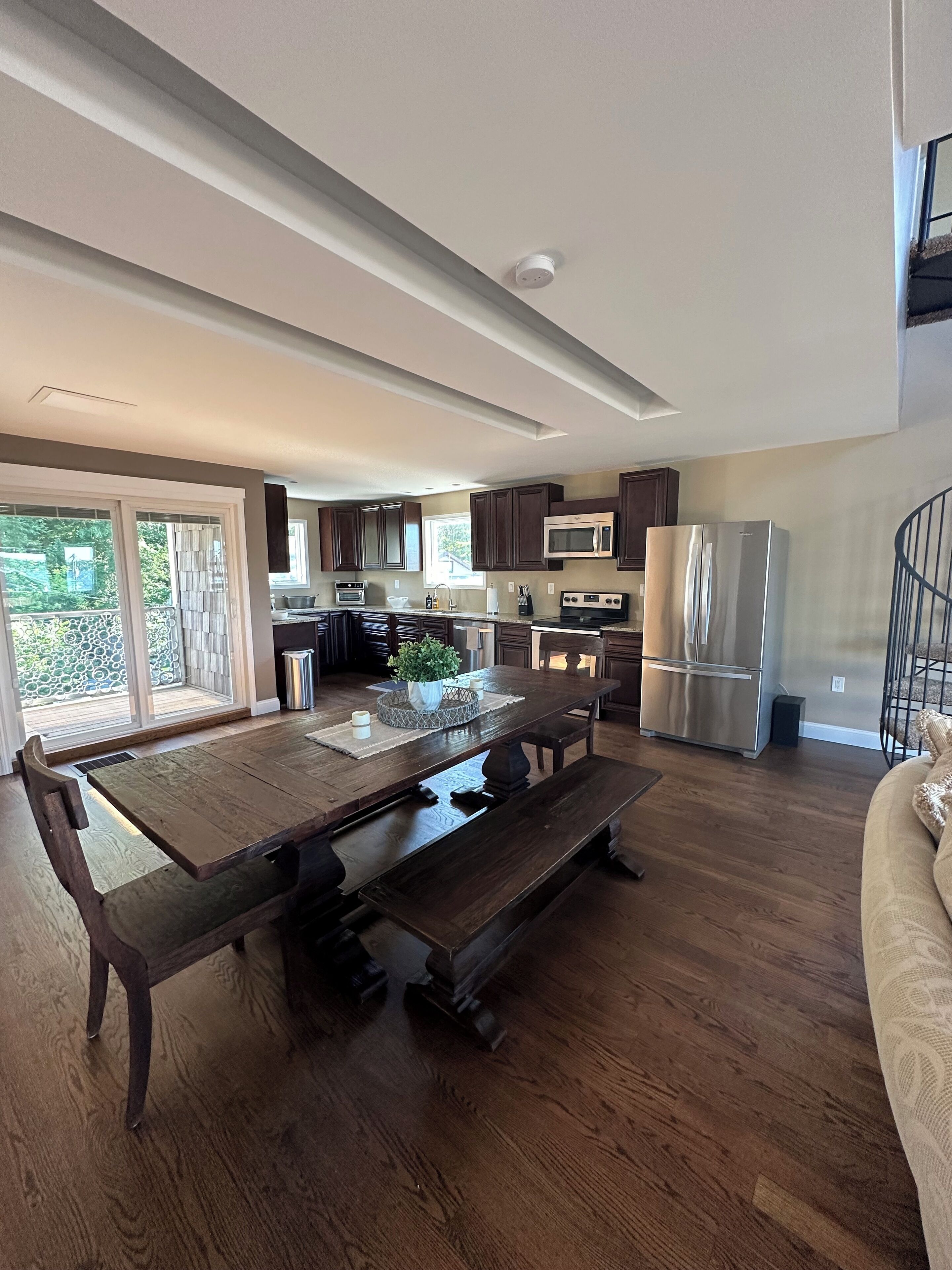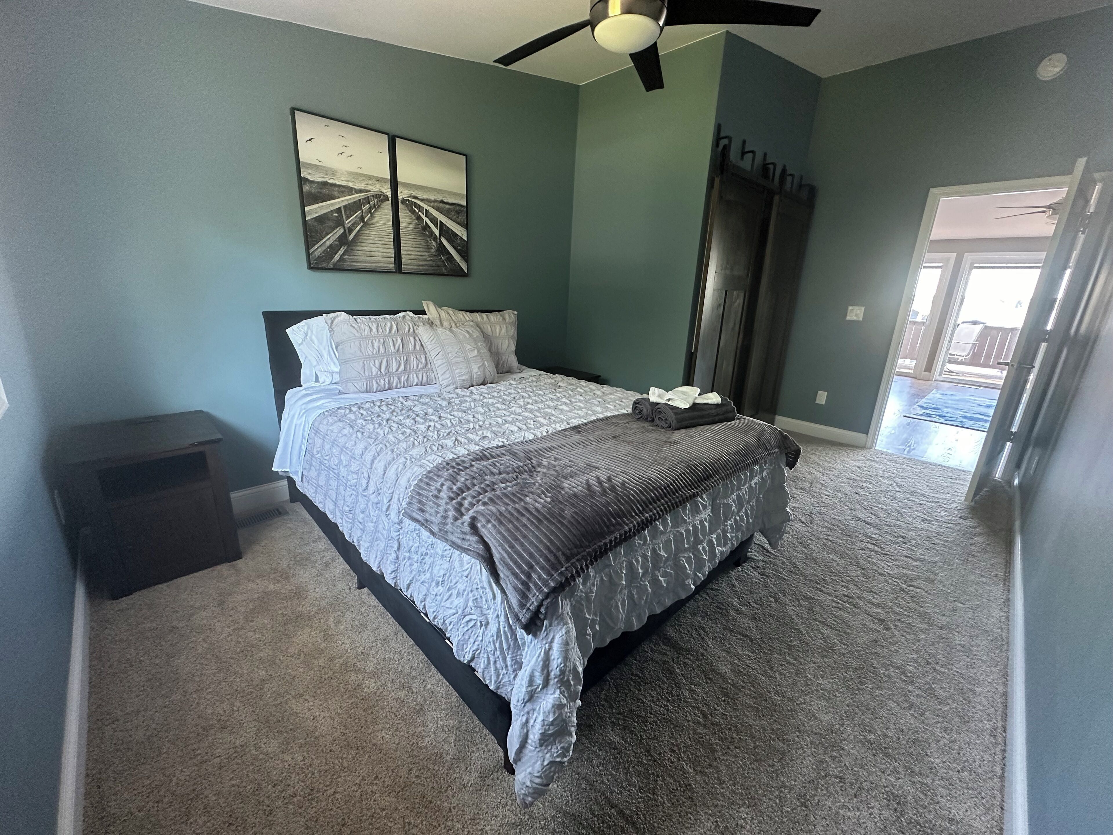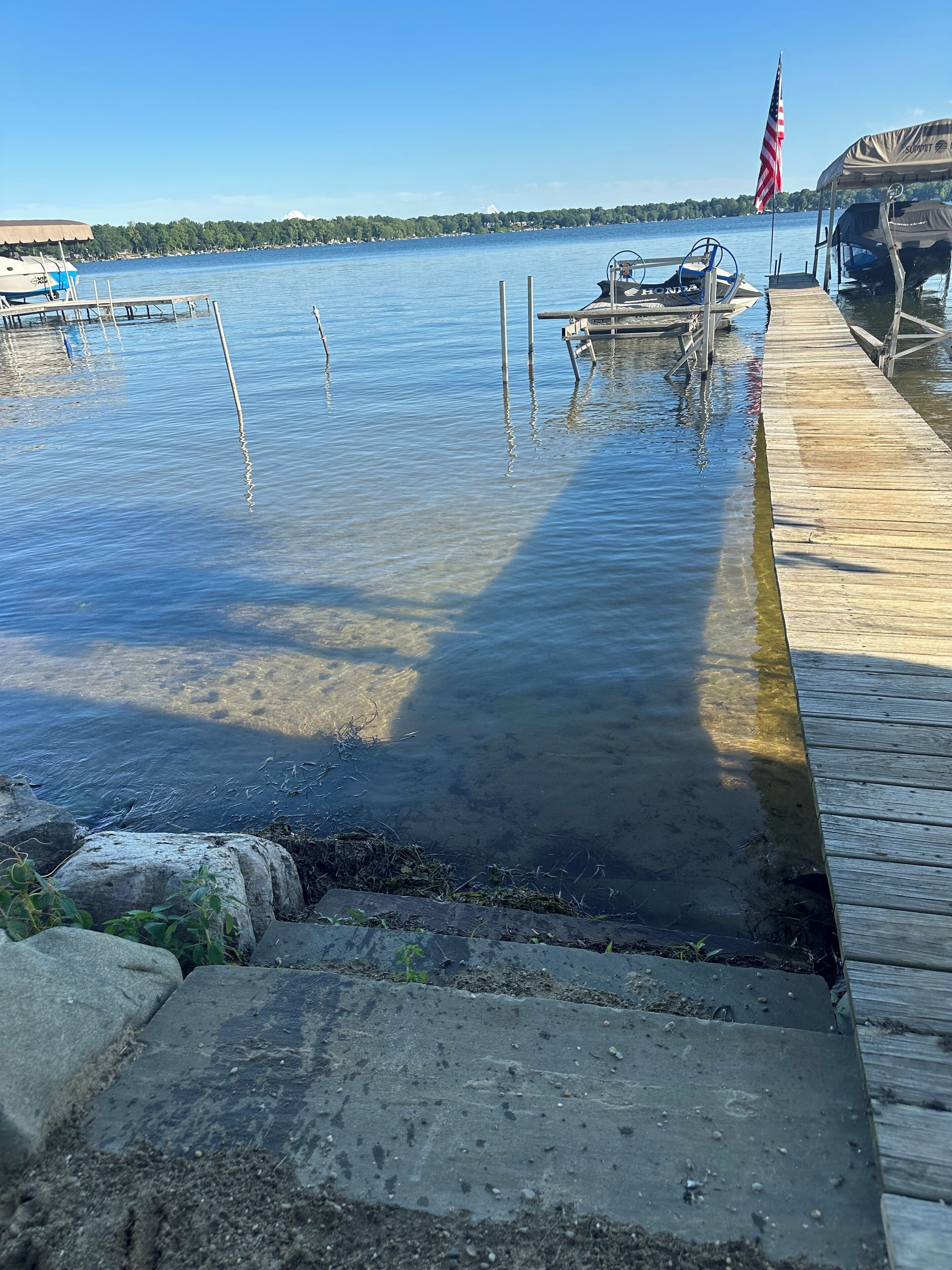 4 bedroom Retreat at Tice beach on Indian lake Experience the ultimate lakeside getaway at our beautiful home on Indian Lake, Michigan. This spacious three story, four-bedroom retreat is perfect for relaxation and adventure. With stunning lake views, modern amenities, and ample space, your stay promises to be unforgettable. Beach/lake access just steps away. Float and relax in the sandy bottom lake or enjoy the fire pit! All sports lake with sandbar charter, surf lessons and boat docking available. Please inquire. Your paradise awaits you!Boasting 3200 square feet and three stories, this four bedroom (two king beds, two queen beds and a queen air mattress) home has three full bathrooms (one on each level) and plenty of space for everyone to spread out! 2 separate living room areas. The entry level first floor has one bedroom with king bed and a full bathroom. Large living area with sectional couch. Rear sliding doors open to a patio with fenced yard. Gas fire pit In the outdoor patio seating area. Washer and dryer. The second story has bright light and panoramic lake views from the 2 large windows and 4 sliding doors that open to a large deck (half covered and half open) overlooking the picturesque lake. It has two bedrooms with queen beds. Full bathroom and an open floor plan with stocked kitchen, large living area and game room. Ample seating at the large family style dining table. Rear covered deck on this floor off of the kitchen space. Spiral staircase to the third story master loft offers a king bed where you will wake up to sunrise lake views. A large walk-in shower, closet and a jet tub for ultimate relaxation. Private master balcony on the third story where you can lay in the hammock overlooking the lake or enjoy your morning coffee on the bistro in set. Amenities include beach/lake access steps from the home, outdoor shower, WiFi for entertainment and remote work. Game room with card, board games, bumper pool andpoker table. 3 decks and a Patio with a gas fire pit. Grill. Parking for 4 vehicles (Garage access is not available). Home is available for short term rental and part of the home is available as there is no use of the garage or owners closet in the kitchen. All other spaces are available for use.