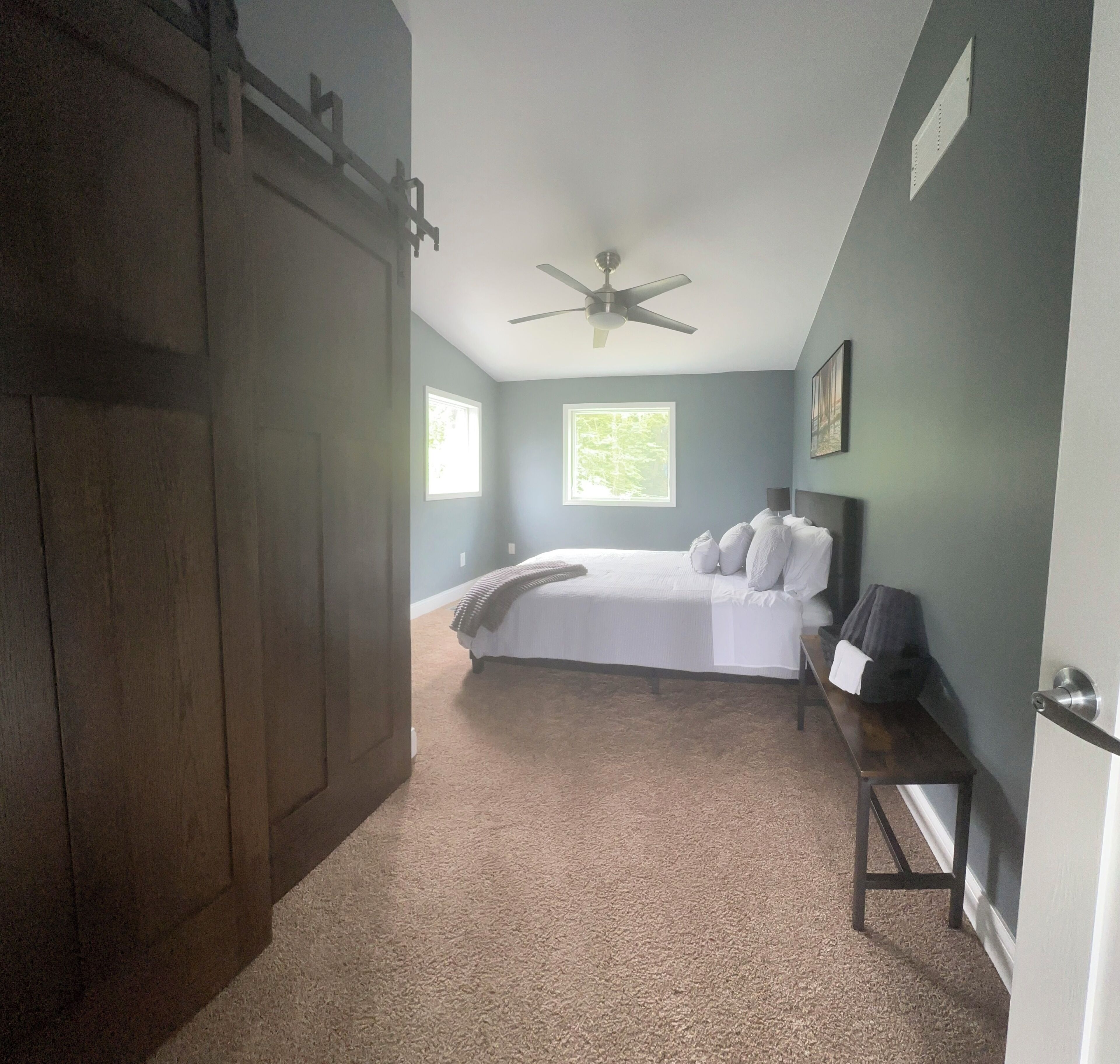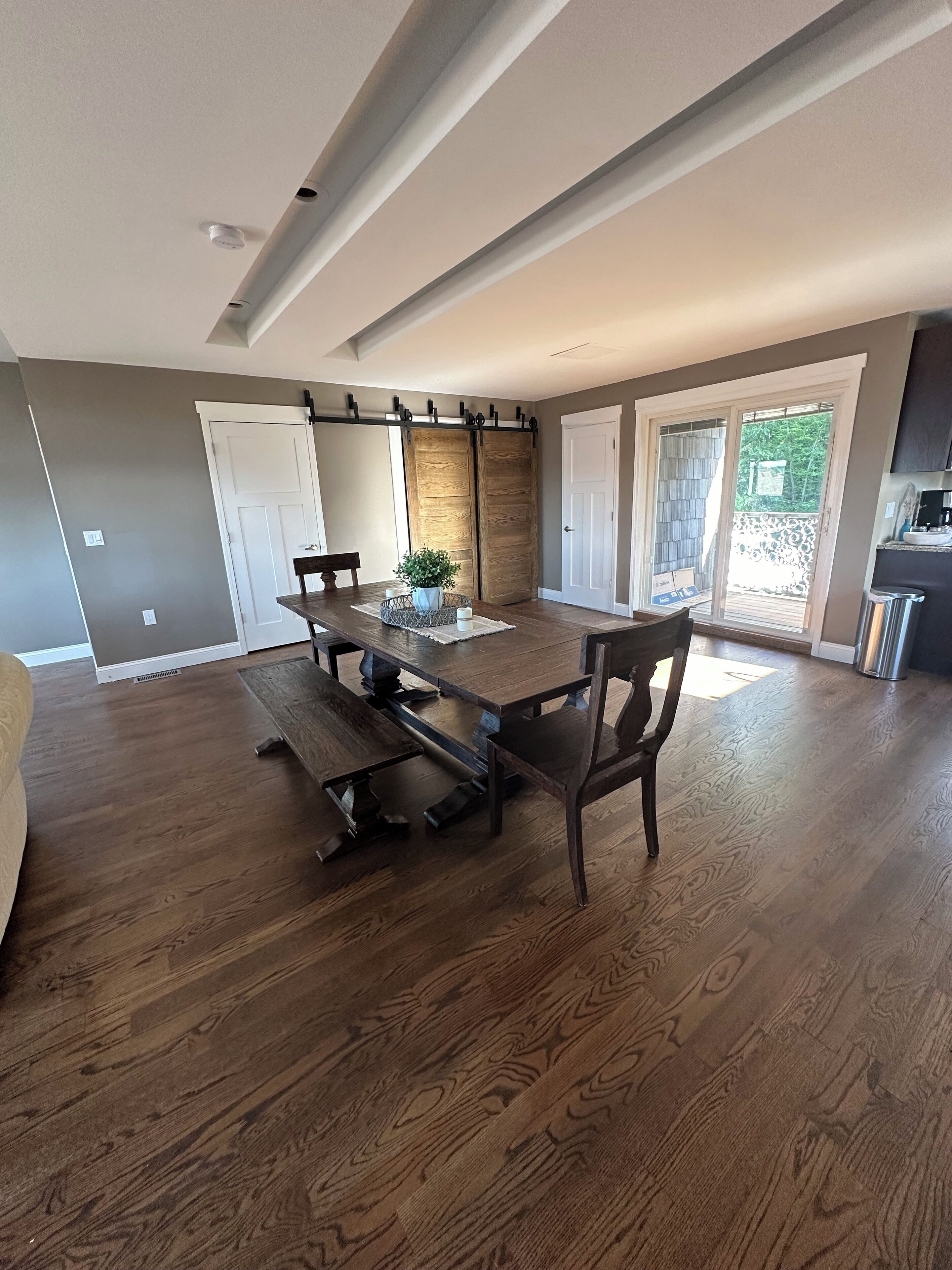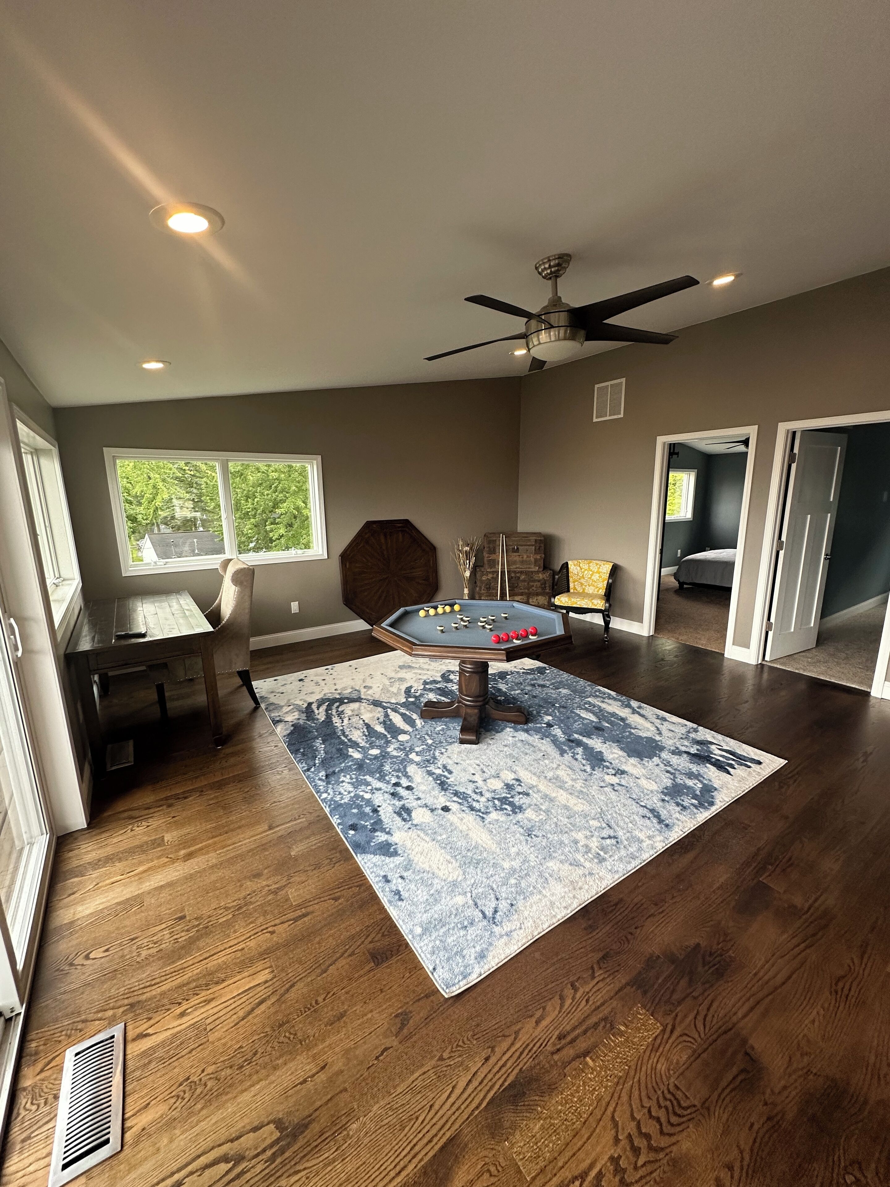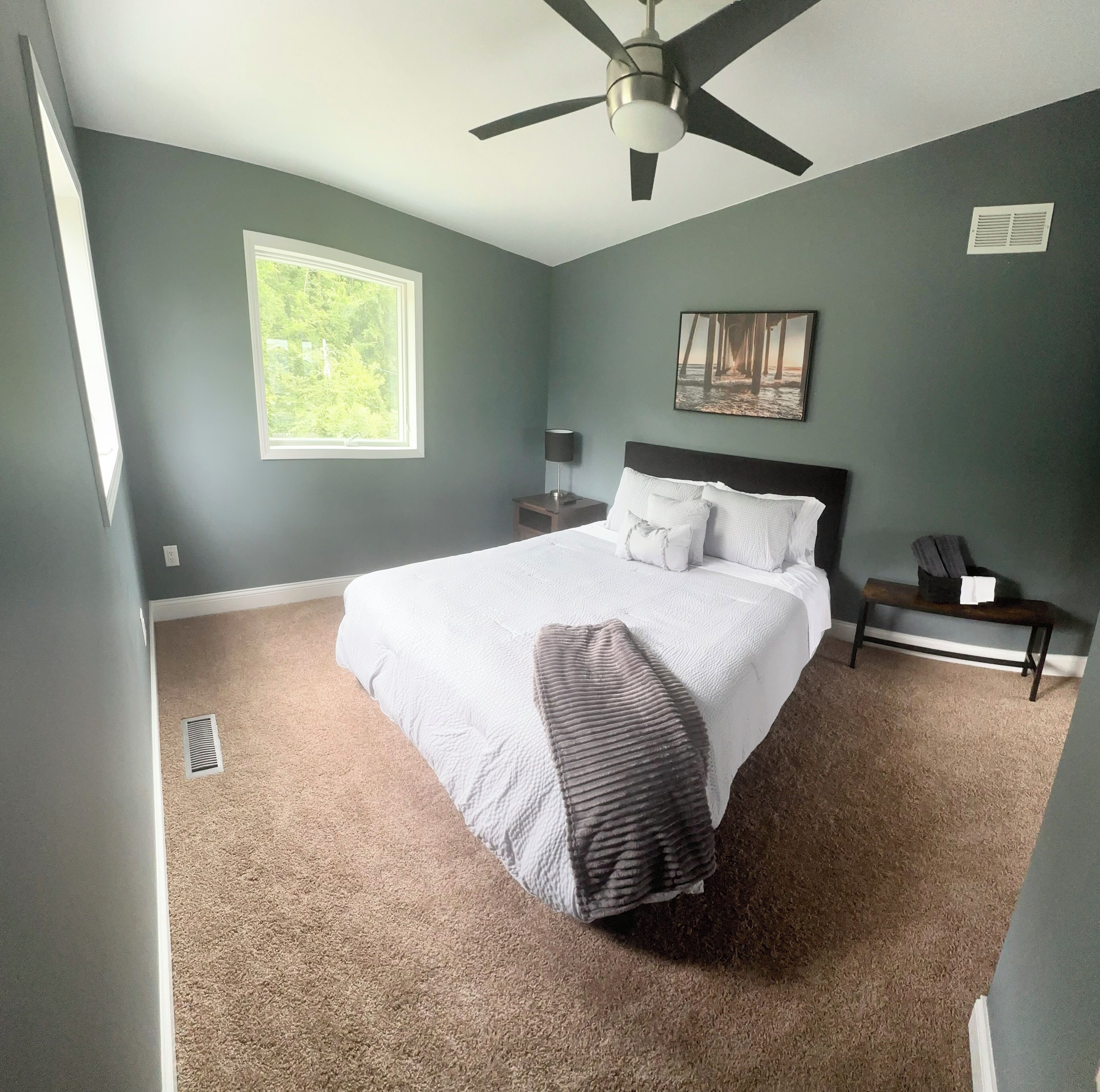 4 bedroom Retreat at Tice beach on Indian lake Experience the ultimate lakeside getaway at our beautiful home on Indian Lake, Michigan. This spacious three story, four-bedroom retreat is perfect for relaxation and adventure. With stunning lake views, modern amenities, and ample space, your stay promises to be unforgettable. Beach/lake access just steps away. Float and relax in the sandy bottom lake or enjoy the fire pit! All sports lake with sandbar charter, surf lessons and boat docking available. Please inquire. Your paradise awaits you!Boasting 3200 square feet and three stories, this four bedroom (two king beds, two queen beds and a queen air mattress) home has three full bathrooms (one on each level) and plenty of space for everyone to spread out! 2 separate living room areas. The entry level first floor has one bedroom with king bed and a full bathroom. Large living area with sectional couch. Rear sliding doors open to a patio with fenced yard. Gas fire pit In the outdoor patio seating area. Washer and dryer. The second story has bright light and panoramic lake views from the 2 large windows and 4 sliding doors that open to a large deck (half covered and half open) overlooking the picturesque lake. It has two bedrooms with queen beds. Full bathroom and an open floor plan with stocked kitchen, large living area and game room. Ample seating at the large family style dining table. Rear covered deck on this floor off of the kitchen space. Spiral staircase to the third story master loft offers a king bed where you will wake up to sunrise lake views. A large walk-in shower, closet and a jet tub for ultimate relaxation. Private master balcony on the third story where you can lay in the hammock overlooking the lake or enjoy your morning coffee on the bistro in set. Amenities include beach/lake access steps from the home, outdoor shower, WiFi for entertainment and remote work. Game room with card, board games, bumper pool andpoker table. 3 decks and a Patio with a gas fire pit. Grill. Parking for 4 vehicles (Garage access is not available). Home is available for short term rental and part of the home is available as there is no use of the garage or owners closet in the kitchen. All other spaces are available for use.