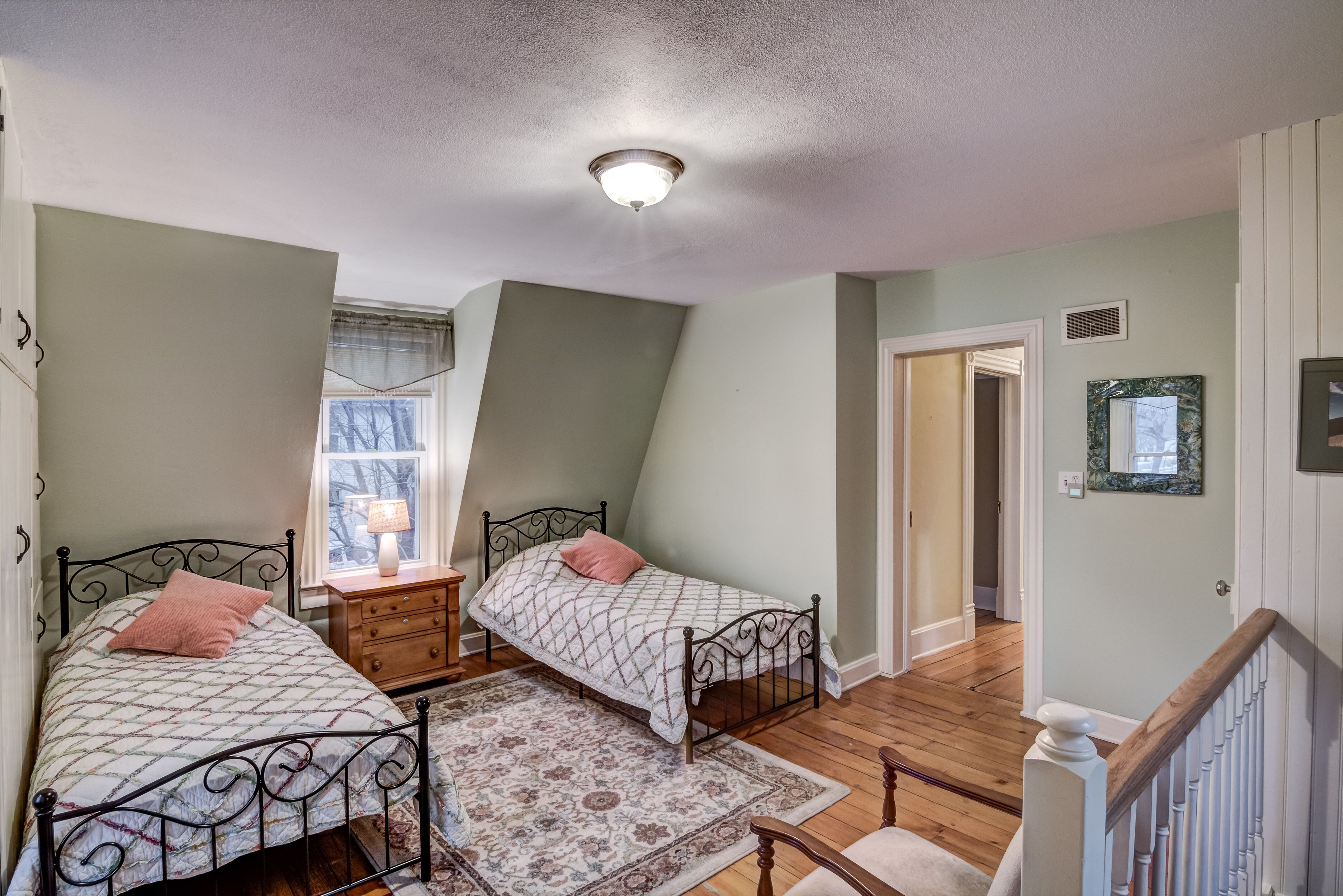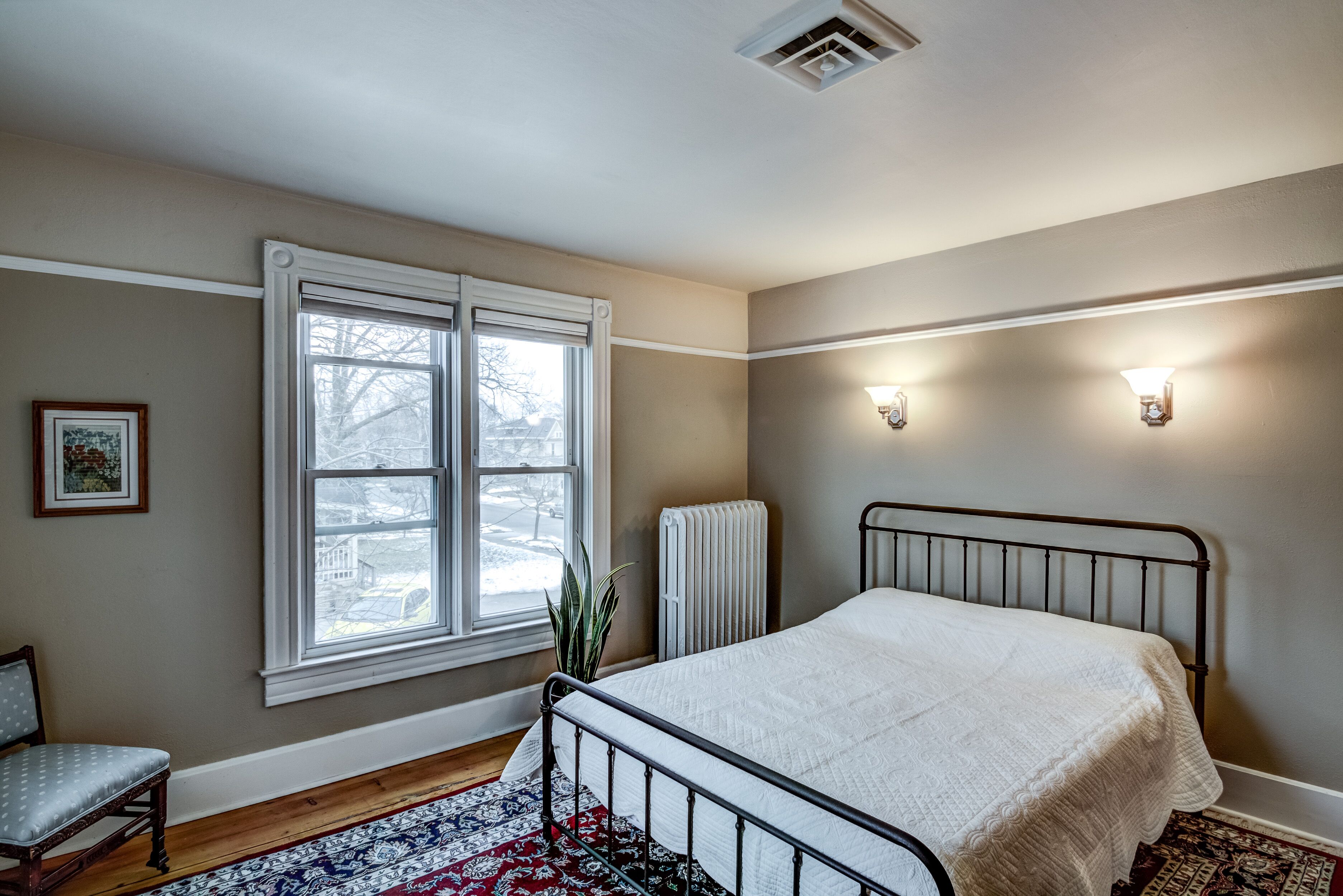 Family and Pet Friendly Demmler House Built in 1887 and restored to its original splendor, this home offers all the character of the late 1800s combined with modern conveniences, including a heated marble bathroom floor and high-speed Internet. The house has beautiful, light-filled living spaces and unique touches of elegance. The huge, screened-in back porch is great for breakfast and evening relaxation. A special experience!Located in the historic Third Ward Neighborhood, you'll be 6 blocks from the University of Eau Claire, and 5 minutes from downtown restaurants, breweries, coffee shops, the State Theatre, and the new Pablo Center for entertainment and conventions. Bringing the kids? The house is right next to Demmler Park, where you can play on the swings, shoot some hoops, or in the winter, bring your skates - the skating rink is well lit after dark. The house has a large yard with a garden and trees. Whether you're one person or a large group, you'll find the large bedrooms very comfortable. Ideal for visitors attending college graduations, wedding parties, music festivals, reunions, bike enthusiasts, or just getting the whole family together under one roof. If you have a party larger than 10, contact us about accommodating your needs.We have outdoor security cameras on site at each entry point to the house for the safety of our Guests as well as the security of the house when it sits empty. Guests often have family and friends for gatherings, so if you would like to host something like this, please let us know.