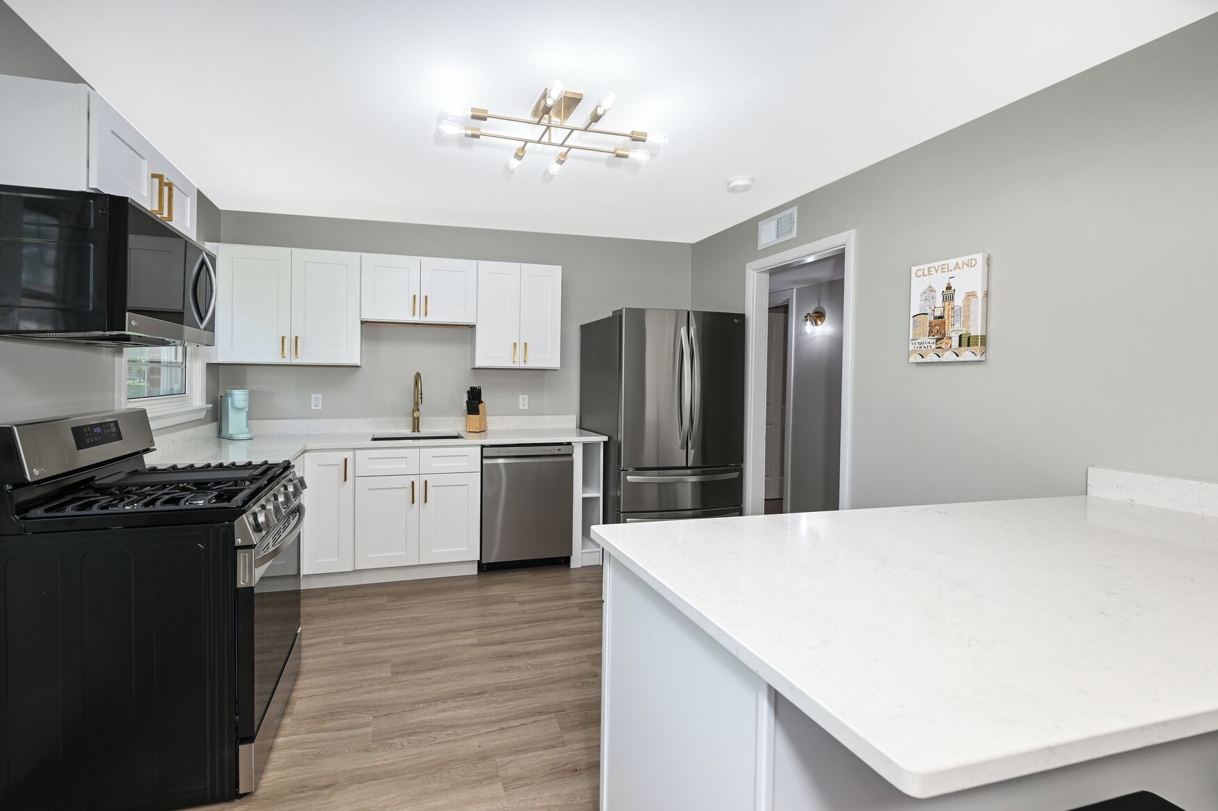 Modern Updated Ranch 15 min to Downtown & Hospitals Welcome to your modern retreat in Euclid, OH! Just 20 minutes from downtown Cleveland, this beautifully renovated ranch-style house offers 3 bedrooms, 1.5 baths, and high-end finishes throughout. Enjoy the convenience of nearby restaurants, Sims Park, Downtown Euclid, and being only 1.5 miles from Lake Erie. Perfect for both relaxation and explor...