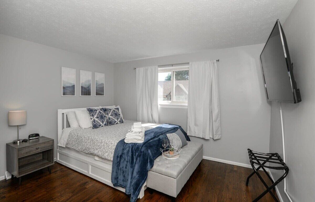 Best Place near Lake Erie! Summary:Enjoy an uninterrupted stay Breathtaking views of the beautiful skyline and the lake Chic and modern house Sunlight pours in through walls of windows Close to Briardale Greens Golf Course (4-minute drive) Sim's Beach and Sim's State Park within a 5-minute walk from the houseThe Space:Your search is over! Our home is the perfect spot for you! • Full-Size stocked Kitchen*Full Bathroom plus a "Powder room"• Comfy couch in the Living Room• Family area/Living in the basement• Smart TV• Fast and Reliable WiFi• 2 Bedrooms with Queen Size Bed each• 1 Bedroom with bunk bed• Pullout sofa• 1.5 bathsClose to Euclid HospitalBaby Concierge Umbrella strollerPack N' PlayHigh ChairSet of baby spoons230 E 238th St, Euclid, OH 44123, USAOther Things to Note✹ This space has been prepared for guests traveling from out of town! We love to host guests who have previously stayed in short term rentals and earned favorable reviews.✹ While we appreciate the interest in staying with our property, please note that we do not cater guests who live in the area and are looking for an alternate venue for their affairs or events and reserve the right to turn these guests away.✹ If you have any allergies or sensitivities, please let us know ahead of time. It will help us better prepare for your reservation.✹ There is no daily housekeeping service provided at the rental rate. Before check-in, the unit will be thoroughly cleaned and inspected. For longer stays, Mid-stay cleaning services can be requested for an additional fee.✹ Please gather excess trash and place it in large receptacles at the back of the house.★★ RULES AND GUIDELINES ★★ ✹ We ask our guests to enjoy and treat our house with the same love and respect as they would their own home.✹ For the comfort and better enjoyment of all present and future guests, PETS and SMOKING are not allowed inside the house (e.g. marijuana, vapes, cigarettes, etc.)✹ This cozy home is NOT for parties, large gatherings, or events. If a guest violates the house rules and allows unauthorized guests, everyone will be removed from the property without a refund.✹ STRICT QUIET HOURS 9PM - 7AM "Especially Outdoor"✹ Damage to the property will incur the following charges:✔ Damaged towels $20 Each✔ Damaged Linens $30 Each✔ Comforter $200✔ Duvet Cover $100✔ No undeclared guests✔ Pet cleanup $400✔ Party cleanup $500✔ Smoke remediation $700✔ Undeclared pet $200/pet✹ Please note that security cameras are present for exterior monitoring only. A noise monitoring device is installed inside the property.✹ Both the Check-in Form and Rental Agreement must be signed prior to your stay to ensure a smooth check-in process and clarify the terms of your rental.✹ LEFT ITEMS: $25 will be charged on items that was left in the property on top of the shipping fee✹ Early Check-in: If there is no reservation from the previous day, we can consider an early check in. Alternatively, you can book the previous day to guarantee the early check in.✹ Late Check-out: Late check out request are seldomly approved due to the cleaning team is scheduled on your check out schedule at 11am.✹ EXTENSION REQUEST: When you feel like time runs out too fast and wish to have more time in our home, we’ve got you covered. We’d appreciate it if you let us know as soon as you find out the need to extend your stay. We would like to inform you that we only allow extension requests until 12:00 am on your last day in the property. Any requests that come in after midnight while the cleaner is already scheduled for that day will have an additional cleaning fee.✹ NOTE: We provide complementary consumables like toiletries which include soap, shampoo, conditioner, coffee, packets of creamer and sugar, and other bathroom amenities. For your convenience, we offer mid-reservation supplies replenishing at minimal cost.Guest Access:You will be messaged a code followed by a check mark. This code is enabled in the electronic keypad deadbolt during your stay and can be used to unlock as well as to lock the door.For a smoother check-in experience, we kindly request that all guests fill out our check-in form prior to arrival. This form will grant you access to our listing and ensure a hassle-free check-in process. Upon confirmation of your reservation, we will promptly send you the check-in form.The Neighborhood:The property is at 230 E 238th St, Euclid, OH 44123Getting Around:5 Minute walk to Sim’s Beach, Kenneth Sims State Park, Henn Mansion4 Minute drive to Briardale Greens Golf CourseInteraction with Guests:We are here for you during your stay, but our level of interaction is up to you. We are only a message away. You will be able to self check-in upon arrival.