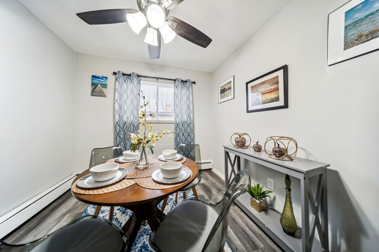 Adorable 2 bedroom Cleveland apt with King Coming to Euclid or Cleveland? Then enjoy this nicely furnished 2-bedroom apartment with a king and queen bed, plus a bonus futon couch for an extra kid or two. Fully furnished with all the amenities of home. We love hosting guests all over Northeast Ohio. With over 500 visits to our properties, we leave no stone unturned for you. We value each and every guest like it's our first! This quaint apartment is sure to be a home-away-from-home for anyone visiting Cleveland!NOTICE: ALL STAYS AT THIS PROPERTY ARE SUBJECT TO THE FOLLOWING HOUSE RULESThis property, located at 26680 Tungsten Road in Euclid, Ohio (the "Property"), is managed by Short Term Rental Management LLC ("We" or "Manager"). You and those staying with you during your stay are the guests ("Guest" or "You"). Anyone You invite into the Property during your stay is a visitor ("Visitor").Registration: All Guests must be registered prior to arrival. No unregistered Guests or Visitors are allowed inside the Property. The listed rate is for the first 4 guests. The maximum Property capacity is 5. An additional Guests above 4 (that is, a 5th Guest) requires an additional Guest Fee of $5 per day each. If one or more Guests stay on the Property without registration, the booking is subject to immediate cancellation without a refund, a $75 Non-Registered Guest Fee per unregistered Guest, or both. Early or Late Arrival:We will make every effort to accommodate requests for early check-in or late checkout, when possible, for a fee of $30.00 each. However, please request early check-in at the time of your booking to allow us time to prepare for your arrival. Please understand that there is no guarantee we can accommodate these requests.Smoking and Substances:No smoking or use of substances inside the Property. Butts must be disposed of in an ash tray in the back yard of the Property. No signs of smoking should be left anywhere on the Property. This includes butts left on the ground. A $450 fine will be assessed if we have to pick up cigarette butts or find evidence of any illicit drug use (including marijuana) inside the Property.Parking: Guests and Visitors may park only in designated parking areas or on the street and must comply with all parking regulations and requirements. Please show consideration for other vehicles in the neighborhood. Do not park on the grass or on neighboring properties.Parties:No parties or public events of any kind are allowed inside the Property or on the exterior grounds of the Property. A party is defined as any period of more than 30 consecutive minutes during which more than 2 Visitors are on the Property, or any effort to have multiple Visitors with such intent (a "Party"). If you are planning to have Visitors and wish to clarify whether this meets the definition of Party as defined here, please call or message the Manager. Any costs for repair due to property damage or excess cleaning will be invoiced to You.Quiet Time:Quiet time begins at 10 p.m. and lasts until 7 a.m.Security:For the safety of all Guests and Visitors, this Property is equipped with exterior cameras (which may include Ring doorbells and/or Blink cameras with audio/video surveillance) that are in plain view in public spaces and on the Property exterior. All are monitored regularly.Holdovers:Guests and Visitors remaining in or on the Property beyond the Guest's reservation period (a "Holdover") will be deemed to be trespassing. We will take all possible legal action (civil and/or criminal) to have Holdovers removed from the Property and prosecuted to the full extent allowable under law. Property Condition and Damage:You accept this Property during the course of your Stay on an "As Is" basis. Due to the volume of guests, the Property is subject to regular wear-and-tear that will not interfere with the quality of your Stay. However, if you find any of the furniture, fixtures, or other aspects of the property to be excessively damaged or in disrepair, including any damage caused by You, your other Guests, or your Visitors during your stay ("Guest Damage"), please notify Us immediately. We will work with You to remedy the situation in a timely manner to everyone's satisfaction.You may be liable for direct costs associated with any repairs required to address Guest Damage. We will work to mitigate such costs and will communicate this to you. If you fail to report any Guest Damage, You will be liable for the direct costs for any associated repairs plus an additional $100 Unreported Damage fee.Pets: No pets allowed on or inside the Property. This is not a pet friendly Property. Pets include any animals You bring onto the Property during your stay (each a “Pet”). Registered service animals are always welcome, but We do require notice so that We can properly clean the Property following departure for guests with allergies. Service animals are expected to be with their human and not left unattended inside the Property at any time. We reserve the right at our sole discretion to charge a $20 Cleaning Fee if any service animal leaves an excess mess.Miscellaneous:Generally, please leave the Property the same or better than you found it!No eating or drinking in bedrooms. Please enjoy your meal in the dining room or outside.Keep a close eye on your kids at all times.Please keep track of all keys and report any lost keys. You will be liable for a $200 Lost Key Fee if You lose a key during your stay or if the key is otherwise not returned upon checkout.Please report any problems in a timely manner and allow us to rectify the problem first.PRIOR TO CHECK OUT:Dispose of all trash in the trash bin and outside receptacles when you check out.Make sure to turn off all lights, air conditioning, and any electronics. Don’t forget to close all the windows and lock all the doors.Check all rooms, closets, and drawers for your personal belongings. We are not responsible for lost items or items left behind.During cold-weather m