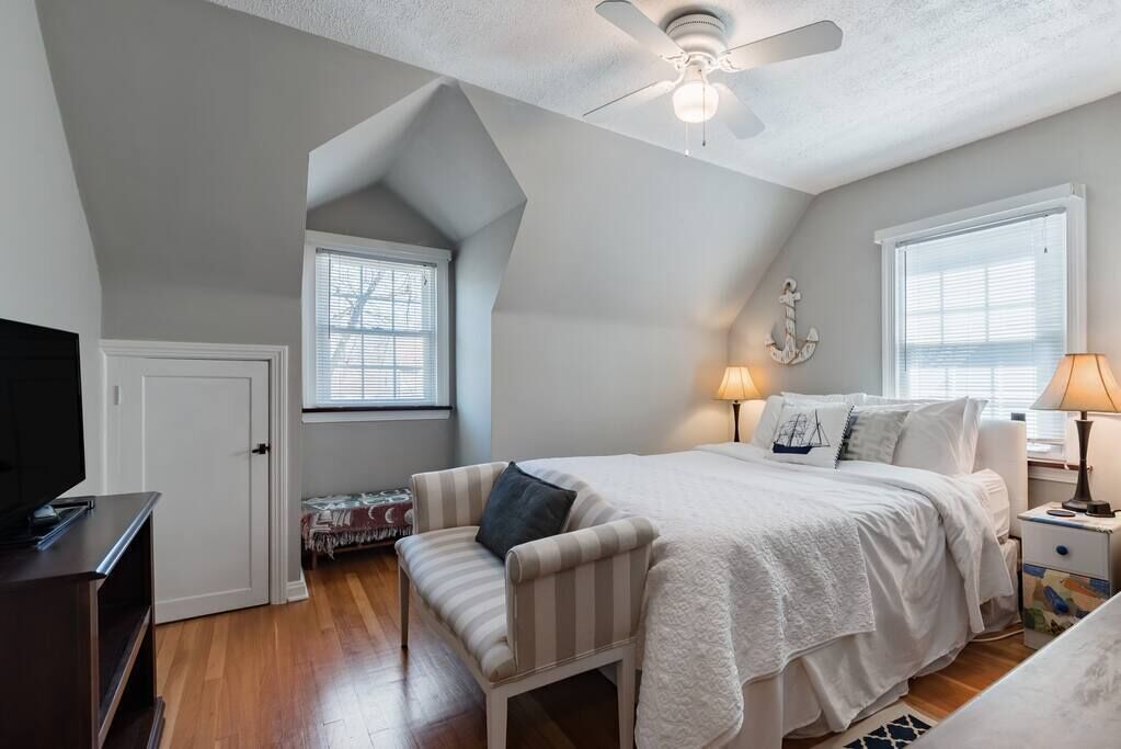 Cozy Blue House on the Shores of Lake Erie Summary:Snuggle up on plush seating in front of the gas fireplace after a day of strolling along the shoreline of Lake Erie. With homey decor, a color palette of light gray, and whimsical nautical flourishes, this home radiates warmth. Sleeping quarters with queen beds and a full bathroom are located on the second story of the home.Entire house is availab...
