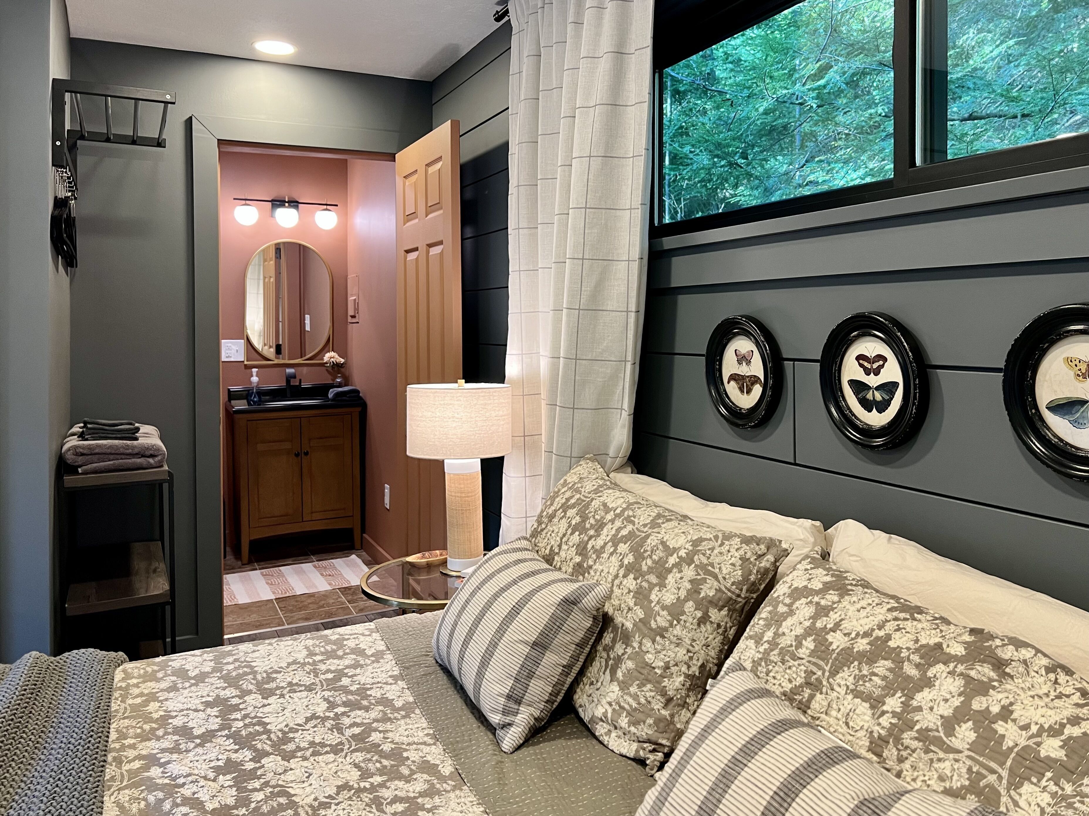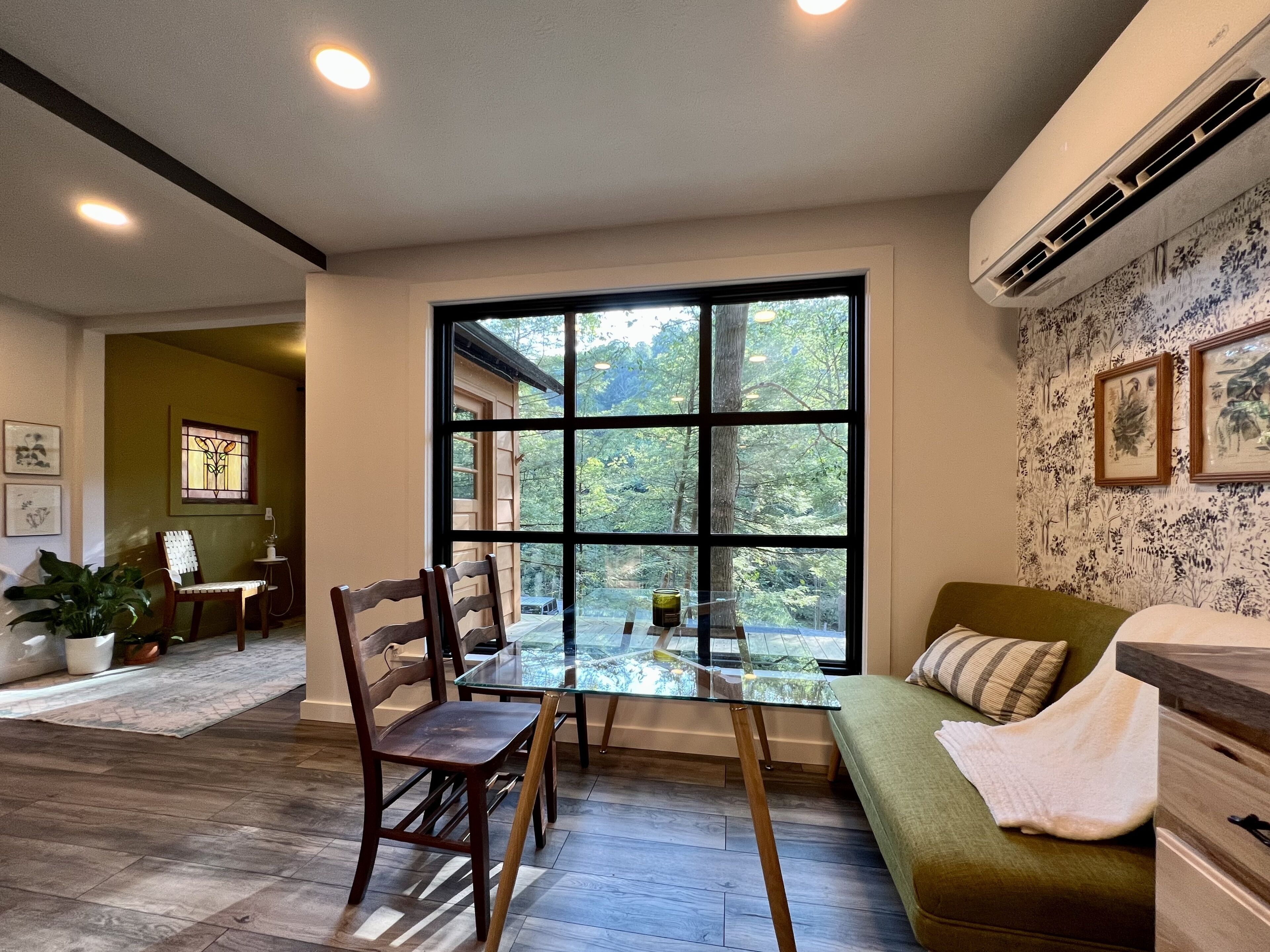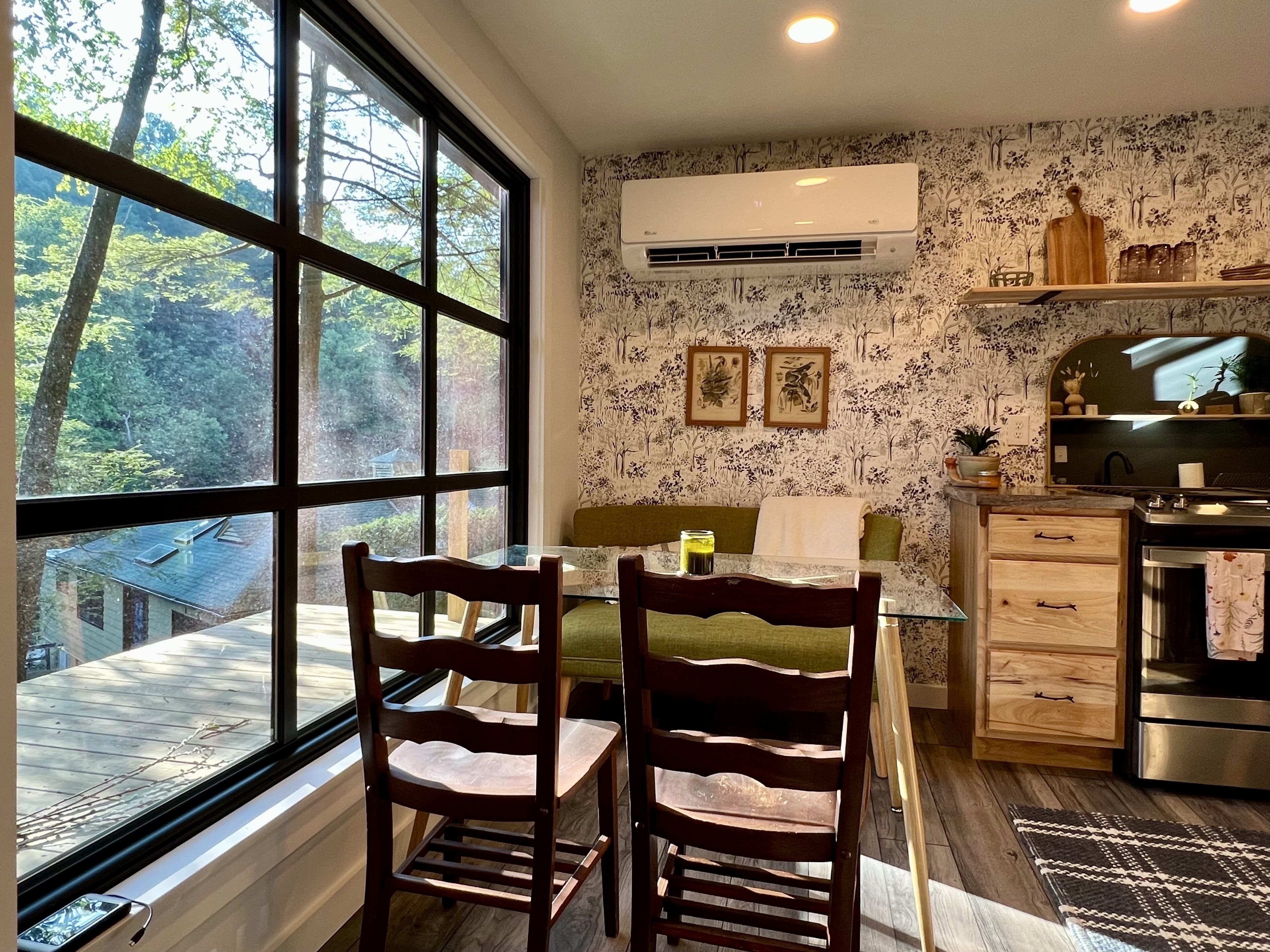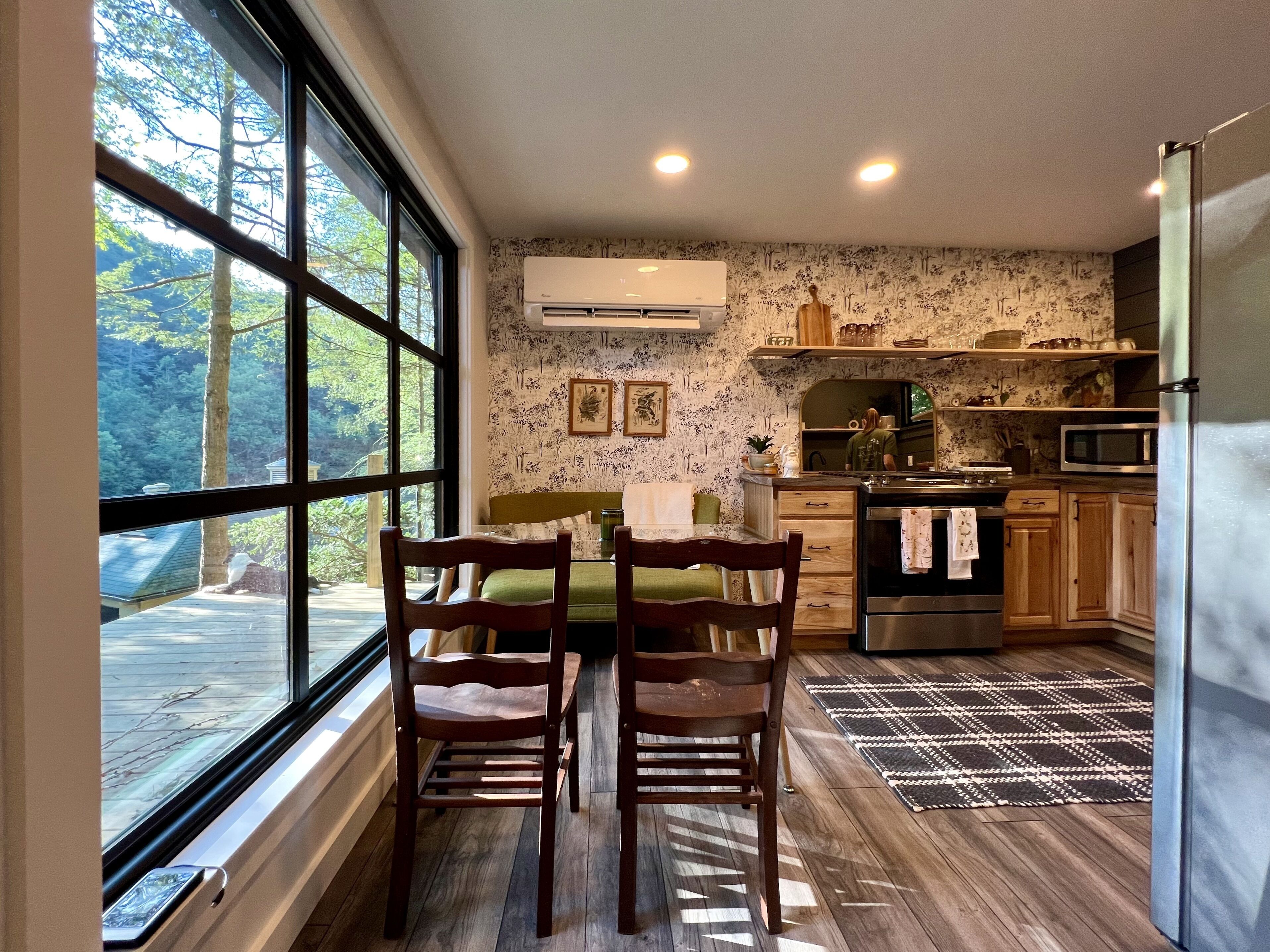 Gwen's Cottage at Water's Edge Gwen’s Cottage is located on the privately owned and operated estate, Water’s Edge, which was recently re-established in January 2022 by Western Pennsylvania native, Gwendolyn Reno. This cottage is a newly renovated, 490sqft, studio-style accommodation, perched along side the Slippery Rock Creek adjacent to McConnells Mill State Park. This charming cottage has a wrap around deck that quite literally over-looks the creek and faces the state park land located just across the water.Gwen’s Cottage is a studio accommodation and includes one full bathroom, a generous full kitchen and french doors leading out of the bedroom onto a wrap around deck. While this space is under 500sqft, we’ve furnished it very intentionally with everything you need and nothing you don’t. We think it’s perfect, but if there’s something you need, just reach out to your hosts and they can provide anything from extra cookware to a mid-week linen refresh.Your cottage is all your own. Your deck is your private space as well. The Lodge is located just below your accommodations and you’re welcome to come inside for a tour and visit! Our office is located in The North Wing of The Lodge and that’s where you’ll usually find us!There are 6 full-time residents at Water’s Edge. The owner & founder Gwen, her dog Katie, and 4 adorable kitty brothers that stay outside unless they’re resting in their kitty condo in the garage! Gwen and Katie currently live in the North Wing of The Lodge. You’re sure to meet Katie and the kitties when you’re out and about but they are not allowed inside any of the accommodations. If you love on them, they’ll spend lots of time with you outdoors! (If pets are not your fav, no worries, they’ll be able to tell. They’ll leave you alone if you leave them alone.)Guests of Gwen’s Cottage have 2 dedicated parking spaces. You should be aware that there is a considerable climb of two full staircases up to the cottage doorway at this time. We will always offer to help you with your bags. We host small events in The Lodge and at times your stay at Water’s Edge may overlap with other guests stays, workshops, dinners, celebrations etc. We take boundaries very seriously here, and we always share the details of which spaces and times are private or occupied throughout each event we’re hosting. The property is a total of 78 acres. While there may be other guests on property, there’s plenty of room to spread out! Outside of your private space, you may see other guests or residents enjoying the Slippery Rock Creek or the many hiking trails. We have been working on restoring this estate since the acquisition in January 2022 and we have a good bit left to do. During your stay you may see some construction or grounds work being done. You may also hear some tools or machines at work!! We are extremely mindful about our guests experience and do our best to avoid making noise while you’re here. We thank you for understanding that we are a work in progress!!We can’t wait to share Water’s Edge with you!!!There are MANY staircases at Water’s Edge. If you’re interested in walking around the property, you will be navigating inclined trails and outdoor staircases. If you are unable to, or do not want to embrace the climb, the creek is accessible by truck or suv. We incorporate as much accessibility as we possibly can, however, Gwen’s Cottage is not an accommodation that we recommend if you have any limitations when navigating a staircase. We have more accessible options in Nate’s Cabin, which is accessible with only a few steps to enter. Due to the nature of the terrain and proximity to the Slippery Rock Creek, it is of the utmost importance that you are aware of the dangers present on this property. All guests must be 18 or accompanied by a legal guardian. All adult guests are required to sign a waiver upon arrival.