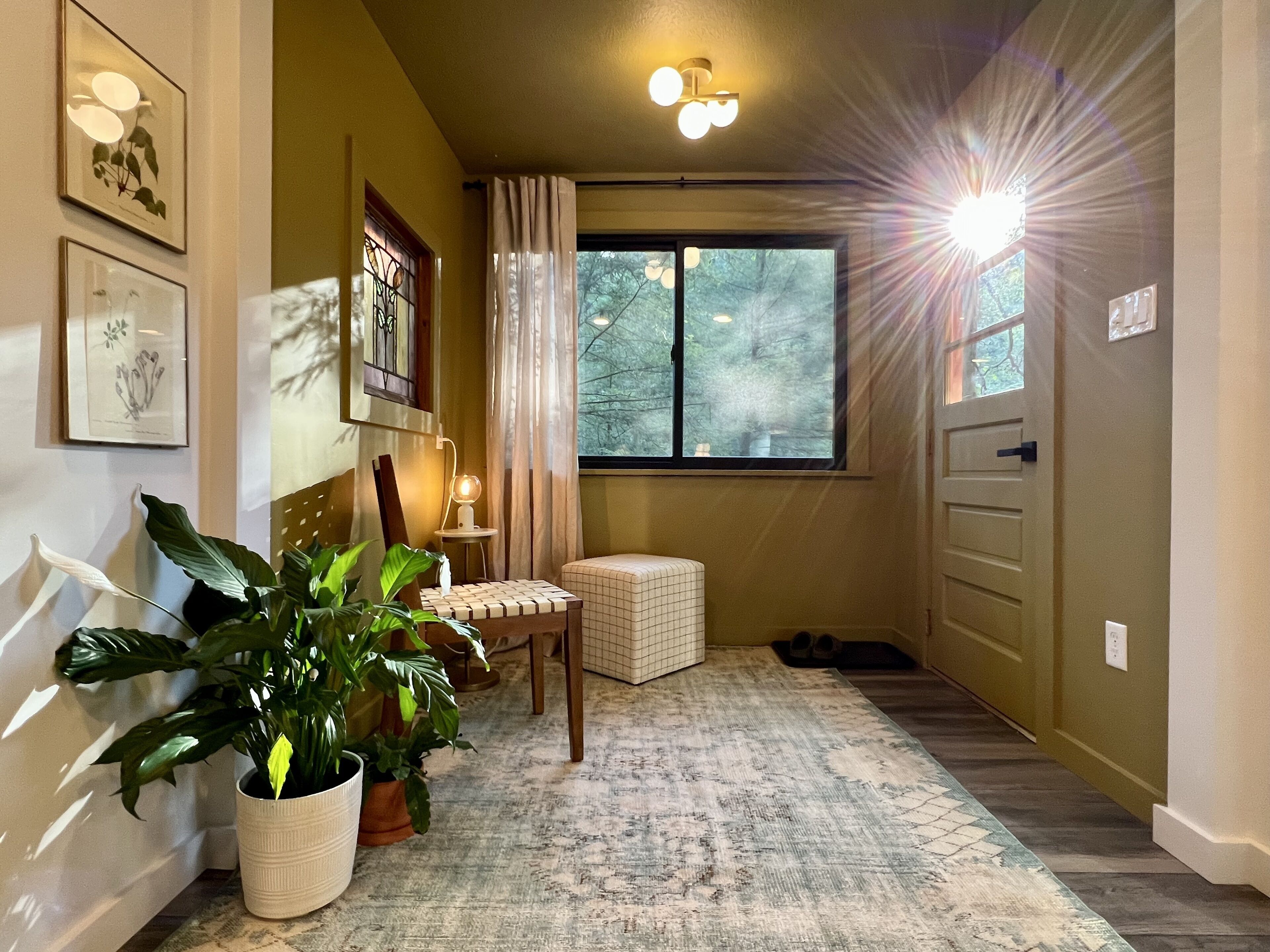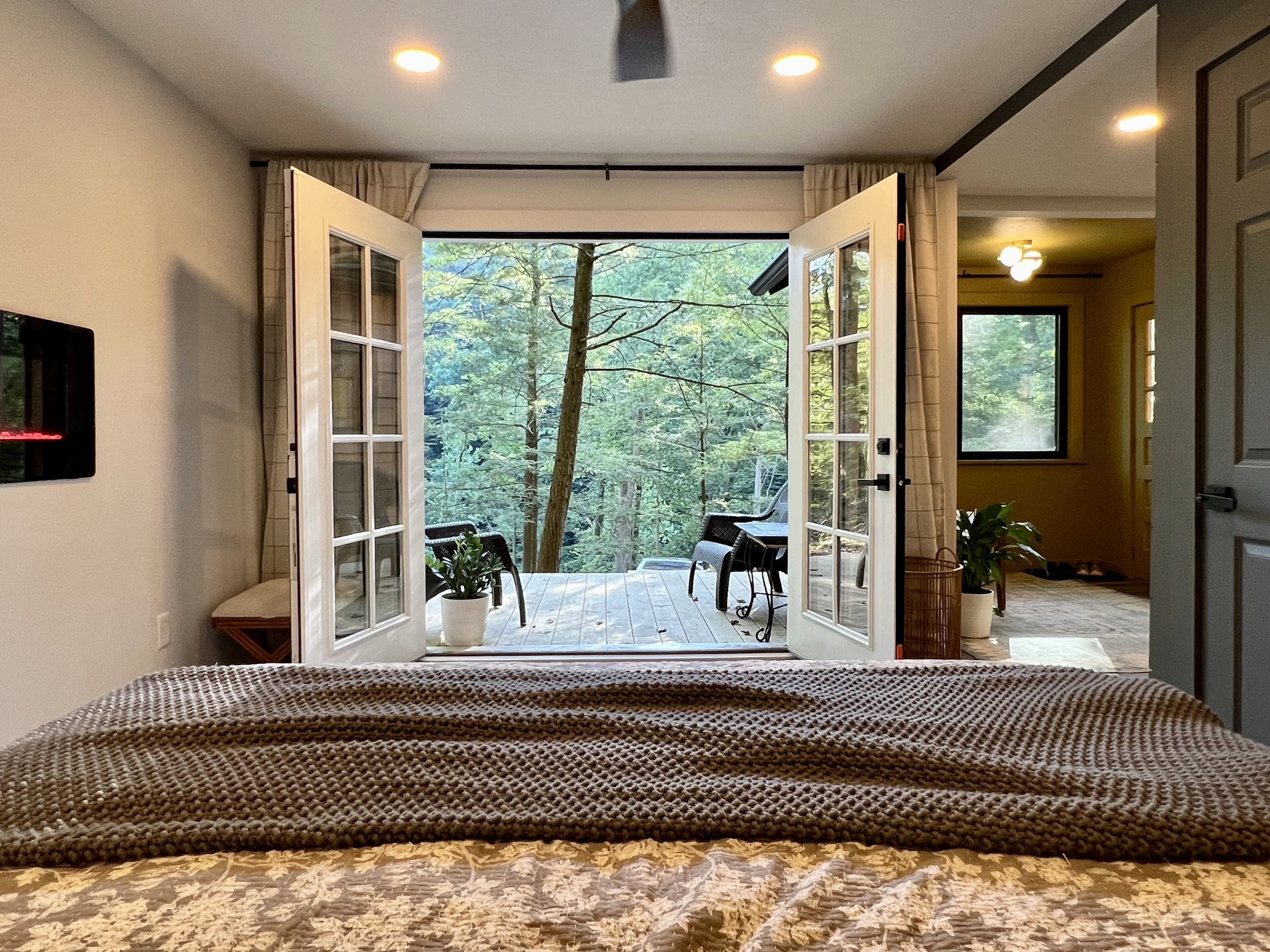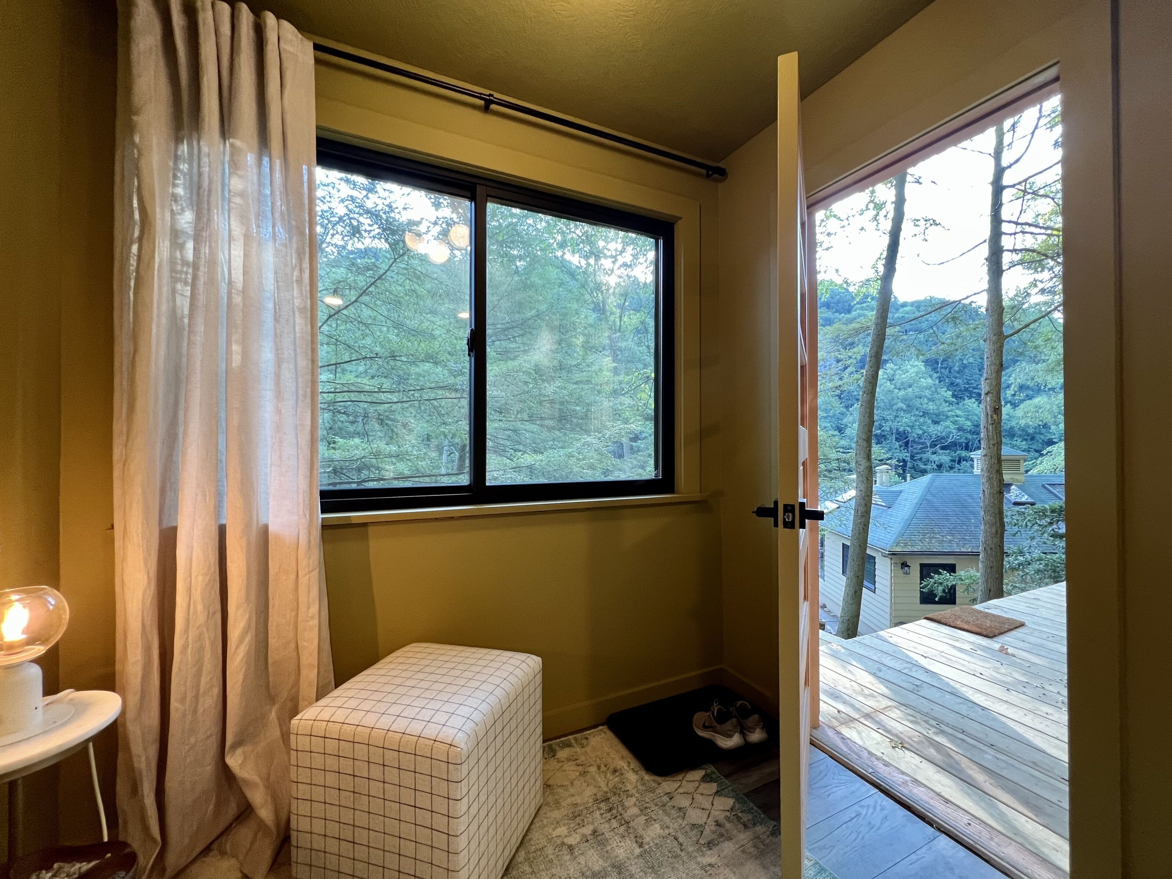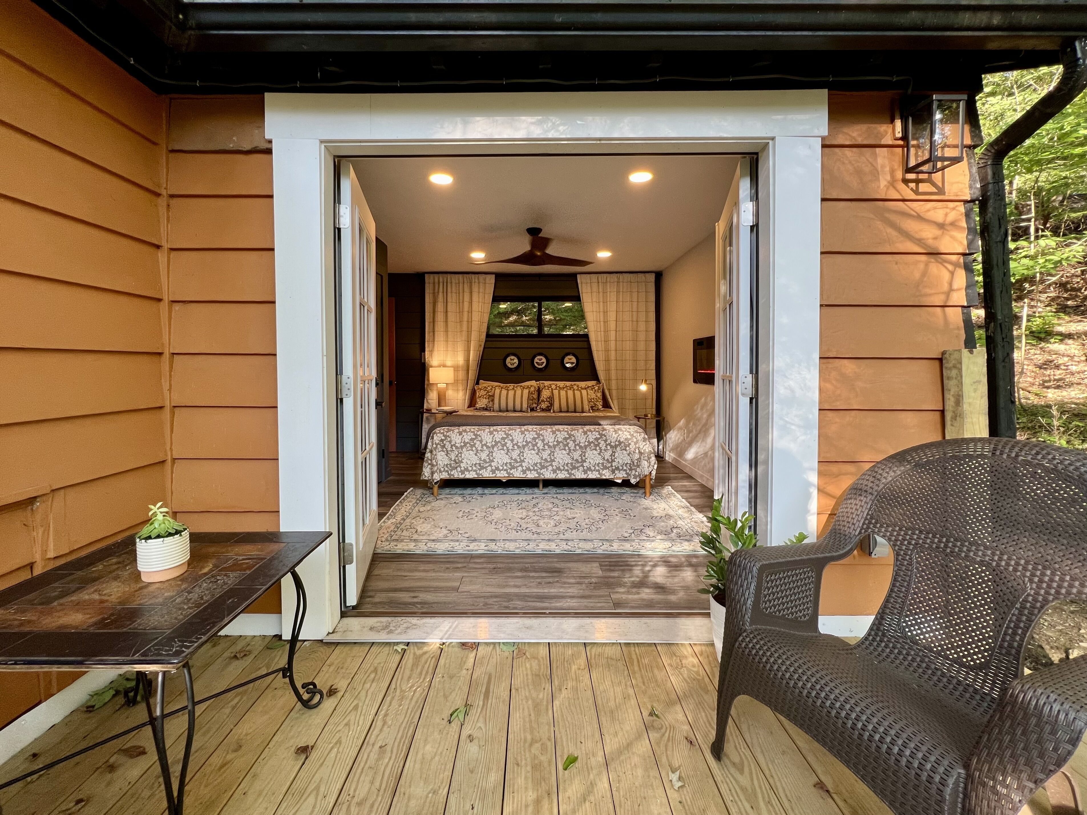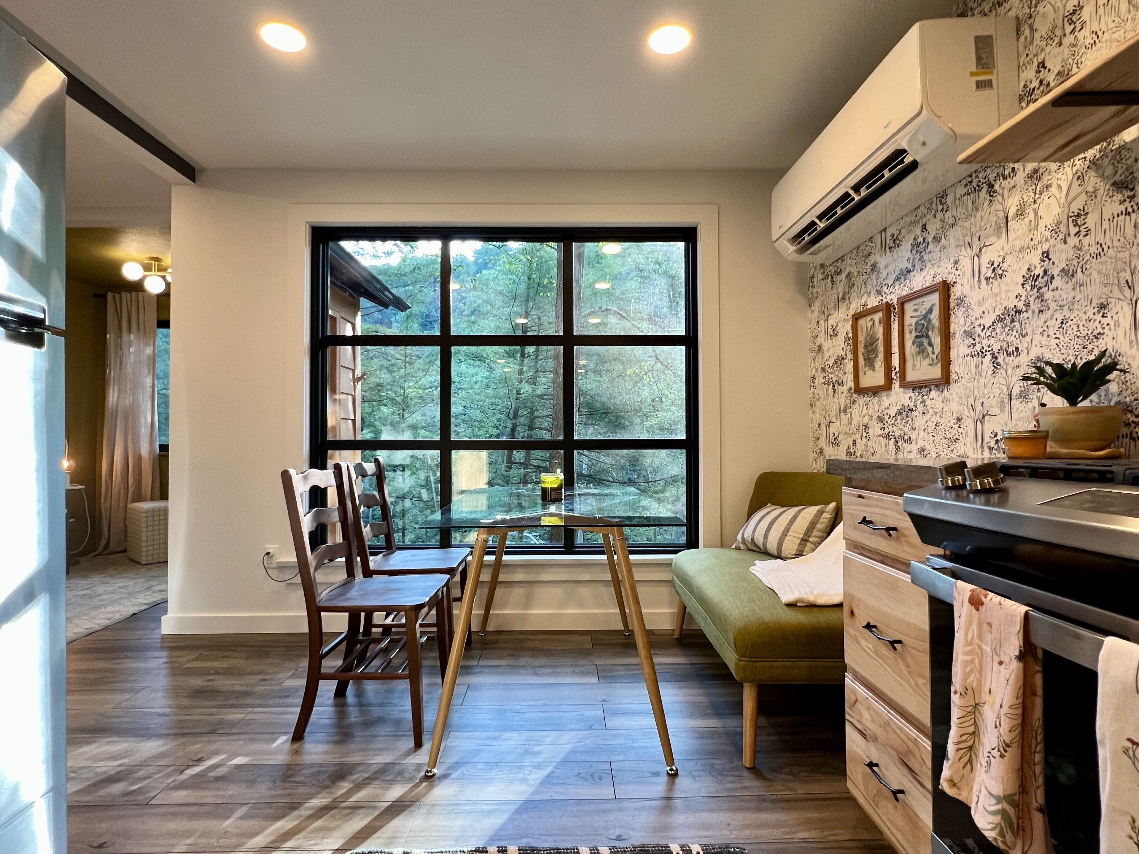 Gwen's Cottage at Water's Edge Gwen’s Cottage is located on the privately owned and operated estate, Water’s Edge, which was recently re-established in January 2022 by Western Pennsylvania native, Gwendolyn Reno. This cottage is a newly renovated, 490sqft, studio-style accommodation, perched along side the Slippery Rock Creek adjacent to McConnells Mill State Park. This charming cottage has a wrap around deck that quite literally over-looks the creek and faces the state park land located just across the water.Gwen’s Cottage is a studio accommodation and includes one full bathroom, a generous full kitchen and french doors leading out of the bedroom onto a wrap around deck. While this space is under 500sqft, we’ve furnished it very intentionally with everything you need and nothing you don’t. We think it’s perfect, but if there’s something you need, just reach out to your hosts and they can provide anything from extra cookware to a mid-week linen refresh.Your cottage is all your own. Your deck is your private space as well. The Lodge is located just below your accommodations and you’re welcome to come inside for a tour and visit! Our office is located in The North Wing of The Lodge and that’s where you’ll usually find us!There are 6 full-time residents at Water’s Edge. The owner & founder Gwen, her dog Katie, and 4 adorable kitty brothers that stay outside unless they’re resting in their kitty condo in the garage! Gwen and Katie currently live in the North Wing of The Lodge. You’re sure to meet Katie and the kitties when you’re out and about but they are not allowed inside any of the accommodations. If you love on them, they’ll spend lots of time with you outdoors! (If pets are not your fav, no worries, they’ll be able to tell. They’ll leave you alone if you leave them alone.)Guests of Gwen’s Cottage have 2 dedicated parking spaces. You should be aware that there is a considerable climb of two full staircases up to the cottage doorway at this time. We will always offer to help you with your bags. We host small events in The Lodge and at times your stay at Water’s Edge may overlap with other guests stays, workshops, dinners, celebrations etc. We take boundaries very seriously here, and we always share the details of which spaces and times are private or occupied throughout each event we’re hosting. The property is a total of 78 acres. While there may be other guests on property, there’s plenty of room to spread out! Outside of your private space, you may see other guests or residents enjoying the Slippery Rock Creek or the many hiking trails. We have been working on restoring this estate since the acquisition in January 2022 and we have a good bit left to do. During your stay you may see some construction or grounds work being done. You may also hear some tools or machines at work!! We are extremely mindful about our guests experience and do our best to avoid making noise while you’re here. We thank you for understanding that we are a work in progress!!We can’t wait to share Water’s Edge with you!!!There are MANY staircases at Water’s Edge. If you’re interested in walking around the property, you will be navigating inclined trails and outdoor staircases. If you are unable to, or do not want to embrace the climb, the creek is accessible by truck or suv. We incorporate as much accessibility as we possibly can, however, Gwen’s Cottage is not an accommodation that we recommend if you have any limitations when navigating a staircase. We have more accessible options in Nate’s Cabin, which is accessible with only a few steps to enter. Due to the nature of the terrain and proximity to the Slippery Rock Creek, it is of the utmost importance that you are aware of the dangers present on this property. All guests must be 18 or accompanied by a legal guardian. All adult guests are required to sign a waiver upon arrival.