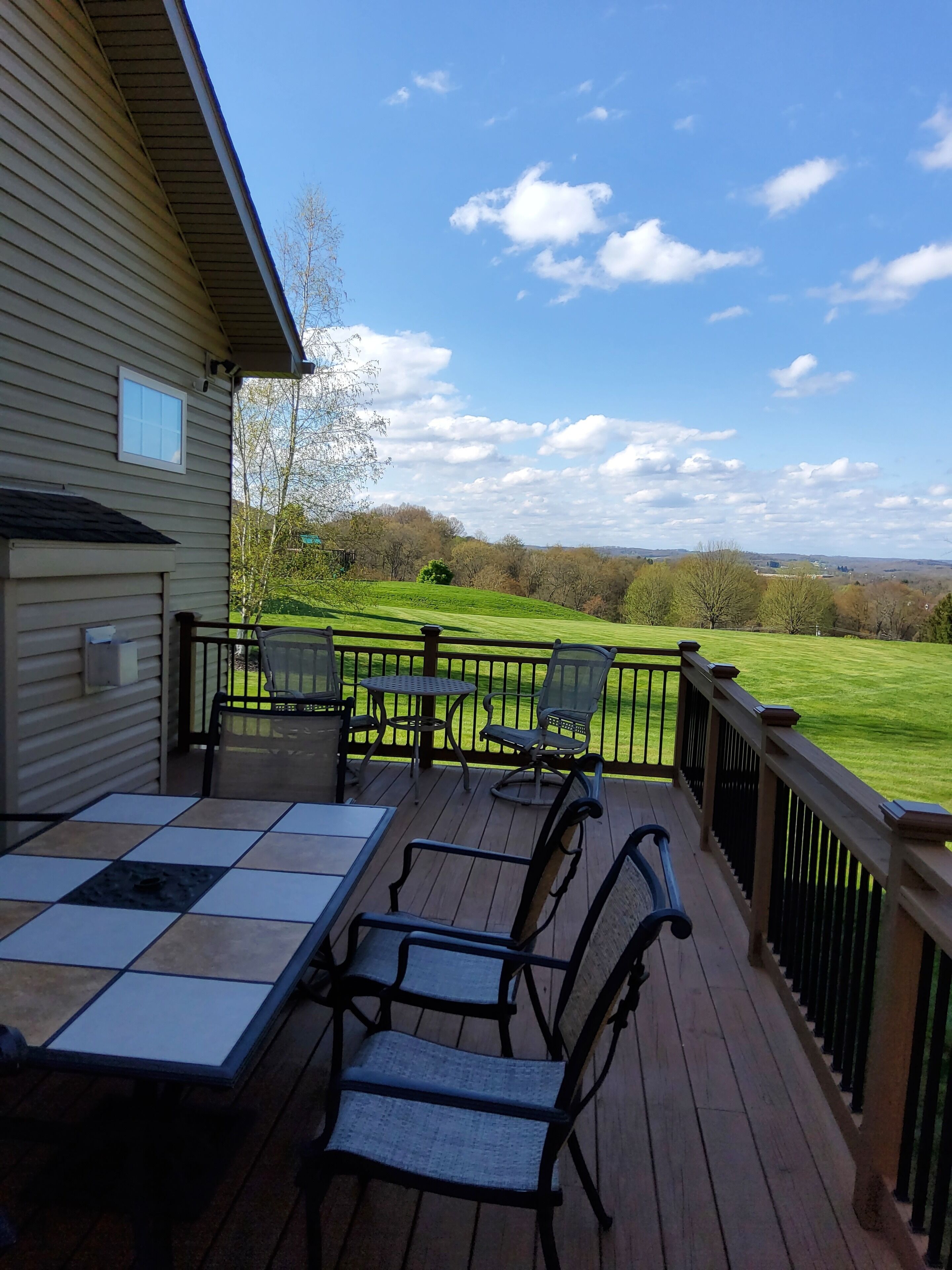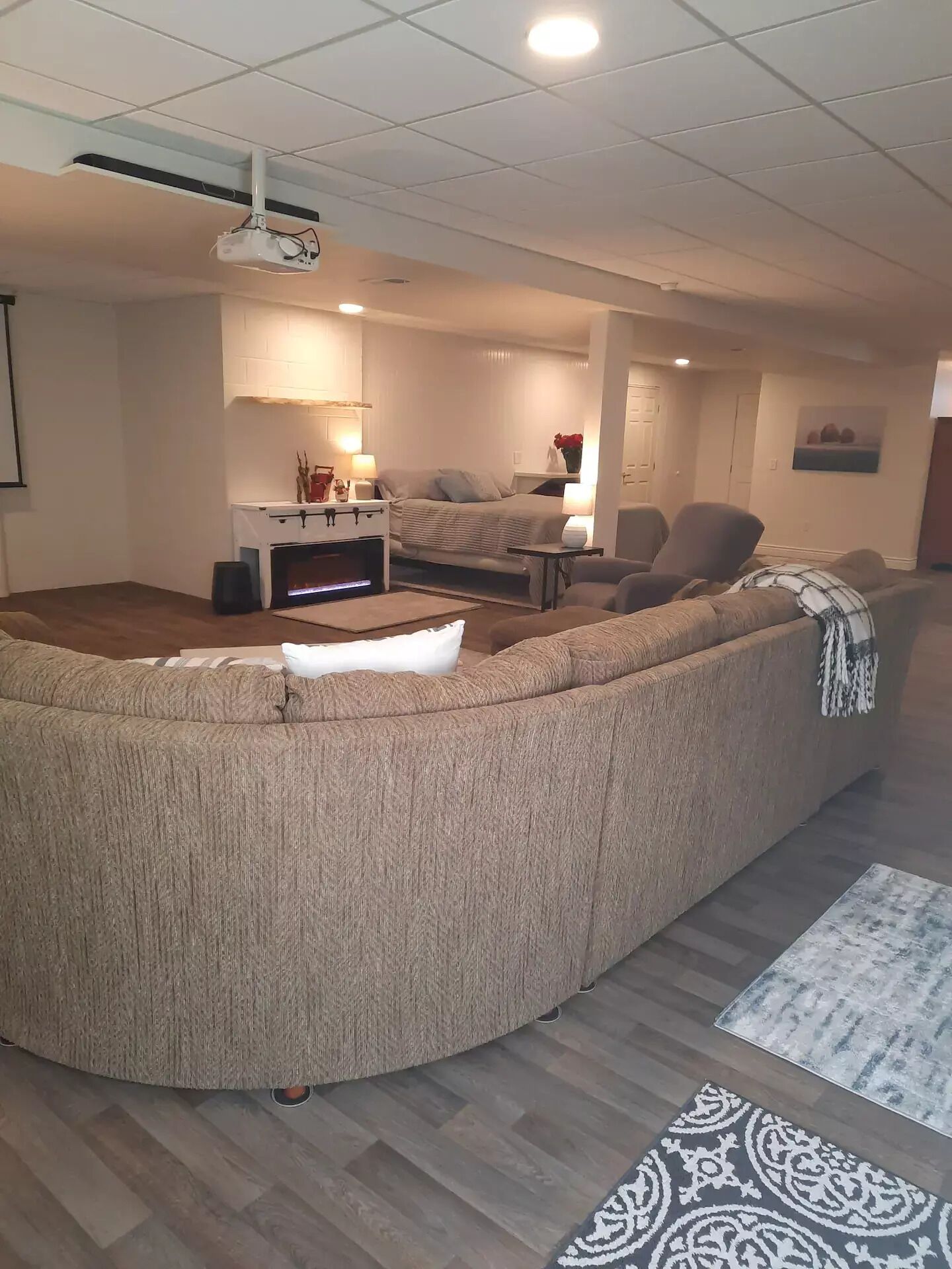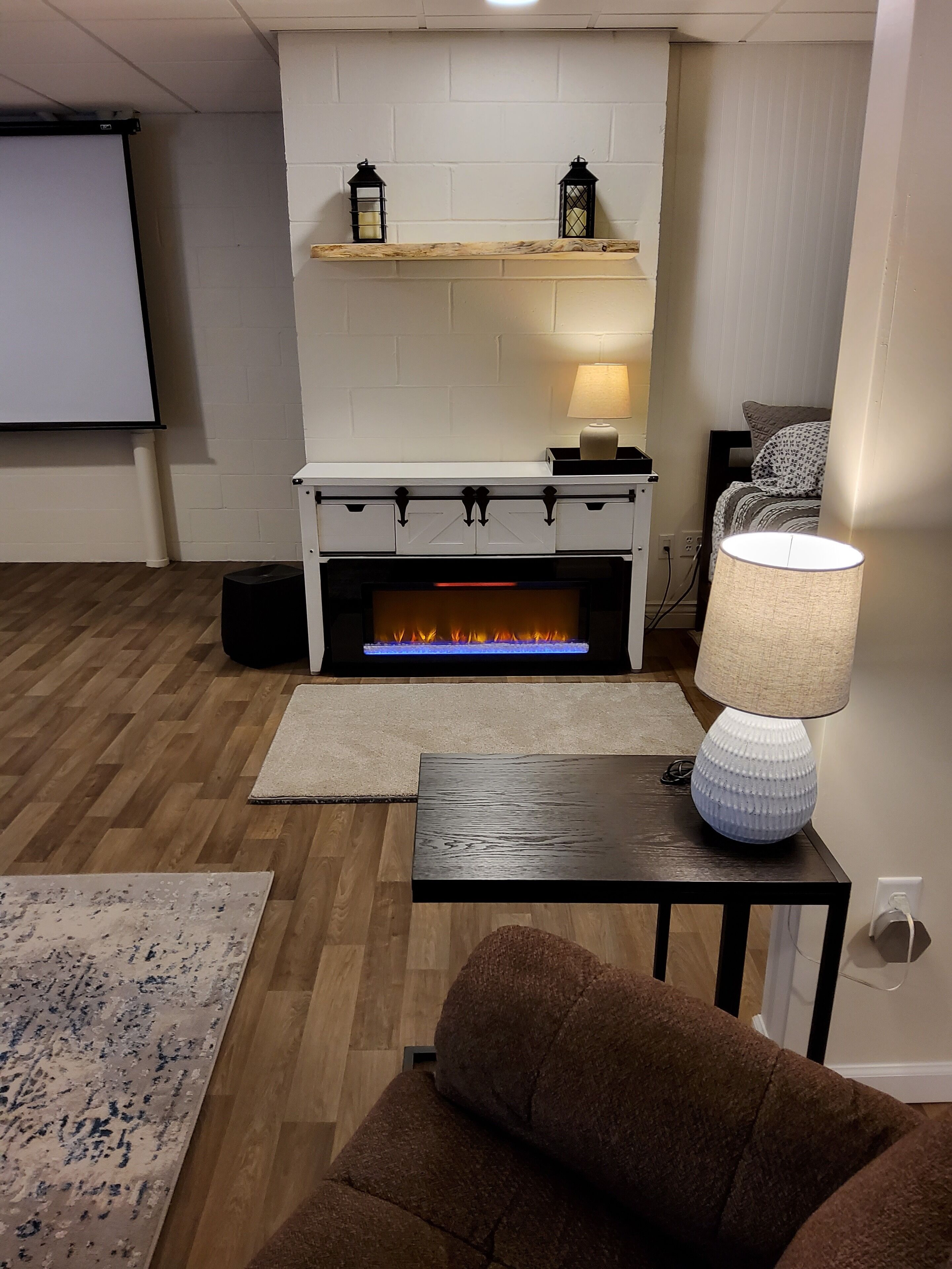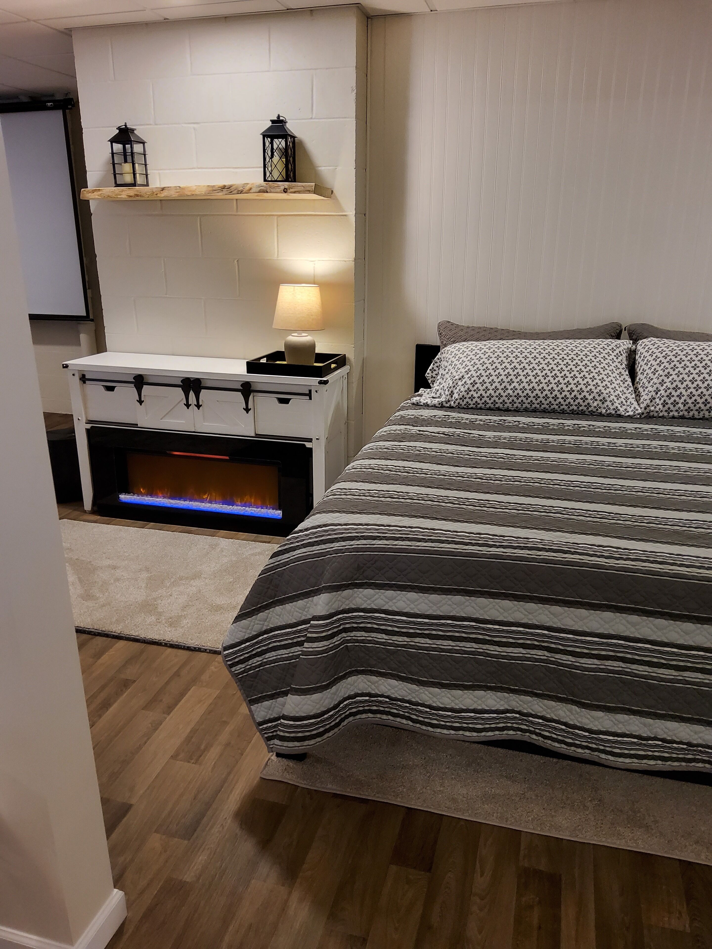 Open- Concept Design Studio- great getaway with so much room to spread out Easy access to Rt 28 expressway/restaurants and shopping. golf courses nearby - Birdsfoot, River Forest, Brackenridge Heights, Saxon/ all within 10-15 min. drive! Reach downtown Pittsburgh and surrounding suburbs within 35 min on Rt 28 expressway with no traffic lights on the way! Local Starbucks is within a mile in Sarver/ walking and cycling on rails to trails/movie theater/ speedway/kayaking/ fishing in Buffalo Creek and Allegheny River. Offstreet driveway parking for 2 vehicles in shared driveway. Studio is halfway above ground with private access/ 8 stairsteps down. Keyless entry/ Weber gas grill on 350 square foot deck/ access deck from stairs and lawn/walk up 4 steps. 4 outdoor rockers, 4 chairs, 2 dining tables. Get popcorn ready/watch movies provided or Netflix/streaming channels/ 6x10 projection screen TV/ Polk surround sound won't disappoint. Sleeps 4, king bed, queen air mattress/ pullout sofabed/ 2 recliners and fireplace round out the livingroom area. A designated workspace included. Washer, dryer, a drop zone at the door with bench, a large walk-in closet, and full length mirror. New King size memory foam bed right next to the cozy fireplace /heat feature/mood lighting. Clothes dresser with mirror and counter. Ceiling and walls soundproofed/ Fully equipped kitchen has icemaker/ new stainless steel appliances/easy access pullouts and turntables. Instant pot and Keurig coffeemaker with coffee and tea included/wineglasses and more. cooking tools and essentials provided/ Welcome basket of snacks and bottled water awaits you!