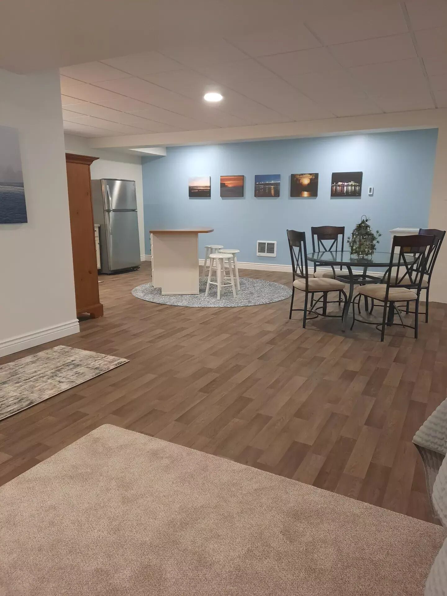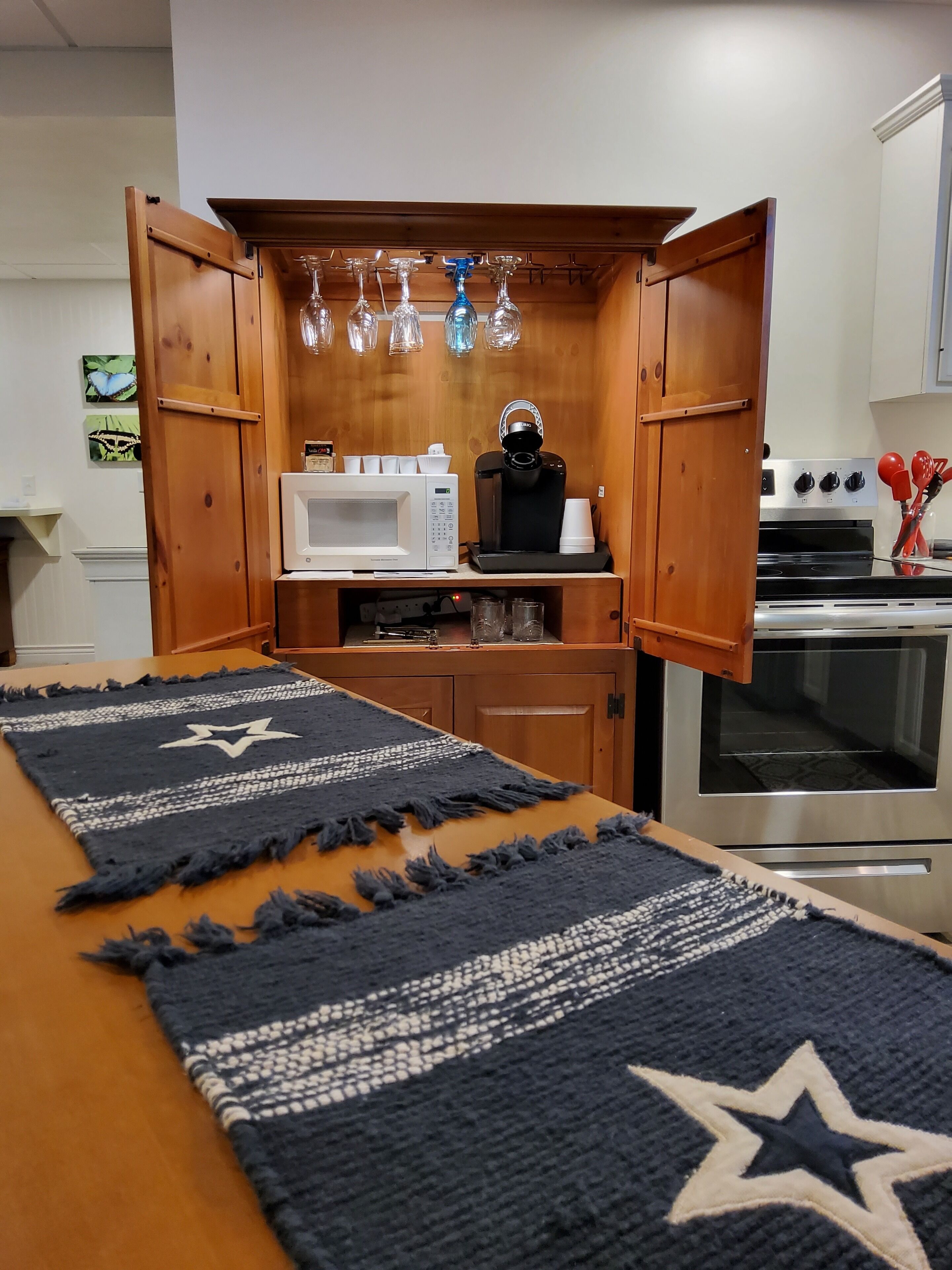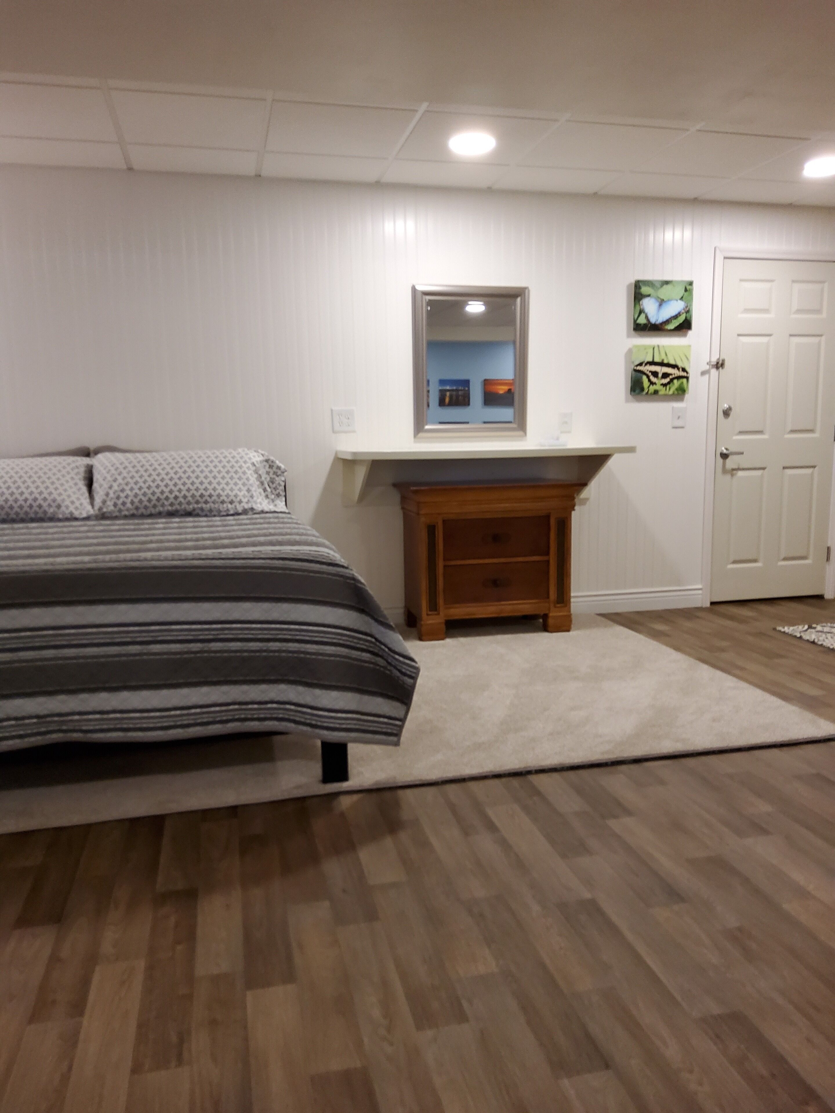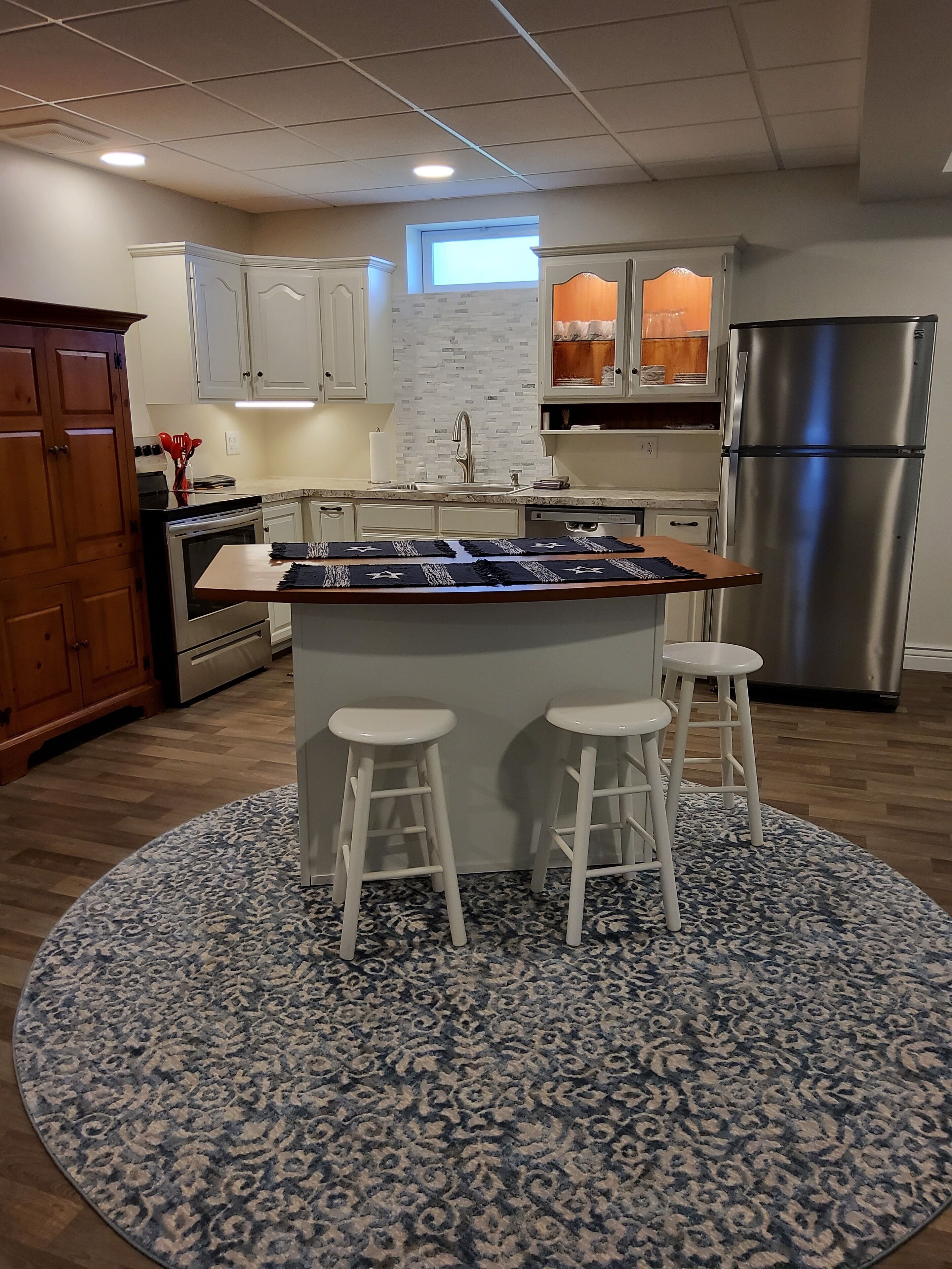Open- Concept Design Studio- great getaway with so much room to spread out Easy access to Rt 28 expressway/restaurants and shopping. golf courses nearby - Birdsfoot, River Forest, Brackenridge Heights, Saxon/ all within 10-15 min. drive! Reach downtown Pittsburgh and surrounding suburbs within 35 min on Rt 28 expressway with no traffic lights on the way! Local Starbucks is within a mile in Sarver/ walking and cycling on rails to trails/movie theater/ speedway/kayaking/ fishing in Buffalo Creek and Allegheny River. Offstreet driveway parking for 2 vehicles in shared driveway. Studio is halfway above ground with private access/ 8 stairsteps down. Keyless entry/ Weber gas grill on 350 square foot deck/ access deck from stairs and lawn/walk up 4 steps. 4 outdoor rockers, 4 chairs, 2 dining tables. Get popcorn ready/watch movies provided or Netflix/streaming channels/ 6x10 projection screen TV/ Polk surround sound won't disappoint. Sleeps 4, king bed, queen air mattress/ pullout sofabed/ 2 recliners and fireplace round out the livingroom area. A designated workspace included. Washer, dryer, a drop zone at the door with bench, a large walk-in closet, and full length mirror. New King size memory foam bed right next to the cozy fireplace /heat feature/mood lighting. Clothes dresser with mirror and counter. Ceiling and walls soundproofed/ Fully equipped kitchen has icemaker/ new stainless steel appliances/easy access pullouts and turntables. Instant pot and Keurig coffeemaker with coffee and tea included/wineglasses and more. cooking tools and essentials provided/ Welcome basket of snacks and bottled water awaits you!