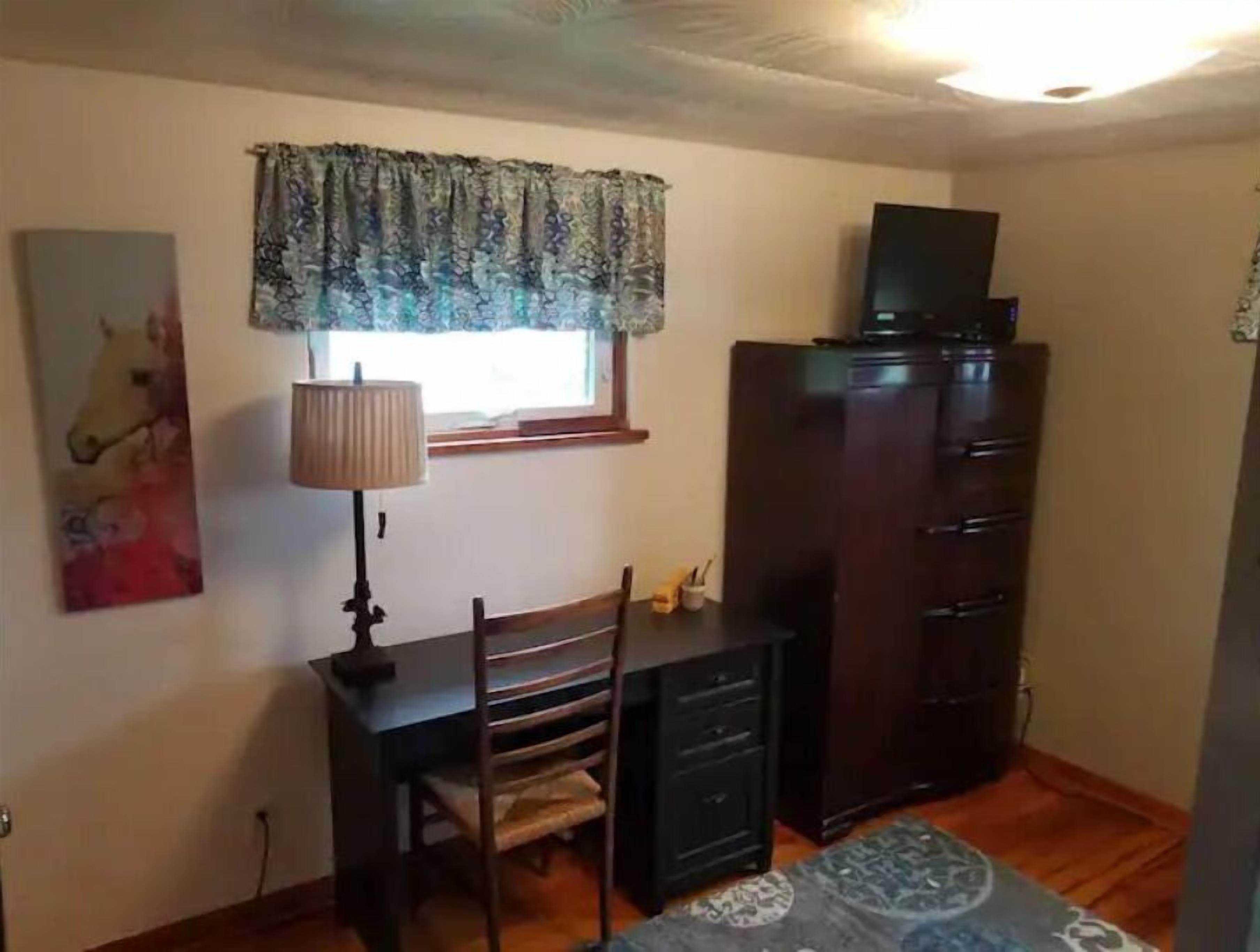 SaxonyView Take a break from the hustle and bustle of city life or wherever else you may be visiting from and come stay in our beautiful little town of Saxonburg. At our quaint two bedroom, one bathroom course-side apartment that accommodates five comfortably, relaxing on the covered porch and taking in a breath of fresh air is a happily welcomed morning ritual. With our antique style furniture and adorable golf themed décor, your time here will have the warm, inviting feeling of staying with old friends.