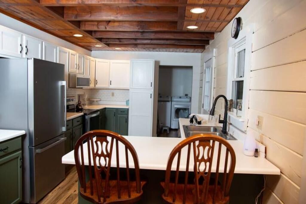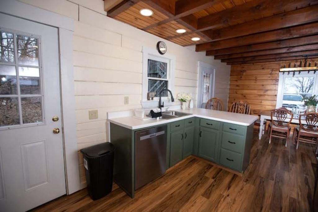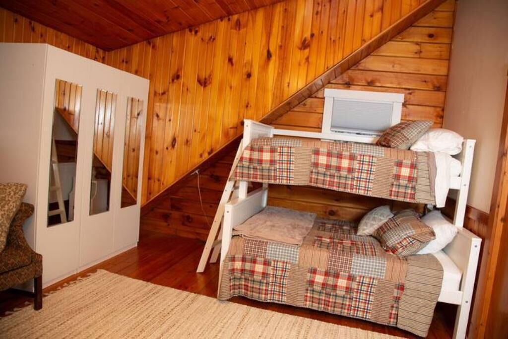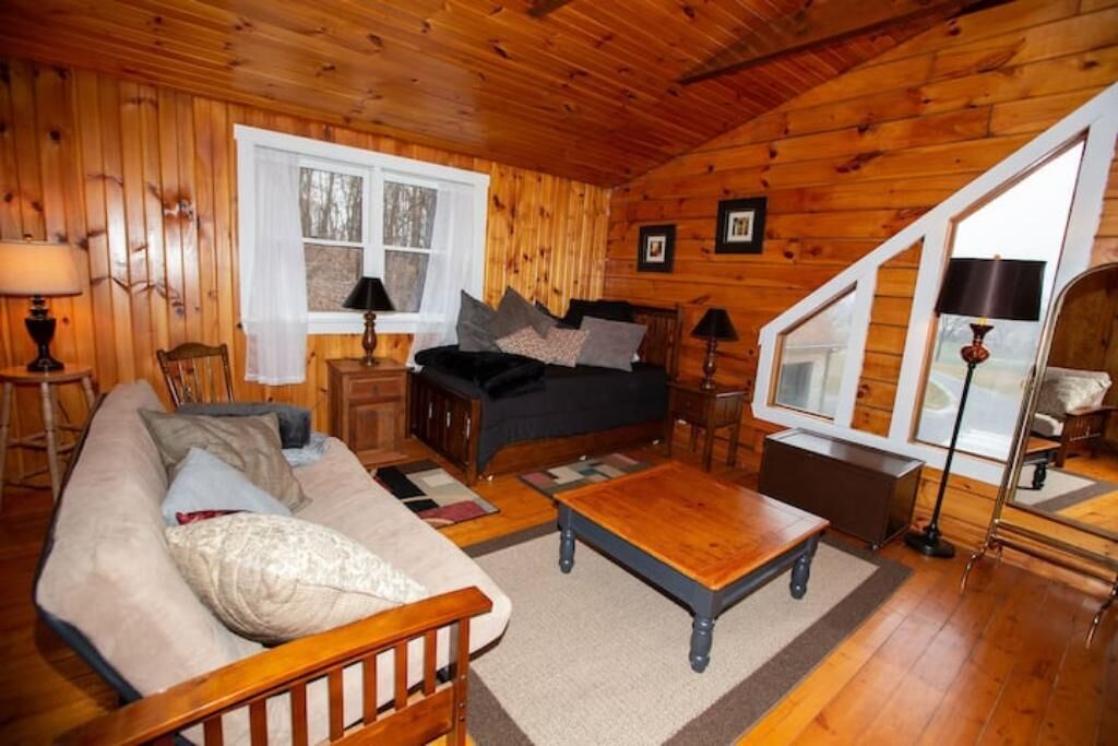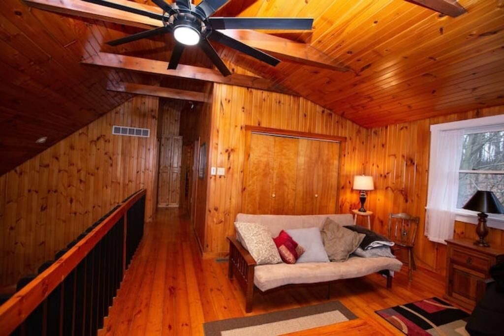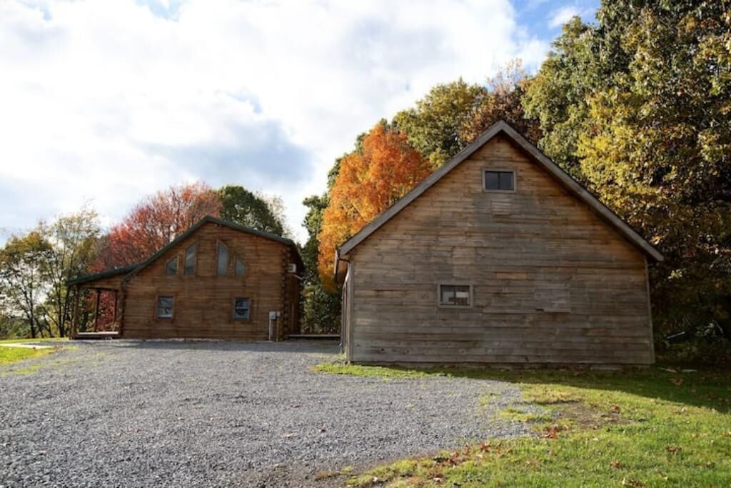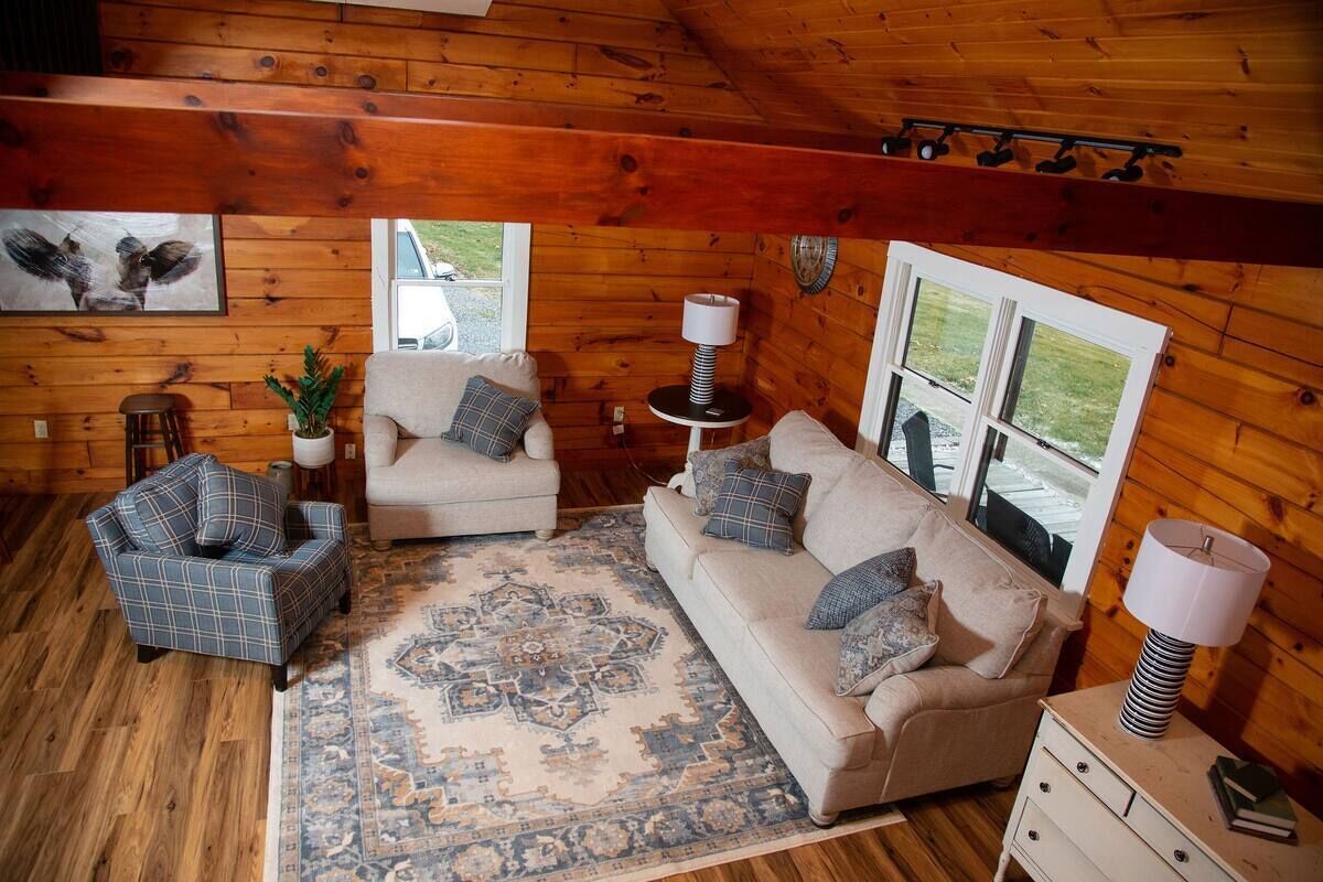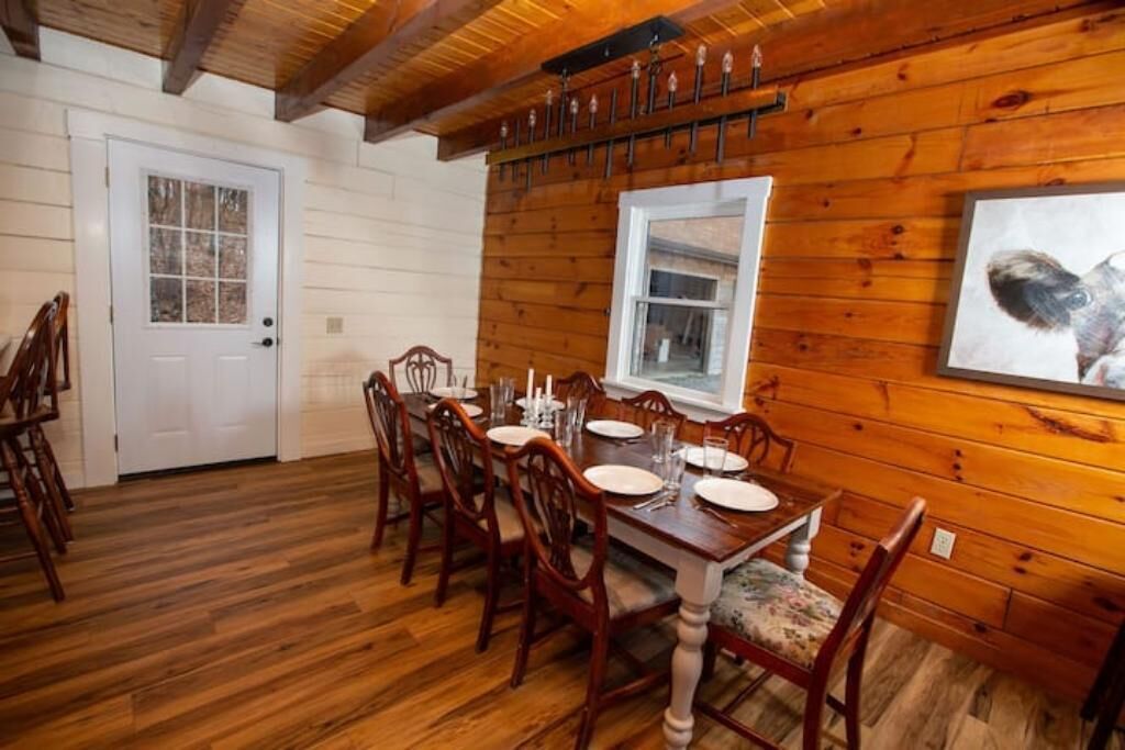 Peaceful log home retreat. Welcome to our peaceful log home nestled on 8 acres of serene beauty overlooking a 200 acre farm. This spacious and family friendly home is a haven for those seeking a tranquil escape accommodating up to 8 guests. Includes large open living room, kitchen and dining areas with a loft that offers more sitting and sleeping areas. Features a beautiful front porch, outdoor seating areas, fire pit and hot tub with amazing star gazing opportunities.