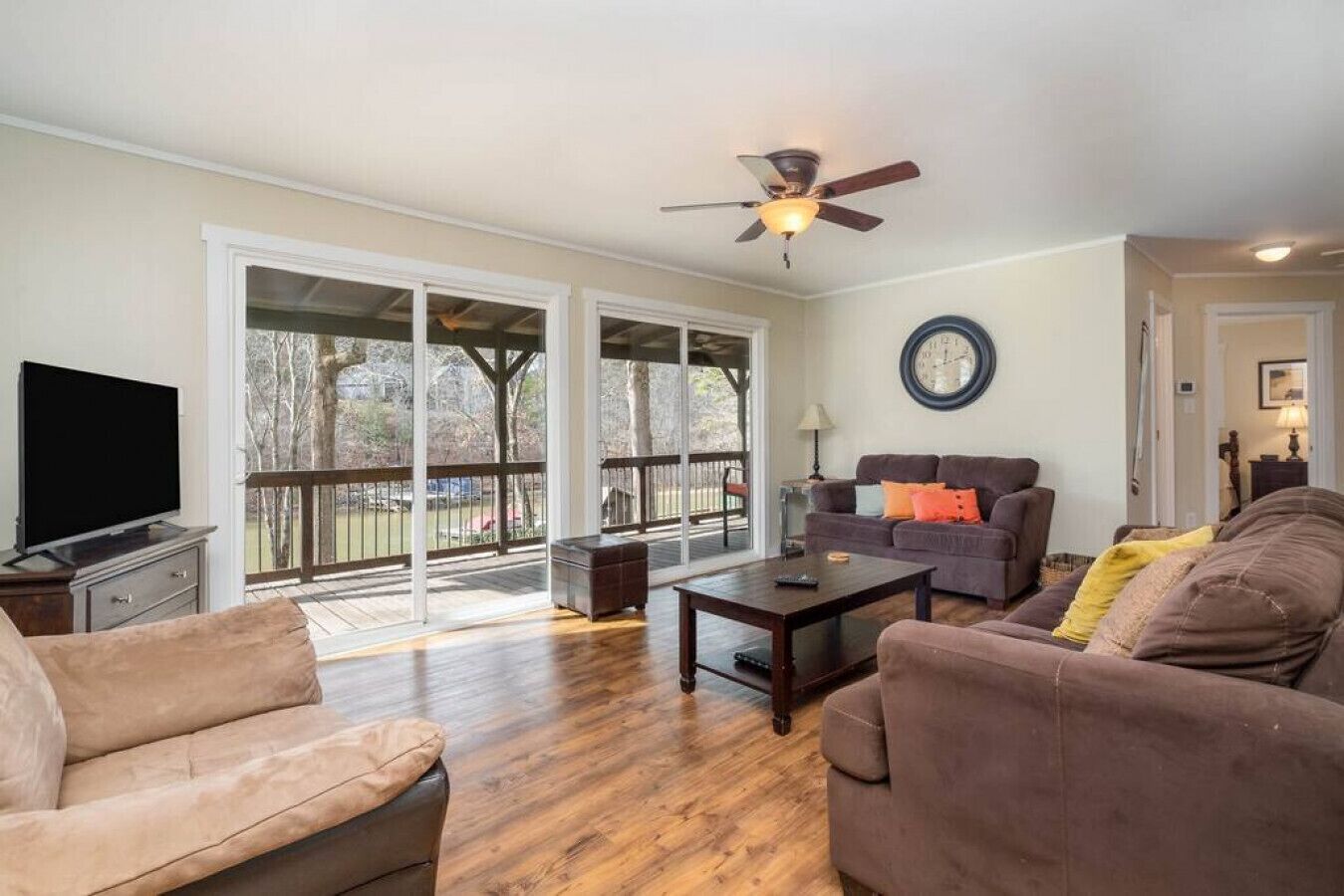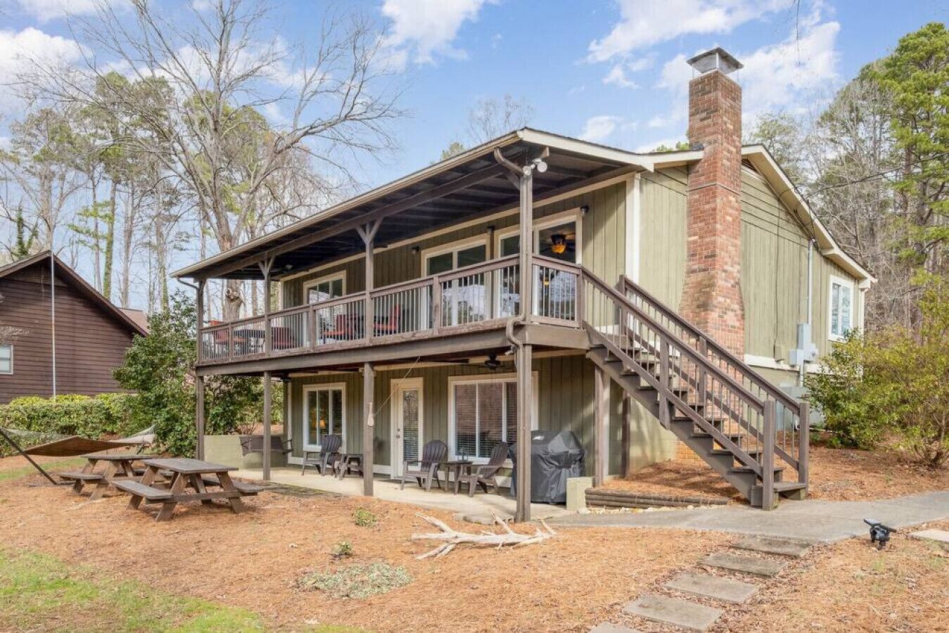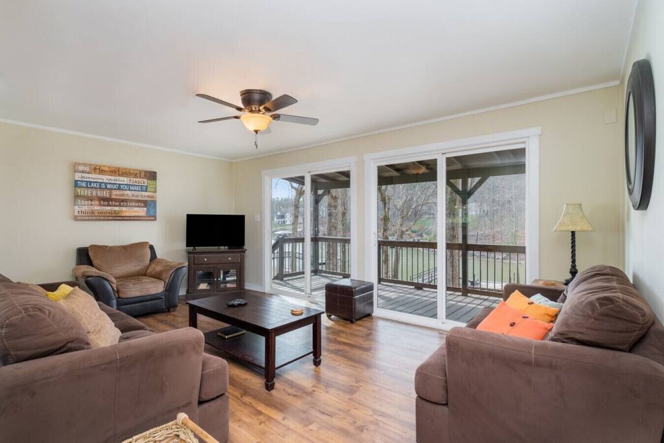 Heron’s Landing – Fire-pit, kayaks, & paddle board This property is under New Management and has been a Vacation Rental for 8 years, we look forward to hosting you!This lakefront home is affectionately named “Heron’s Landing,” as you’re sure to catch glimpses of Blue Heron coming and going throughout the day! Completely renovated with cottage style charm, the entire home is bright and friendly with large windows and comfortable sitting areas.The main floor living room offers a wonderful view of the cove and opens out to a covered porch where you can enjoy coffee in the morning or dinner at sunset. The porch also gives you a bird's eye view of the wildlife on the lake including ducks, geese, osprey, blue heron, and water turtles. Almost every room in the house overlooks the lake – this includes two of the three bedrooms, both living areas, and the kitchen. The spacious TV room downstairs is the perfect place for kids to hang out when they're not in the water and leads out to a covered patio with chairs and a cozy porch swing. The downstairs bedroom offers a great view of the lake and a bit of privacy from the other bedrooms. The laundry room (with a full-size washer and drier) is also on the downstairs level.Located on a quiet secluded cove, the home is only a few hundred feet from the main channel. With limited water traffic, the cove is the perfect place for swimming, kayaking, and paddle boarding. Two kayaks and a paddleboard are always available for guest use. The oversized dock is great for lounging, fishing, playing, and tieing up your boat. A swim ladder provides easy access in and out of the water. Corn hole boards and a hook-ring-toss game are also provided. For some “alone time” escape to the hammock for a nap or retreat to the porch swing with a good book – both in the shade and both overlooking the lake. In the evening after a fun day on the lake, gather around the fire pit, and enjoy the stars! In addition to the home’s many amenities, Lake Norman State Park is less than two miles away. The park offers 36 miles of a mountain bike and hiking trails, a public boat ramp, and a shallow wading area with a sandy beach for small children. You can also rent pedal boats and canoes at the park.“Heron's Landing” is just a short drive to area shopping and a quick boat ride to popular waterfront restaurants and attractions. You’ll also want to try a few quaint Troutman restaurants while you’re here.**Please note we do require property damage insurance for the home, you are able to purchase this directly with Airbnb or you can pay $80.00, and we will purchase it on your behalf. Please let us know if you have any questions or concerns regarding this as we are happy to help. Included in your rental:*Paddle Board*Kayaks*Corn Hole*Life Vests *Propane for the Grill*Starter roll of toilet paper and paper towels *Two hair dryers*Ironing Board and Iron*Linens (on-site when you arrive)*Towels (on-site when you arrive)* Beach Towels (on-site when you arrive) *Baby gate to the stairs for safety*Baby High Chair*Baby bed Pack n' Play*Starter amount of toilet paper, paper towels, laundry detergent, dishwashing liquid, and trash bags.**Please note that the property fee is to purchase incidental insurance on your behalf.Terms and Conditions• You must be 25 years of age or older to book a reservation, please note that some properties require a minimum age of 30.• We do not offer properties as event venues. Properties are available for lodging accommodations. The use of the house for any activity other than lodging could be grounds for expedited eviction or other legal action. Seek approval before you book. The cancellation policy applies to booked reservations that are canceled by the property manager due to the inappropriateness of intended use.• This total document discloses the full policy regarding how reservations are managed, and what responsibilities you are accepting when you book a property.THIS IS A VACATION RENTAL AGREEMENT UNDER THE NORTH CAROLINA VACATION RENTAL ACT. THE RIGHTS AND OBLIGATIONS OF THE PARTIES TO THIS AGREEMENT ARE DEFINED BY LAW AND INCLUDE UNIQUE PROVISIONS PERMITTING THE DISBURSEMENT OF RENT PRIOR TO TENANCY AND EXPEDITED EVICTION OF TENANTS. YOUR SIGNATURE ON THIS AGREEMENT, PAYMENT OF MONEY, OR TAKING POSSESSION OF THE PROPERTY AFTER RECEIPT OF THE AGREEMENT, IS EVIDENCE OF YOUR ACCEPTANCE OF THE AGREEMENT AND YOUR INTENT TO USE THIS PROPERTY FOR A VACATION RENTAL.1) LIABILITYIvy Property Group, LLC. is a Property Management Company. Ivy Property Group, LLC. (Hereinafter the agent) is a real estate agency which brokers short term vacation rental contracts between clients (property owners) and customers (vacation renters). The properties are private homes, condominium units, cottages, and cabins. When you book a property, you enter a real-estate contract with the property owner. Neither the agent nor the owner is responsible or liable for any loss of the renter`s personal property or bodily injury or damage of any nature from any cause to the renter (including his guests, licensees, or invitees). The agent is not responsible for lake conditions, insects, rodents, flies, or other pests, weather conditions, road conditions, power outages, acts of God, criminal activities, economic downturns, political changes, or any other activity, event or condition beyond its control.2) CHARGESAll reservations require a payment of at least fifty percent (50%) of the reservation total (including the Security Deposit) for confirmation. The balance of the reservation shall be due upon the due date disclosed in the cancellation policy notice on the property page. Reservations made within the final balance due date must be paid in full and charged with a credit card (Visa, MasterCard, American Express or Discover). Your reservation becomes a guaranteed reservation upon monies paid on your account that complies with the reservation requirement and final balance