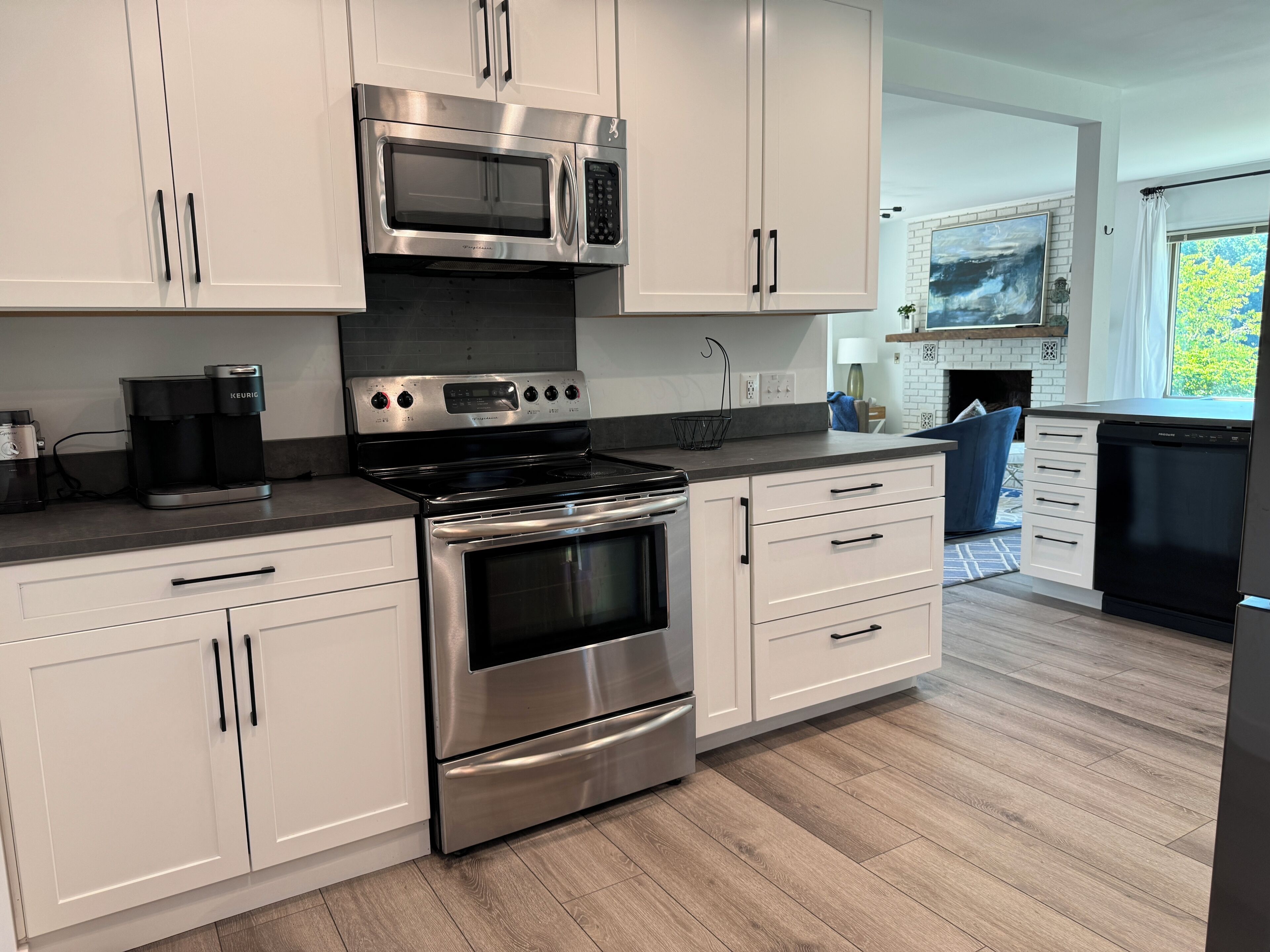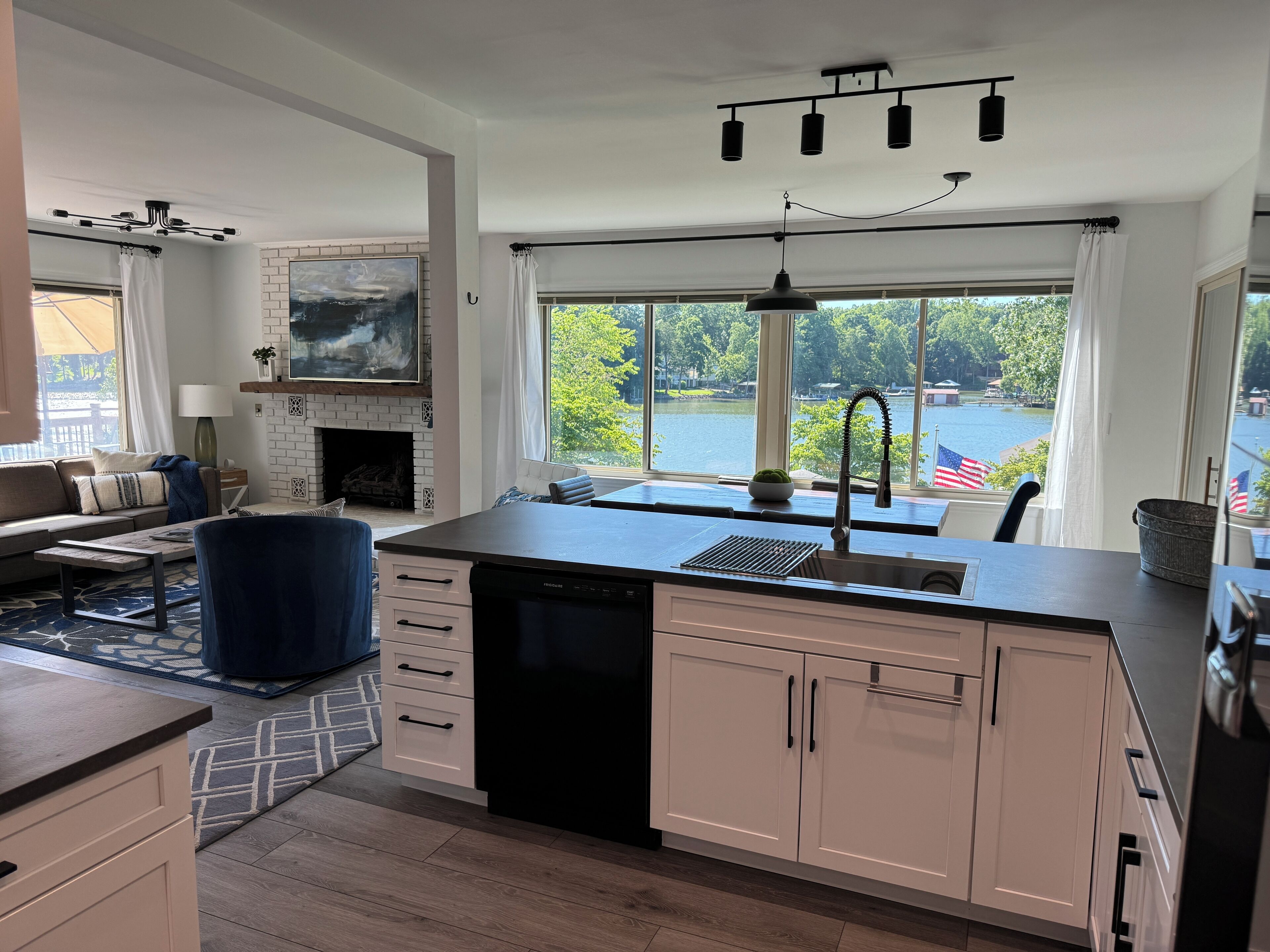COOPER'S POINT. Lakefront w/dock, kayaks, paddle boards Welcome to Cooper's Point! Gorgeous water views, a private dock, boardwalk, and gently sloped yard all border a petit cove and sandy beach. We invite you to stay, play, and unwind in this comfortably casual 2600+ sq ft lakefront home set on 2+ acres in Troutman.The Main level features a nicely-equipped kitchen with walk-in pantry & coun...