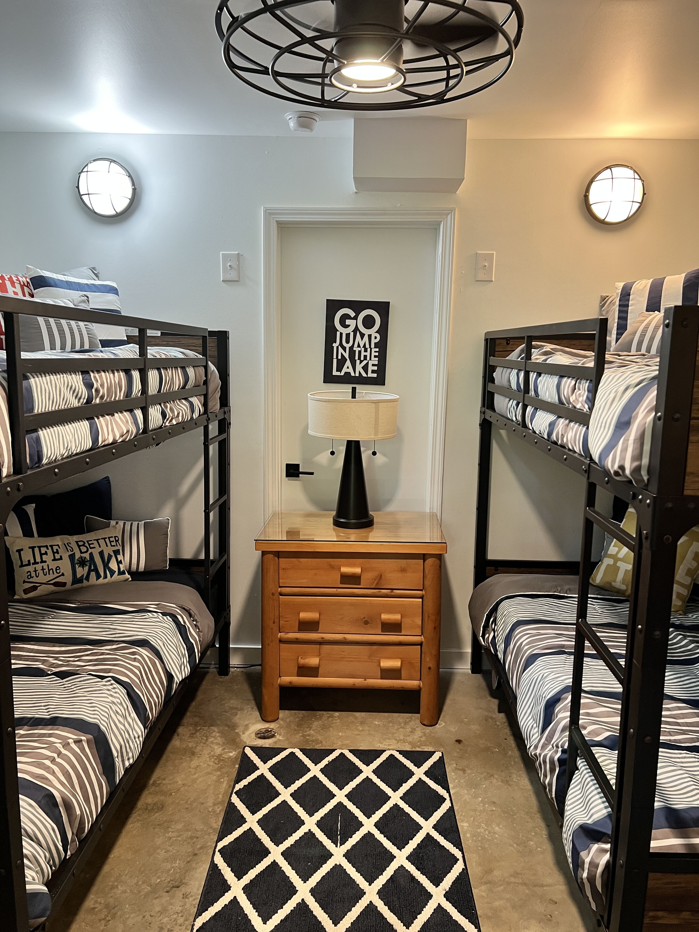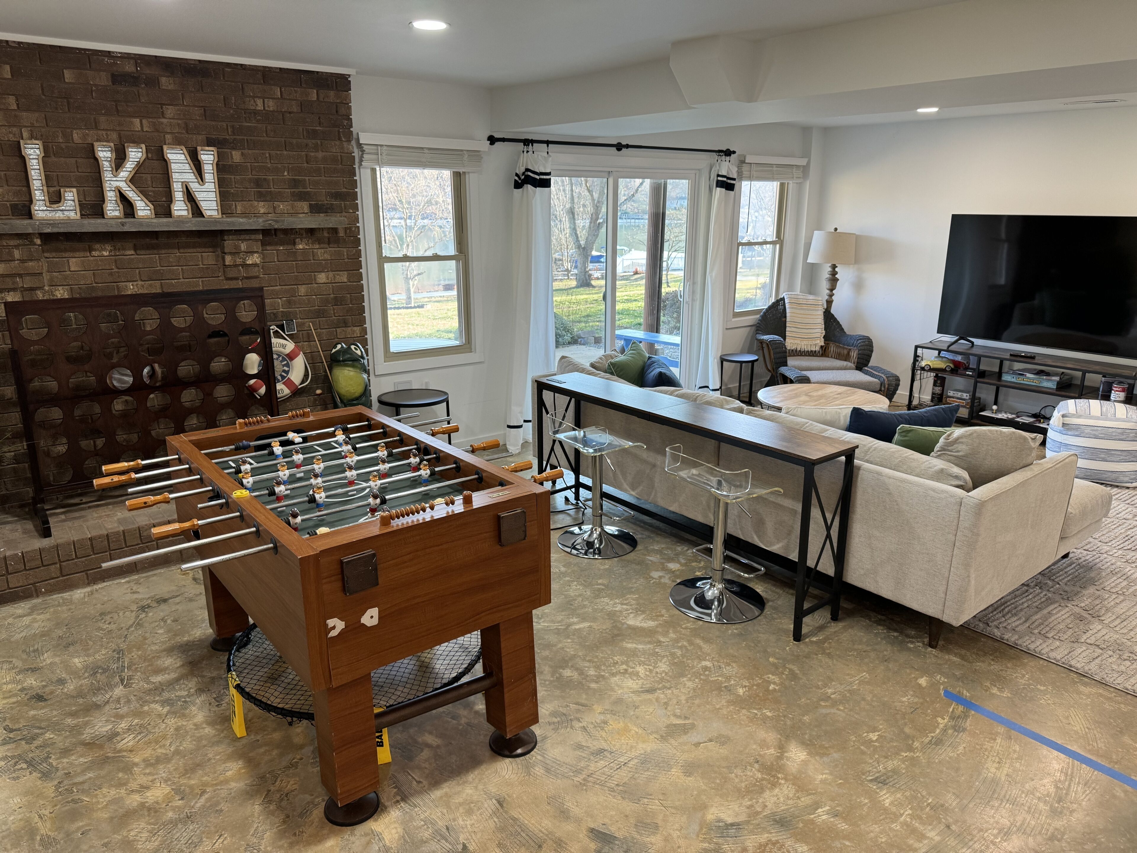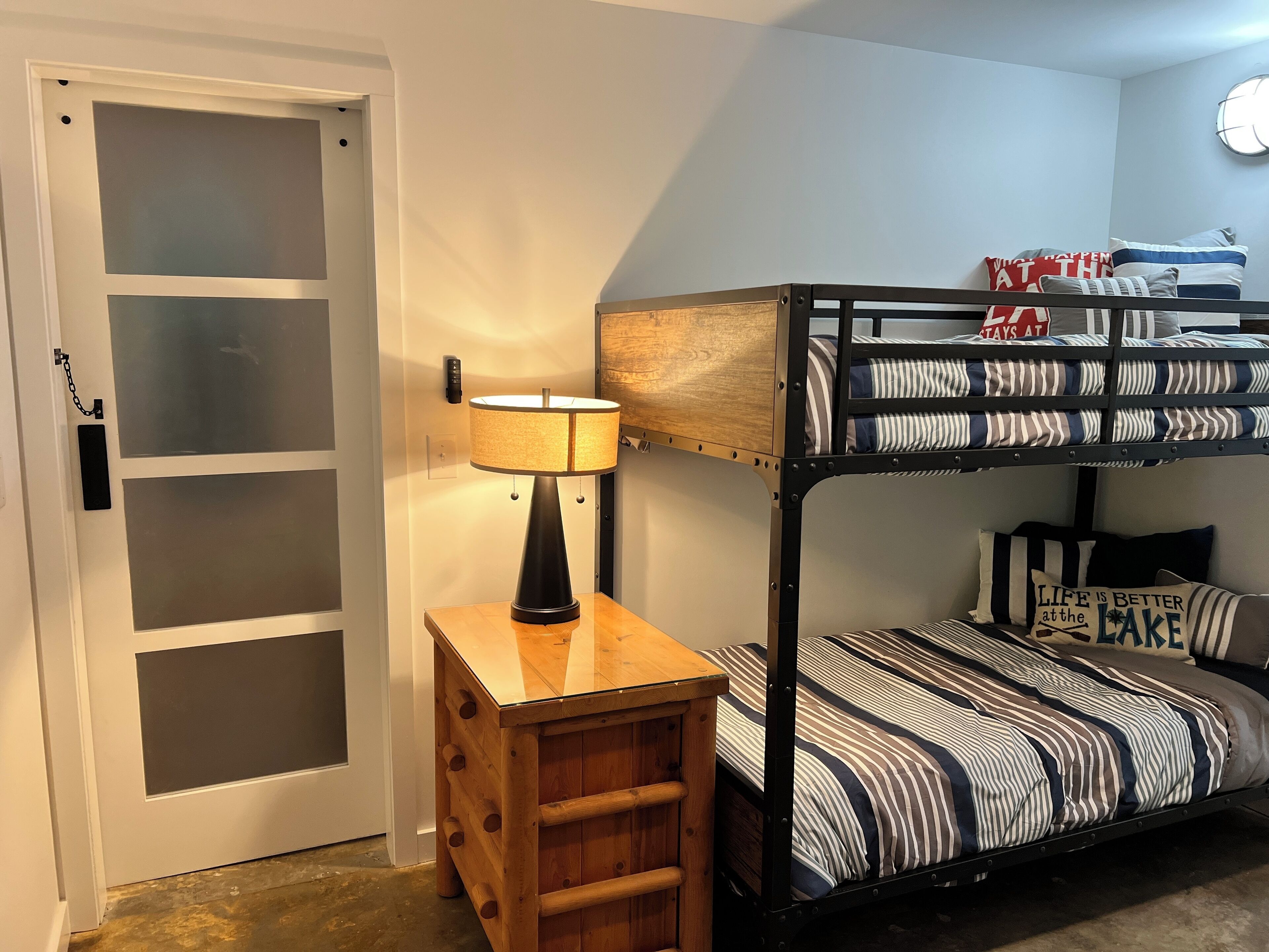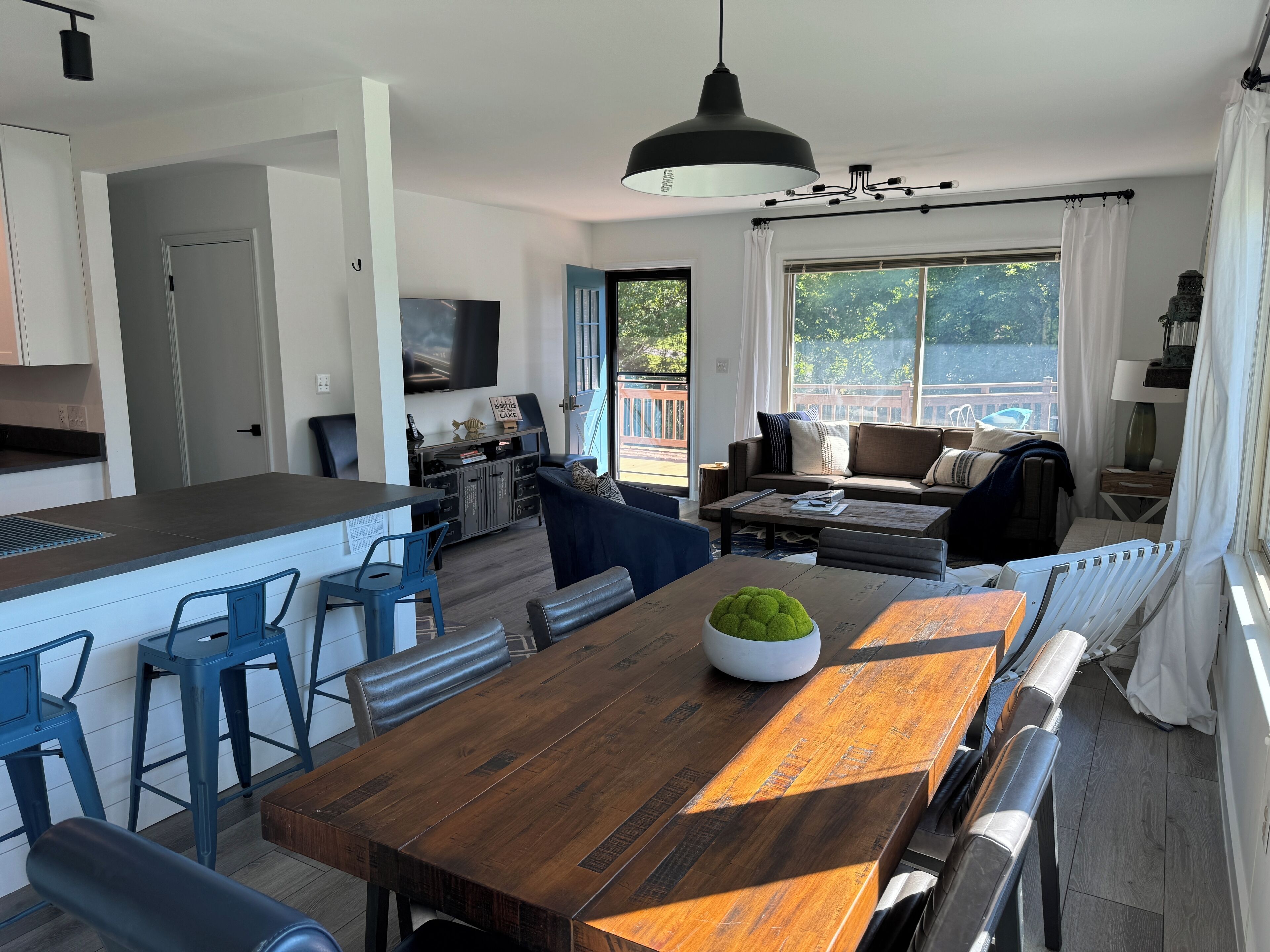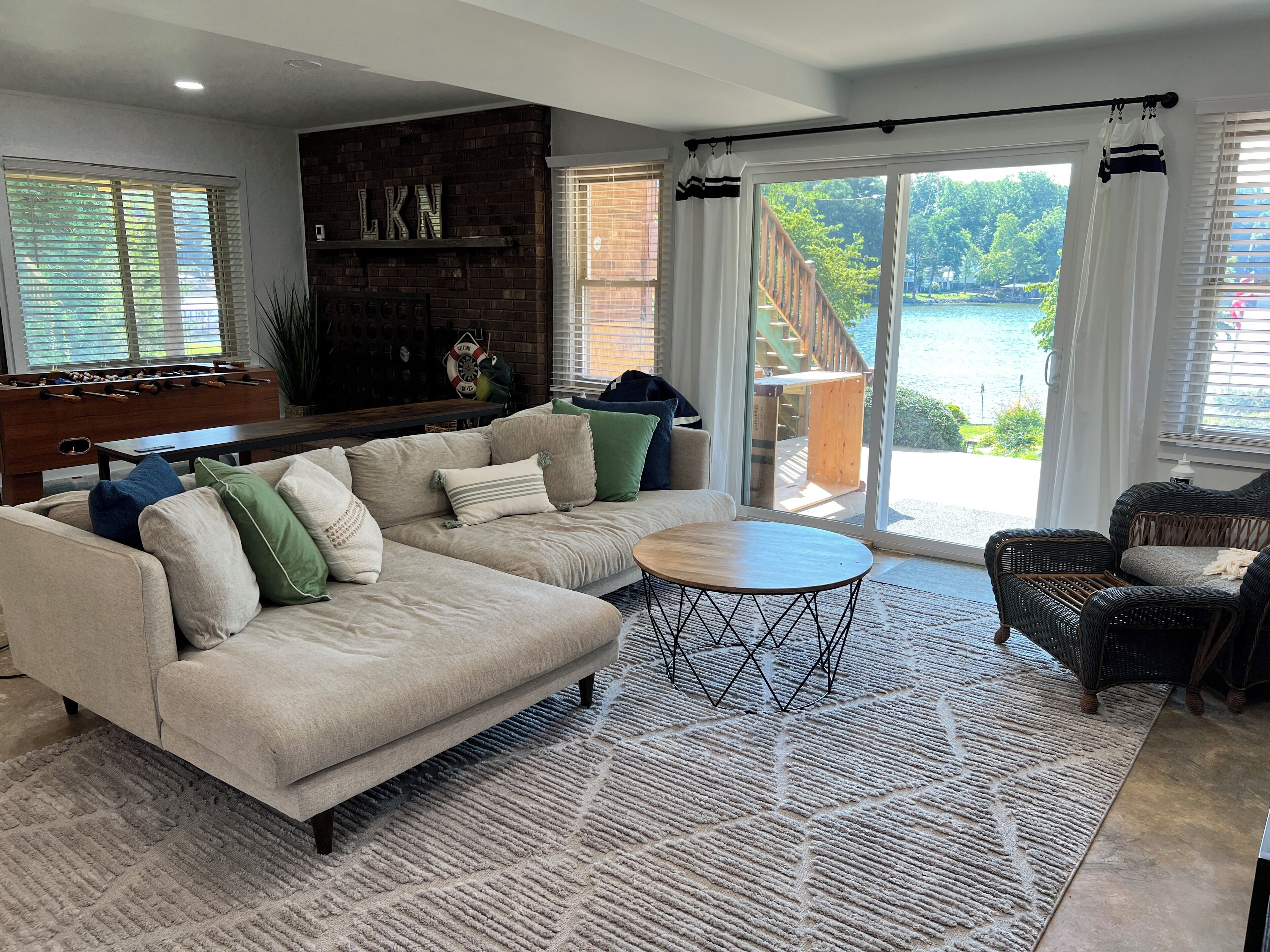 COOPER'S POINT. Lakefront w/dock, kayaks, paddle boards Welcome to Cooper's Point! Gorgeous water views, a private dock, boardwalk, and gently sloped yard all border a petit cove and sandy beach. We invite you to stay, play, and unwind in this comfortably casual 2600+ sq ft lakefront home set on 2+ acres in Troutman.The Main level features a nicely-equipped kitchen with walk-in pantry & counter seating for 4, a living room with 55" TV, dining table for 6+, and sunroom—all with expansive lake views; laundry/mudroom, 2 decks overlooking the lake, plus 2 generously sized Ensuite bedrooms, and an additional Queen bedroom and full Hall bath. The awning covered rear-deck offers seating for 12+ at (3) tables, plus a propane grill and freestanding cooler.The walk-out lake level offers a Rec room with 75" TV, Fooz ball, darts, Ms. Pac-Man, puzzles & board games, and a kitchenette with microwave, coffee maker, and apartment size refrigerator. The lower level bedroom has a queen bed , and an adjoining door into the bunk room with double twin bunks. For flexibility & privacy, the adjoining frosted glass, barn-style door can be closed & latched, and the bunk room can be accessed through the back hallway. A full bath with double vanity is directly accessed from both the Queen bedroom and rec room. Relax in the hammock or on the large decks and watch the boats go to & from Skipper's Landing--Safe Harbor Marina just down the cove. Get out on the water in one of our (3) kayaks, (2) paddle boards, or canoe. If "Beaching It" is more what you had in mind, we offer chairs & umbrella, noodles & floats, plus various water & sand toys for kids of all ages. The large yard is perfect for a rousing game of volleyball and badminton, or opt for a slower pace with Shuffleboard, croquet, or cornhole. Bring your bikes or go for a hike on the 30+ miles of trails at Lake Norman State Park, just a 5 min drive down State Park Rd. Grab a pole--we have 3 adult + 2 child rods--and try your hand at catching bass, brem, or catfish! Enjoy outdoor meals on the awning-covered rear deck, with adjacent gas-grill station, or check out local restaurants & tap-houses and shopping in Troutman (8 min) or Mooresville (15 min). Conveniently located just 12 minutes off 77, the house is easily accessible to Charlotte International Airport (45 mins), and Greensboro/Winston-Salem (60 mins) while also just 15 mins to local activities like Daveste Vinyards, JR Motorsports, bowling and billiards. Up for venturing a little further? A quick 45 min drive and you're in downtown Charlotte for a visit to the NASCAR Hall of Fame, Charlotte Motor Speedway, or the US National Whitewater Center; an hour south-east to Midland if you'd like to pan for gold at the Reed Gold mine; 90 minutes west to fly through the trees on the Alpine Roller Coaster in Banner Elk--just a few of our favorites!The popular Chickadee Hill Farm wedding venue in Troutman is minutes away, and Carrigan Farms in Mooresville is about a 25 drive.Don't see availability for your preferred dates, need an early or late check-in/check-out, or have a special request? Please email us! No large groups of guests, parties, or events are permitted without prior authorization, so if you would like to plan a Birthday party, Anniversary, or other celebration PLEASE reach out---we will do our best to accommodate you! We also encourage Guests to purchase Travel Insurance, as many book months in advance, and unforeseen circumstances may adversely affect vacation plans within our No-Cancellation window, and we do not offer refunds.There are motion-activated flood-lights to illuminate multiple exterior staircases & the lower driveway/parking area, solar-powered lights on some paths & steps, and decorative string lights on the boathouse & back deck. Parking for a maximum of 5 cars (dependent upon vehicle size) in designated areas, but no parking or driving on the grass by motor vehicles of any kind is permitted, nor do we allow Campers or RVs. The indoor fireplace is not for Guest use.Water depth and clarity in-and-around the docks & boathouse--as well as the depth of sand and overall size & cleanliness of the adjacent beach--fluctuate with the water level of the lake, weather conditions, and beach erosion, which we can not control. Flotation devices, inflatable floats, water toys, and boats are provided for recreational purposes only and will not prevent a person from drowning. Water and wildlife hazards may be present, but not visible, in and around the lake. There are no lifeguards, and it is the Renter's responsibility to ensure the safety of everyone in their group. The boathouse has tie-up space (boat lift is strictly off-limits) for max of 2 watercraft, dependent upon size and type. We require advance notice to prep the dock, for licensed boaters to dock here, and an additional Security Deposit. We love our community and are committed to being good neighbors:-- Occupancy & Capacity limits are strictly enforced. Additional Daily, Cleaning, Parking, and Administrative Fees may be assessed for exceeding those limits, starting at $400 per day.--No speakers or radios are provided, and we ask that use of such devices be kept at minimal volume. Violation of local noise ordinances may be subject to fines that are the Renter's responsibility.--We are a smoke-free property. No smoking, vaping, or lit products of any kind (including candles) is permitted on the property at any time. Violation of this policy will result in eviction, forfeiture of any security deposit, a $500 smoking fee, PLUS liability for any fire or property damage costs, including professional cleaning to remove odors. --Pets are not permitted in our home, and undisclosed pets anywhere on the property will result in an additional Cleaning & Administrative fees, a minimum $500 per pet Fee, and eviction with loss of all monies paid.--Authorized vehicles are permitted on gravel driveway surfaces ONLY. Government issued photo ID, and Review + A