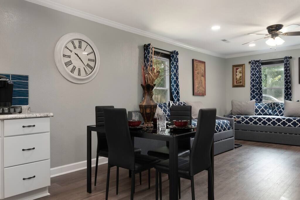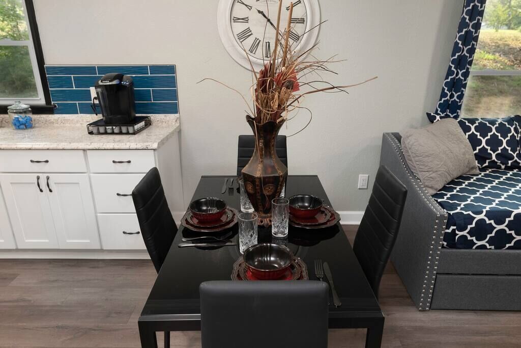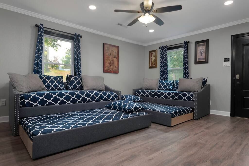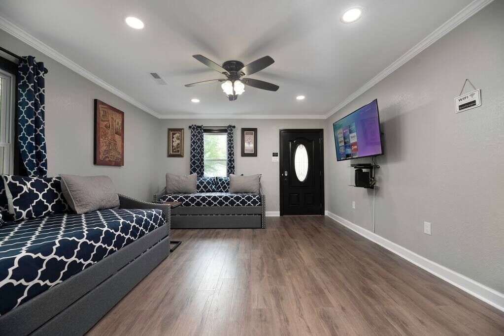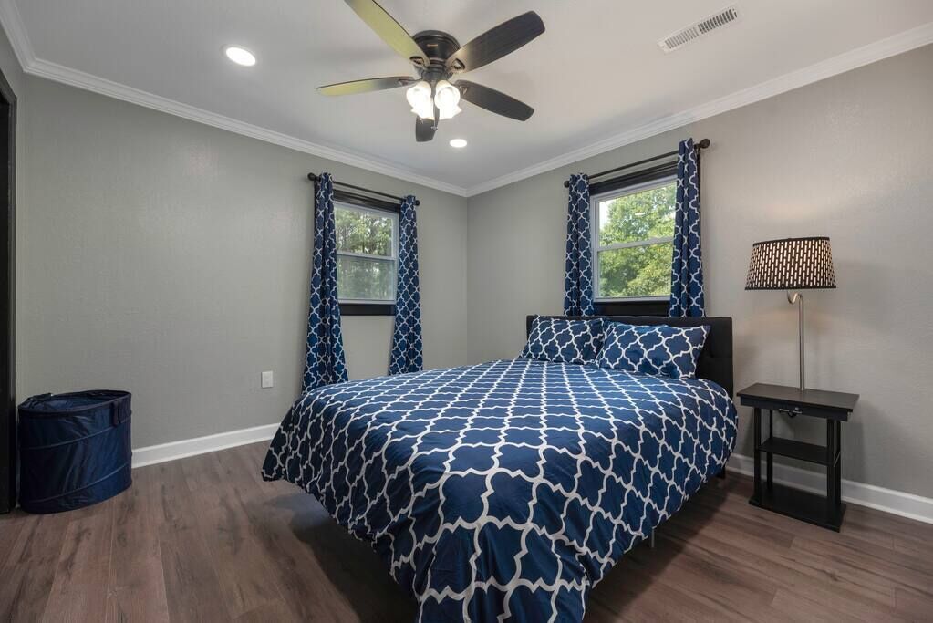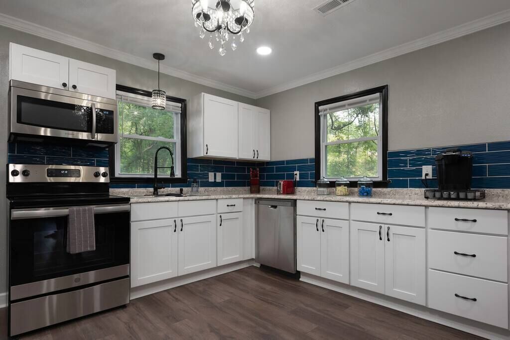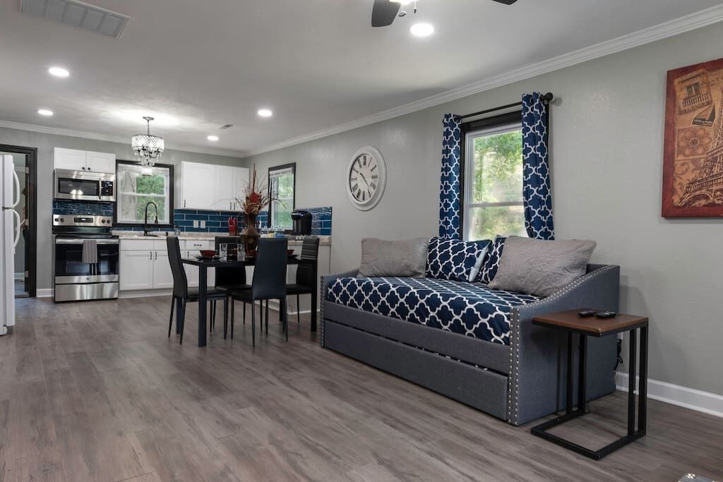 High End Pond Chalet in Country & But Near Shops Summary:Newly renovated home with luxury amenities located in the center of Troutman but secluded in woods. House has been fully renovated w/ new flooring, cabinets, beds & more. We pride ourselves in using very comfortable beds, pillows, sheets & towels. We stock home w/ as many luxuries as possible to blow away any hotel. 2 Roku TV's, 6 beds (2 queen & 4 twin beds) that sleep 8. Washer/Dryer, fully stocked kitchen (full size fridge) 200 mb internet. Small stocked pond next door available for fishing!The Space:Close to everything but at the end of the road with woods. Rocking chair on front porch.Guest Access:Parking for up to 4 cars (2 on asphalt, 2 on gravel). We also own house with lake next to so large vehicles can be parked on property. Just ask for directions. Ring security camera is located at entrance door for safety. No cameras inside anywhere. The Neighborhood:Close to Downtown Troutman with many wonderful local restaurants and more. Walgreens, ABC store and much more are within walking distance.Getting Around:Driveway can fit 4 cars if needed. Great access to downtown Troutman and minutes from Mooresville, Statesville. Charlotte Douglas airport is 45 minutes south. Close to Lake Norman State Park.Other Things to Note:15 minutes from Lake Norman, small 1/2 acre pond on property available for fishing that's stocked with bluegill, bass & crappie. Close to downtown Troutman and 15 minutes from Mooresville and Statesville.Interaction with Guests:We have 3 host that are here to help answer any questions.