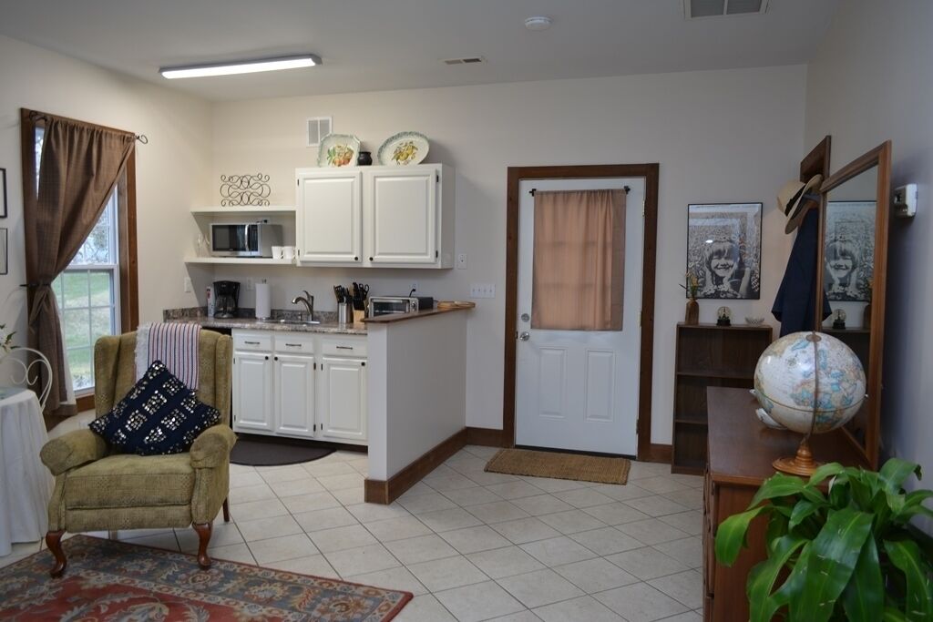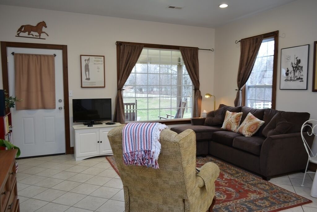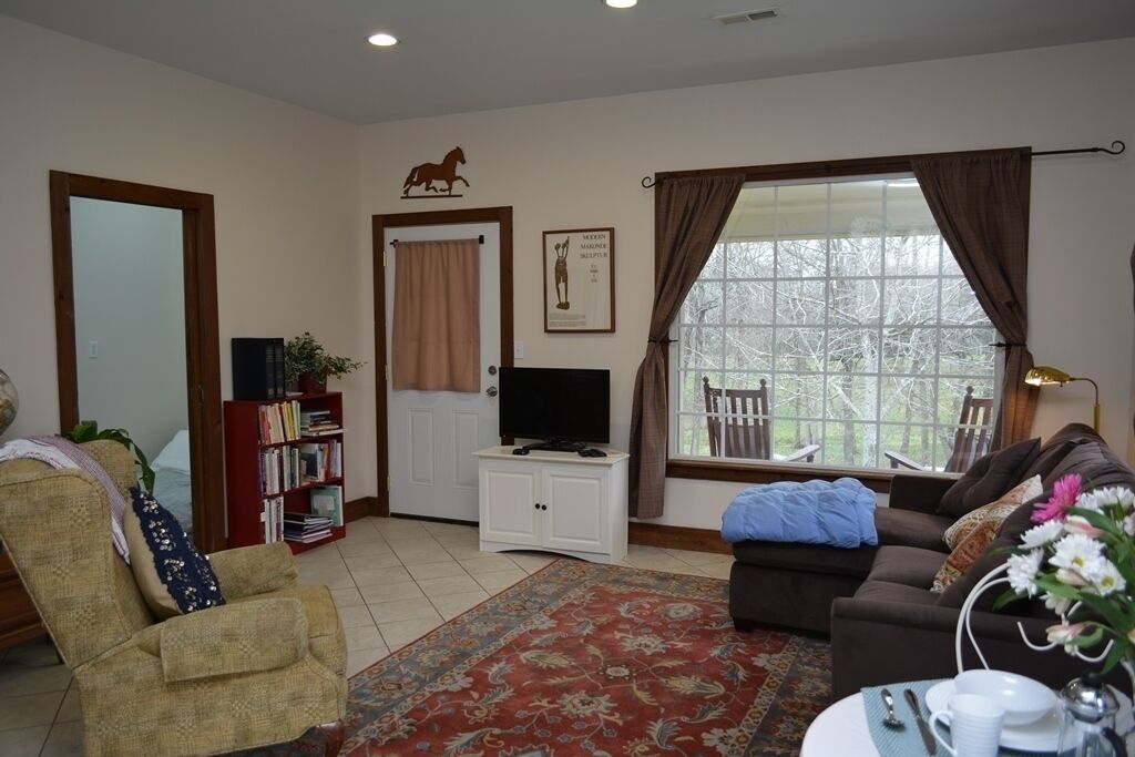 Rest & Relaxation Need rest, relaxation, and renewal? This studio cottage is the perfect get away for an individual or couple looking for quiet time to recharge in a peaceful country setting. This 15 acre horse farm (Flying Change Farm) is meticulously cared for and fully enjoyed by its owners and 3 beautiful horses. It is the desire of the owners to share their "dream come true" property in hopes that it will offer their guests renewal and a much needed respite from their hectic lives!This studio cottage is completely furnished and includes the following amenities: • Very comfortable La-Z-Boy queen sleeper sofa (accommodates 2)• Full-size bed• La-Z-Boy Queen Ann recliner• Updated kitchenette with under counter stainless steel refrigerator, microwave, toaster oven, slow cooker, hot plate, and coffee maker• Bistro table for dining• Separate bathroom with shower and pedestal sink• All linens - 400-count all-cotton sheets and towels• GE 3.8 cu ft top load washer and 6.8 cu ft dryer• 32” LED TV w/ 1080 p and HDMI inputs, Roku (Netflix, etc.) and DVD player• WiFi• Outdoor propane grill• Parking for 2 vehiclesGet back in touch with nature by taking in views of the horse pastures while sitting on the private rocking chair porch. Take a stroll around the property, enjoy an outdoor wine & cheese picnic, and bring your binoculars for bird watching. So, whether you are seeking an intimate get away, a quiet retreat, or a home base for exploring the Lake Norman area, there is something here for you. It is a great place to just BE! Located in Troutman, NC, 45 minutes north of Charlotte, NC and conveniently located just off of Interstate 77. Downtown Troutman is only 6 miles away for shopping, restaurants, and other desired conveniences. Although this property is not lakefront, it is only 20 minutes to Lake Norman State Park, which is 1,934 acres on the northern shores of Lake Norman with miles of hiking and mountain bike trails and a public swimming beach. Want to enjoy a half day or full day of boating on Lake Norman? Rental boats available at a local marina only 8 miles away! It is also only 15 minutes to the lovely Davesté Vineyards where you can enjoy wine-tasting and take in the beautiful views, listen to local music in a relaxed atmosphere, and peruse the art gallery and gift shop.Cottage rental is offered nightly (minimum of 3 nights), weekly, or monthly. This property can accommodate corporate rentals and weekend retreats for small groups.