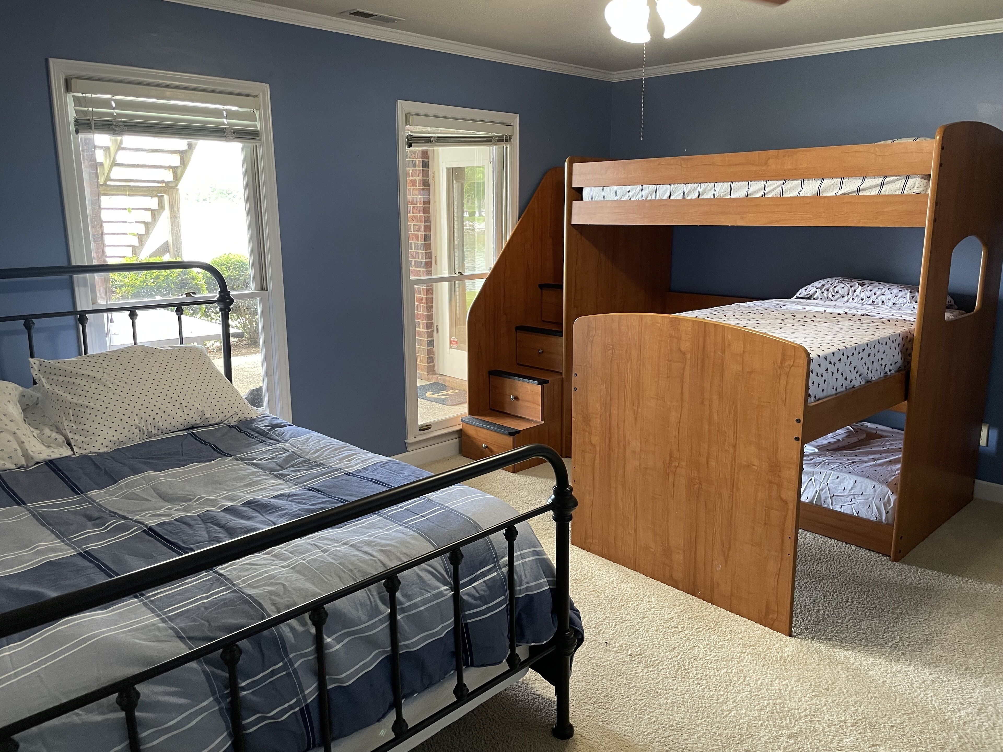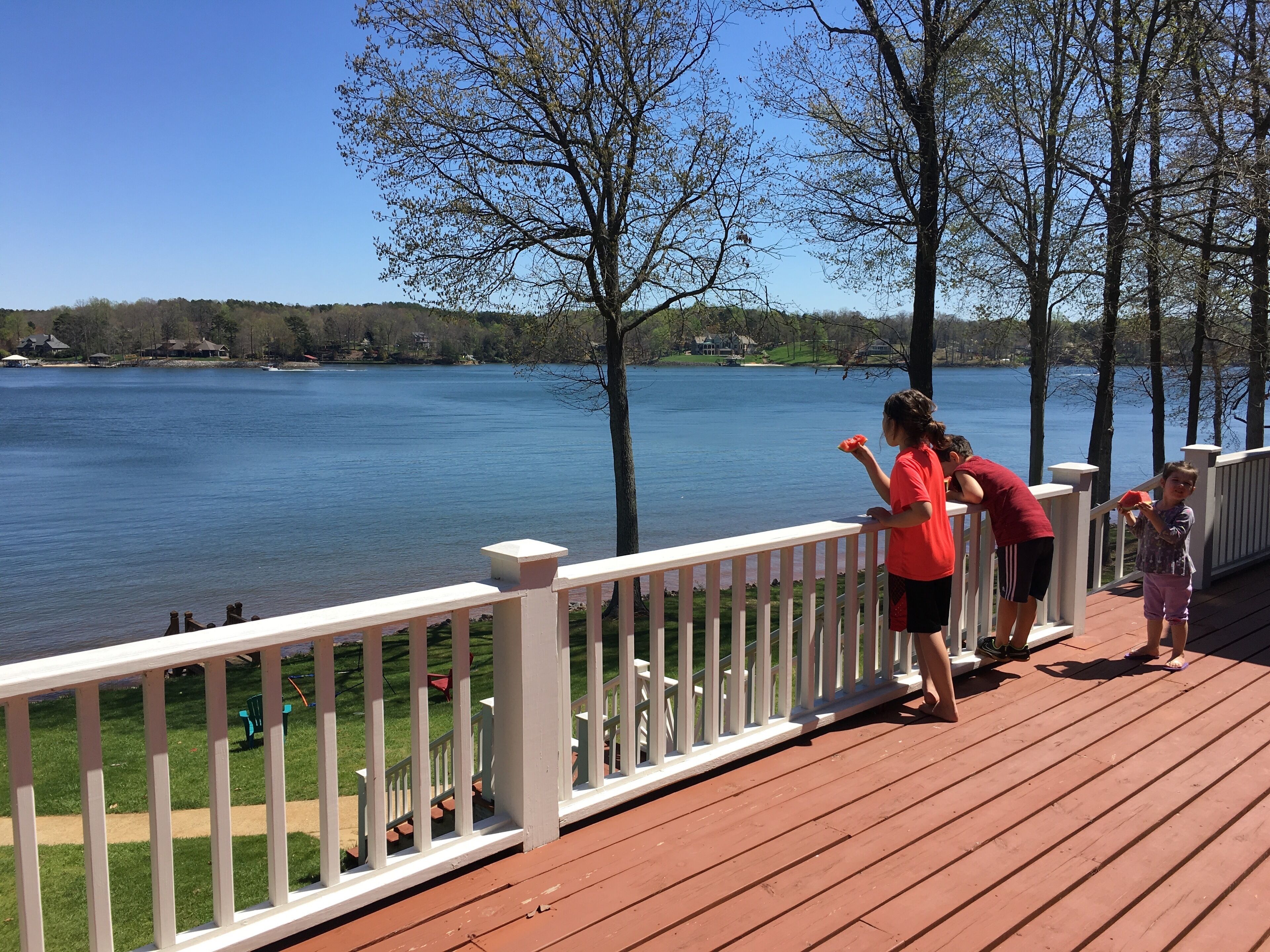Lovely Family Home With Gorgeous Views Welcome to Willow Point Haven! Located on over an acre of land, this beautiful home rests on the pristine Lake Norman with more than 400ft. of shoreline.This charming home is a special family retreat used for having fun, ensuring rest, and making memories to last a lifetime. It is truly a place of refuge!In the shade or in the sun, you will find hammocks, benches, and comfortable seating to enjoy the beautiful nature that abounds across the property. Take a stroll through the grape vineyard, where you will also enjoy seeing--or tasting from--blueberry bushes, as well as an apple tree. The yard is a mixture of woodsy parts, and landscaped parts, each offering areas to sit and take in the gorgeous lake. On the dock or in the water are a multitude of toys to use. We have provided for you a canoe, 2 kayaks and all kinds of floating fun including a few pretty amazing towables that are there to enjoy! Badmitten, volleyball, ride on toys for the little ones and much more awaits you on land. The design of this home was done in a way that it takes advantage of the property. A lake view can be enjoyed from all 4 bedrooms as well as all the living areas. A very delightful and well designed 2 story screened in patio anchors one side of the house. It gives an extremely relaxing area to enjoy the scenery where you can take your choice on rocking chairs, a swinging bench, or a few comfy chairs that fill this charming space. The 4 bedrooms in the home offer a few options in bedding. The upstairs is a master bedroom with a king size bed, en-suite bathroom, and a door leading out to an open 2nd floor deck. There are 3 bedrooms downstairs. The 1st, contains a king size bed, an en-suite bathroom, and a door leading to the 1st floor screened in patio. The 2nd, is very child friendly offering a triple bunkbed and a queen bed, Along with the multitude of beds, this room has an eclectic grouping of toys that will please any younger children. The 3rd has a queen bed. The room has a wonderful abundance of natural light with a beautiful view from the floor to ceiling windows. There is also a door that leads to the downstairs patio with a swinging bench and rocking chair.The game-room allows you to have a wonderful lakeside view while playing on the pool table, game table, or enjoying the arcade game console which features favorites such as Frogger, Galaga, Pacman, and many more. For your wireless needs, high speed wi-fi is available.The bright and beautiful living area has the homes only TV where you can enjoy movies while still having spectacular views through the many windows and doors that fill this space. The TV has basic cable. A DVD player is available for you to utilize. In addition, movies and shows can be streamed via ChromeCast or Apple TV. The living area contains many board games, card games, and interesting books to fill in those relaxing nights after days of lake fun. Outside the living area, kitchen area, and dining area is a roomy deck where meals can be eaten or just relax in the many chairs available. In the morning take in a beautiful sunrise, or spend your evening relaxing, enjoying, and fellowshipping while surrounded with beauty without a bright sunlight blinding you as it sets.The kitchen --fully equipped for your ease of mind-- contains a coffee maker, waffle maker, rice maker, crock pot, blender, gas grill, or just about anything you would need and more. The home also comes stocked with dining ware, as well as a starter set of paper plates, plastic cups, and plastic utensils. Walk out to the lake and relax on the dock where there is seating for a relaxing view along with a covered area for boats. Bring your own boat or if renting a boat is desired, Morning Star Marina is only a 15 minute drive away. We have many life vests ranging from infant to adult. If floating, swimming, or relaxing near the shore is your desire, you will be able to find a lot to pick from. Along with all the toys, try jumping on to or just lounging upon our large inflatable floating dock.From inside to outside, this home was made for lakeside enjoyment and great family fun!Please see our video for some arial shots of the propertyhttp://www.youtube.com/embed/GQweoieqB8M?rel=0