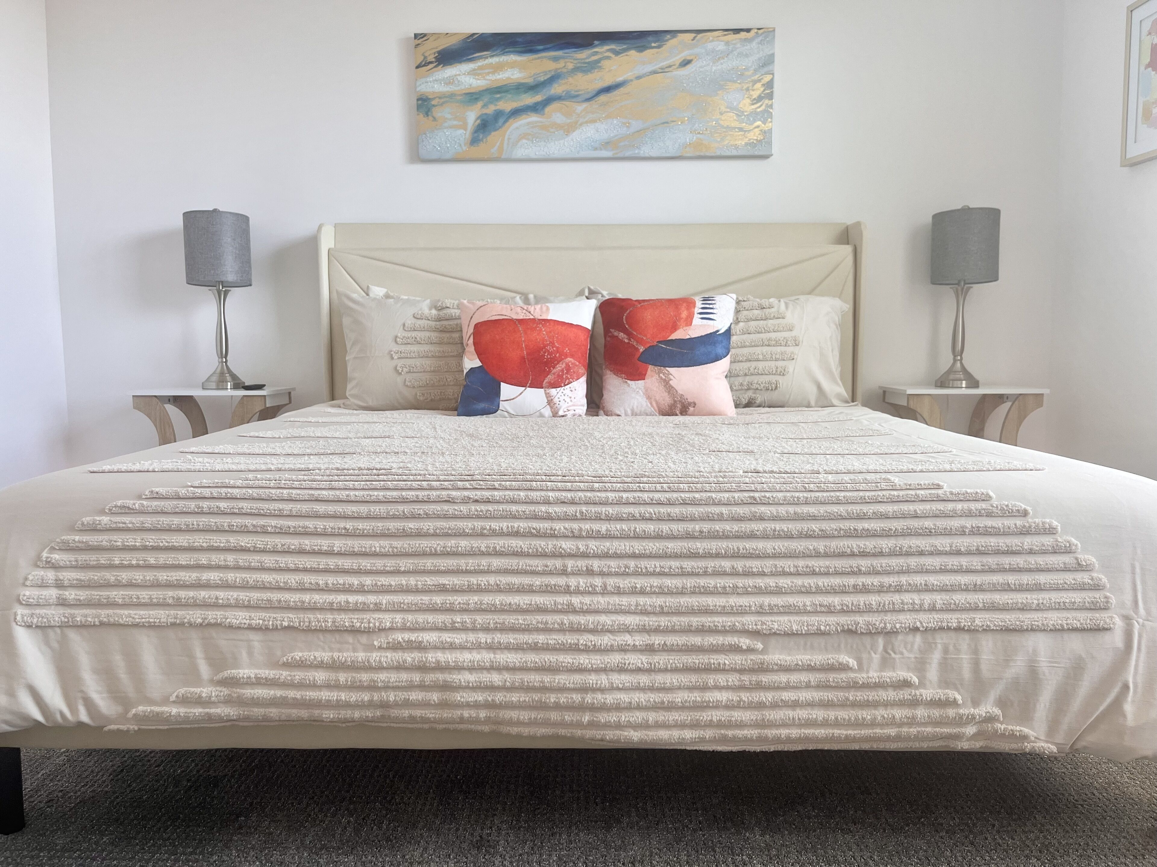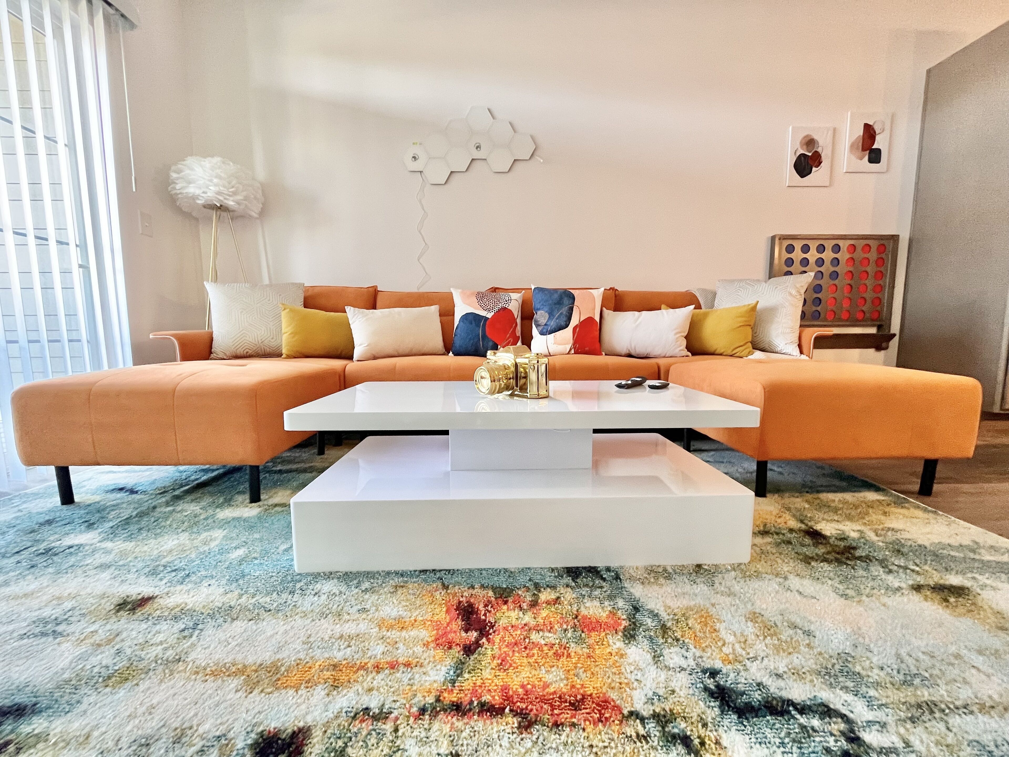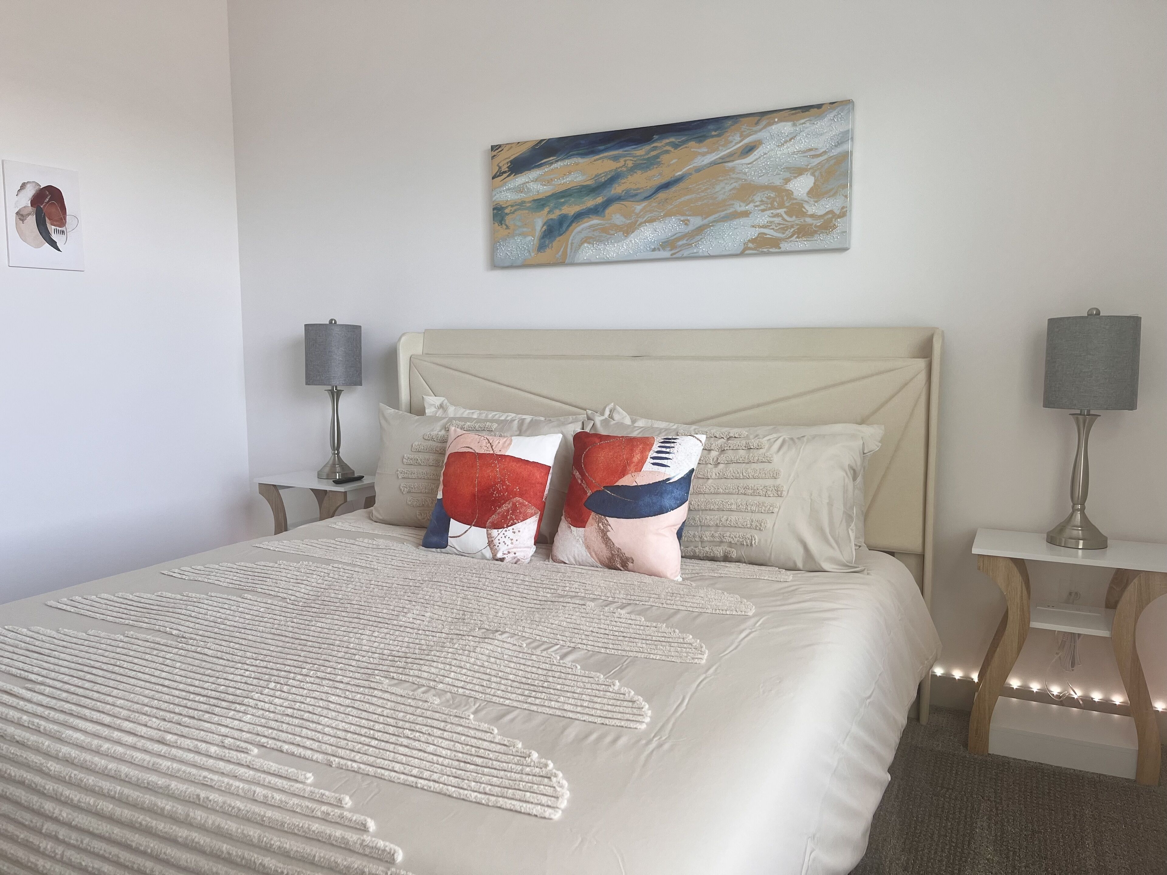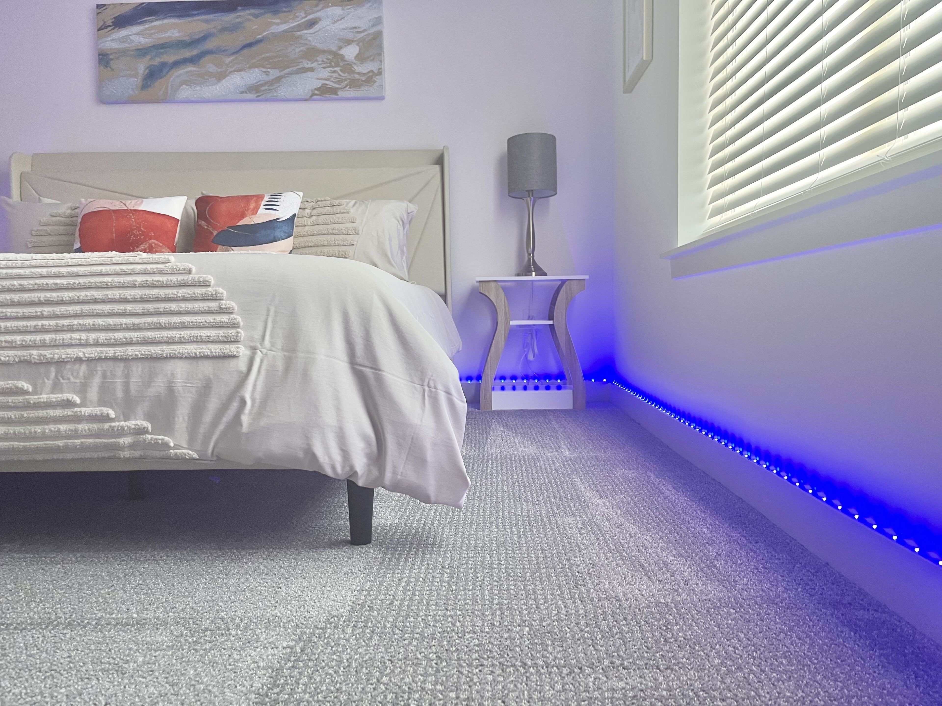 Oliver Capital - Relaxing King Bed Suite This relaxing suite has a comfortable memory foam king bed. Snuggle up and watch your favorite movies or shows on the large 75” TV in the living room. Optional LED lights throughout the living room and bedroom will change to your color of choice. TVs include streaming apps. Just steps from trails and parks, with nearby shopping and restaurants. Easy access...