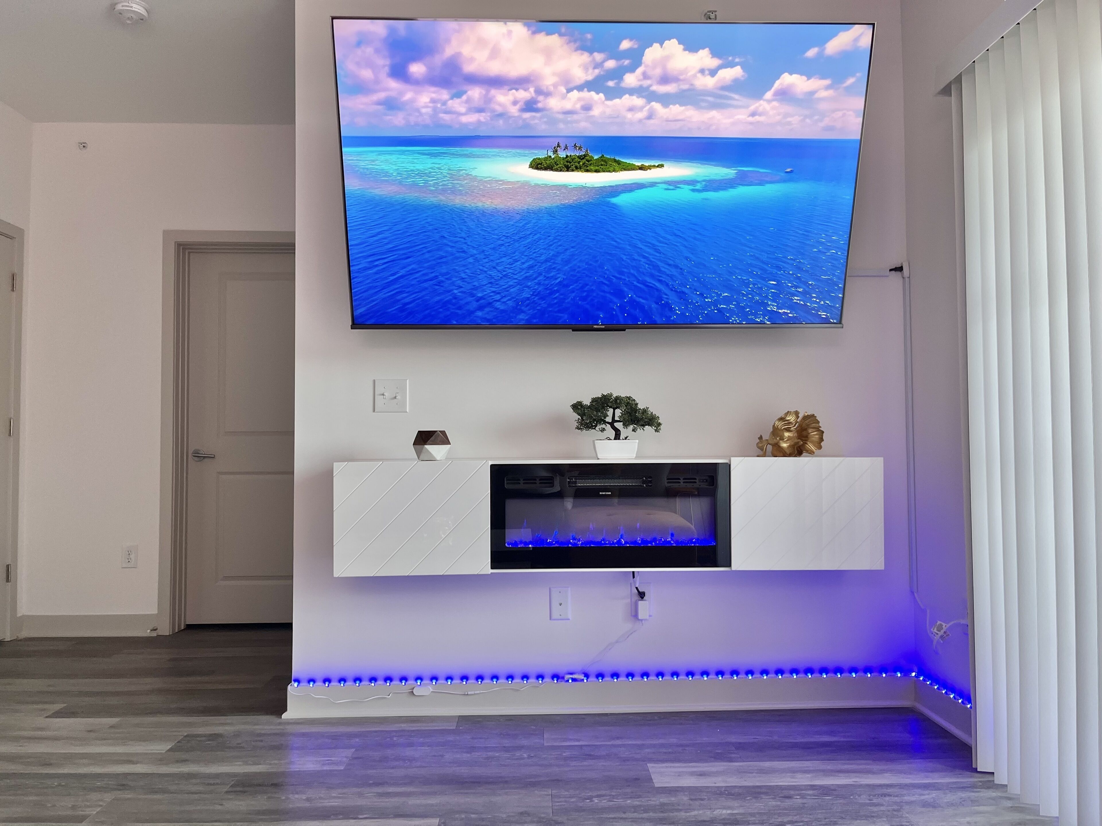 Oliver Capital - Relaxing King Bed Suite This relaxing suite has a comfortable memory foam king bed. Snuggle up and watch your favorite movies or shows on the large 75” TV in the living room. Optional LED lights throughout the living room and bedroom will change to your color of choice. TVs include streaming apps. Just steps from trails and parks, with nearby shopping and restaurants. Easy access to interstate 65 & 465.Free parking, WIFI, snacks, coffee. Pet fee applies. Early check-in/ Late checkout options, Fee applies.