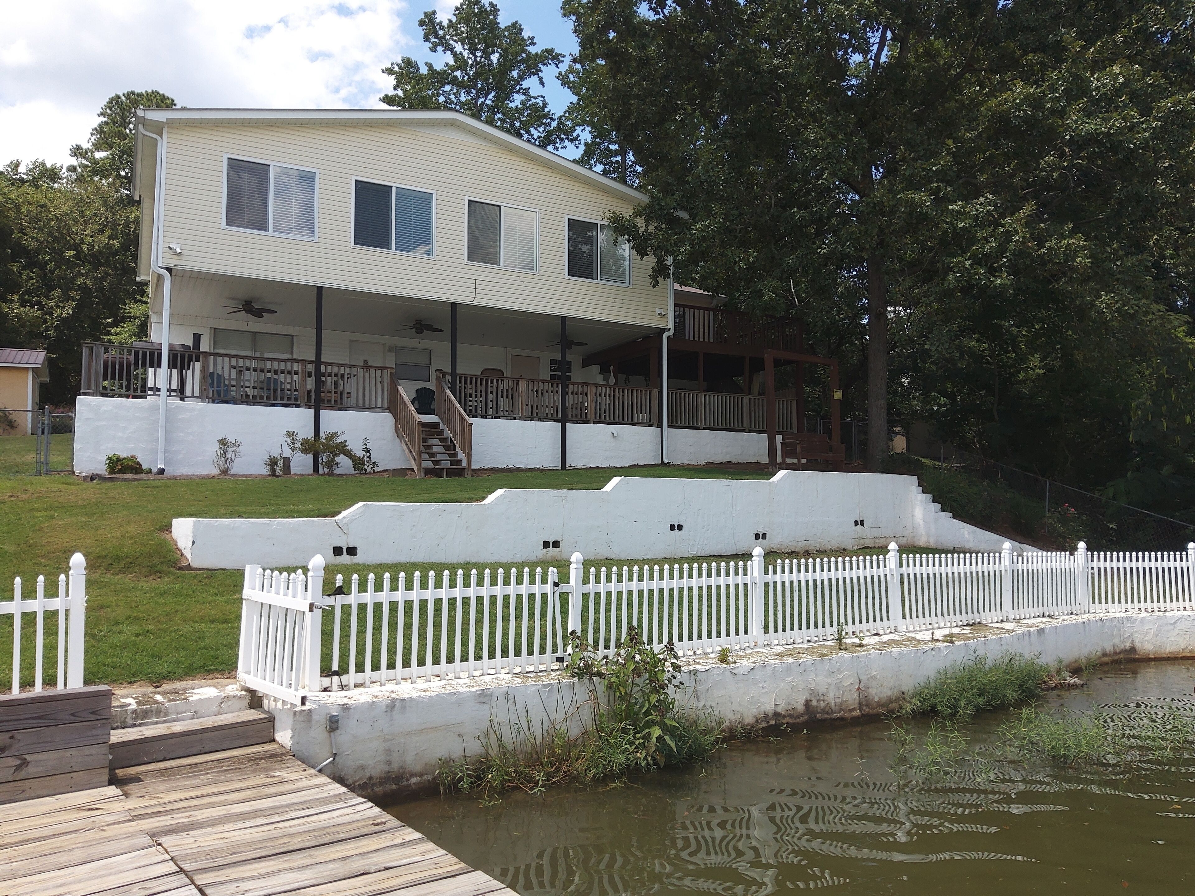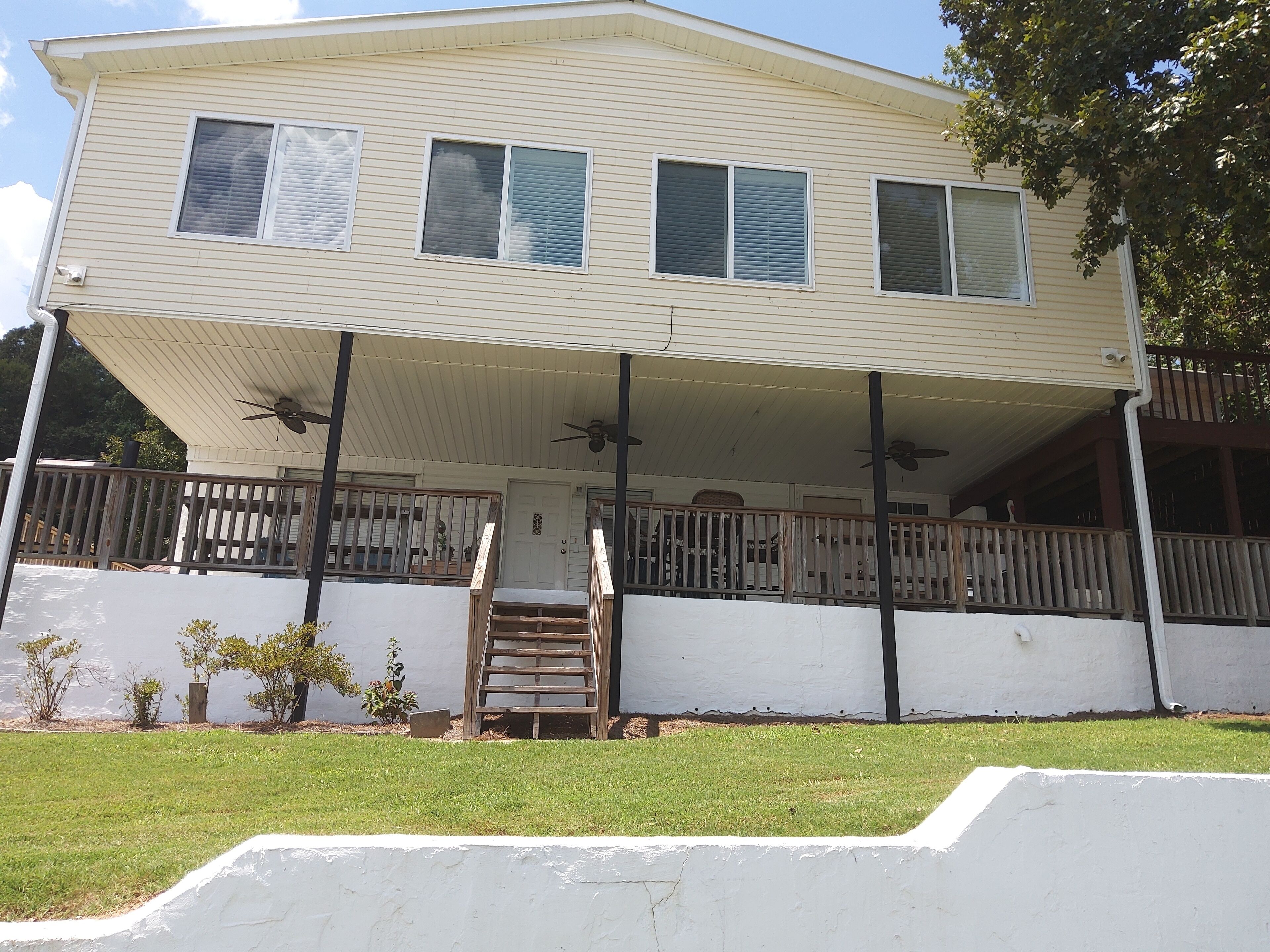 Lake Front Retreat! Sleeps 10 Lake Front Retreat! Quiet cottage Sleeps 10! Shoreline one of the best coves on Lake Logan Martin. Bring the Big Family Two bedrooms master w/Queen bed, 2nd has Full & Two Twin beds. Two Queen sleepers sofas upstairs and Queen sleeper sofa in bsmt. 2 Large living areas with open concept kitchen & dining. Fantastic Panoramic Water Views! Private dock for fishing, green lawn for games, fire pit under the stars, Deep water to tie onto boat ramp. Tons of fish, birds & other wildlife. Close to Restaurants, Bars, Coosa Queen Boat. Please note: Ring cameras are outside front door and outside basement door.
