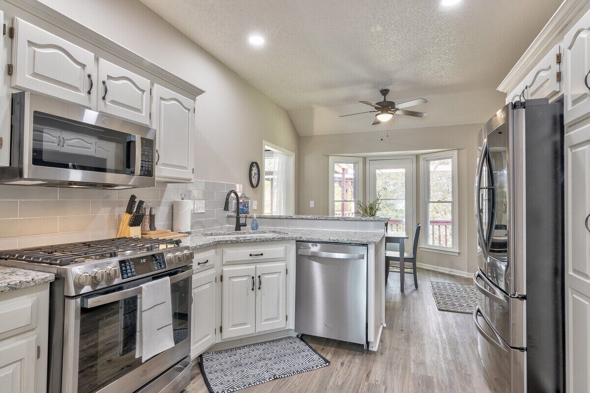 Elegant Sun-filled Home by Bike Trails w/ Balcony! Nestled within the trees overlooking the scenic trails along Line Creek is this elegant, centrally located home with room for the whole family.The home features two levels of modern, open plan living with a fully equipped kitchen, 4 gorgeous bedrooms, a dining room and beautiful outdoor areas with 2 balconies and an elevated decked patio with alfresco dining.Stay just steps from walking & bike trails, a 10 min walk to cafes and restaurants and only a 15 min drive to the heart of Downtown!!!Make your way inside using the easy keyless entry and feel instantly at home with bright, sun-filled rooms elegantly styled and designed with your comfort in mind.Relax on the inviting sofa in the sitting room and stream all your favorite shows on the wall mounted Smart TV. Light the fire on a cool evening to create a cozy space where you can gather together before heading out into the city.Step through into the modern kitchen that comes fully equipped with everything you need to cook up breakfast, lunch and dinner including stainless steel appliances, sleek stone benchtops and all the cookware, dinnerware and utensils you could need.Sit up at the breakfast bar with a fresh cup of coffee as you keep the chef company, then serve up meals in the elegant dining room with chic bench seating or at the kitchen table for a delicious breakfast by the big bay windows.There are four beautiful bedrooms within the home with each offering comfortable king and queen beds topped in soft, quality bedding along with plenty of space to unpack and make yourself at home.The gorgeous master bedroom features a king bed with an adjoining ensuite and access to the upper balcony. Bedrooms two and three are filled with queen beds while the spacious fourth bedroom is located downstairs and offers a workspace and bathroom.Also downstairs is a second living area giving everyone their own space to unwind with a wall mounted TV and two reading chairs that sit by the grand fireplace.On a sunny day step out onto the balcony with an upper and lower level to choose from where you can sit back and take in the views then fire up the BBQ and enjoy a delicious lunch alfresco style on the elevated, decked patio up in the treetops.So if you are coming to the city for an event, to cycle the scenic trails, to shop til you drop or are just looking for a centrally located place to call home all just 15 minutes from Downtown, look no further than this elegant, family friendly retreat nestled amongst the trees for your next trip to KC! We can’t wait to welcome you!Guests have private access to the entire home and outdoor areas as well as free Wi-Fi, free parking, complimentary coffee and access to a washing machine and dryer.I am local, live close by, and am available for anything you may need!The house is located within a quiet neighborhood in Riverside close to great shopping, entertainment and restaurants with the lively Kansas City downtown only a short 15 minute drive away. Stop in for breakfast and a coffee at the Corner Café just 3 minutes away, then stock up on supplies at the supermarket only a 4 minute drive away. Walk just 10 minutes to Renner Brenner Park and hike along the Line Creek Trail or walk along the Interurban trail that takes you to a little shopping mall (9 minute walk) with a selection of restaurants and take out spots.Try your luck at the Argosy Casino only 6 minutes from your door where you can dine out at the steakhouse, refuel at Zoe’s Coffee Shop then make your way over to the picturesque Riverfront Park and have a game of Pickleball.Car racing enthusiasts will love the close proximity to the Speedway, just 12 minutes from the house where you can watch the Nascar’s zip around the course or try your luck at Hollywood Casino while you’re trackside.Shopaholics will be in heaven at The Legends Outlets (20 min drive), Kansas City's premier outdoor shopping and entertainment destination and the only designer outlet center in the area. With more than 100+ designer outlets, retail, dining and entertainment optionsWatch the Monarchs play at the at The Legends Field or catch a live show or concert at the T-Mobile Center right in the heart of Downtown. So if you’re coming to the city for work, for an event or just to see the sights, you will love this centrally located home just 15 minutes from Downtown.There are many options when it comes to getting around Kansas City.The Kansas City streetcar is totally free to use and is the best way to get around downtown. It runs for two miles from the Crown Center into Midtown and then to the River Market District on the banks of the Missouri River.Taking your own car is another great way to get around the city as there is ample parking and the city is quite car friendly. If you have a bike there are over 600 miles of cycle tracks through the city that you can use. The home literally resides on the interurban trail, which connects to all trails within the city. Most buses have a bike rack so you can get around quite easily with the closest bus stop just 3 minutes from the home.No Parties, smoking, or events allowed. Local residents must seek prior approval before instant booking.