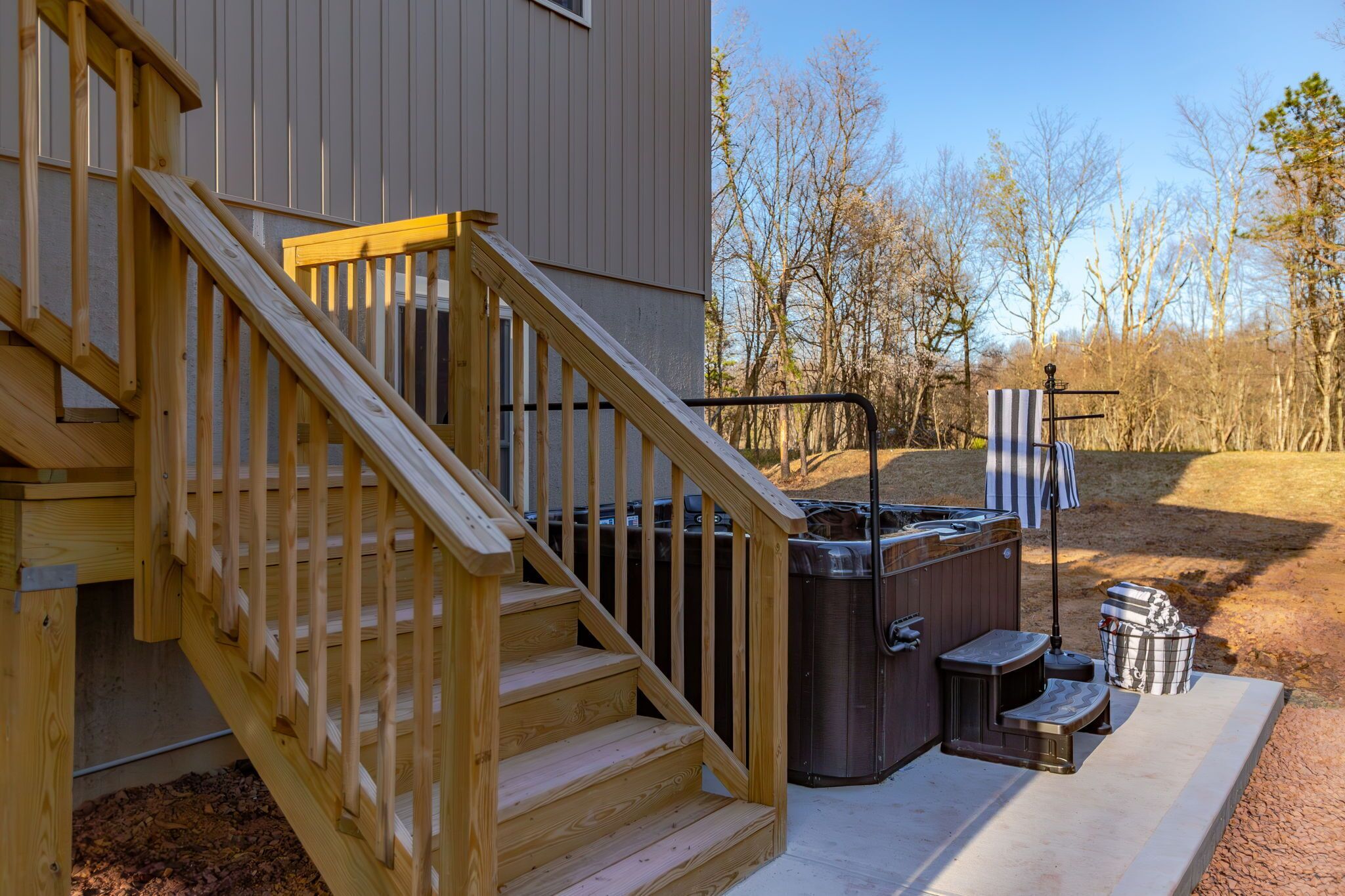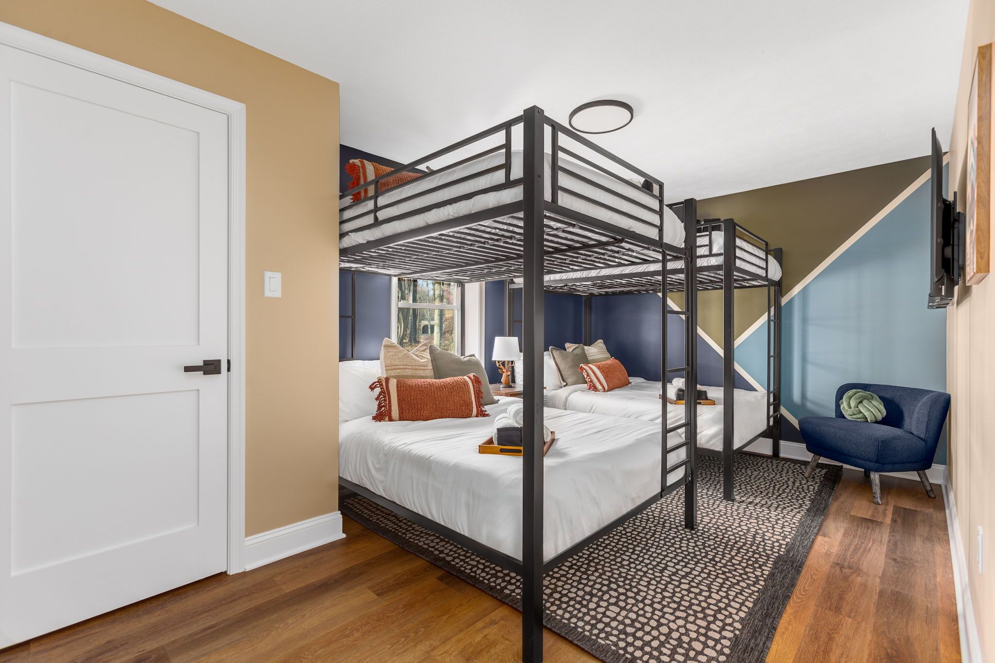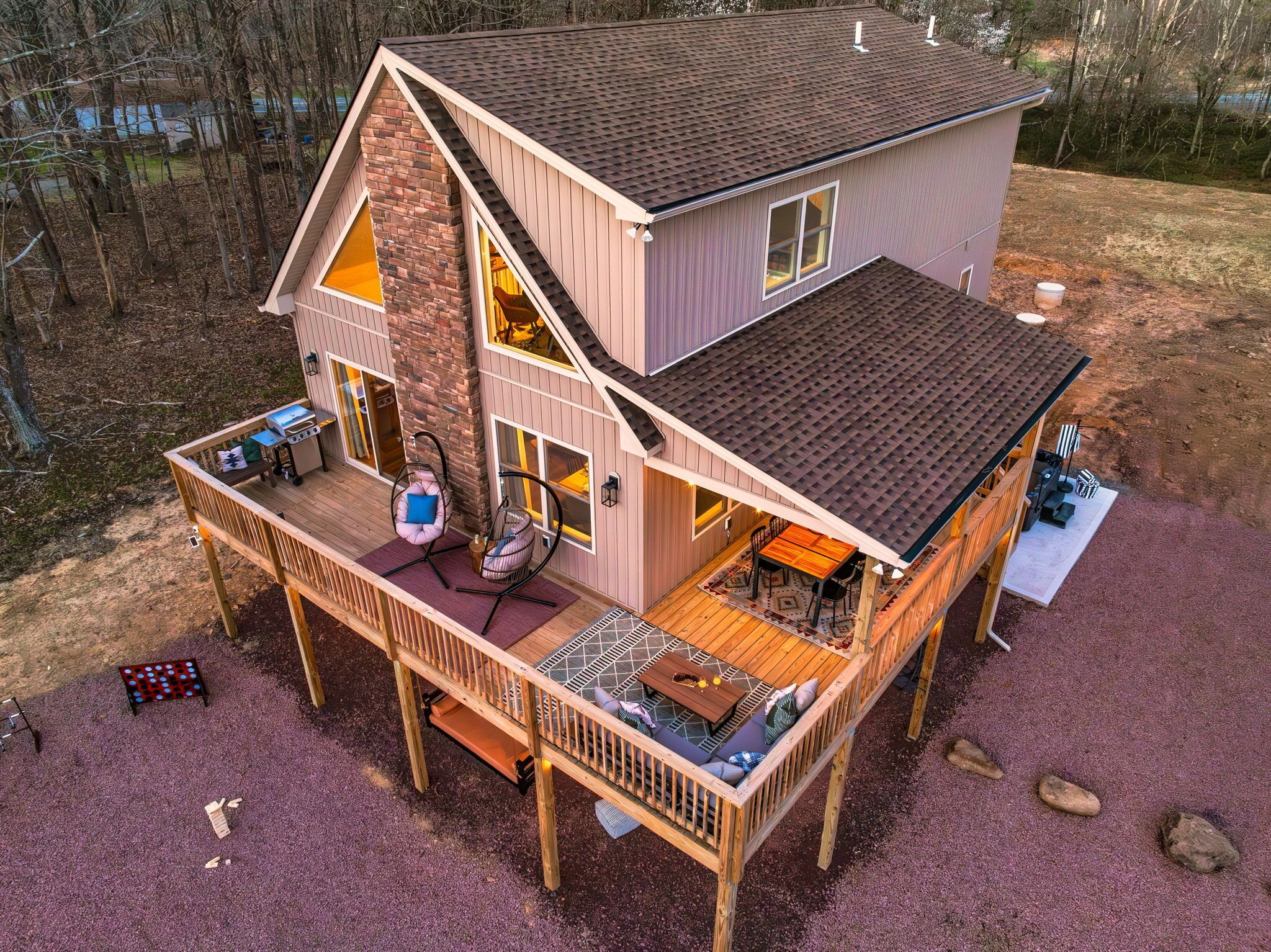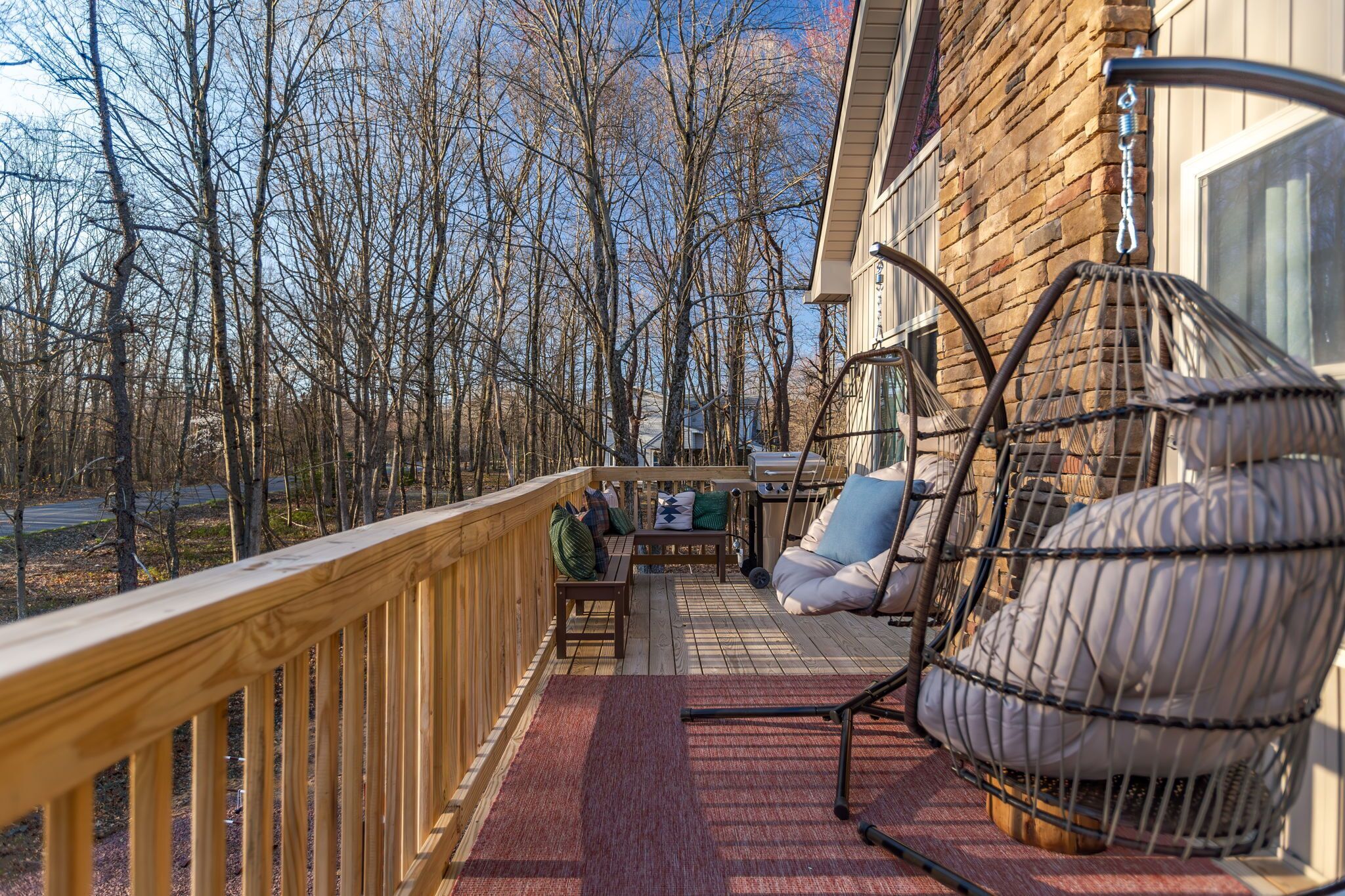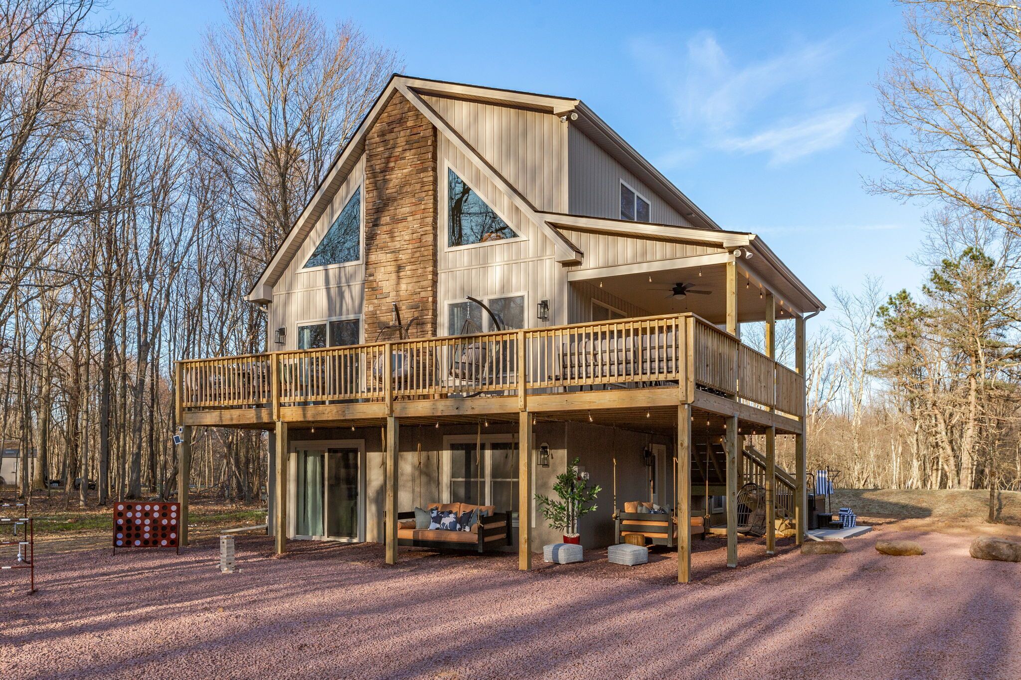 NEW - Wolf Run Lodge II - Luxury 6bd, Hot Tub, Indoor and Outdoor Games NEW LISTING - New construction in 2023. Spacious luxury 6 bed room and 3 bathroom house conveniently located less than a mile from the Towamensing trails lake and community center. Game room with Shuffle Board, Arcade Game and Foosball. Very close to major Pocono attractions (White Water rafting/Kayaking/Canoeing, Paint ball, Skiing, Horseback riding, Biking/Hiking trails, Pocono Raceway, Wineries, Fishing, etc). First floor ~3 bedrooms with TV’s (Bed 1 – queen, Bed 2 – 2 bunk beds full over full, Bed 3 – king) ~Movie area~Popcorn Machine~Full Bath Second floor~Gorgeous kitchen~Large living room with TV~Huge dining area (14 seats, 4 additional at breakfast bar)~1 bedroom with TV (King) ~Full bath~Laundry (washer and dryer)Third floor~2 bedrooms with TV’s (Bed 1 – King, Bed 2 -2 full beds)~Full bath ~Game room (arcade game, foosball, shuffle board, chess, etc)Outside~Hot tub~Deck with grill/outdoor dining, seating area ~2 outdoor bed swings~Parking for 6Community amenities – lake, pool (seasonal), community center and more. Amenities can be closed due to unforeseen circumstances beyond our control. No swim diapers in main pool. Note: HOA limits 8 beach tags (Wrist bands) per stay and does not allow to purchase additional tags and are required for everyone 5 and over. However there are public lake beaches at Beltzville and Hickory Run State Park nearby.