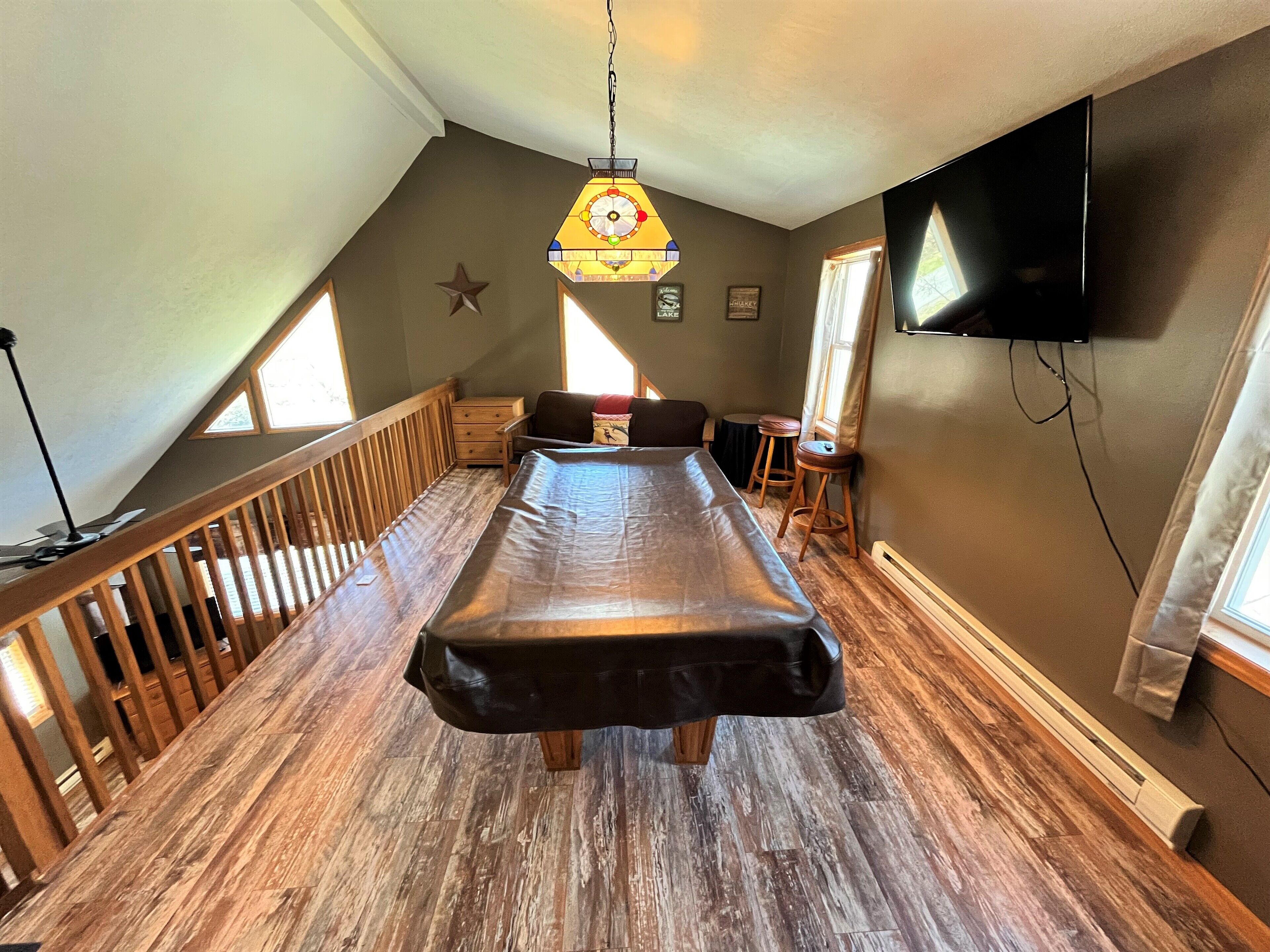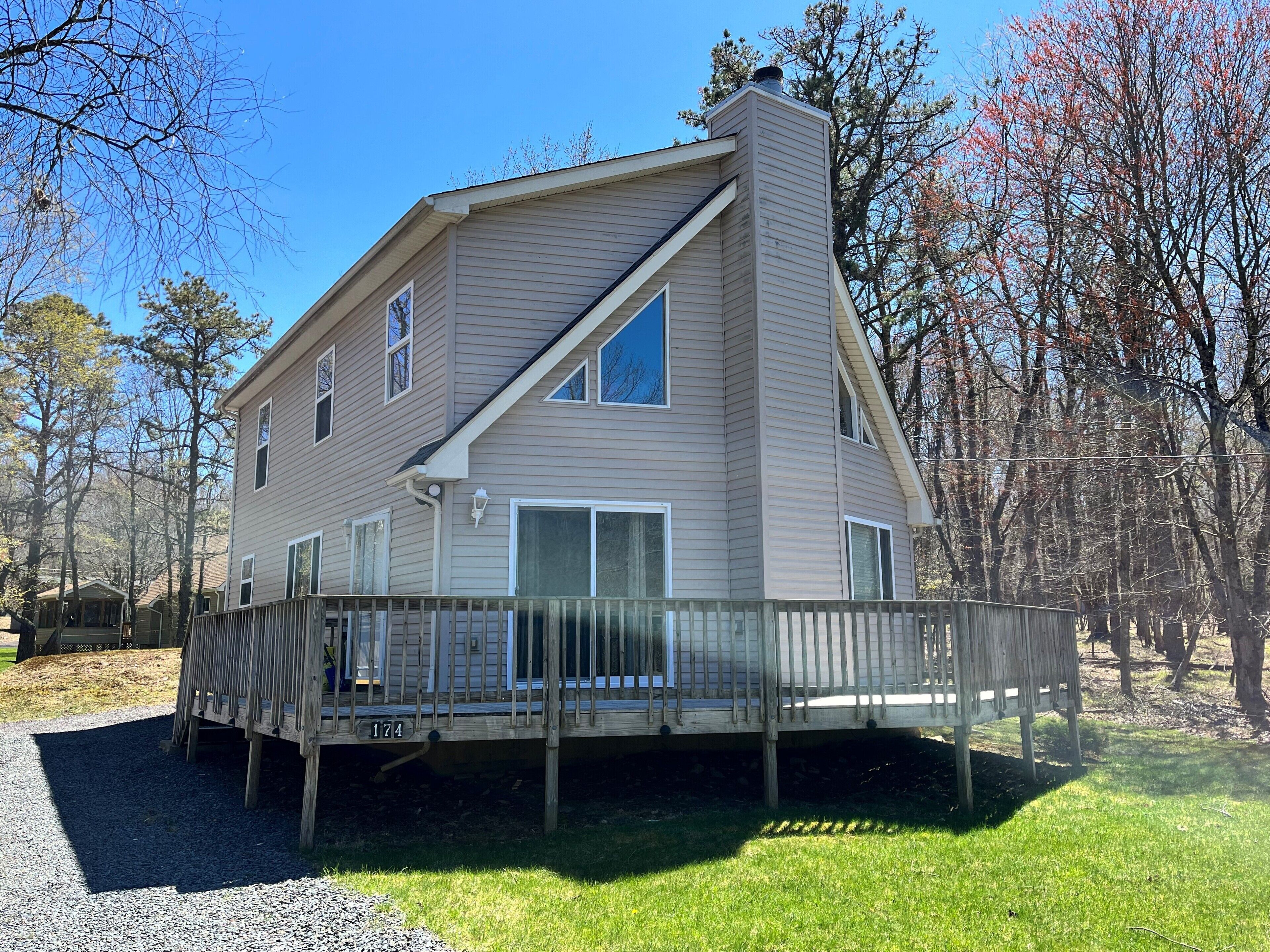 Cozy Mountain Style Chalet with Hot Tub, A/C, Fireplace & Pool Table! Beautiful Mountain Chalet renovated with everything you & your group need to relax in style in the Poconos! Featuring sleek luxury vinyl plank flooring & soaring vaulted ceilings, this mountain home includes a spacious open concept living, dining, & kitchen area, perfect for catching up with family & friends! Warm up on those chilly winter nights after a day of skiing & snowboarding by the stone-faced propane fireplace! The sprawling loft houses a billiards table for those looking for a little bit of friendly competition! Convenient first floor bedroom & full bathroom! The second floor includes 2 additional bedrooms and one full bath. Kick back & breathe in the fresh mountain air on the front deck! This home features plenty of space for everyone to spread out! This chalet is located in the popular Towamensing Trails community! Take advantage of all Towamensing Trails has to offer- 190 acre lake, outdoor community pool, clubhouse with restaurant service, tennis courts, pickleball courts, basketball court, volleyball court, and a playground for the kids! Minutes to so many different attractions in the Poconos! Looking for a hike? Hit up Hickory Run State Park, which includes the Hawk Falls Trail & Boulder Field, or Weiser State Park (each only 15 minutes away)! If you and your group are looking for skiing, snowboarding, or snowtubing, we are convenient to Big Boulder & Jack Frost Ski Resorts! Local waterparks include H2ooooooooH! at Split Rock Resort & Kalahari Waterpark! Plenty of local restaurant options too! Come experience the Poconos in our Mountain Chalet! You won’t be sorry!