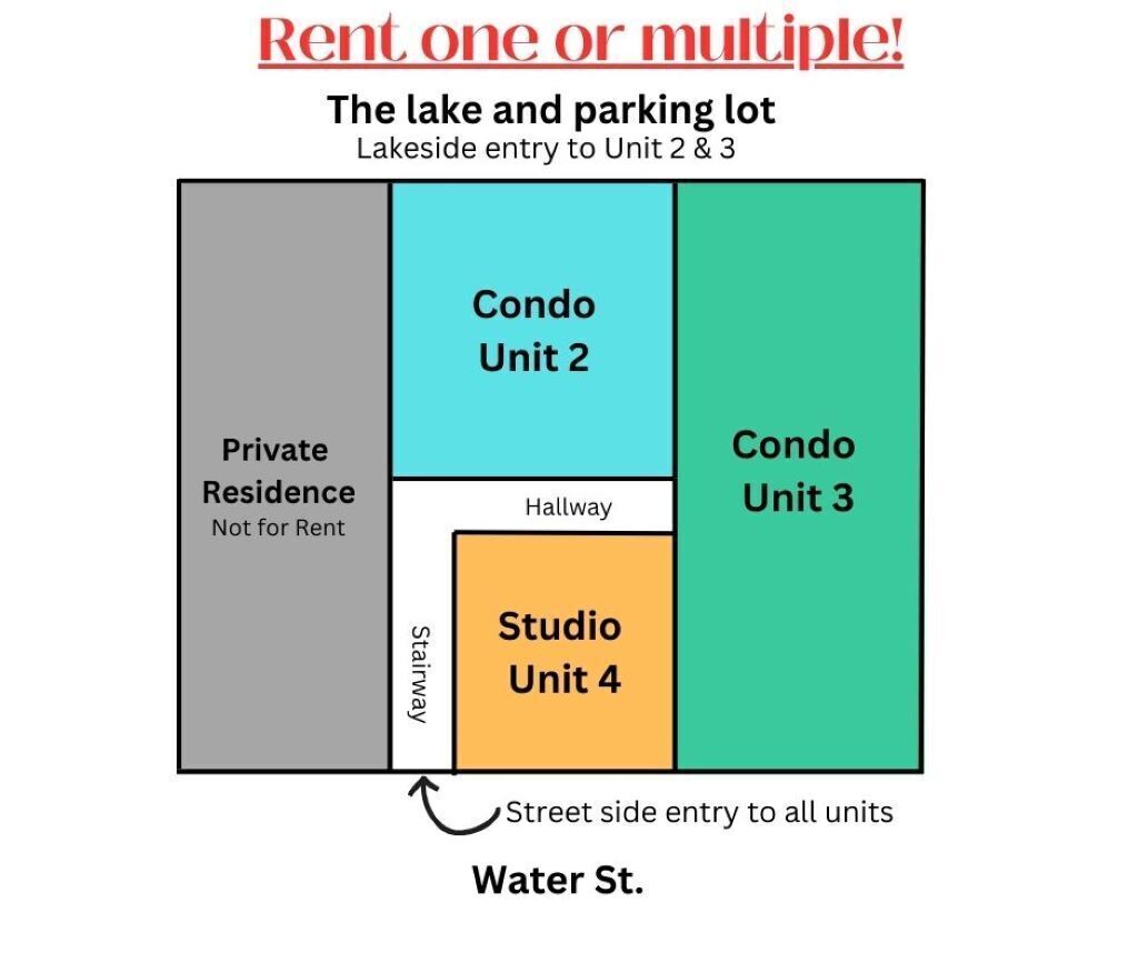 Downtown Lake View Condo -Unit 3 Newly updated second story condo (Unit 3) in downtown Conneaut Lake with water views. Relax in style in the spacious living, dining, and kitchen area with beautiful furnishings and water views. A deck facing the lake is the perfect way to begin and end the day. Steps away from Fireman’s Beach, Icehouse Park, Silver Shores, Vacavi coffee shop, Lakeside Diner, gift/clothing shops and more. Located above a pet grooming service and clothing boutique and across the street from Rising River Brewing. Relax in the beautifully applianced kitchen, sitting area, king bed, and central air. Located 15 minutes from Meadville.DOCK space for fee near CL park WHEN available. We can provide contact.The spaceBath towels, shampoo, and body soap are supplied. Use personal accounts for smart TV as cable isn't provided. Wi-Fi password provided.This unit is above a pet grooming and clothing boutique so there is potential for some daytime noise, but we do our best to keep that to a minimum.Guest accessOur unit has a keyless locking system. On street parking or reserved parking in the rear of the building marked (Unit 3). Entrance is on Water St. look for black door with Ardis logo. This is the door to use for accesses from street side.