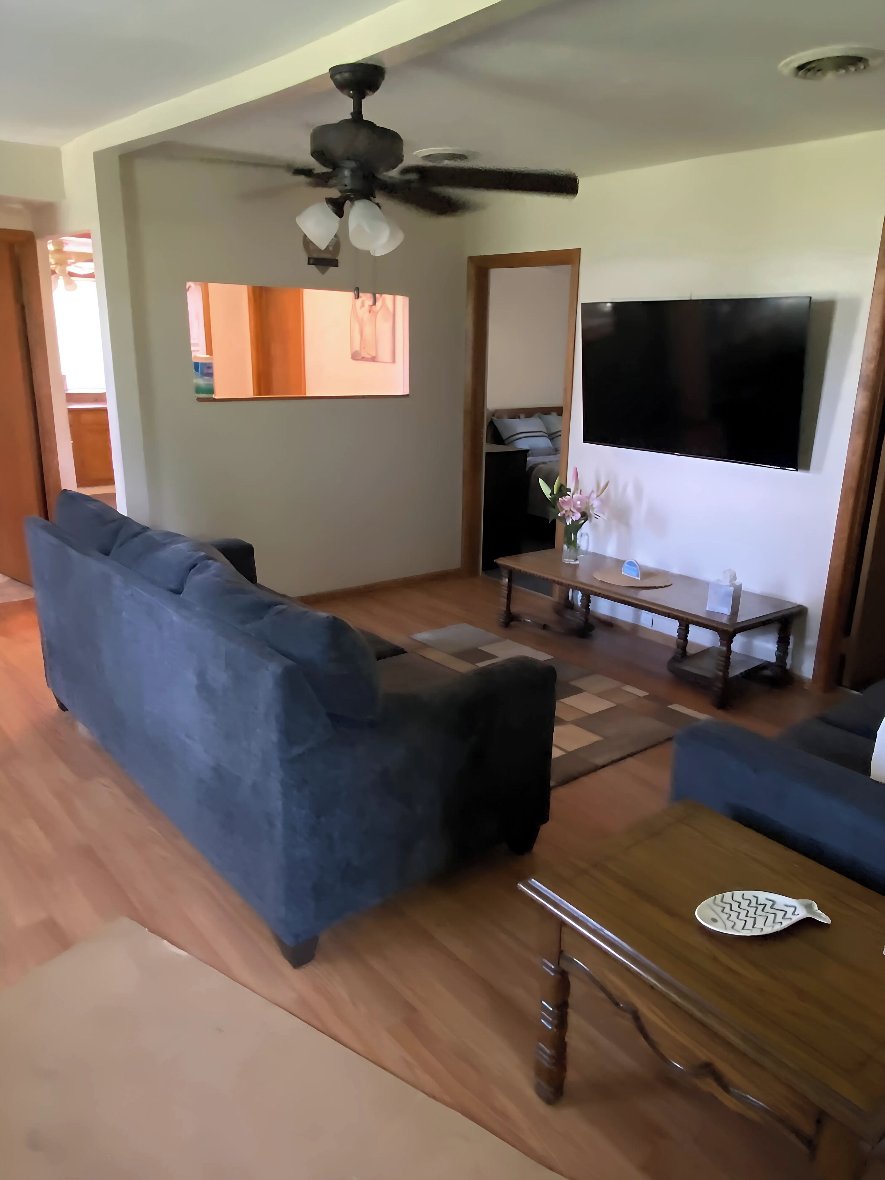 Tranquil Pondside Escape -Possible 8- with Air Mattress ★☆ ABOUT THIS SPACE ☆★Escape to our delightful cottage, set in a private yard with a tranquil pond and close to the lake. Perfect for both relaxation and productivity, our cottage offers a peaceful retreat with modern comforts.Experience A Perfect Staycation With Us; Learn More Below!★☆ NEARBY ATTRACTIONS & LANDMARK ☆★.☛ 0.6 mi - Conneaut Lake Park Beach.☛ 0.7 mi - Conneaut Lake Park Resort.☛ 3.7 mi - Oakland Beach Golf Course.☛ 5.8 mi -Conneaut Cellars Winery & Distillery.☛ 6.2 mi - The Goat Bar and Grill★☆ BEDROOM ARRANGEMENT☆★BR1: 1 Queen BedBR2: 1 Full BedBR3: 1 Full Bed and small Futon★☆ LIVING ROOM ☆★Step into the inviting living room of our delightful cottage, where comfort meets convenience. Unwind in front of the Smart TV, perfect for streaming your favorite shows using your personal accounts. Engage in some friendly competition with a selection of board games provided for your enjoyment. If you're traveling with little ones, there's a Pack 'n Play available for your convenience. For those who need to work, a dedicated workspace equipped with high-speed internet ensures you can stay productive. Welcome and enjoy your time here!★☆ KITCHEN & DINING ☆★Welcome to our fully equipped kitchen, designed to make meal preparation a breeze. You'll find modern appliances, including a stove, oven, refrigerator, and microwave, along with all the cookware and utensils you might need. There's ample counter space for meal prep, and a cozy dining area nearby for enjoying your culinary creations. ★☆ OUTDOOR SPACE ☆★Our charming outdoor space offers a perfect blend of relaxation and adventure. Gather around the fire pit with a bench and additional camping chairs for a cozy evening under the stars. Enjoy meals al fresco at the outdoor dining area, complete with comfortable furniture. There's a serene pond nearby, adding to the tranquil atmosphere. For your convenience, the driveway accommodates parking for up to two vehicles. Experience the great outdoors with all the comforts of home.★☆ KEY FEATURES ☆★☀ Self-check-in (unique code provided prior to arrival)☀ 3 Bedrooms with 1 Bath☀ Toiletries (soap, shampoo, conditioner, lotion, etc)☀ Full kitchen, stocked with the essentials☀ Cofee bar☀ Open living area perfect for bonding with families & friends!☀ Dedicated workspace with fast internet☀ Free driveway parking up to 2 vehicles.☀ Outdoor amenities: fire pit, 4 camping chairs, pond, outdoor dining and outdoor furniture.☀ Washer + dryer★☆ HOUSE RULES/THINGS TO NOTE ☆★☀ No Smoking.☀ No parties, events or gatherings.☀ Pets allowed for a fee. $25 per pet max of 2.☀ Pick up after a pet.☀ House is on a well.☀ Pls supervise children near pond.☀ Trash day is every Tuesday morning, so bins needs to be out the night before. ★☆ Book Now & Let Us Take Care Of You! ☆★
