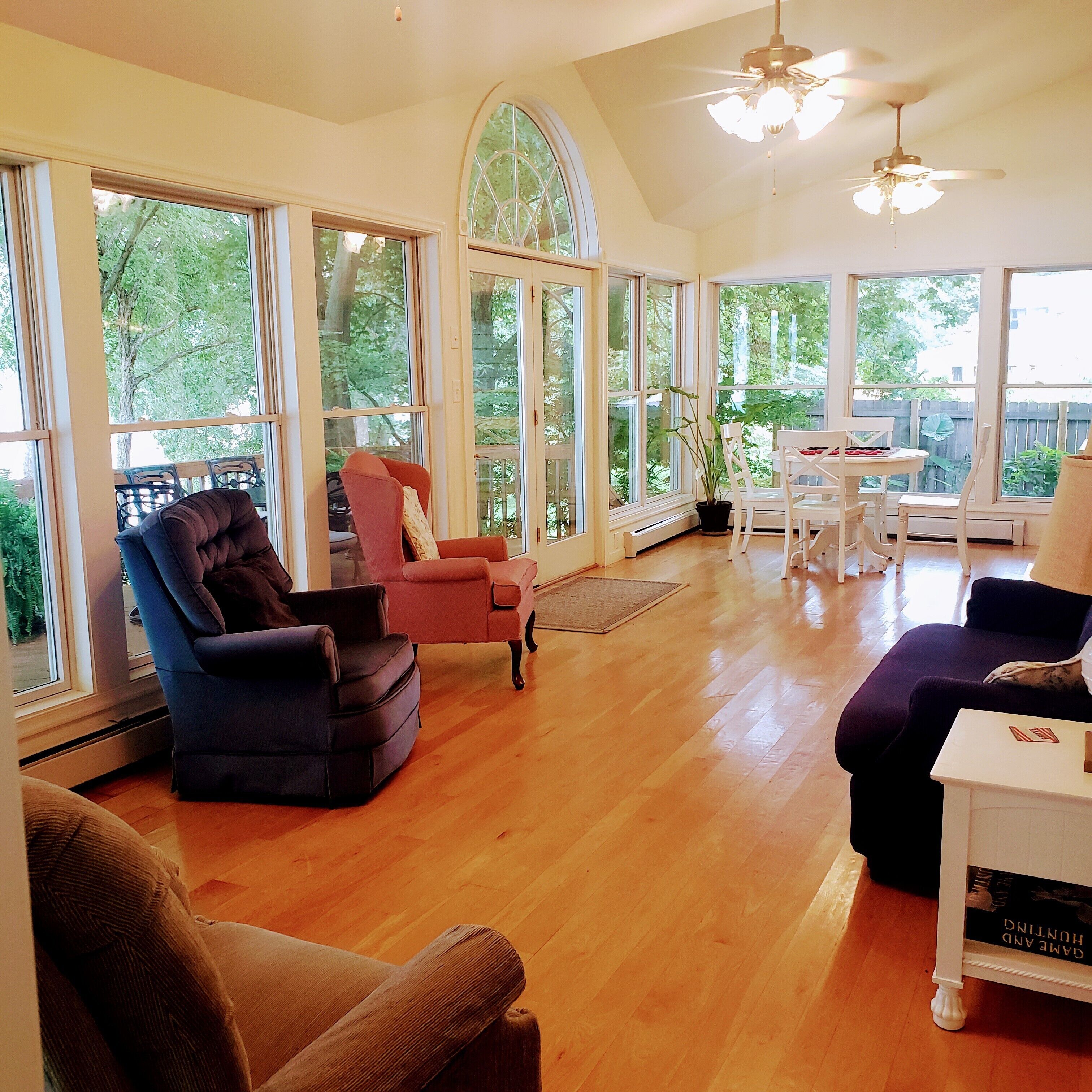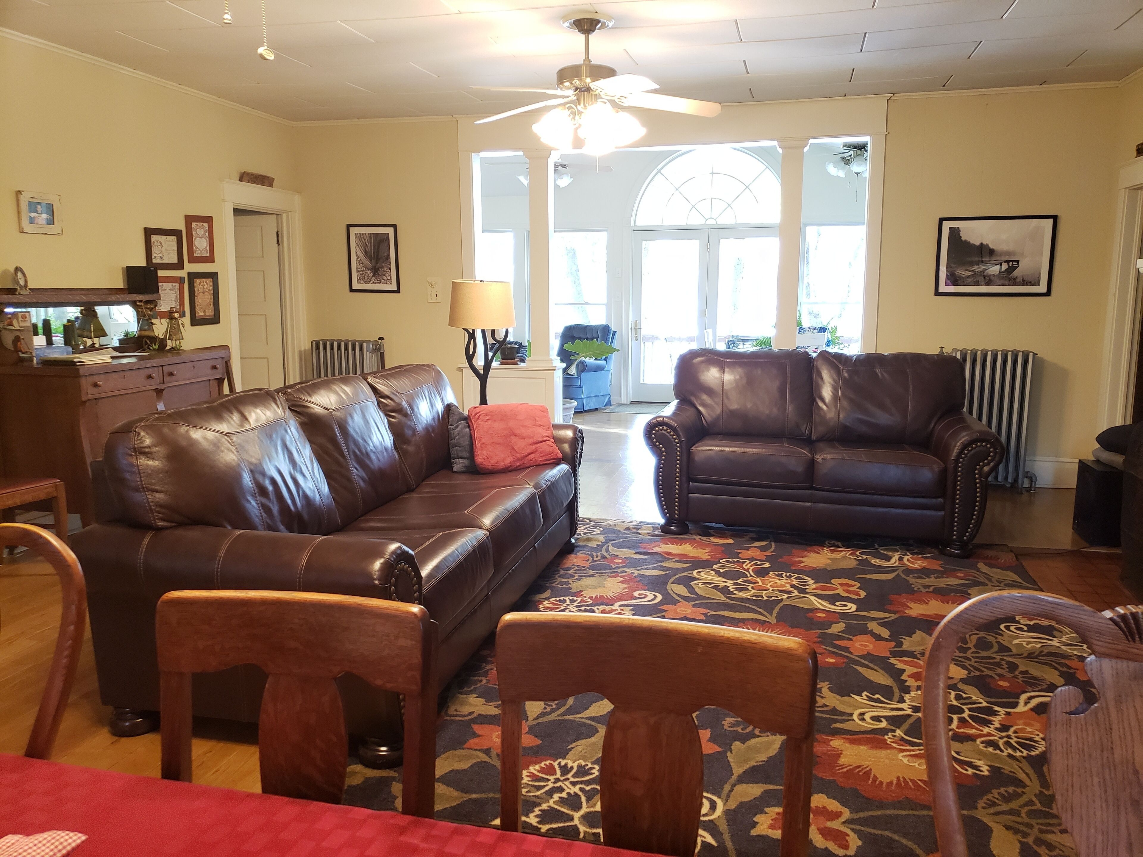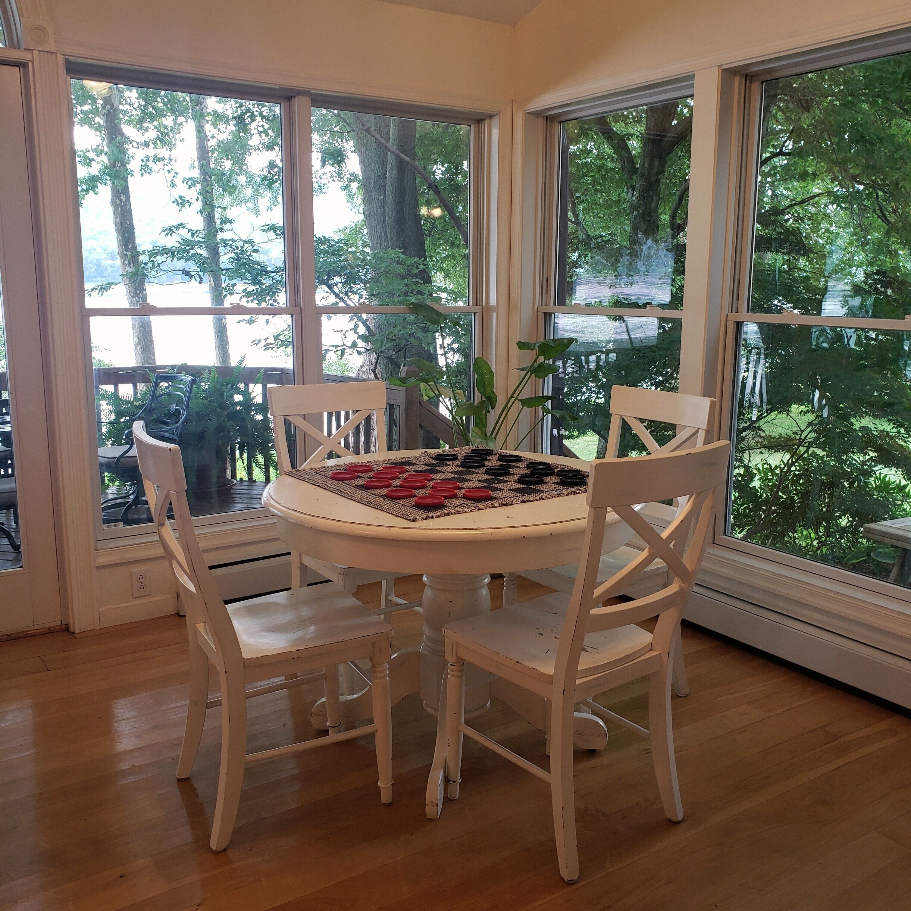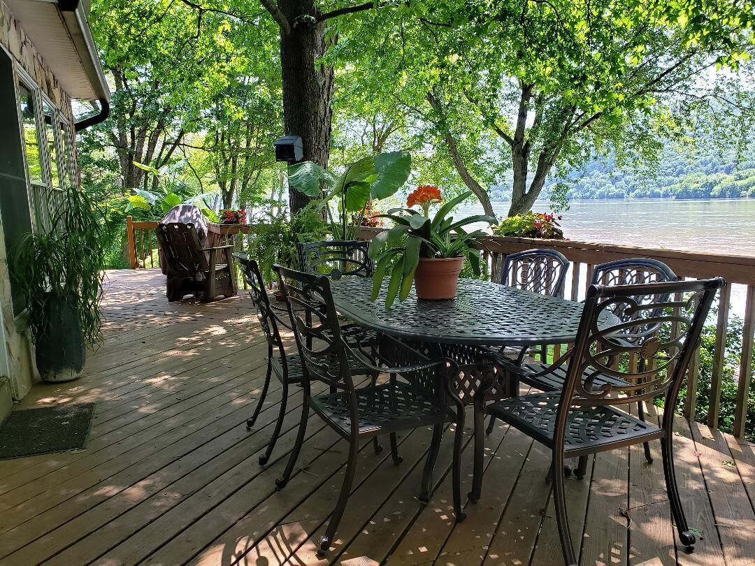 Riverfront, Mountain View, Private Dock, Kayaks - Hershey, Amish, Gettysburg Our waterfront home is the perfect vacation getaway. It’s near all the attractions of central Pennsylvania, yet removed from the crowds. We are located just one half mile off Highway 322/22, within a 30-minute drive to Hershey and under an hour to Gettysburg or the Dutch country. Ski Roundtop is just 40 minutes. You enter your own private acre where Mother Nature beckons you through the stunning views of the many windows. Launch from your own private dock to a kayak adventure paddling among the islands with the bald eagles and wild life, or take a day trip floating down the Susquehanna. Soak in the beauty of the natural surroundings from the porch swing on the riverbank or relaxing by the waterfalls on the patio.Our family has many special memories of get-togethers at the river house, and we enjoy sharing it with others. We have 4 kayaks (including a fishing kayak and a double kayak so an adult can take a small child out), a canoe, several inner tubes, and we provide basic fishing gear. You can wade or swim in the river right behind the house, and in summer the water level is usually pretty low, so kids can wade along the bank and spend hours catching minnows and other critters. Take a lazy inner tube float on a warm summer day.There is a private dock for your use and a porch swing down by the river, as well as a fire pit on the river bank where you can roast marshmallows and hot dogs.The property sits along the historic Pennsylvania canal system, and our lane was the original towpath where mules pulled barges along the canal. To get to the house from State Road 322, you drive 1/2 mile down the lane with some paved and some unpaved sections, but easily passable in all seasons. We are close enough to the road that some noise can be heard (approximately 500 feet across a field and through trees to Rt. 322 and the train rail beside it.)Numerous hiking trails are nearby, including the Appalachian Trail a 10-minute drive away, and there's a nearby rails-to-trails biking/hiking trail with 18 miles of wilderness trail with no roads, yet it is level and easy for children to navigate. With just a ten-minute drive, you can take a three mile walk around Wildwood Lake and visit the nature center there.The house itself is over 100 years old, and it has random width solid Pennsylvania white oak floors in the kitchen, spacious living/dining area and in the sunroom. The rest of the house has oak flooring, tile, or carpeting (master bedroom only.) We have done two major additions to the original structure. The kitchen is well equipped with a ceramic top stove, refrigerator with ice maker, a KitchenAid dishwasher, microwave, upgraded small electrics (toaster, pancake griddle, blender, waffle maker, coffee grinder, Keurig, regular coffeemaker, etc.), and all the dishes and cooking utensils you might want. Guests often comment on how well-furnished and handy it is, just steps from the spacious dining table that accommodates a large family or group of friends. What really takes your breath away is the view of the river as you walk into the living room and look through the columned opening through the sunroom to the river. The deck is shaded by towering trees in summer and we have a dining table and a Weber Genesis grill with a side burner on the deck. Down by the river (in all seasons except winter) is a porch swing to sit and watch the river flow, a fire ring, and a few chairs and benches.The story behind the house is that we bought it as our vacation home in 1993, and it is only a thirty-minute drive from our primary residence. We wanted something near enough that we could use it often. As it turned out, my husband's mother who lived in Alabama was widowed and wanted to live near us. She moved into the river house and lived there for the rest of her life, enjoying watching her visiting grandchildren play on the river bank. When our children grew up and Grandmother passed away, we decided to begin renting this home to travelers.My husband Dave and I are not absentee landlords. We live in the area, and, in fact, we are often found in the small guest house on the lot next door to the river house. If you need anything, want advice about area attractions or directions, or if something should break down, you will be able to reach us directly without any trouble. We are excited about sharing our home that holds so many memories for us.ARRANGEMENT OF BEDROOMSFirst Floor:Master – one queen bedSecond bedroom – one queen bed and one (very comfortable!) futon that can make a full-size bedThird bedroom – one full size bedAttic Bedrooms:(Since this is a 100-year-old attic converted into bedrooms, the attic steps are a little steeper and more narrow than those you would find in a contemporary home, and the ceiling follows along the roofline. The fifth, smallest bedroom is accessed through the large fourth bedroom. Both attic bedrooms have skylights.)Fourth Bedroom – one queen bed, one twin bed (It also has a sitting area with a couch, chair, and TV.)Fifth Bedroom – one full size bed, one twin bedRESERVATIONSWe mostly book through VRBO because it’s very safe and secure for our guests. During check out, Guests review our attached rental agreement and house rules and agree to them by checking the box and completing the reservation request. Due to insurance regulations, we rent only to those over the age of 25. For smokers, we ask that you smoke outside only and properly dispose of cigarette butts.CANCELLATION POLICYOur stated cancellation policy is strict on VRBO because they don't give us the option of stating what we actually do. If you have to cancel, we will do all we can to rent the house to someone else. We stay fully booked in the summer and usually get more requests than we can handle in other seasons as well, so we have mostly been successful in rebooking. No matter when you cancel, even if it is near your arrival date, if we