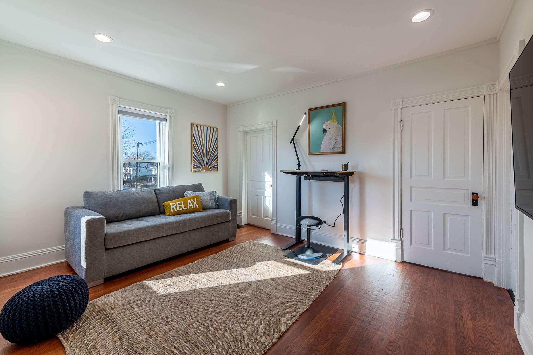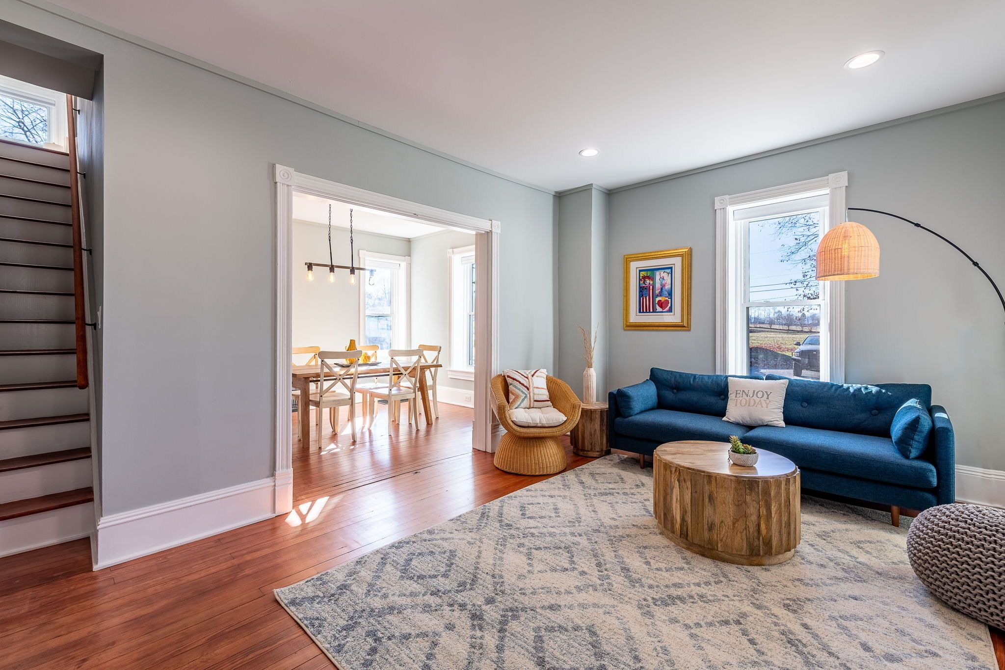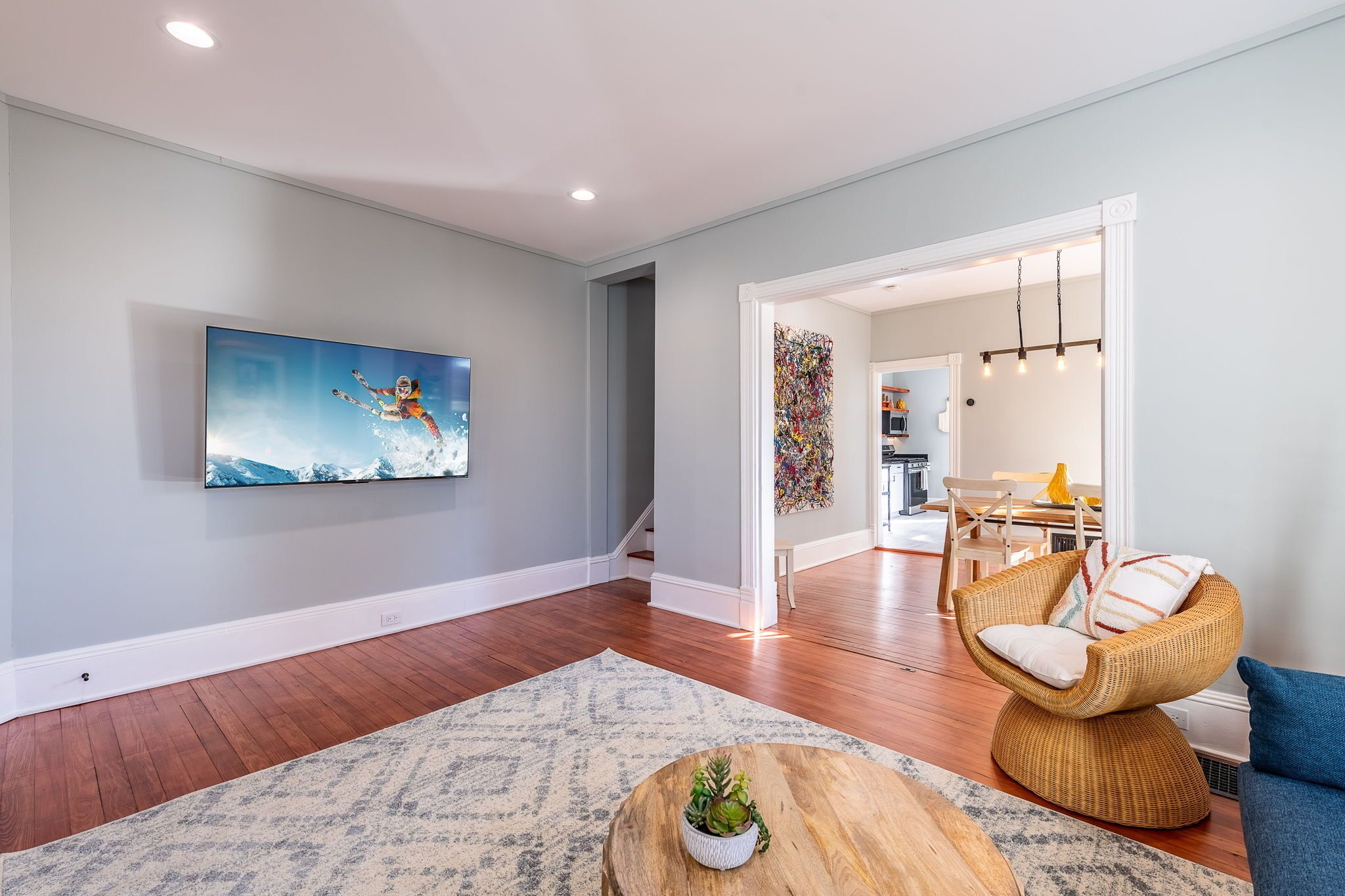 Charming Duplex only 10 mins from Whitetail Resort Come relax in this charming newly renovated duplex, perfectly located near downtown!You are only:4 mins to the Mercersburg Academy10 mins to the Whitetail Resort2 hours from DC2 hours from BaltimoreThe spaceThis home is 1,250 square feet, and thoughtfully decorated to make your stay comfortable and relaxing. The king and full size bed, plus an additional memory foam sleeper sofa in the bonus room upstairs allows a maximum of 6 guests.If you want to "work from home," we've got you covered with our high-speed 100 mbps internet and sit-to-stand desk in the bonus room. Or completely disconnect by having a coffee, cocktail or ice cold drink on the covered porch.Sure, eating at Mercersburg's best restaurants is fun, but sometimes we all need a nice home-cooked meal, right? That's why our kitchen is fully stocked with all the essentials you'll need to cook up something delicious.While we don't offer cable, each tv is equipped with a Roku for watching all your guilty pleasures. So feel free to BYOL (bring your own login) and log in to any service you're subscribed to.We also provide a pack 'n play for anyone traveling with a kiddo :)Guest accessYou will have complete and private use of this unit. Contactless check-in is offered through smart locks.Other things to notePlease do not flush ANYTHING that's not toilet paper.In an effort to secure the premises, we've installed a Ring doorbell at the exterior doors and a Ring floodlight overlooking the parking area. The neighborhood is very safe, but this helps us keep an eye on the property :)