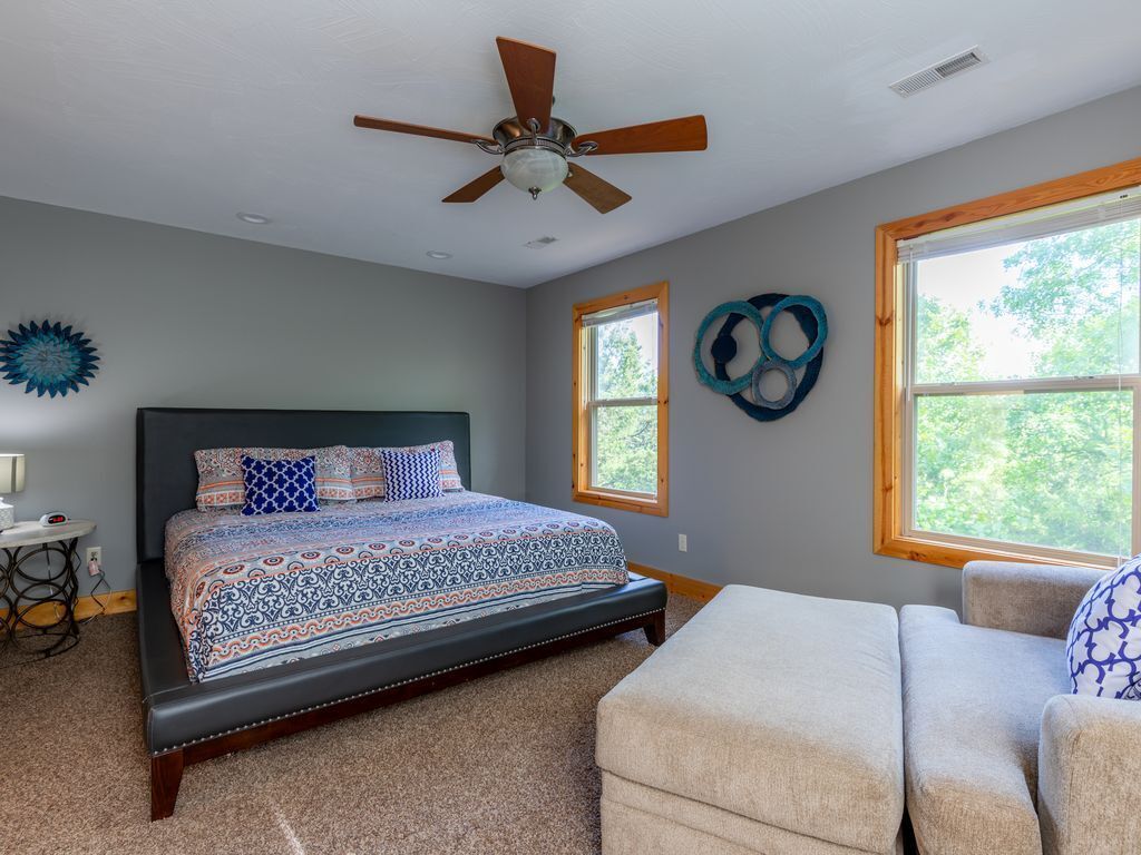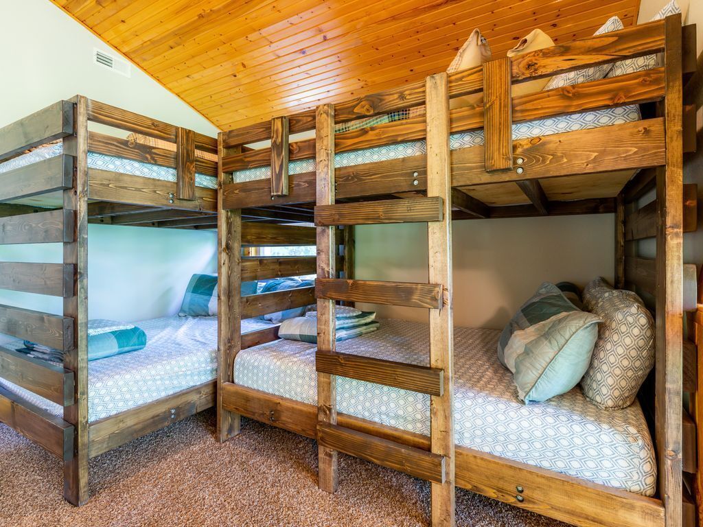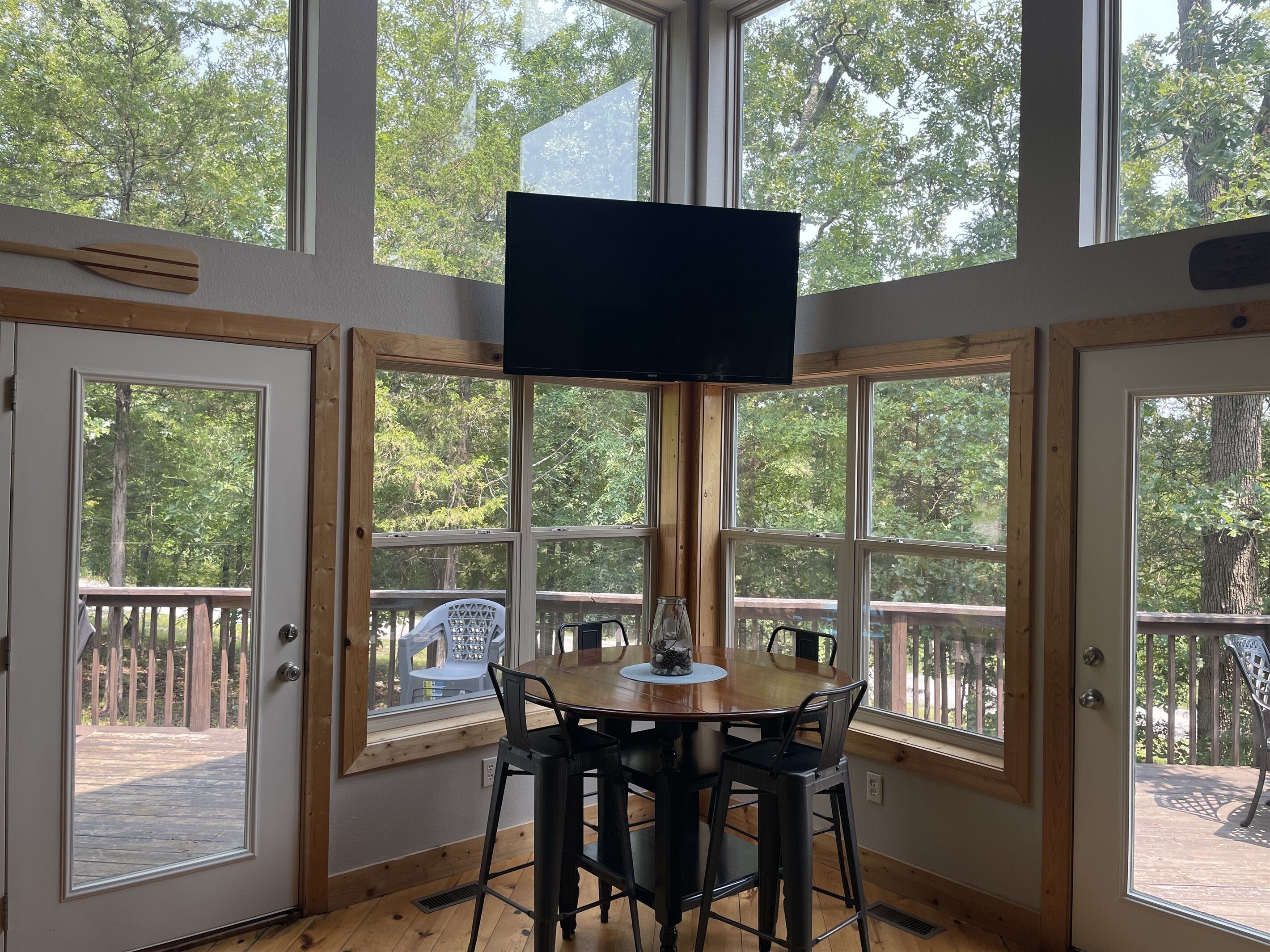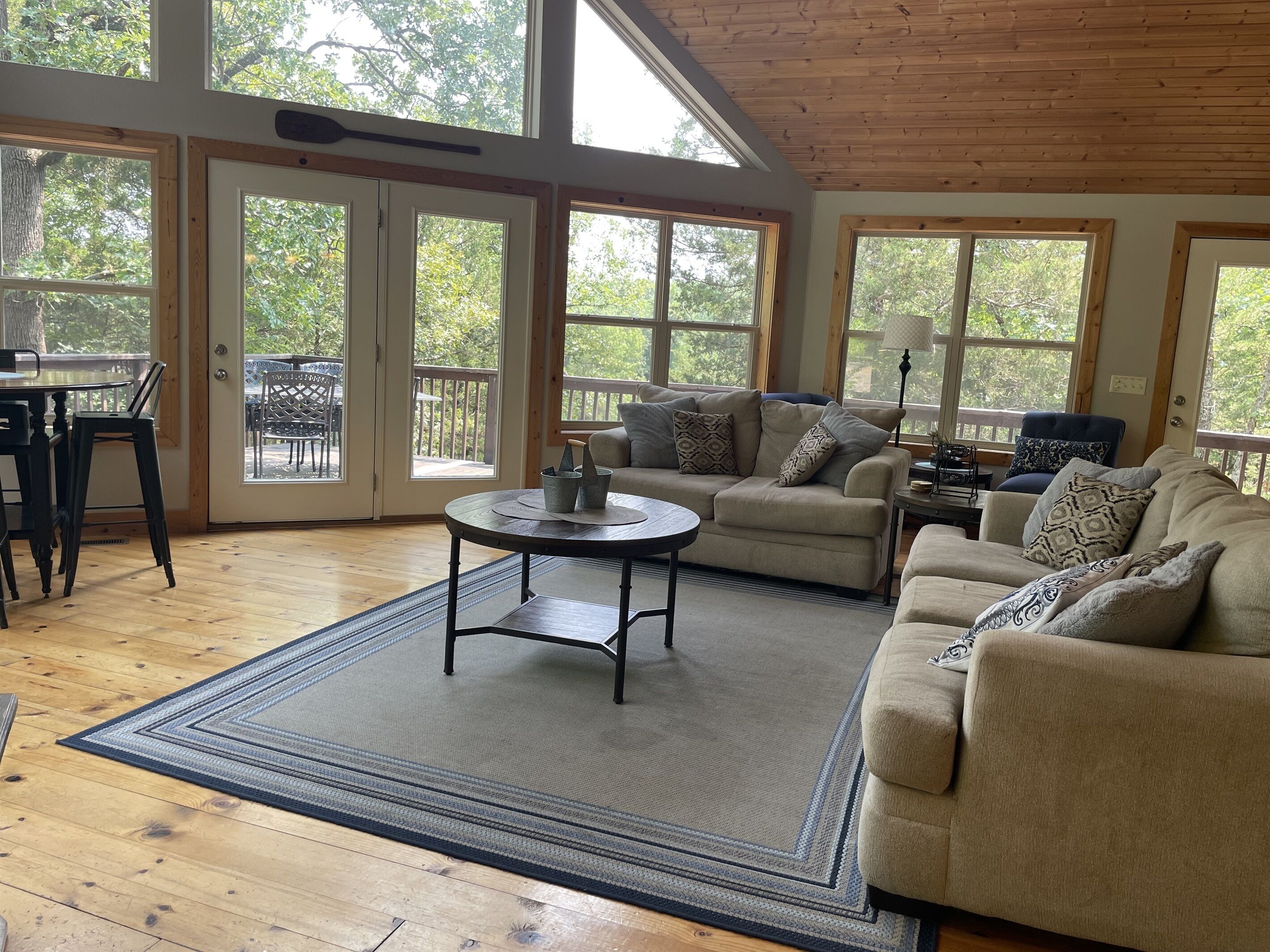 Sleeps 14-Marina, Pool, Roaring River & Table Rock 3 bedrooms, sleeping loft, 2.5 Baths, and endless ways to enjoy nature. Our family is excited to welcome you to the Big Woods! We are located between Mark Twain National Forest outside of Cassville and adjacent to the Big M Army Corps Campground at Table Rock Lake. We love the easy access to the lake with the conveniences of a full service Marina, Big M Marina. On the other side of Big Woods Cabin is the Mark Twain National Forest Trails. This combined with the community pool near by and our family is never short of something to keep everyone outside and in nature. There's even an outdoor fire pit for s'mores after dinner. Inside: You will find our cabin warm and inviting. The bank of windows in the living room give beautiful views and make you feel right at home in the big woods. In addition, the open concept kitchen-living-dining area keeps everyone together but with enough room to spread out. The living room opens onto the large wrap around deck with a patio table. The indoor dining room table seats 6+ and there are 4 more seats at the kitchen bar and a second table that seats 4. The living room TV is ready with satellite. The Big Woods kitchen is loaded with cookware and everything you need to prepare and serve a full meal or to just whip up something quick. We have enough dinnerware for everyone. Our household is split on coffee- so we offer both from the pot and a Keurig. Off of the kitchen is a 1/2 bath. In addition, downstairs you will find 2 bedrooms with a jack-n-jill bathroom between them. The bedrooms each have a queen sized bed. There is also a washer and dryer (we provide the detergent). Upstairs the kids and adults will love the sleeping loft with two- full over full bunk beds. The loft overlooks the living room downstairs. The large master suite is also upstairs and includes a king size bed and an attached bathroom. The bathroom has a stand up shower dual sinks and a soaking tub. Outside: Our home has full access to the tribute falls pavilion up the street. The pavilion is a rustic lodge equipped with a large inside table, community refrigerator, bathroom and stereo system. The best part there are only four houses in the neighborhood and the pool doesn't get too busy. Please remember that the pool and pool house are only open during the summer months. Go Jump in the Lake!! Big M Marina is approximately 1/2 mile away. Water sporting rentals are available at the marina as well as nightly slip rental (check out their website). The marina also offer's the Dock-n-Eat, one of table rock lake's floating restaurants. There is a convenience store that includes Bear's Den Ice Cream Parlor. Please note that the Marina restaurant is open Memorial Day to Labor Day. Nearby: There is a Dollar General, local grocery store, Pizza Hut, and other small town amenities at nearby Shell Knob, a 15 to 20 minute drive. The closest Walmart is an 18 mile, 30 minute drive away at Cassville. Cassville also offers restaurants and a small hospital with 24 hour ER services. Looking for a day of fun outside the house ask us about nearby Branson, MO (we love the Stampede and Silver Dollar City), Eureka Springs, AR (quaint town full of artists and history), Northwest AR (Woo Pig Sooie, the free Crystal Bridges Art Museum and home of many well known entrepreneurs) and Springfield, MO (Bass Pro and Wonders of Wildlife Aquarium). For the Kids: We have traveled with kids for ten years now and know the difference a truly family friendly environment makes for everyone. Our house is ready for the youngest of guest with a pack-in-play, high chair, and baby gate for the stairs. We have a step stool in the bathroom and nightlights ready to go. There will be a small assortment of toys, board games and books. Our street is paved and dead ends- which limits traffic. We are happy to share a few pool toys and beach towels, but keep in mind that there is no guarantee of exactly what will be in the deck box. If you have a request, just ask and we will do our best. Amenities: TV, Blow dryer, Iron, Baby Items, laundry equipment, books, towels, toys, basic paper goods, basic pantry essentials... our most consistent feedback is about how many amenities we offer. We truly want you to feel like you're at home away from home. I am available by phone (call or text) and email during your stay. We are next door to Big M Marina and Table Rock Lake. The quiet side of the lake make boating and water sports even better.