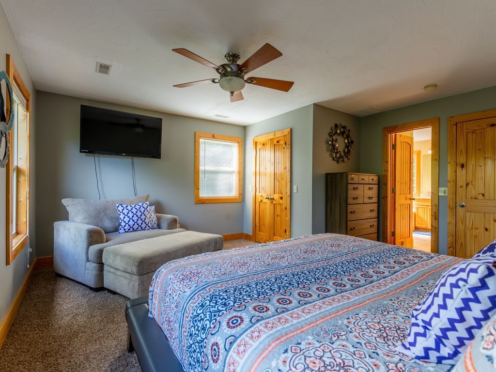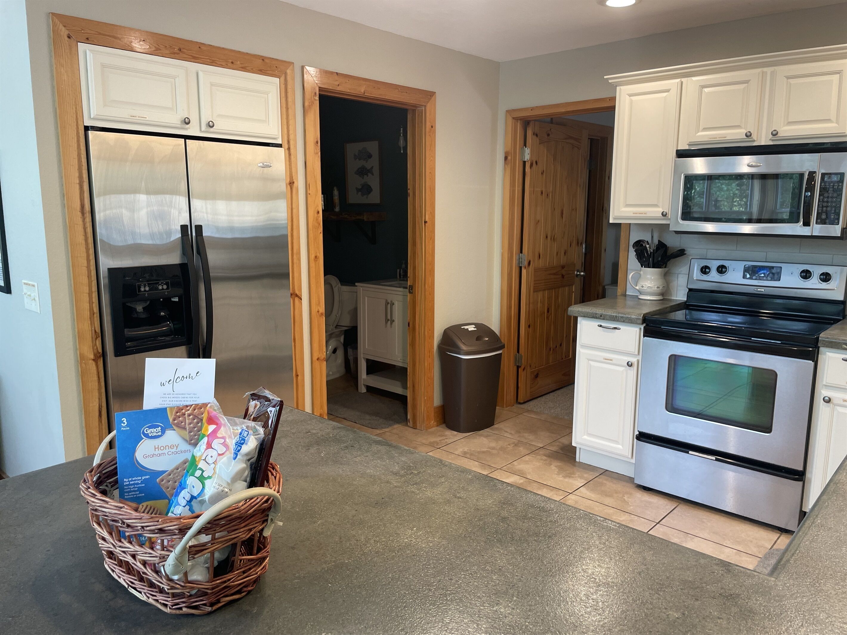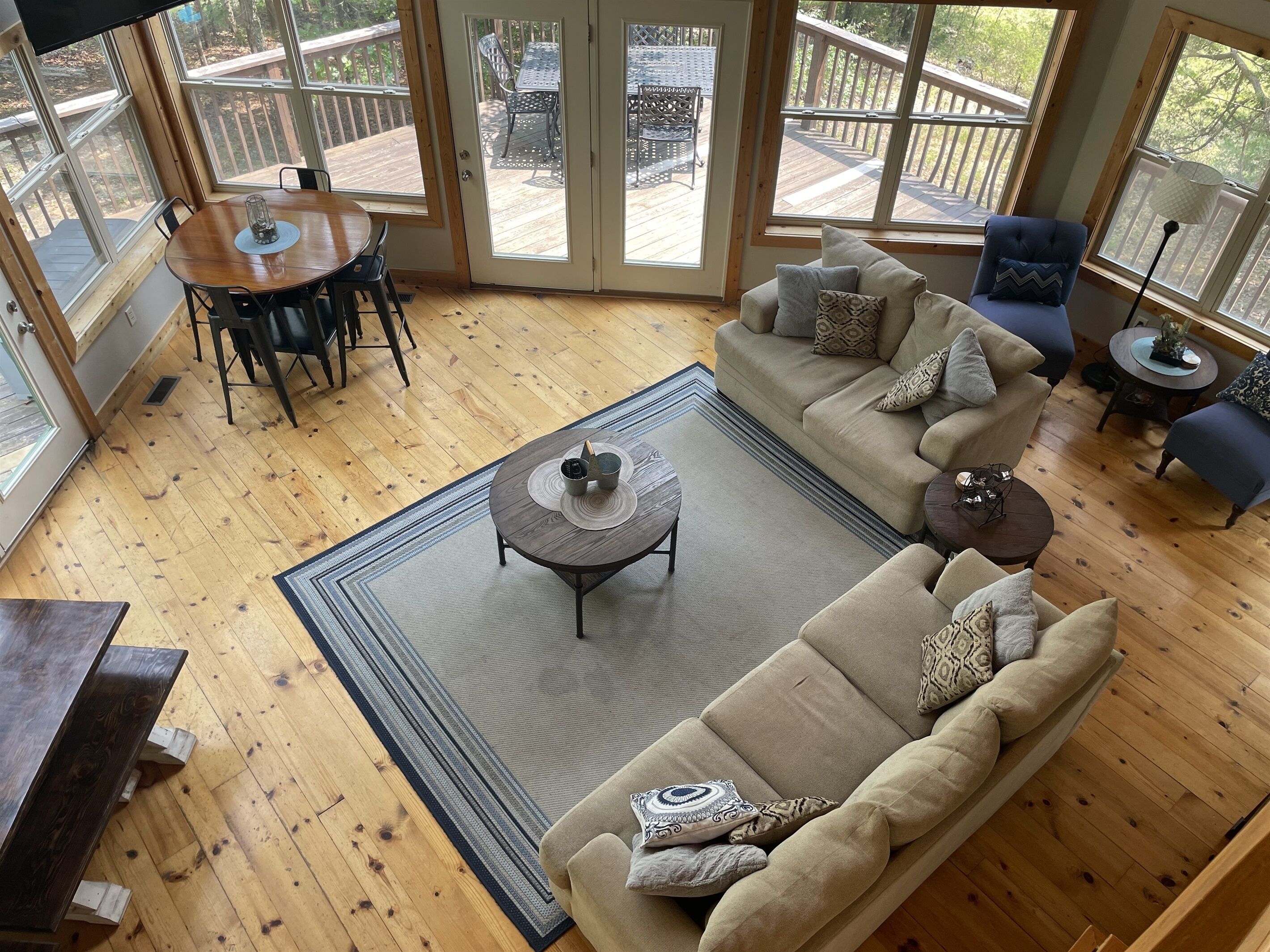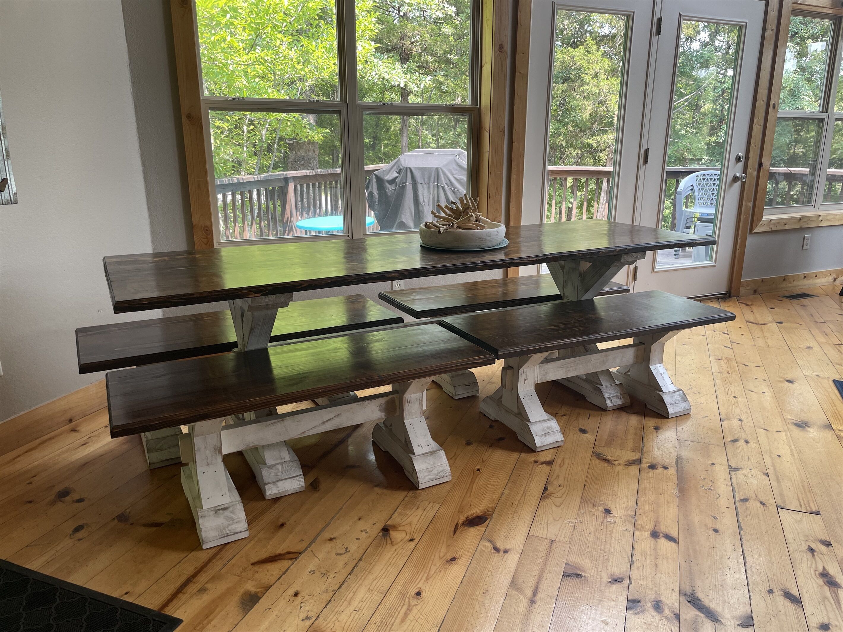 Sleeps 14-Marina, Pool, Roaring River & Table Rock 3 bedrooms, sleeping loft, 2.5 Baths, and endless ways to enjoy nature. Our family is excited to welcome you to the Big Woods! We are located between Mark Twain National Forest outside of Cassville and adjacent to the Big M Army Corps Campground at Table Rock Lake. We love the easy access to the lake with the conveniences of a full service Marina, Big M Marina. On the other side of Big Woods Cabin is the Mark Twain National Forest Trails. This combined with the community pool near by and our family is never short of something to keep everyone outside and in nature. There's even an outdoor fire pit for s'mores after dinner. Inside: You will find our cabin warm and inviting. The bank of windows in the living room give beautiful views and make you feel right at home in the big woods. In addition, the open concept kitchen-living-dining area keeps everyone together but with enough room to spread out. The living room opens onto the large wrap around deck with a patio table. The indoor dining room table seats 6+ and there are 4 more seats at the kitchen bar and a second table that seats 4. The living room TV is ready with satellite. The Big Woods kitchen is loaded with cookware and everything you need to prepare and serve a full meal or to just whip up something quick. We have enough dinnerware for everyone. Our household is split on coffee- so we offer both from the pot and a Keurig. Off of the kitchen is a 1/2 bath. In addition, downstairs you will find 2 bedrooms with a jack-n-jill bathroom between them. The bedrooms each have a queen sized bed. There is also a washer and dryer (we provide the detergent). Upstairs the kids and adults will love the sleeping loft with two- full over full bunk beds. The loft overlooks the living room downstairs. The large master suite is also upstairs and includes a king size bed and an attached bathroom. The bathroom has a stand up shower dual sinks and a soaking tub. Outside: Our home has full access to the tribute falls pavilion up the street. The pavilion is a rustic lodge equipped with a large inside table, community refrigerator, bathroom and stereo system. The best part there are only four houses in the neighborhood and the pool doesn't get too busy. Please remember that the pool and pool house are only open during the summer months. Go Jump in the Lake!! Big M Marina is approximately 1/2 mile away. Water sporting rentals are available at the marina as well as nightly slip rental (check out their website). The marina also offer's the Dock-n-Eat, one of table rock lake's floating restaurants. There is a convenience store that includes Bear's Den Ice Cream Parlor. Please note that the Marina restaurant is open Memorial Day to Labor Day. Nearby: There is a Dollar General, local grocery store, Pizza Hut, and other small town amenities at nearby Shell Knob, a 15 to 20 minute drive. The closest Walmart is an 18 mile, 30 minute drive away at Cassville. Cassville also offers restaurants and a small hospital with 24 hour ER services. Looking for a day of fun outside the house ask us about nearby Branson, MO (we love the Stampede and Silver Dollar City), Eureka Springs, AR (quaint town full of artists and history), Northwest AR (Woo Pig Sooie, the free Crystal Bridges Art Museum and home of many well known entrepreneurs) and Springfield, MO (Bass Pro and Wonders of Wildlife Aquarium). For the Kids: We have traveled with kids for ten years now and know the difference a truly family friendly environment makes for everyone. Our house is ready for the youngest of guest with a pack-in-play, high chair, and baby gate for the stairs. We have a step stool in the bathroom and nightlights ready to go. There will be a small assortment of toys, board games and books. Our street is paved and dead ends- which limits traffic. We are happy to share a few pool toys and beach towels, but keep in mind that there is no guarantee of exactly what will be in the deck box. If you have a request, just ask and we will do our best. Amenities: TV, Blow dryer, Iron, Baby Items, laundry equipment, books, towels, toys, basic paper goods, basic pantry essentials... our most consistent feedback is about how many amenities we offer. We truly want you to feel like you're at home away from home. I am available by phone (call or text) and email during your stay. We are next door to Big M Marina and Table Rock Lake. The quiet side of the lake make boating and water sports even better.