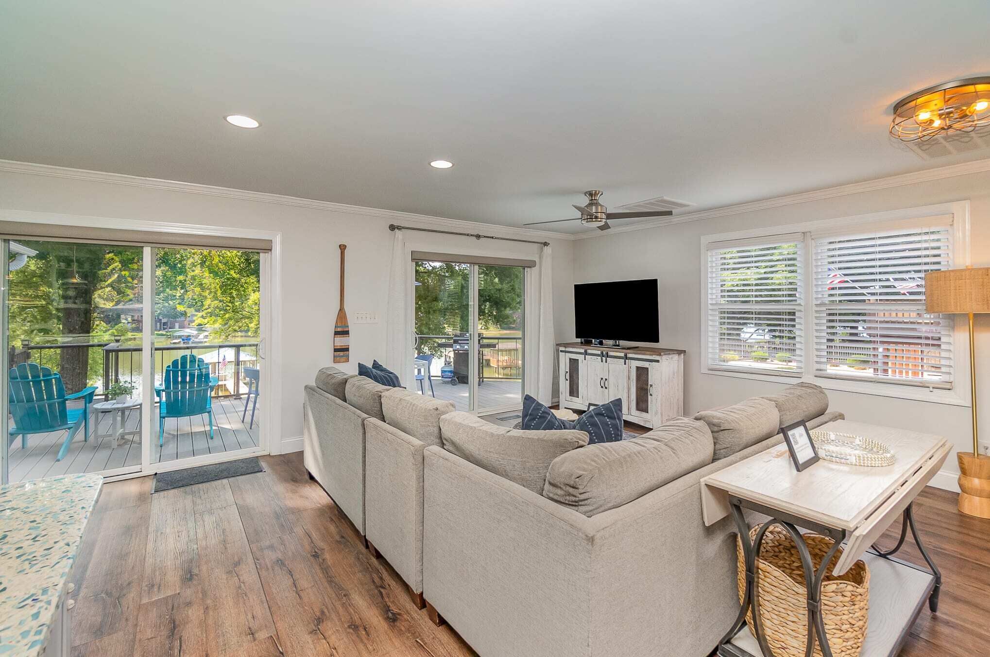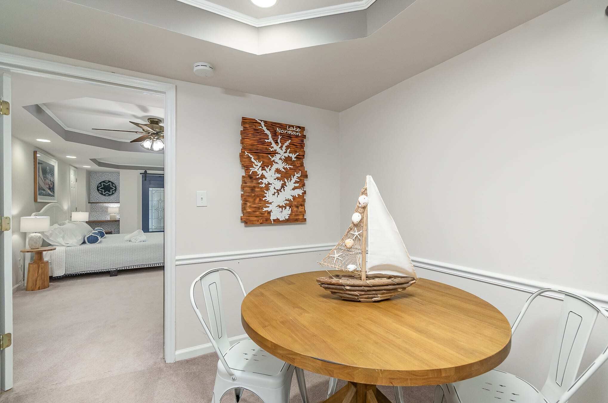 Lakefront, Paddleboards, Kayaks, & Pickleball! Summary:Enjoy 4 seasons at the serene shores of Lake Norman in this waterfront home packed full of fun and adventure. Enjoy the lake life with 2 kayaks, 2 paddle boards, an XL splash pad, or get your game on with pickleball, mini putt, spike ball, and Kan-Jam. Relax indoors with views of the lake from the sunroom. This house is sure to create a memorable getaway for friends & families.With two separate units, each with kitchens and common areas, we offer flexible space for privacy and comfort!The Space:With its scenic views and fun-packed activities, the Pickleball Paradise is ready for you to take your Lake Trip to the next level! Spend your days out on the lake while also enjoying the popular town of Mooresville. Included with the property are the following water activities!2-kayaks2- paddle boardsXL floating padOr rent a boat and dock it right in your backyard! This big & beautiful back yard offers so much space to play and take in everything Lake Norman has to offer. In addition to Pickleball, we've stocked tons of games including a mini putting green, spike ball, kan jam, a firepit, and more! It's impossible to get bored at this property. The home is setup as two different units and offers plenty of space as well as flexibility and privacy for maximum comfort. The units are not connected, and are accessible by walking down the deck stairs or around the side of the house. Smart TVs are setup all throughout the home for your entertainment, and the high speed internet is ready for those remote workers. Internet Speed: up to 300mbpsPreparing a tasty meal in the open kitchen with all your basic cookware & stainless steel appliances, toaster oven, pots/pans, plates/bowls utensils. The open floor plan allows you to interact with everyone in the great room without missing a beat. Then enjoy meals at the large dining table to an amazing 180 degree view of the lake. Start your mornings with complimentary coffee & tea! Comfortably enjoy one King bedroom on the entry level, as well as one full bath. The lower level features another King bedroom with ensuite bathroom, and bunk room for even more fun! Fresh towels, and linens are provided for each guest, as well as plenty of shampoo, conditioner, body wash, and hand soap, Hairdryers are available in each property. Don’t forget to spend some time outside on our large fully furnished deck. The yard is nestled in a beautiful wooded cul-de-sac and is fully fenced in. Approved pets are welcome! Book now, and get the most out of Mooresville!.Guest Access:Guests will have private access to both units and all the amenities, ensuring a seamless and enjoyable stay. The property features three bedrooms, with one upstairs and two downstairs, providing comfortable sleeping arrangements for your group. Both units are equipped with fully functional kitchens, perfect for preparing meals at your convenience. The upstairs living room connects to a bright and airy sunroom, an ideal spot for morning coffee or relaxation. At the same time, the downstairs common area includes comfy seating, a TV, and a Murphy bed for additional sleeping space.Outside, guests can enjoy ample parking for up to five vehicles and a variety of recreational activities. The outdoor play area includes pickleball, mini putt, spike ball, and Kan-Jam, catering to all ages and ensuring endless fun. Additionally, water enthusiasts will appreciate access to two kayaks, two paddle boards, and an XL splash pad, perfect for enjoying the lake.Self-entry via an electronic lock provides easy and secure access for everyone in your group. Should you need an early check-in, please request it in advance, and we will accommodate if possible.Getting Around:Boat rentals are available at several marinas around the property! To get to the main channel you must fit under a bridge that is 5'3" high.House Rules: The home is friendly to small children and pets, provided they are house trained. Unfortunately, cats are not allowed. All pets must be approved with a non-refundable pet fee of $150 per pet, payable before check-in. Unapproved pets will incur a $250 fine. For stays over 1 week, MyTripify may require guests to purchase travel insurance.Starter supplies are provided for 3-4 day stays; guests must replenish supplies for longer stays.We use a rental agreement with each reservation to outline and protect your rights and responsibilities. A completed copy will be sent before your reservation starts. According to the NC Vacation Rental Act, signing the agreement, paying money, or taking possession of the property after receiving the agreement confirms your acceptance of its terms and your intent to use the property for a vacation rental.Your stay is important to us! Please review the following house rules; any breach is subject to a fine.The minimum booking age is 25. If the booking party is under 25, they may submit the ID of any guest staying at the property. If no guest meets the age requirement, MyTripify may collect a refundable $1,000 security deposit. Alternatively, the reservation may be canceled, with a refund according to the listing's cancellation policy.Any collected security deposit will be refunded after checkout, provided the house is inspected and no damage is found. Any repair costs will be deducted from the deposit.For safety, each guest must complete the check-in form, including a valid government ID. Incomplete or inaccurate information will result in the termination of your stay without a refund.Check-in and CheckoutCheck-in is at 5:00 PM. Early check-in (1:00 PM) is available for an additional $99 + booking platform fees, subject to availability.Check-out is at 11:00 AM.Check-in times have been adjusted due to COVID-19 cleaning protocols. Early check-in requests will be accommodated if possible. Staying past checkout will result in a $250 fee plus cleaning reschedule/cancellation charges and does not entitle the guest to extend their rental per