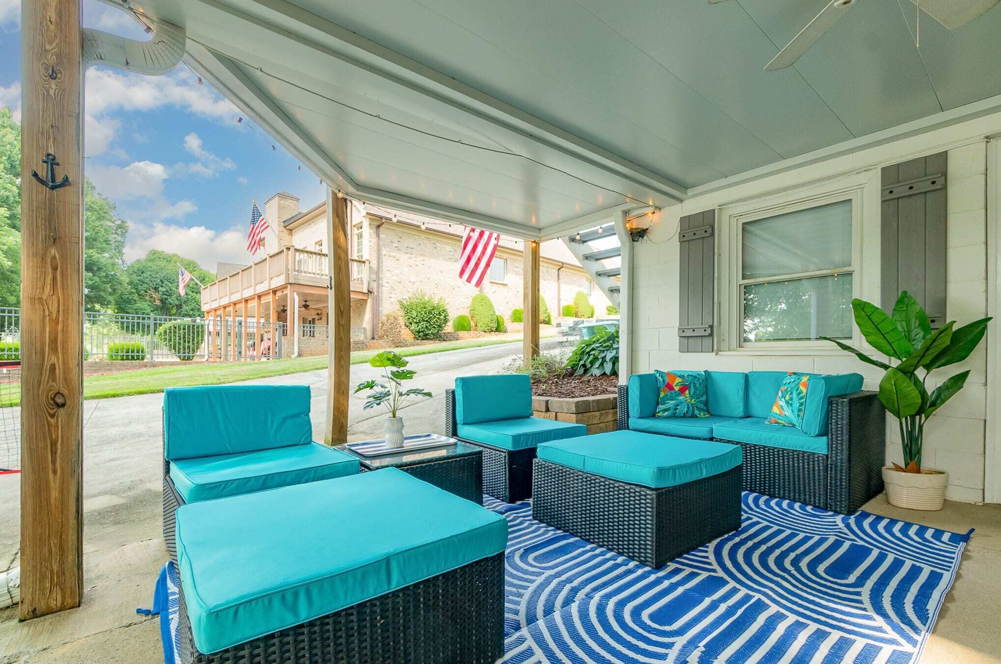 Lakefront, Paddleboards, Kayaks, & Pickleball! Summary:Enjoy 4 seasons at the serene shores of Lake Norman in this waterfront home packed full of fun and adventure. Enjoy the lake life with 2 kayaks, 2 paddle boards, an XL splash pad, or get your game on with pickleball, mini putt, spike ball, and Kan-Jam. Relax indoors with views of the lake from the sunroom. This house is sure to create a memora...