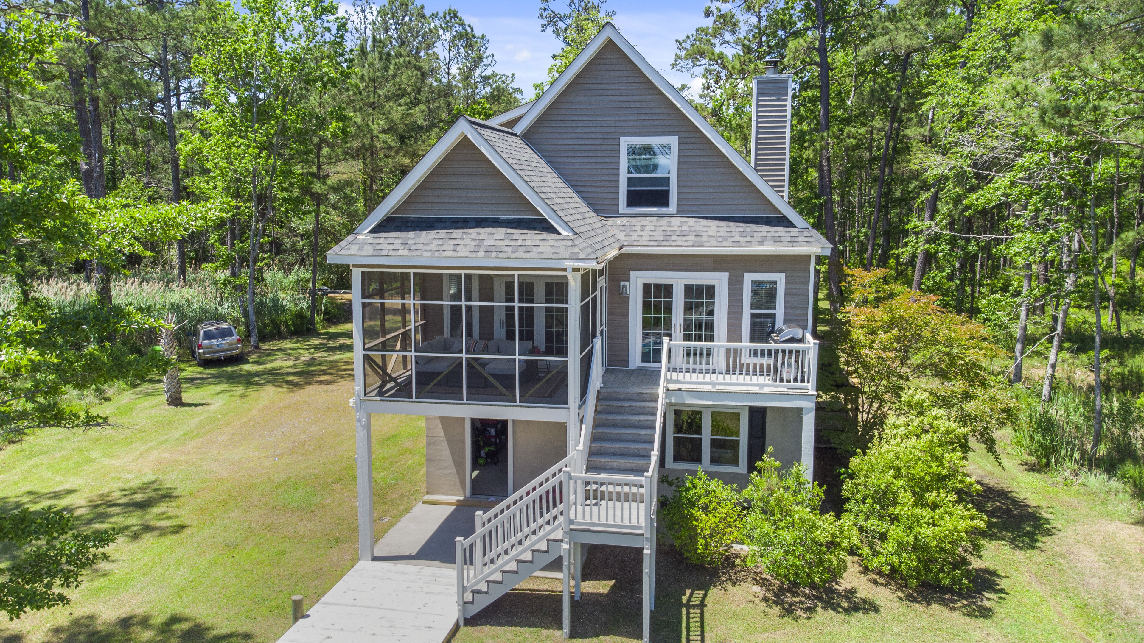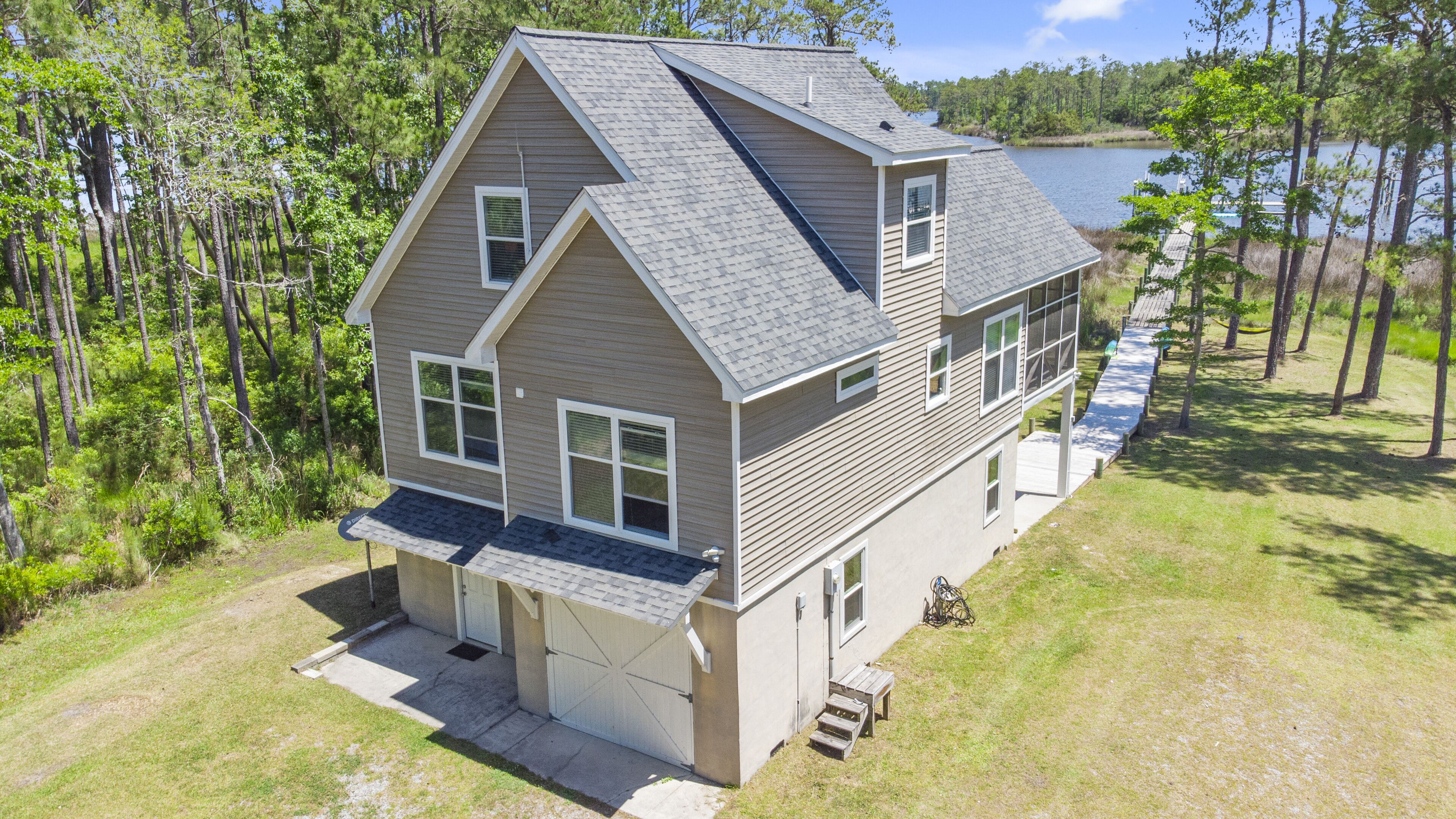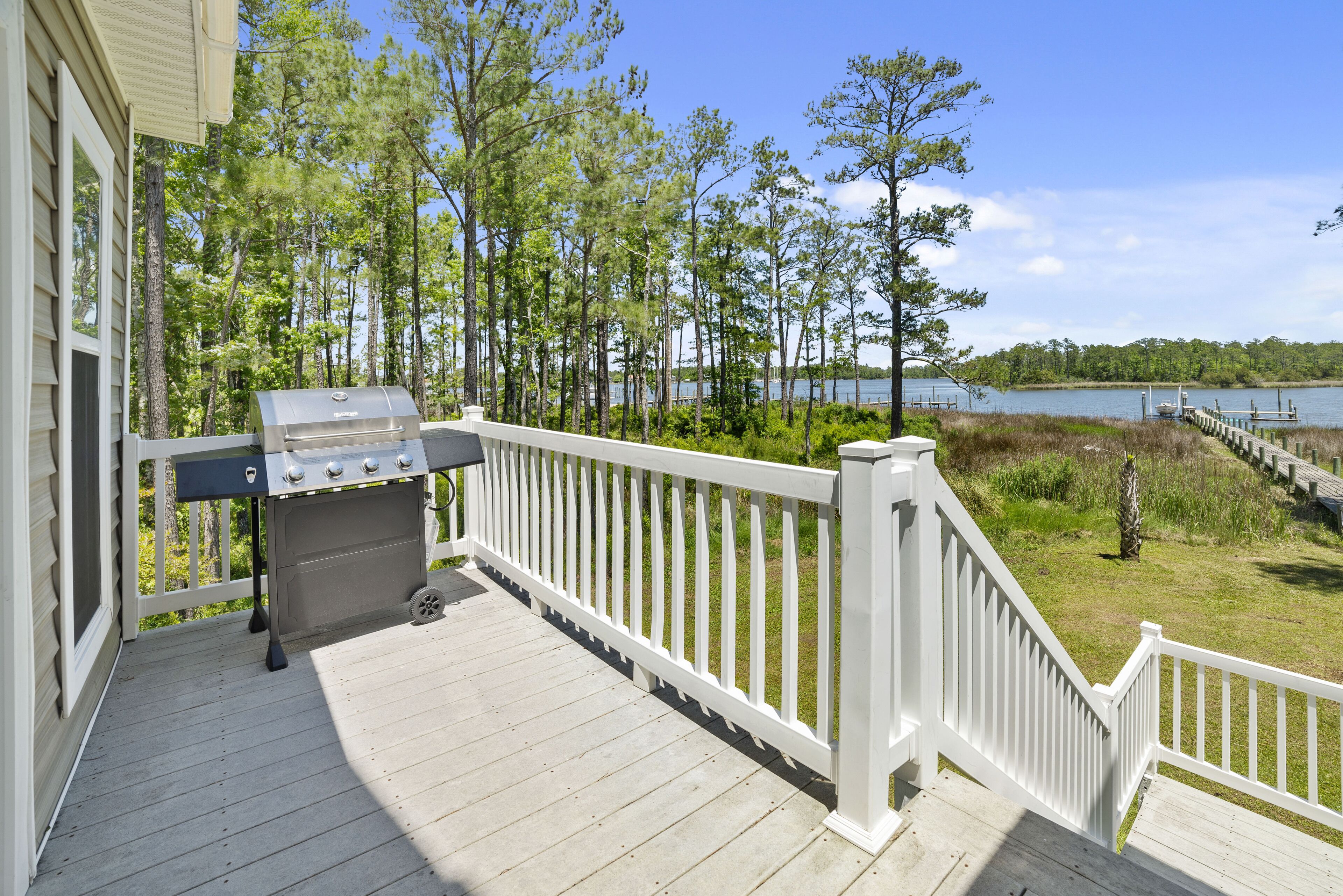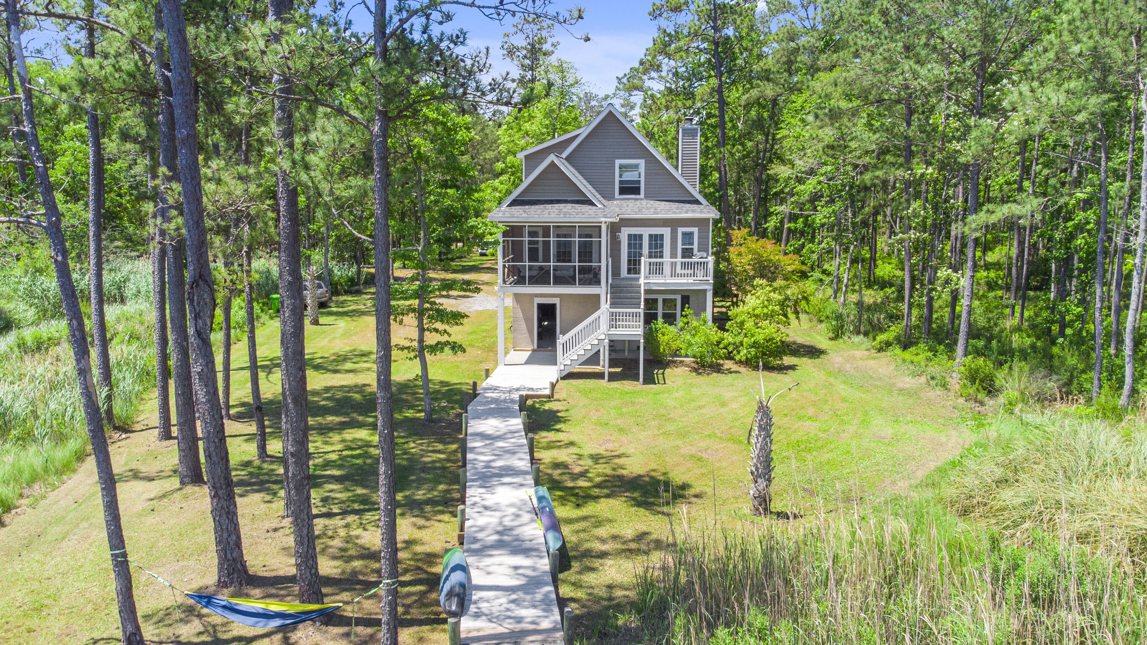 Cast Away Waterfront Getaway with Dock Escape to Cast Away and enjoy your own private waterfront getaway with dock. By land, Cast Away is located just minutes from Oriental, the Sailing Capital of North Carolina and just across the water from River Dunes. By sea, Cast Away is located just off the Intracoastal Waterway (ICW) and the open fishing waters of the Neuse River and Pamlico Sound.Enjoy lasting water views from this elevated coastal home with 3 bedrooms and 2 baths. The main living area is located on the second floor and has an open concept floor plan with living room, kitchen, dining area, full bath with shower, third bedroom with queen bed, and day room with washer and dryer. The kitchen has beautiful granite counter tops, large island with stools, refrigerator with ice maker, dishwasher, electric stove, microwave, drip coffee maker and toaster oven. There is also a dining area with adjacent screened porch and open deck with gas grill where endless hours will be spent watching the water and wildlife. Upstairs you will find the main bedroom with king size bed and a second bedroom with two twin beds. Upstairs will also have a shared bath that includes a shower and soaking tub. During your stay you will be able to use the closed in ground floor garage area where you and your guests can enjoy a friendly game of ping pong. This property features a concrete pier with plenty of room to tie up your boat. There is a ramp less than 1 mile away - Talk about convenient! There are two kayaks for you to use while exploring the local waters and creeks. Kids will enjoy fishing right from the dock as well! Water depth is 3-4 feet at end of pier. Please know that the boat and boat lift are not included or available for guest use.About our Village - Oriental, NC, known as the Sailing Capital of North Carolina and located in beautiful Pamlico County. This scenic year round boating destination is great for anyone looking to getaway for the weekend, or an extended stay. This bike, sailor, and family friendly hideaway is known for its breath taking waterfront views, great fishing, steady winds, and community events. Our local hospitality will welcome you and your family to experience local events such as our annual Croaker festival, Dragon Run, Community Yard Sale, Music Festivals, Farmer's Market, and more. While you are here we invite you to dine in one of our local restaurants where fresh seafood is always on the menu. Wake up with a nice cup of hot coffee and enjoy the morning views of the harbor at our local coffee shop. While this may seem like a small town, we have a lot to offer! Oriental has something for everyone and people of all ages. We look forward to being your next getaway. If you are interested in any recommendations for boat tours, power/ sail boat rentals, fishing trips, kayaks, or any other recommendations please give us a call and we will be happy to help.From Oriental you can take advantage of day trips to the beach, Outer Banks, historic New Bern or to quaint coastal towns with the best that seafood restaurants have to offer. This area offers the best in fishing, boating, kayaking and paddle boarding twelve months out of the year.This property allows up to two well behaved dogs with a $25 per day pet fee collected by the host prior to arrival.WiFi and Internet TV is complimentary. Linens and towels are provided for your stay.Fireplace in non-working and for decoration only. Stays longer than 27 days will be assessed an additional cleaning fee, collected by host prior to arrival. This property is for your enjoyment and not shared with other renters.