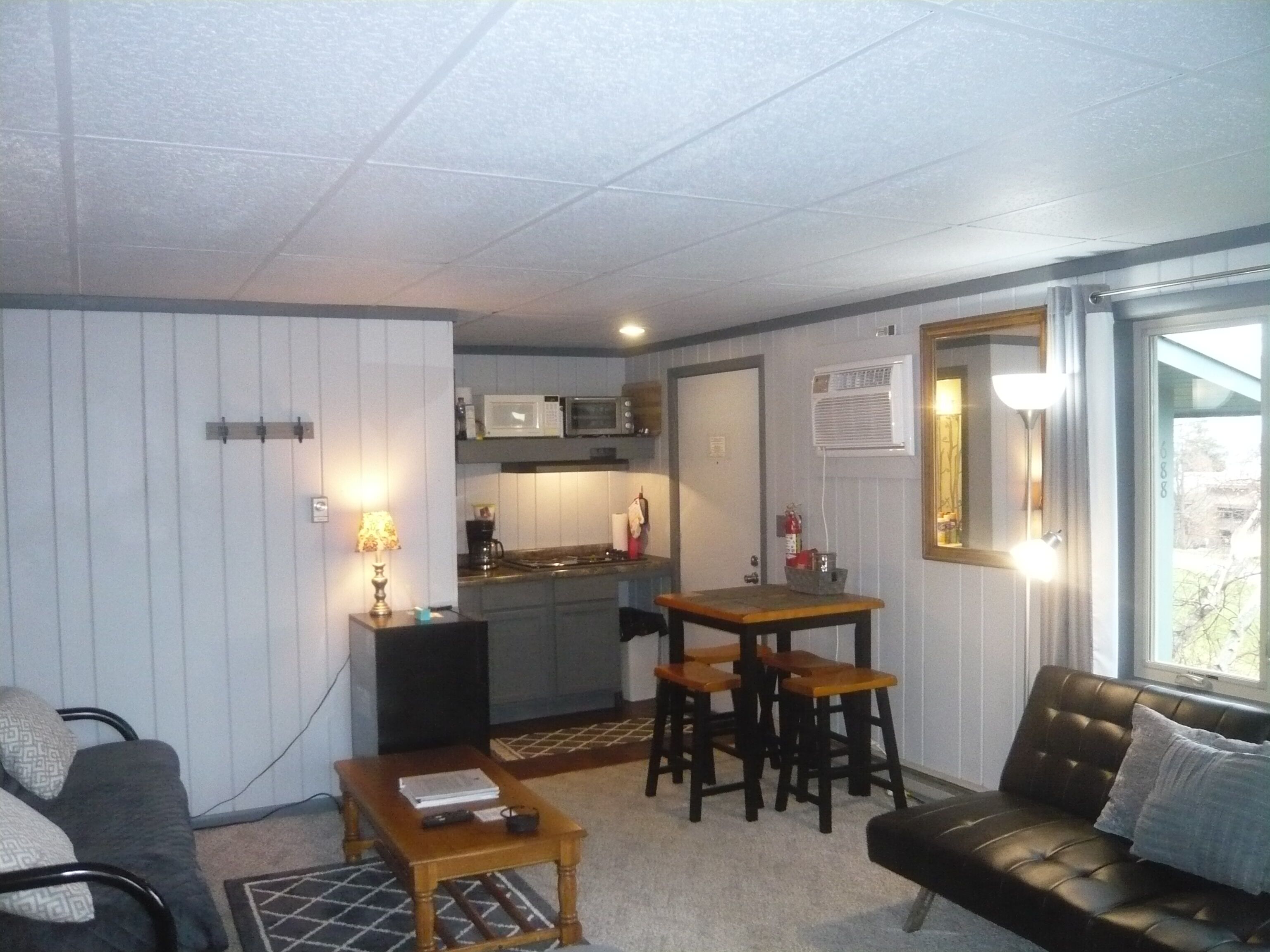 Sleeps 2-6 Adults (1-3 cpls.) Just steps away from the ski slopes at the Summit, you can find, this versatile studio condo. It is a winter delight! Free resort shuttle service is available for short rides to Schuss Mtn. Cedar River and into town. So park your car and leave the transportation to us. Enjoy breakfast at the Lake View Hotel, just steps away. Then spend the day on the slopes or tubing with the kids at the Summit! Stop by Sarducci's for dinner. Then finally stretch out on a California King Size bed, to put your feet up and relax. This studio condo has a small living area and coffee table and can be used as a cozy little suite for two. Or use the versatility of the futon couches to provide plenty of space for 2 more couples or a few kids. You can use the coffee maker, microwave and mini-fridge to heat and store your snacks. We are “pet friendly” and often bring our 4 legged furry friends with us when we stay. People with well behaved dogs are welcome and people with pet allergies should take note. We always have a great time when we visit the resort and are happy to help you do the same. Private Wi-Fi, Digital steaming TV, ROKU, Blu-Ray player and radio provide the “down time” entertainment. Everything you could want, is literally steps away. Spa, fitness center and so much more. Located at Shanty Creek Resorts in Bellaire, Michigan. Enjoy the best North West Michigan has to offer in resort style vacationing, year round.