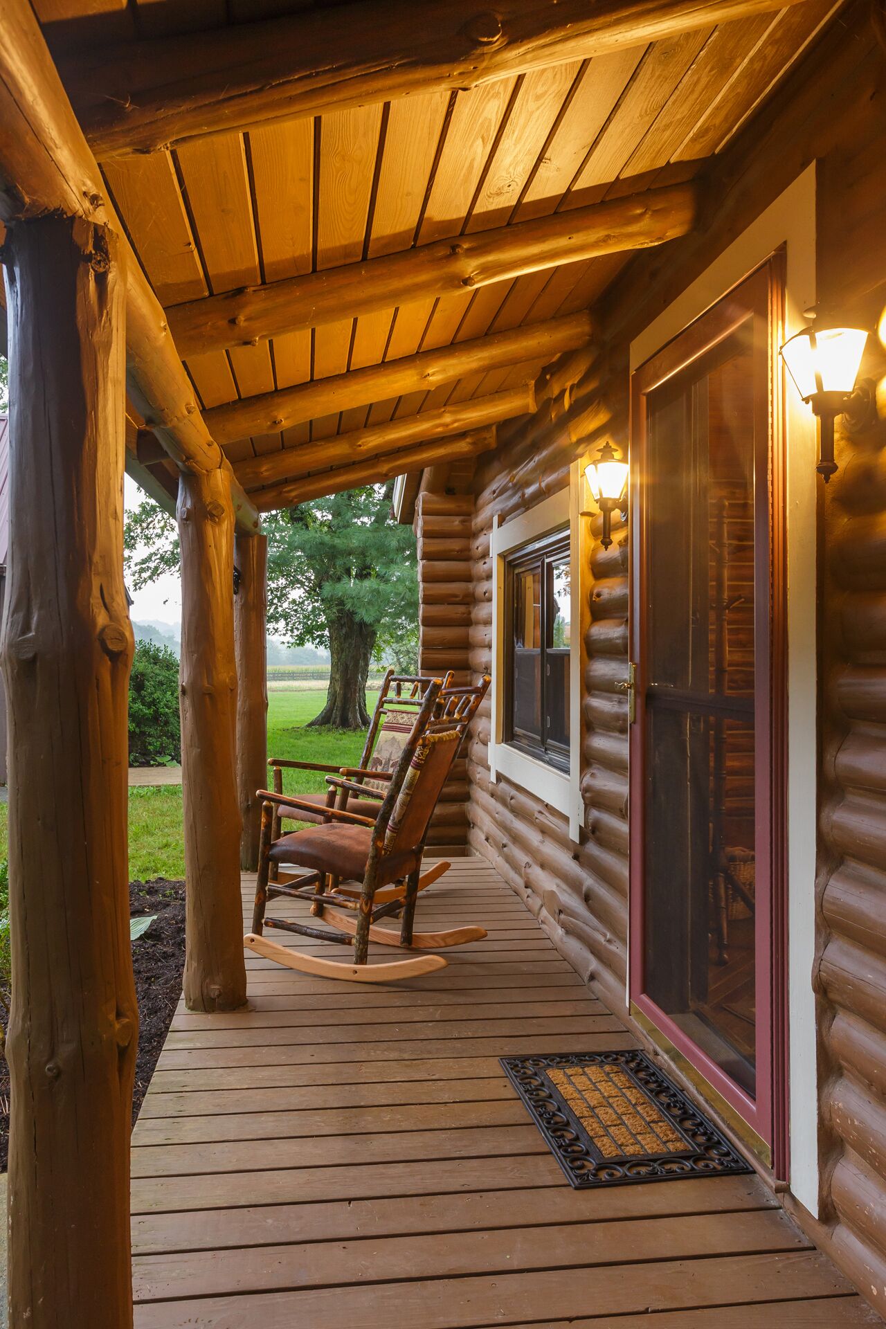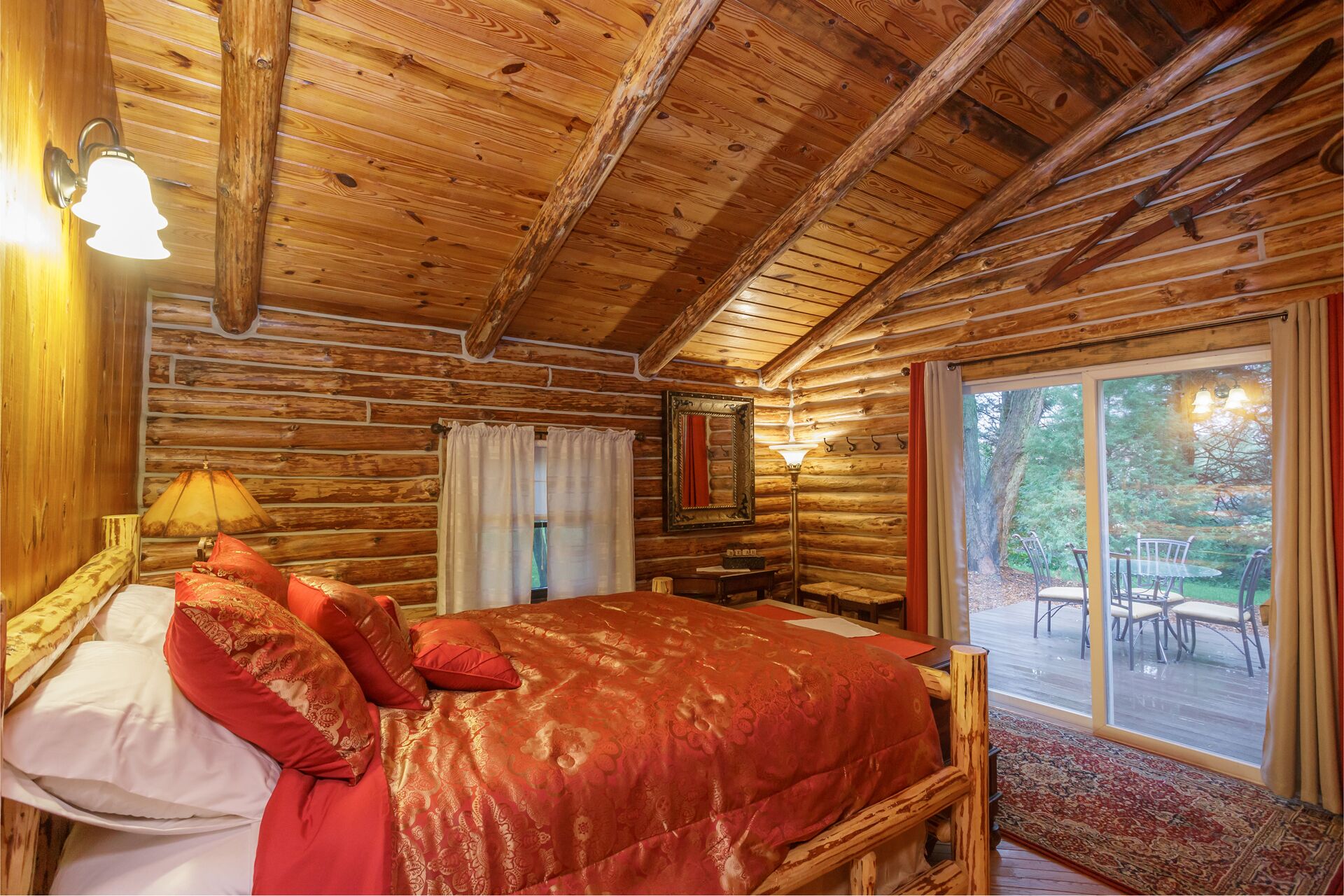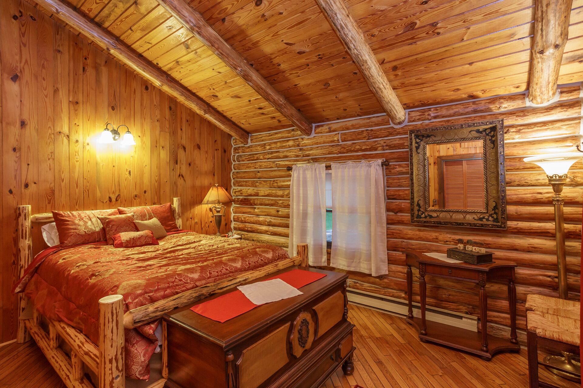 Cozy Cabin happiness This is an all log home inside an out, with a massive back yard with mature landscaping also has a beautiful 5 seat hot tub with speakers on the back deck which give you a pleasant countryside view, a private location in amish country, The inside is designed to give you that log cabin feel, with a gorgeous wood-burning stone fireplace, leather sofas, all log beds, bedroom #1 i...