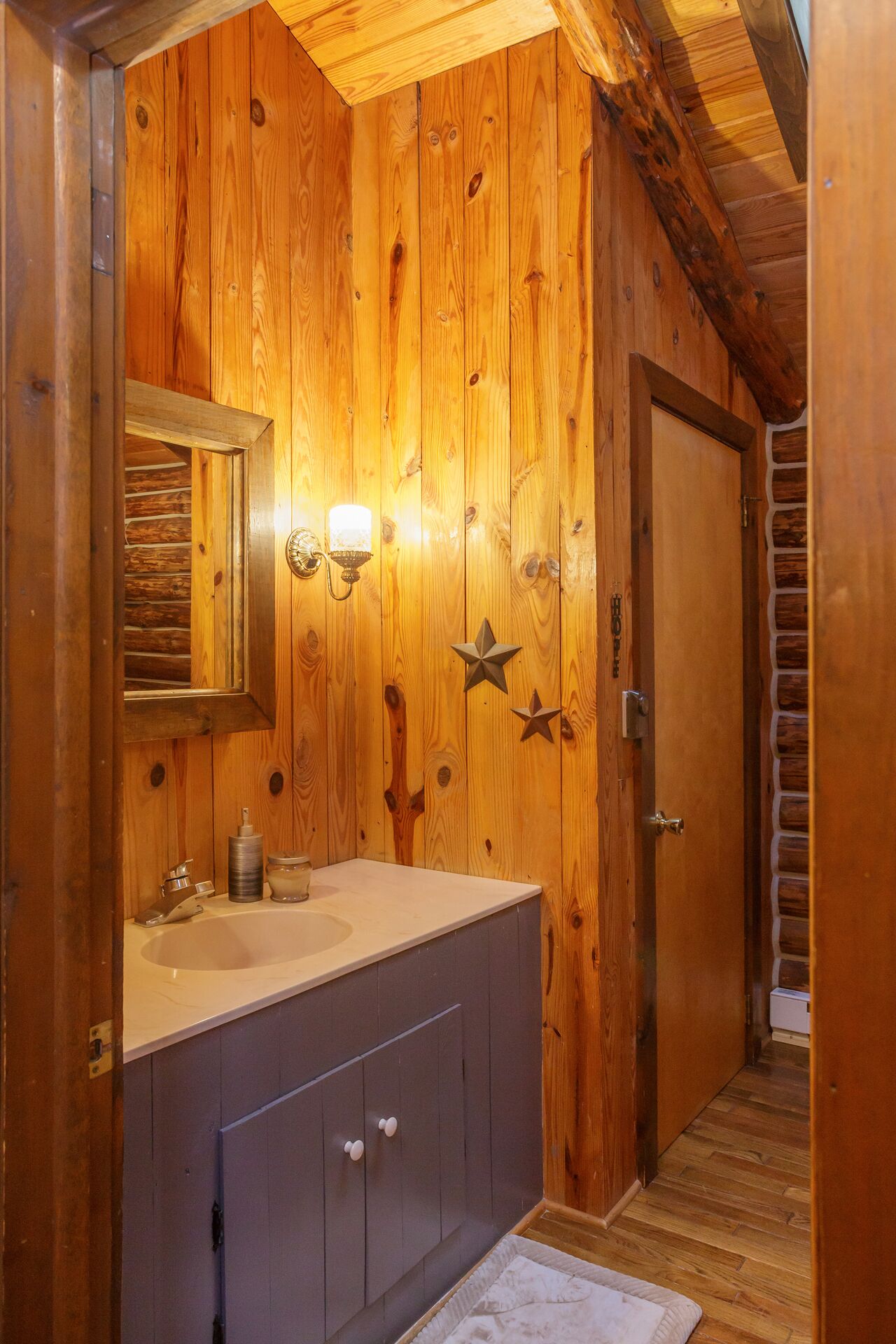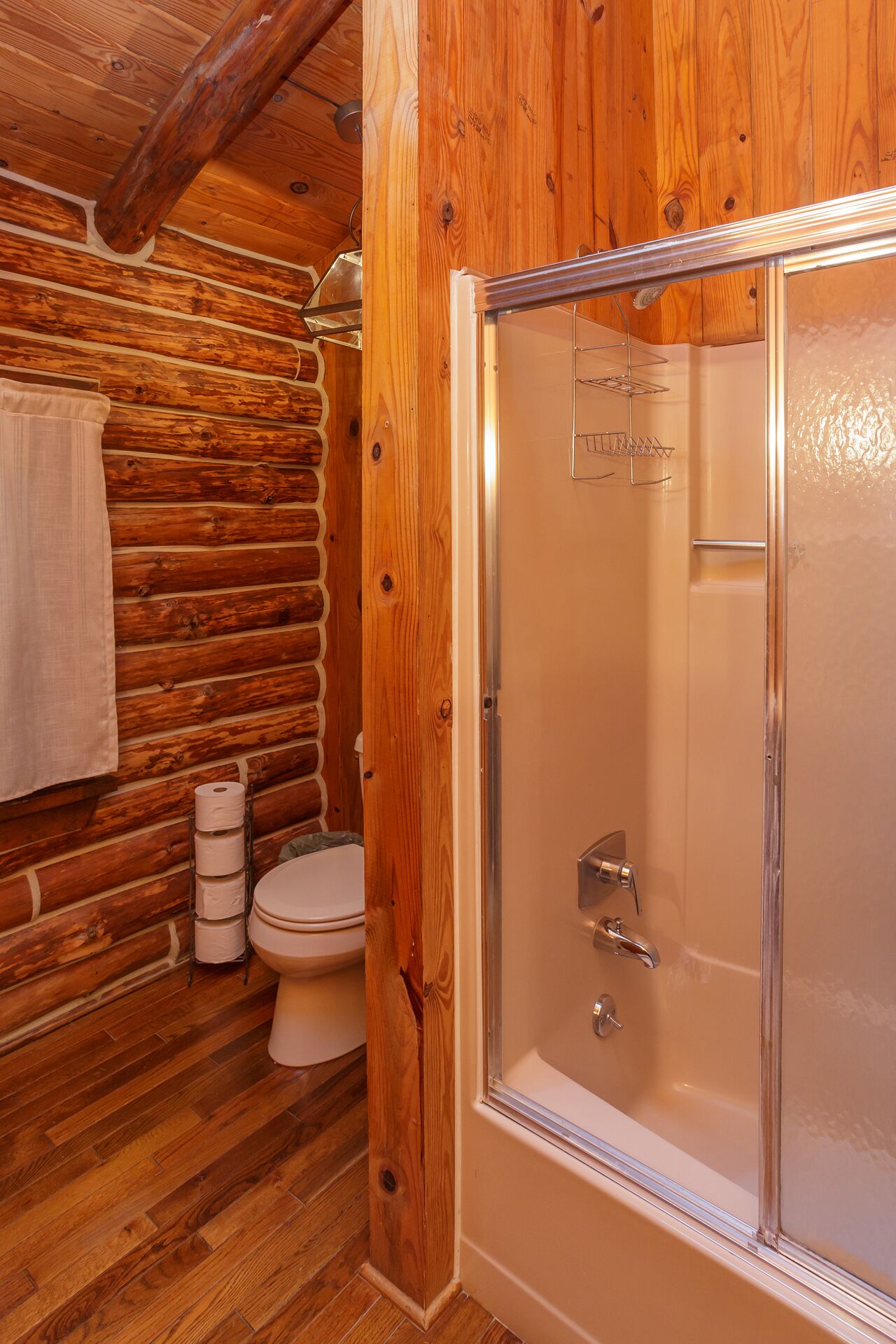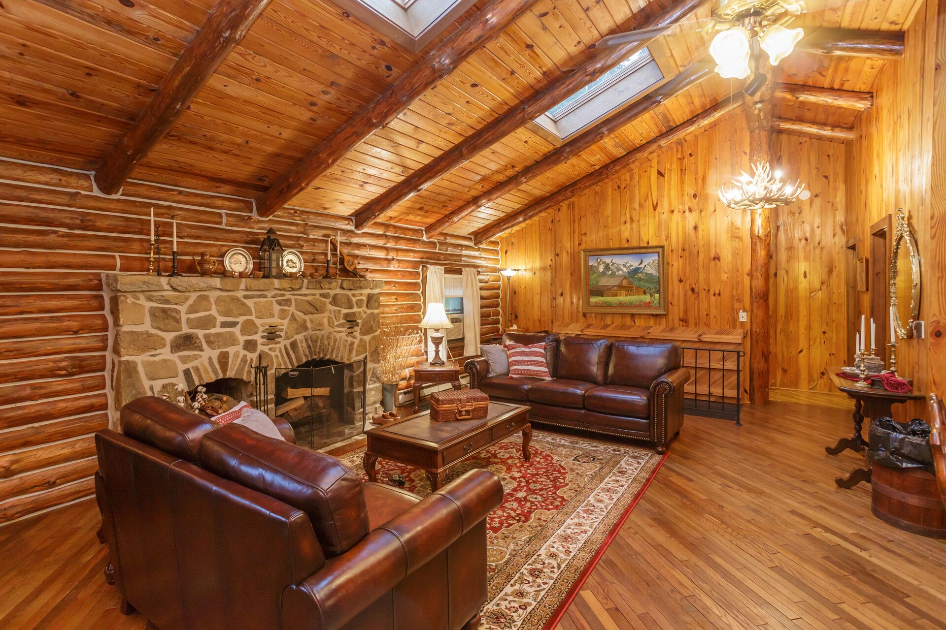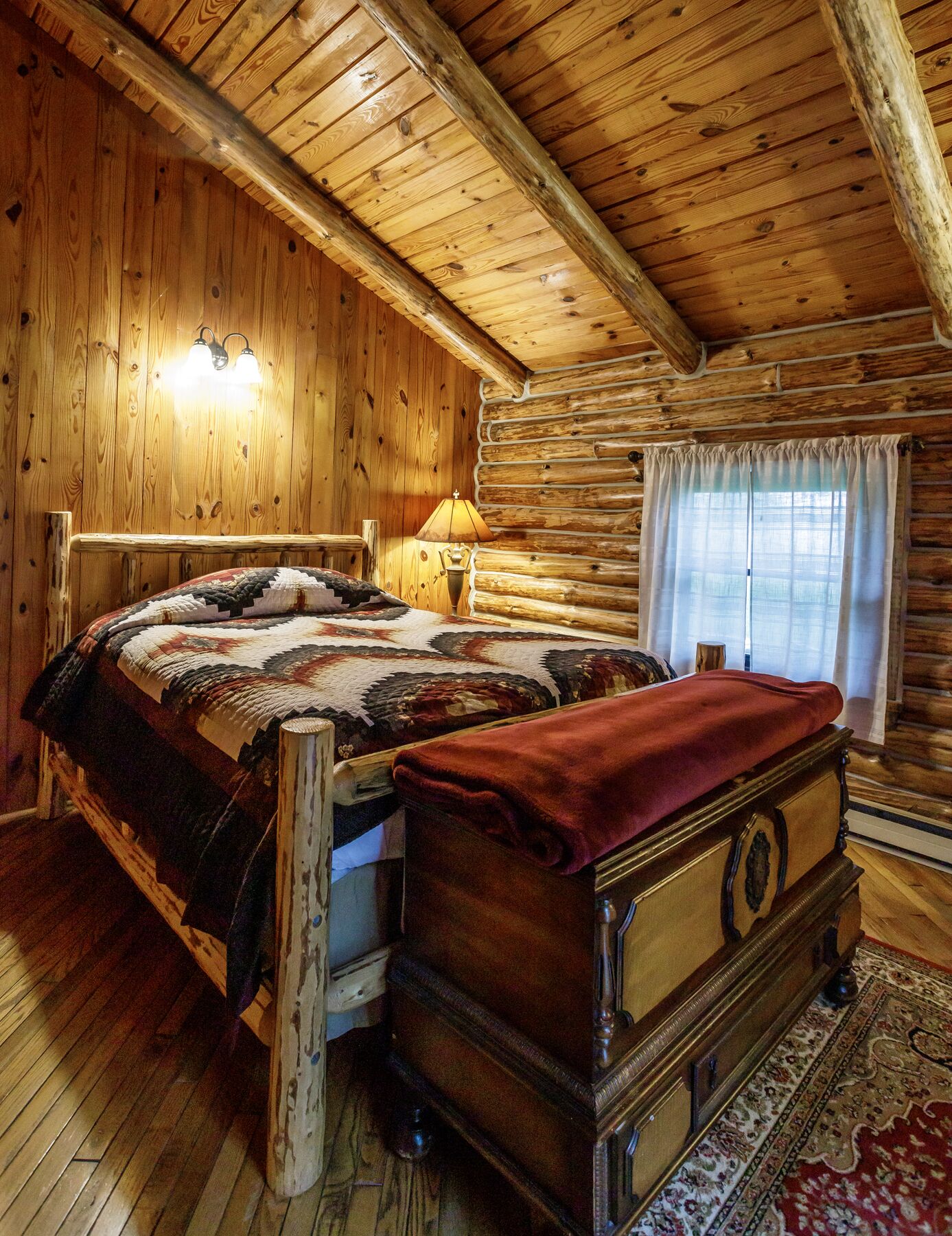 Cozy Cabin happiness This is an all log home inside an out, with a massive back yard with mature landscaping also has a beautiful 5 seat hot tub with speakers on the back deck which give you a pleasant countryside view, a private location in amish country, The inside is designed to give you that log cabin feel, with a gorgeous wood-burning stone fireplace, leather sofas, all log beds, bedroom #1 i...
