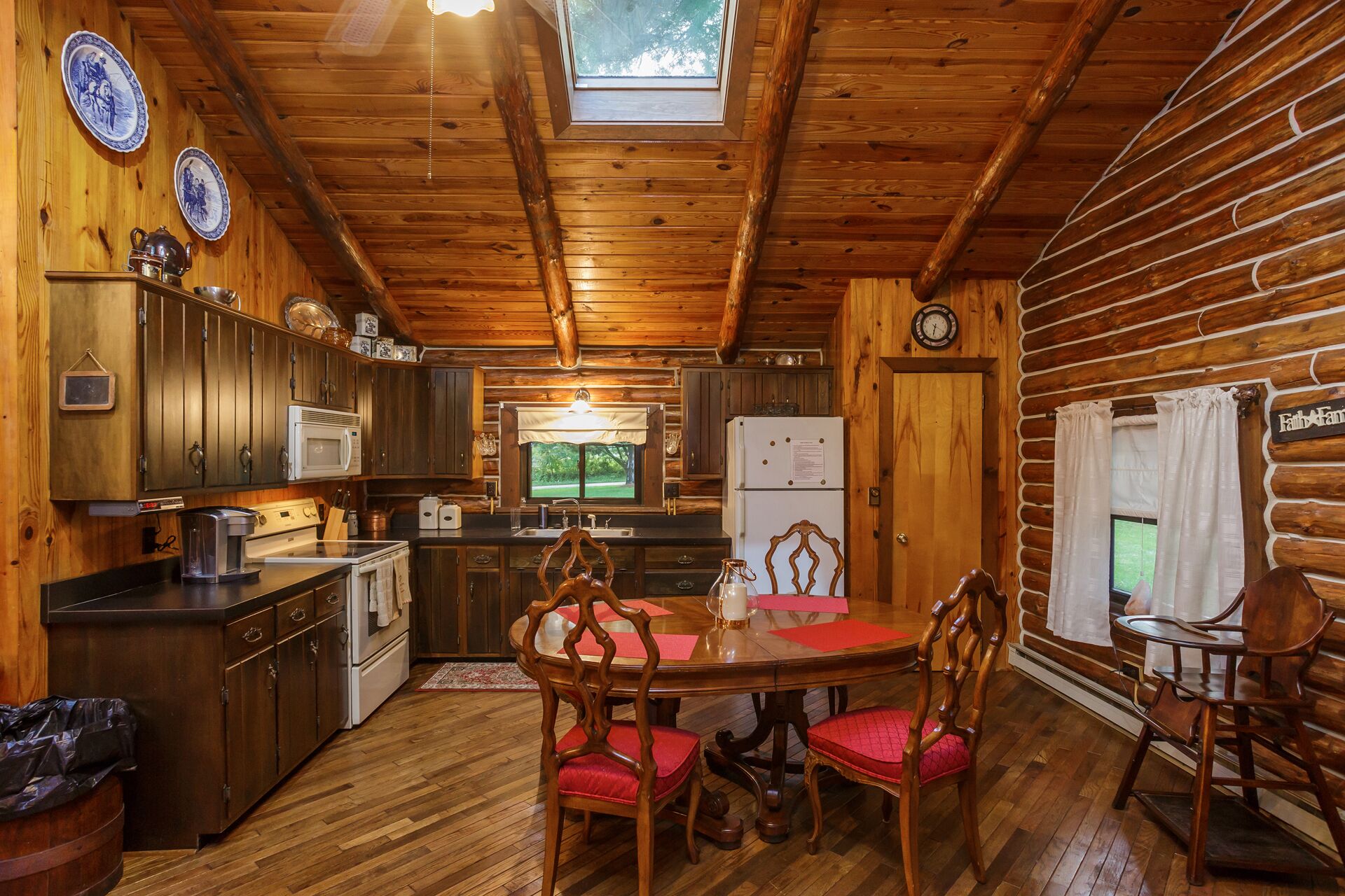Cozy Cabin happiness This is an all log home inside an out, with a massive back yard with mature landscaping also has a beautiful 5 seat hot tub with speakers on the back deck which give you a pleasant countryside view, a private location in amish country, The inside is designed to give you that log cabin feel, with a gorgeous wood-burning stone fireplace, leather sofas, all log beds, bedroom #1 is the master bedroom with a queen size bed and bedroom#2 has a full bunk bed which can sleep 4 and bedroom #3 has a full bed with a room divider and a twin bed perfect for couple with small child.....a unique game room with a large pool table, Its a fully furnished kitchen coffee maker, toaster, blender, crockpot, ect and washer and dryer, also has free wifi, Has an enjoyable back deck with grill for any type of grilling needs, Its close to Welsh mountain park and Money rocks country park, so you will not have to go far for some great hiking, also not for from shady maple smorgasbord ...9.7 miles of driving through Amish Country to the town of Intercourse where Kitchen Kettle is located and many other awesome locations!!!!