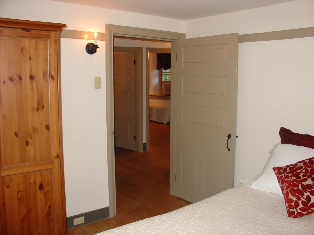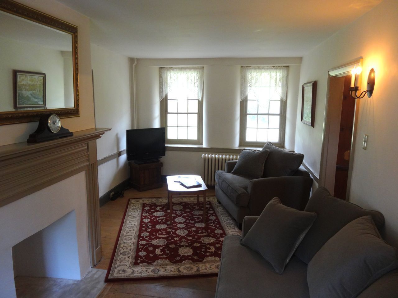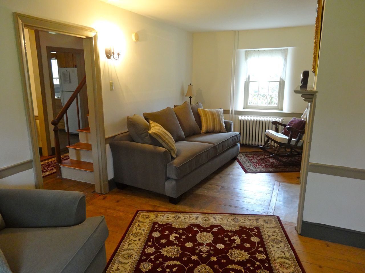 Circa 1790 Stone Farmhouse on 10 acres of your own Private Green Space Beautiful country setting on 10 acres down a quarter mile lane! The property is surrounded by farm fields and forest. The house is a restored 200+ year old stone farmhouse with original random-width hardwood floors throughout. Main bedroom has a queen bed, second bedroom has a queen-size bed, third bedroom has a full/double-...