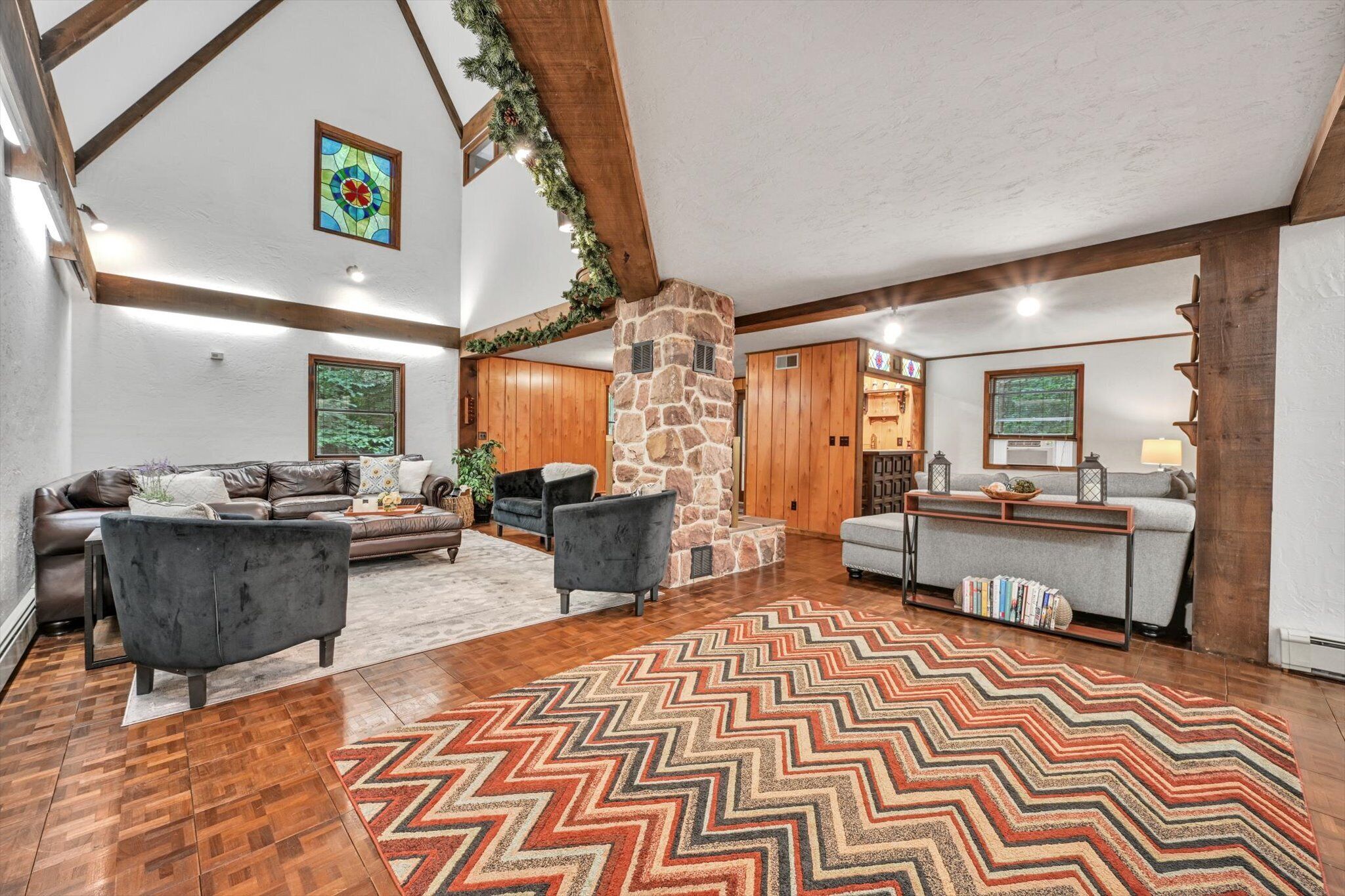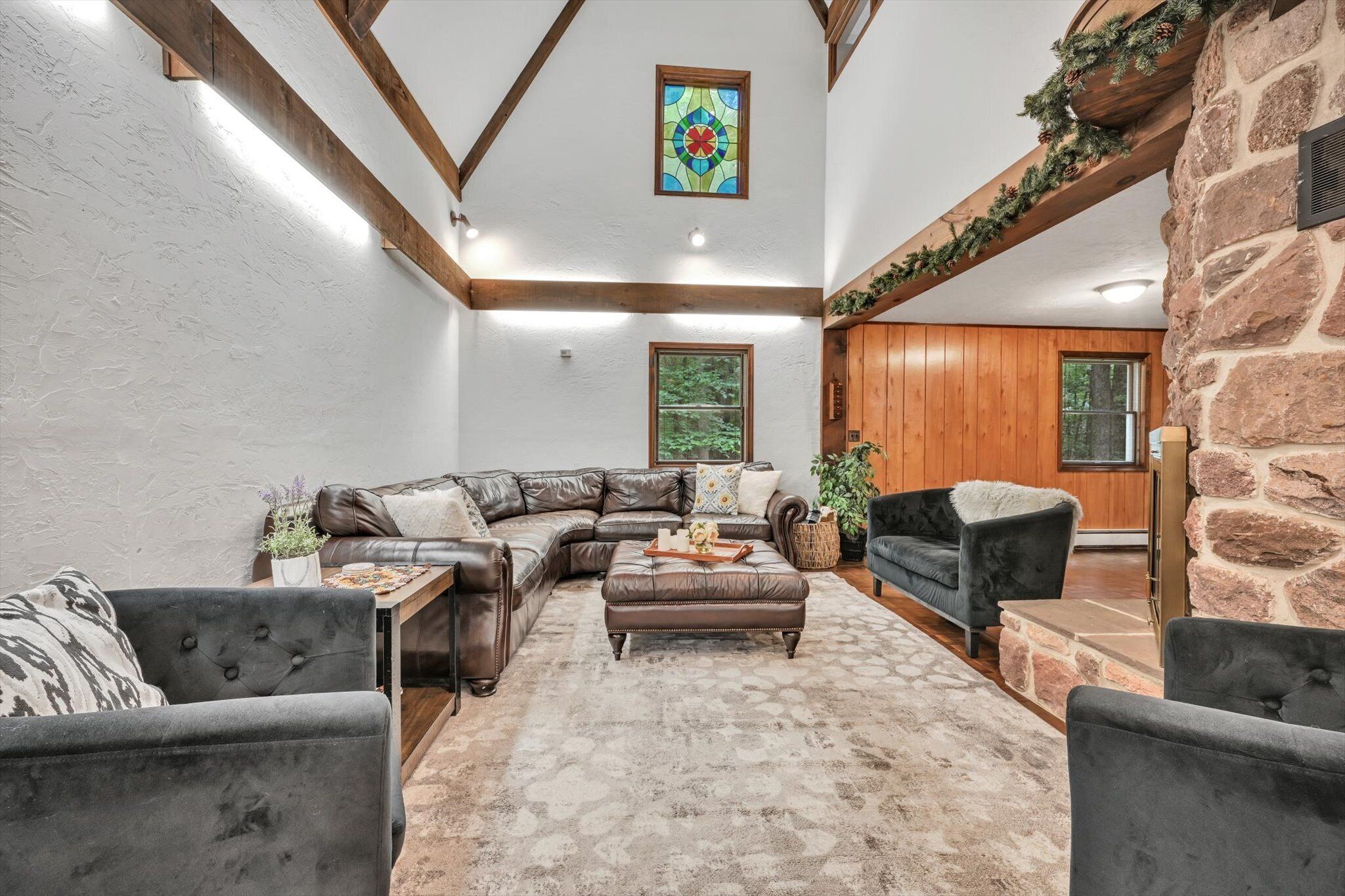The Swiss Chalet in Mount Gretna Welcome to our stunning home located in the charming town of Mount Gretna, Pennsylvania! With plenty of space and amenities to enjoy, this 4,000+ sq ft home is perfect for groups of family and friends looking for a memorable vacation.The home features 6 spacious bedrooms and 4 full bathrooms, comfortably accommodating up to 10 guests. The large master suite has a queen-sized bed complete with multiple skylights, jetted tub, and shower. The other bedrooms have queen or double- sizedbeds. The bathrooms are modern and well-appointed, ensuring that everyone has plenty of space to freshen up and relax.The living room features a cathedral ceiling with ample seating. In addition to a Sony stereo system, the great room also contains the wet a bar; perfect for entertaining guests. The dining area has plenty of seating for group meals, and the fully equipped kitchen has everything you need to whip up delicious meals for your entire party.Outside, you'll find a spacious deck with plenty of seating and a grill, perfect for summer barbecues and enjoying the beautiful Pennsylvania weather. Please note that Mount Gretna is a close community that appreciates outside noise kept to a minimum. Children can enjoy the local park located a short walk down the hill.We have parking for 2 compact cars in the garage with room for an additional 4 vehicles in the drive. Street parking along Lancaster Ave is permit parking only. The house is ideally positioned for exploring all that Mount Gretna has to offer. From hiking and biking to shopping and dining, there's something for everyone here. The Mount Gretna Playhouse, Tabernacle, and Jigger Shop are all with easy walking distance.So why wait? Book your stay today and start planning your dream vacation in Mount Gretna!Additional things to do in the area:We are a pleasant 30 min drive from Hershey Pennsylvania, which in addition to the famous Hersheypark, also has The Hershey Theatre, The Giant Center, Tanger outlets, and so much more.The Middle Creek Wildlife Preserve is 15 minutes away which has great hiking trails and a nature museum. The preserve is well known as a stop for the annual snow geese migration. It’s often active in late February or early March. Also in late February, many bird watchers travel to see the migrating tundra swans.Within walking distance of the house (most less than 15 min walk) are the Mount Gretna Theatre, the Mount Gretna Tabernacle, The Jigger Shop, La Cigale, art gallery, library, mini golf, local history museum, and several restaurants. The Lebanon Rail Trail is just down the hill and is open for walking, running, or biking.