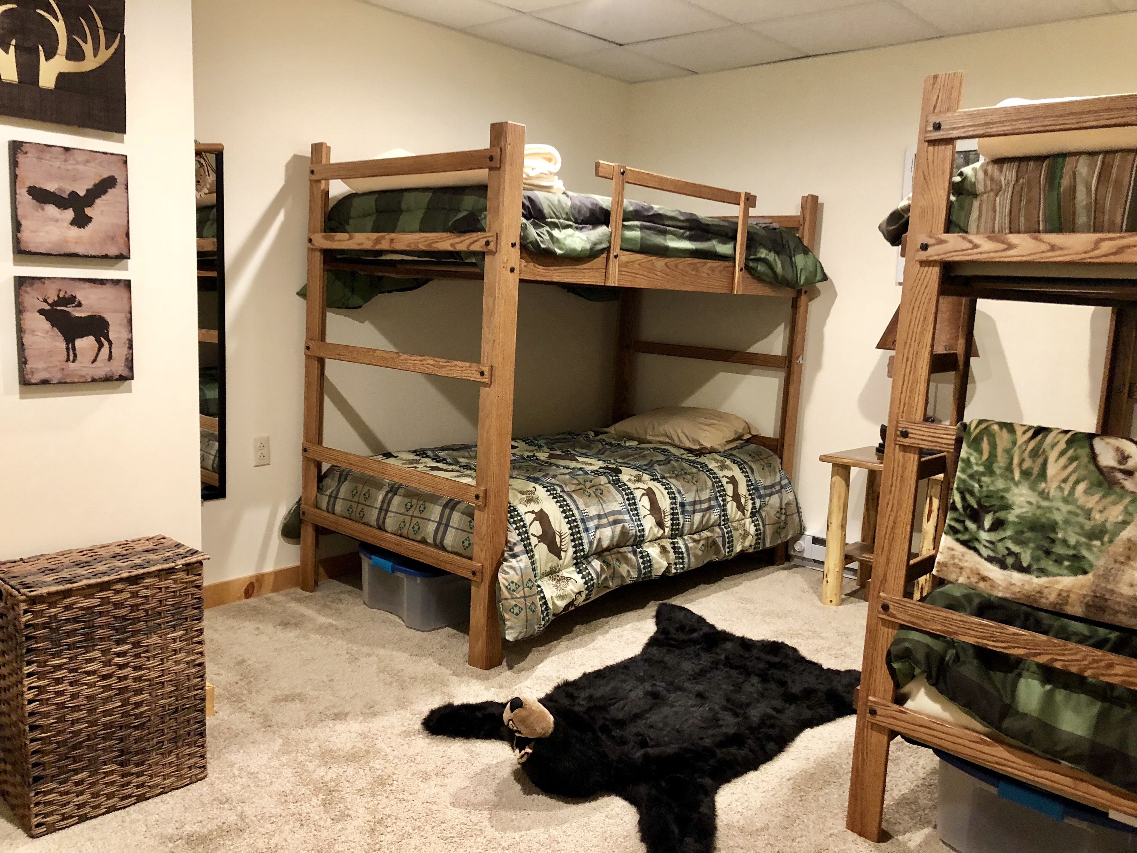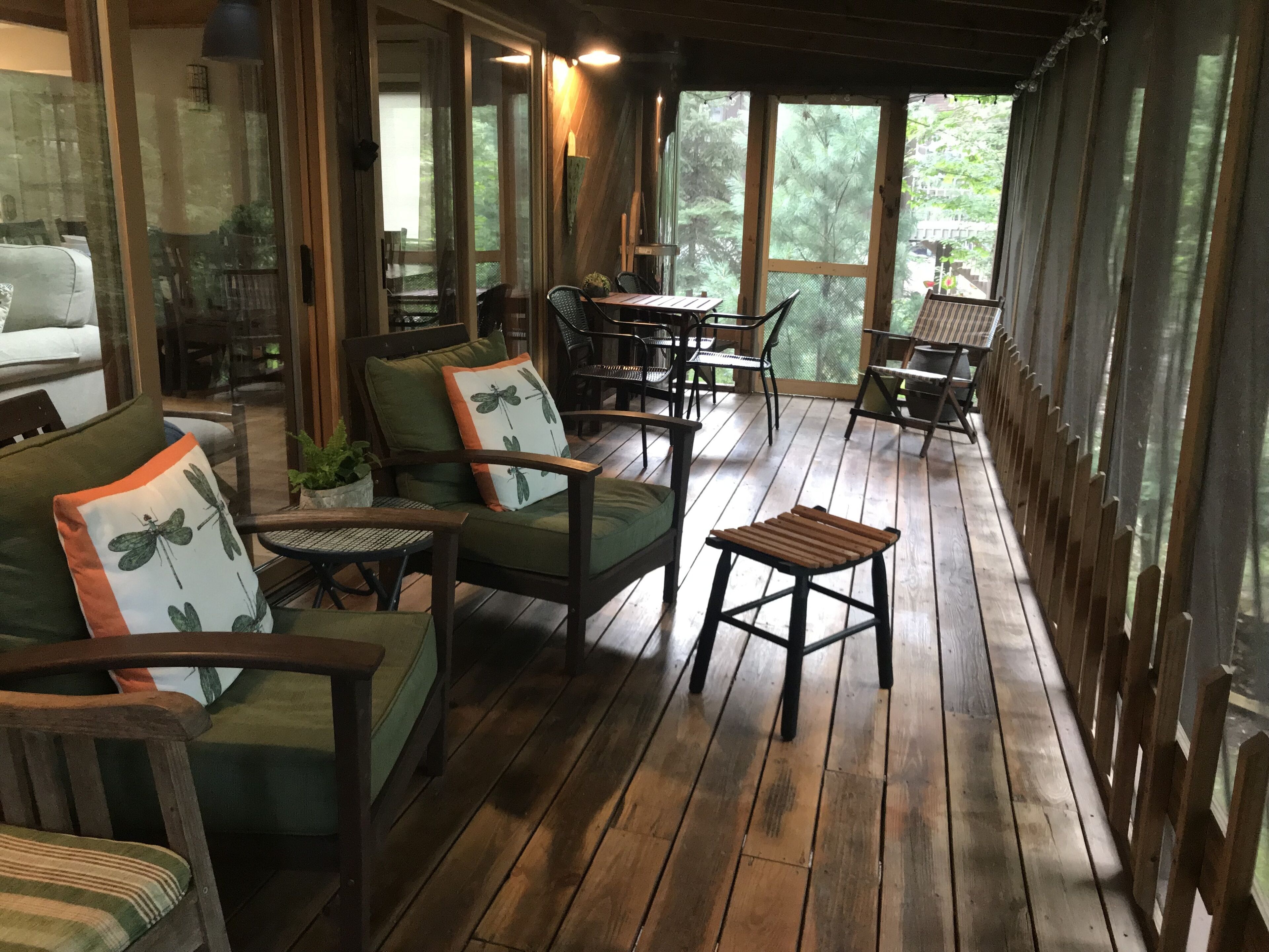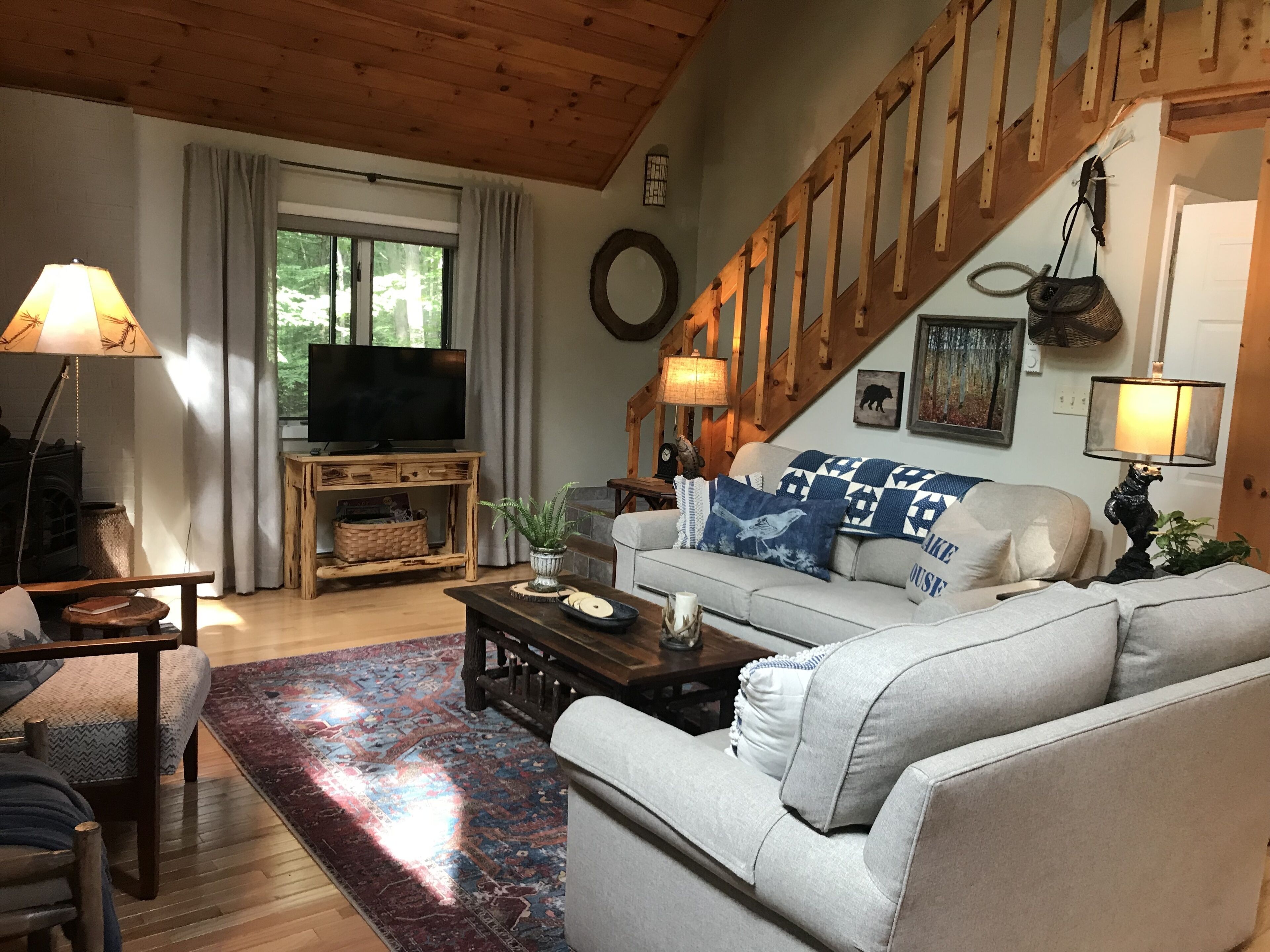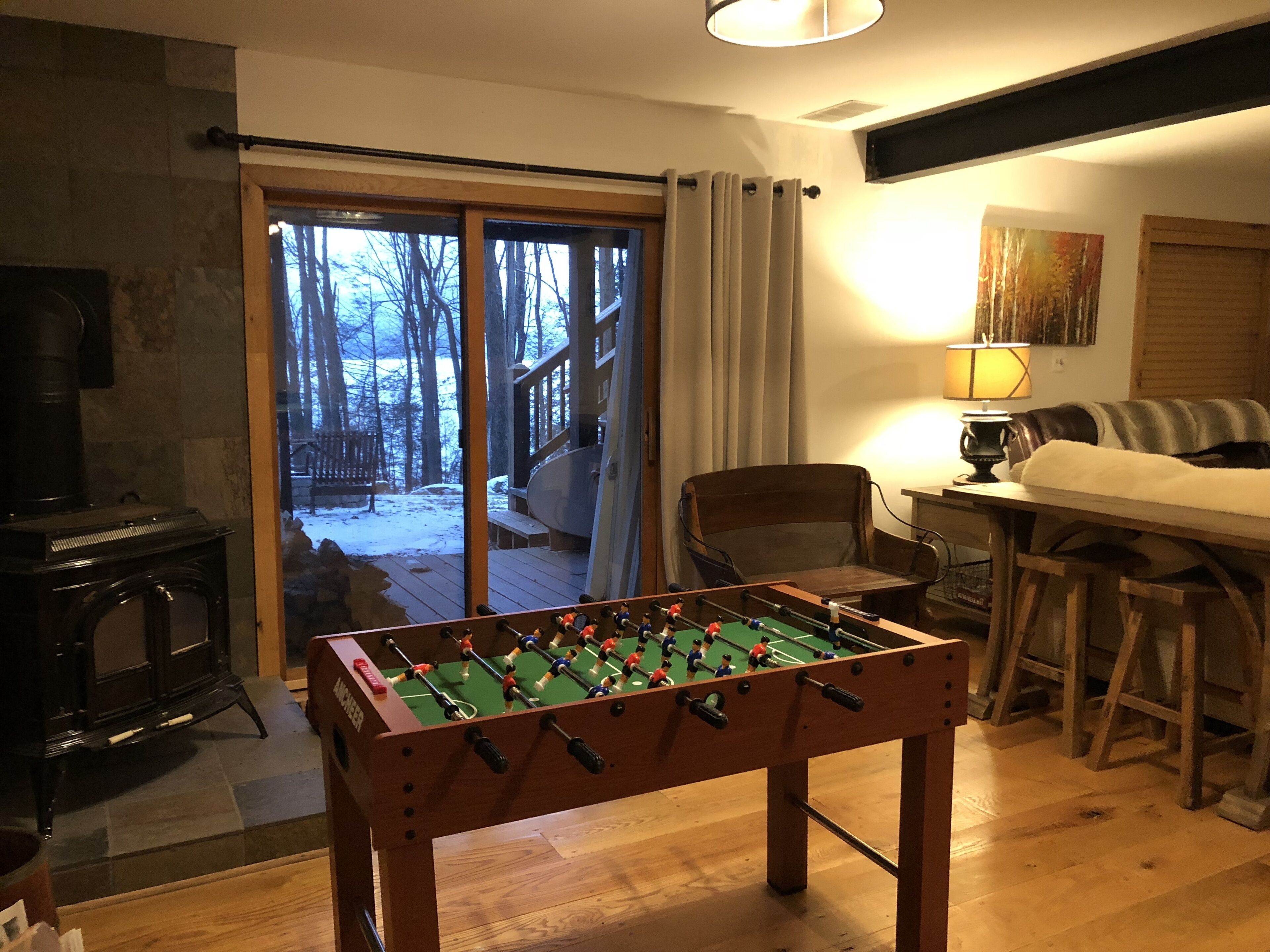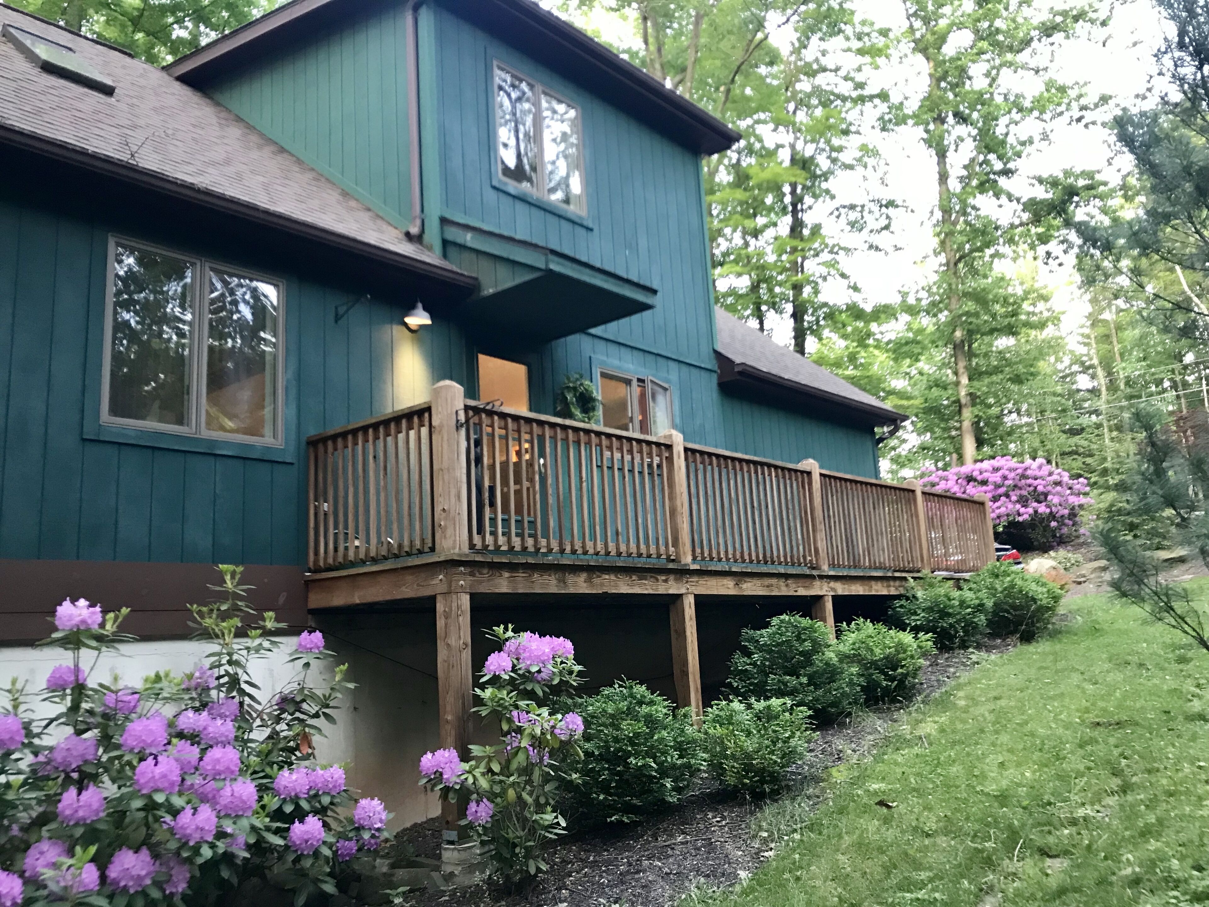Cozy mountainside retreat with lake access to recharge or relax! Kayaks, canoes Private Pocono area home with lake access. Please note, this property is located about 20 minutes west of Lake Harmony, on a larger, private 130 acre lake named 'Lake of the Four Seasons' which is in the community called 'Beech Mountain Lake'. It is an electric motor only lake. Easy access off I-80 / Mt. Top exit (just east of the I-81/I-80 junction). Enjoy a beautiful 160 acre lake on the western edge of the Pocono region. Escape the commercialism and crowds of other Pocono area lakes. Beech Mountain Lake is a private gated community with it's own freshwater lake.Kalahari Indoor Waterpark and Great Wolf Lodge are both about a 45 minute drive to the east, and Knoebel's Amusement Park and Campground is about an hour drive to the west. Miniature golf, driving range, and 18 hole golf course (Edgewater Golf Course) are 2 minutes from the entrance of the community. Sand Springs is another well known course which is about 5 miles from Beech Mountain Lakes.Mohegan Sun Casino is 30 minutes north on I-81.From May through October, enjoy kayaking, canoeing, and paddleboarding. We have 3 canoes, 3 kayaks and a stand-up paddleboard (the paddleboard is only to be used by adults or supervised children) to use. The lake, once used by the PA Fish Commission for spawning fish, is an electric only-motor lake. Excellent fishing for Large-mouth Bass, Perch, Pickerel, and even trout (the lake is stocked with Golden, Rainbow and Brown trout in spring for kids fishing derby). Enjoy spectacular mountain views and clear blue skies while boating on the lake. Lake is also excellent for swimming. Our community private beach is great for kids to swim and play in the sand, and it is free to use for all guests! Whitewater rafting and biking on the 'Rails to Trails' at Lehigh Gorge State Park (20 minutes away).Enjoy hiking trails and cross country ski trails at Nescopeck State Park, just a couple miles down the road.The home has a quiet path down to the lake's edge where you can launch canoes and kayaks, or just sit and enjoy the quiet and the scenery. Property borders a forested green area on the right, giving exceptional privacy. Virtually all the activities you can imagine that you could do outdoors in Pennsylvania, you can do here. Restaurants, shopping, attractions are minutes away.The house has a beautiful open 2-story living room, with lots of windows for natural light, that also opens to an inviting screened-in porch which is perfect for morning reflections (and coffee!) and evening conversations. There is also a gas grill outside of the screened-in porch.The lower level has a combination pool table/air hockey table, along with ping-pong. Two flat-screen smart TV's are in the home, along with a Blu-Ray player and WiFi. Plenty of board games area also at your disposal. The upper level has a bedroom with a queen bed and a twin bed with a pull-out trundle bed. This bedroom has it's own bathroom. The loft has a queen-sized futon which quickly converts to a bed.The main level has two bedrooms, each with a queen bed. There is a full bathroom on this level.The lower level has a bedroom with two sets of bunk beds, perfect for the kids (top bunks not suitable for teens or adults). There is also a full bathroom on this level as well.The dining area has a wonderful table that seats 10, perfect for family meals or game night.The community clubhouse also has outdoor tennis courts, beach volleyball, bocce, shuffleboard, kids playground, game room and it's own private swimming beach. It has a restaurant with outside deck dining. You are permitted to use these facilities with payment of service/usage fee.This is not a party house. No loud music or excessive partying. This is a family neighborhood. Must be quiet after 9:00 PM. No fireworks. Violation will result in eviction without refund.Please note that we do not have a house phone. However, we have Wi-Fi and most cell phones do get a good signal from our house.The house does not have air conditioning, but being nestled in the trees and along the lake, a wonderful breeze blows through, keeping the house cool. There are also ceiling fans in every bedroom.Also, we do NOT provide linens or bath/beach towels, so please plan accordingly There is a linen service that you can use, Pocono Linens, and you can arrange a drop-off and pick-up of whatever you need. Their number is 1-888-834-0362.There are outdoor security cameras on the property.