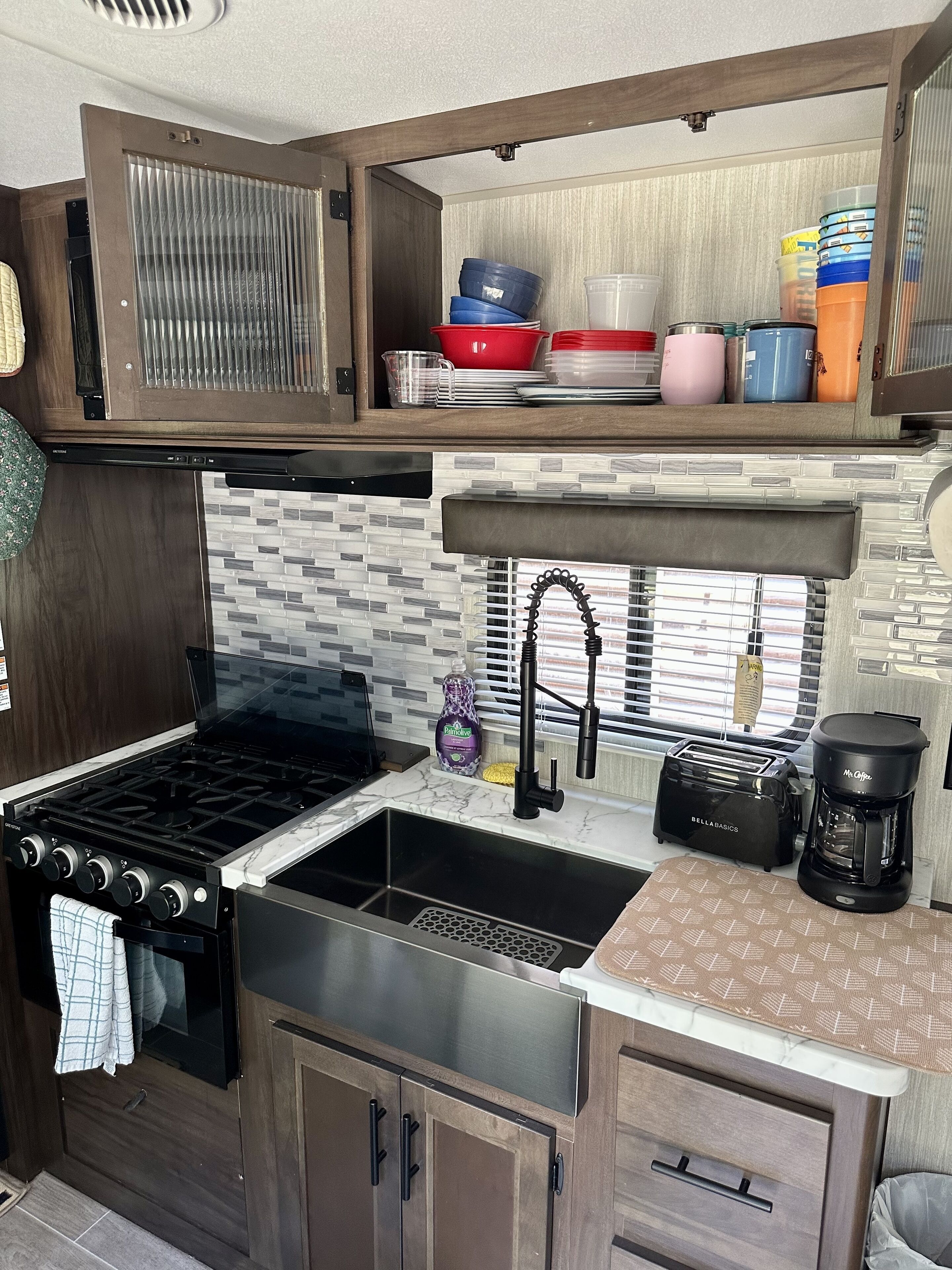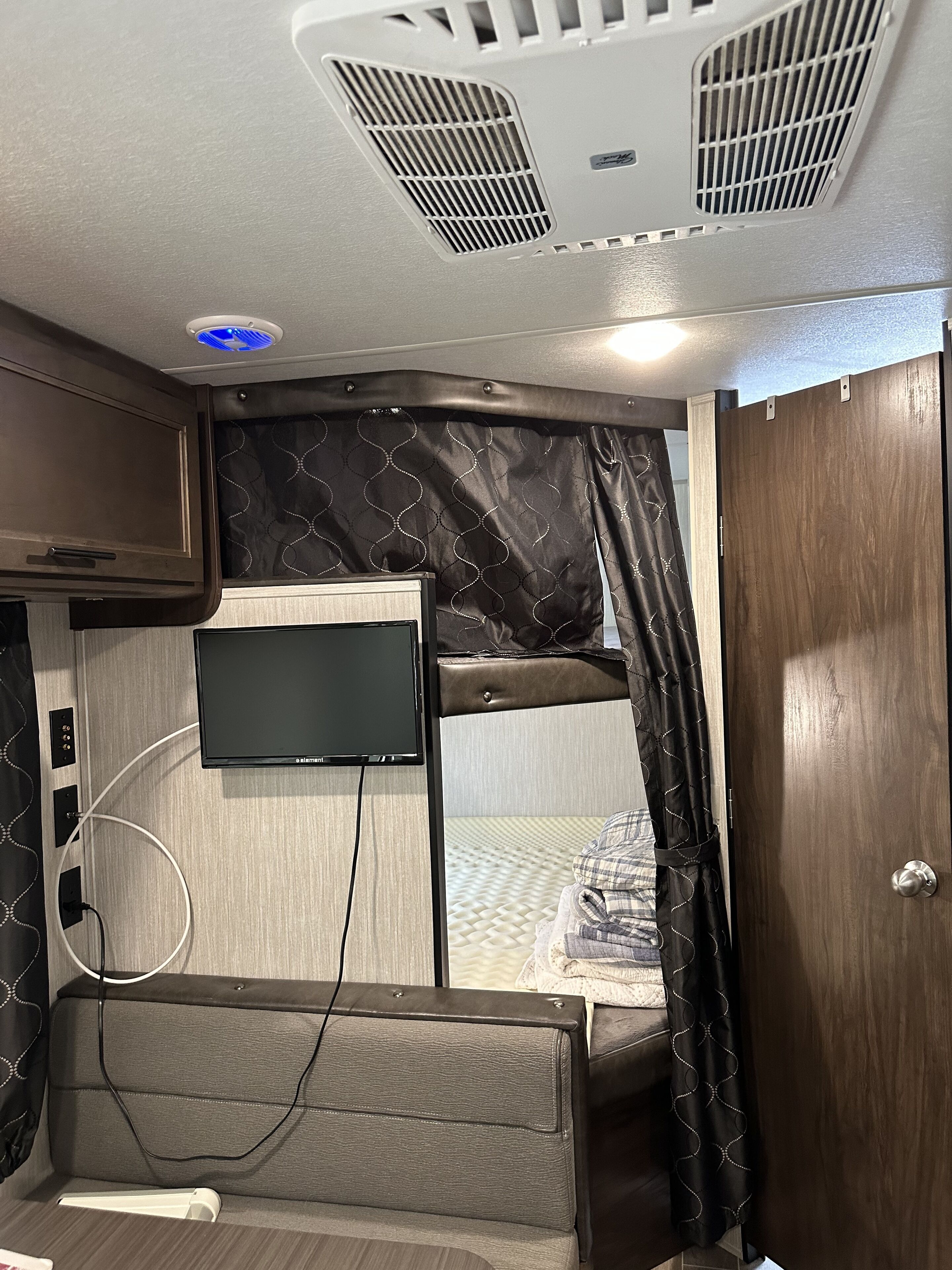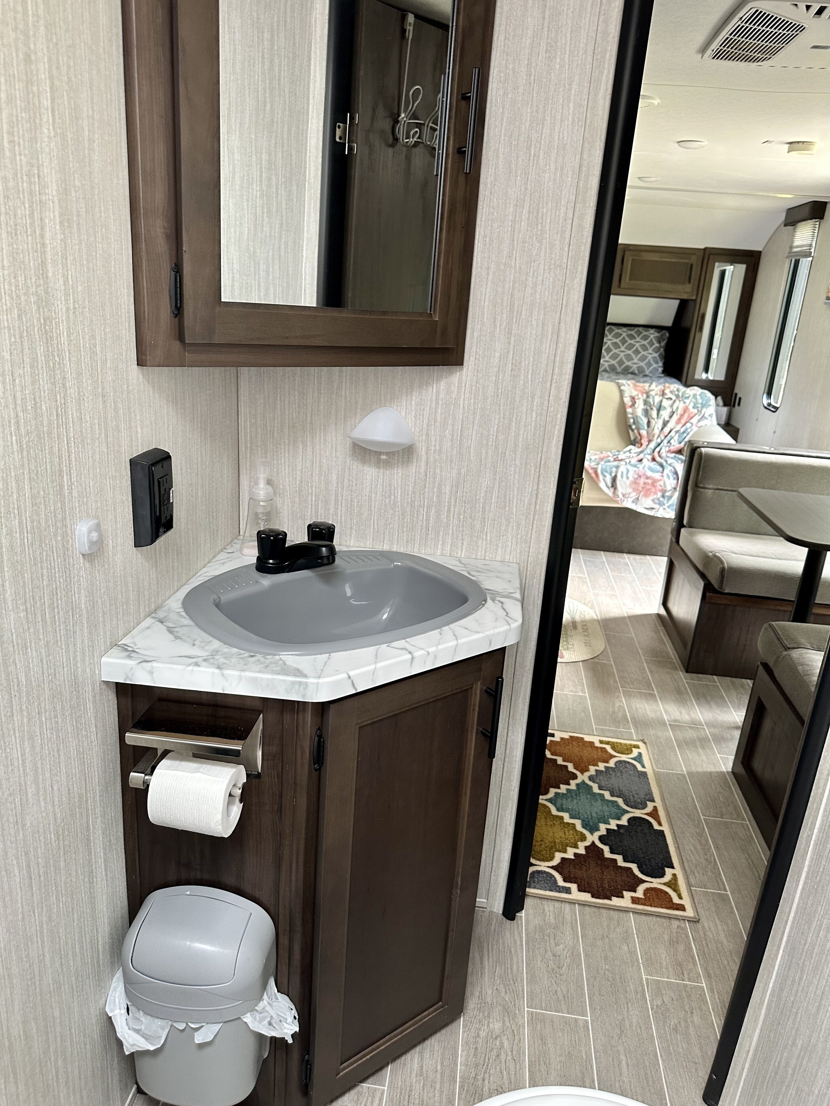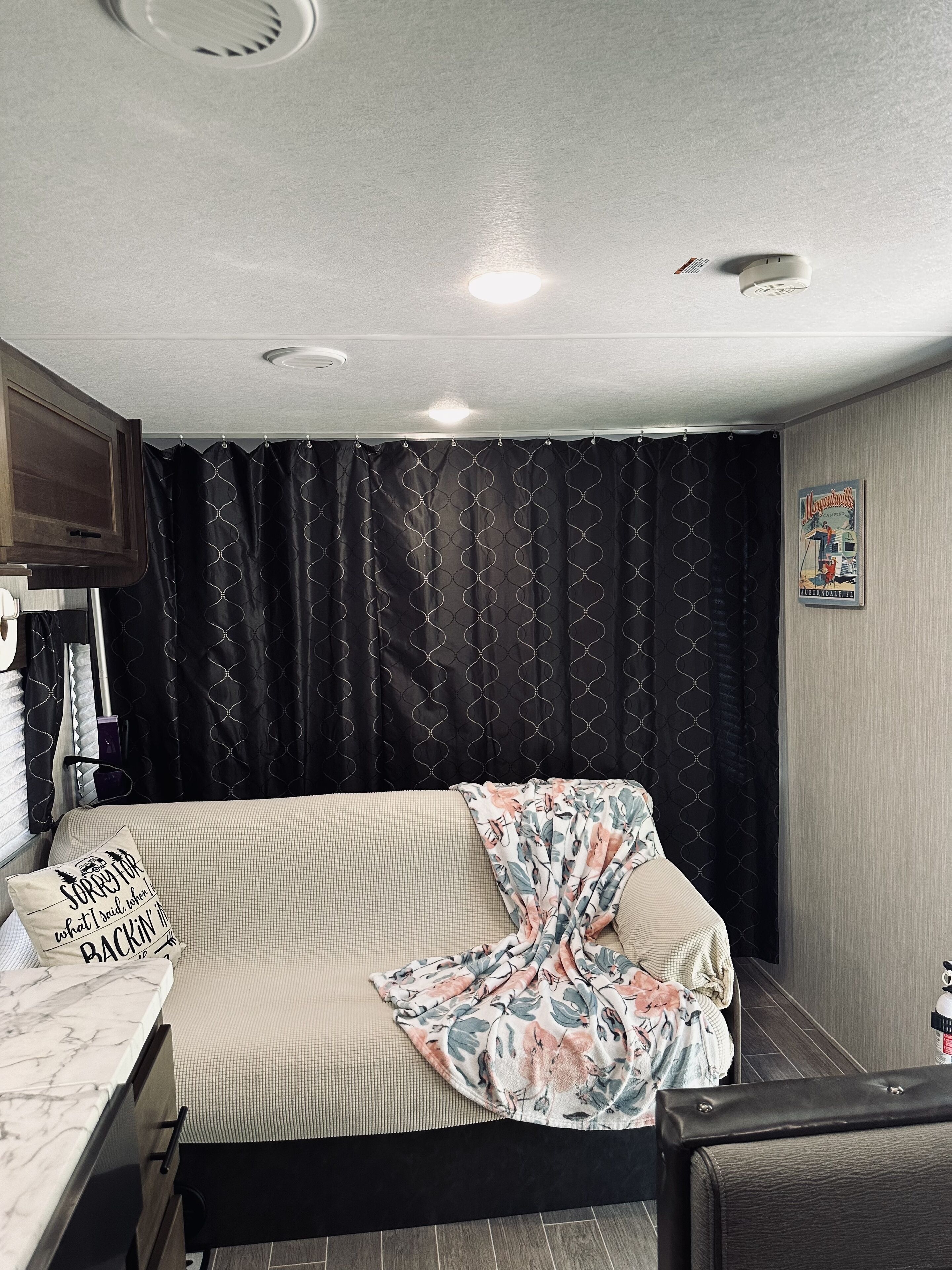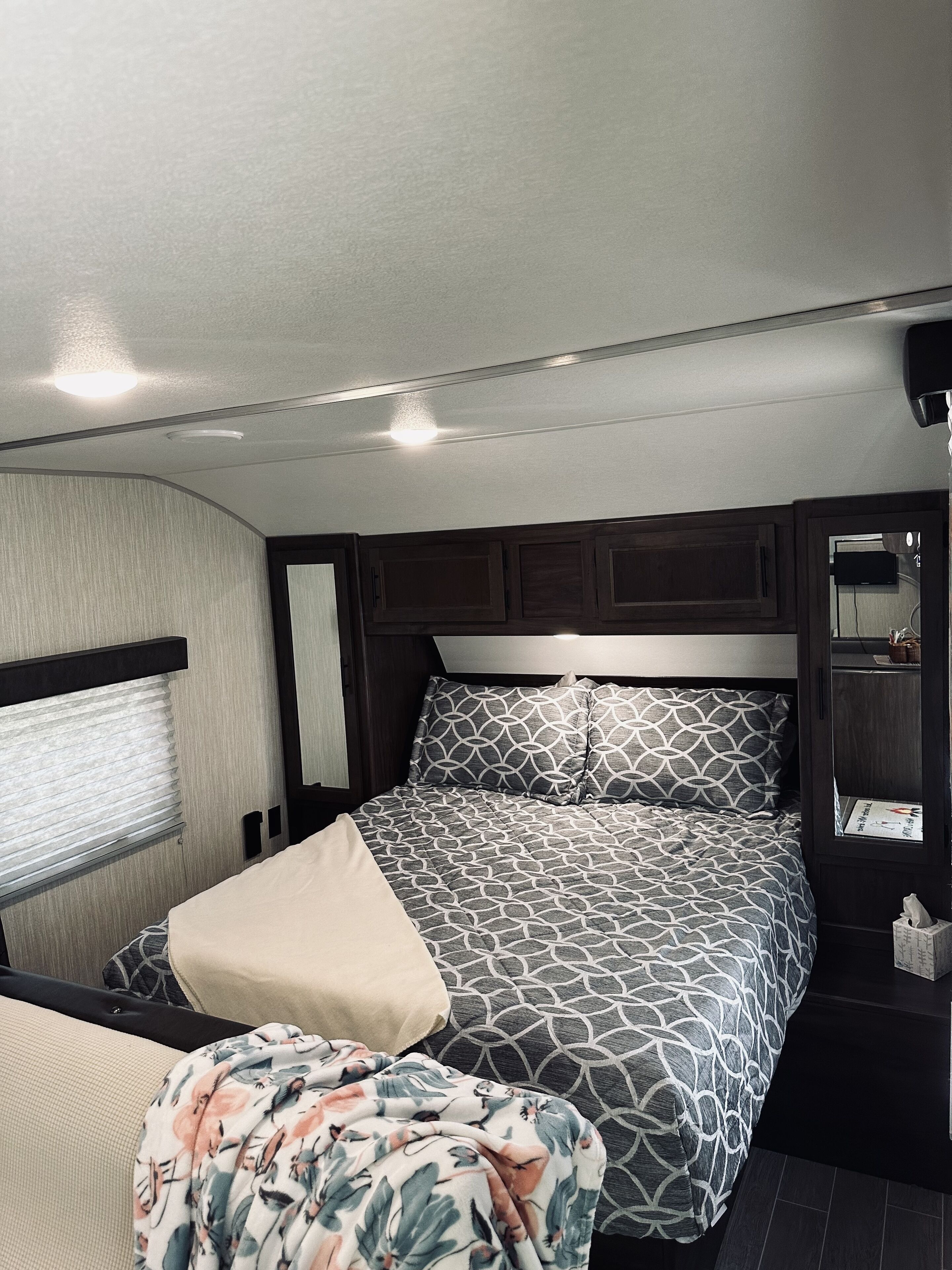 Clean 30’ Travel Trailer on a small 5 acre farm. Bring the kids, room for 7! The property is on a five acre farm in Middleburg Fl. Middleburg is between Jacksonville Fl. And Gainesville Fl. It is also close to Green cove springs, Jenny Springs and St. Augustine Florida. It is about 1 hr 1/5 minutes from Beaches. Most Grocery and more is 3.5 mls away. Uber, and delivery come out to property. The Travel trailer is on property that contains a small finger of the black creek. When half full it creates nice ambiance. Farm contains goats, Rooster, chickens, dogs and 2 guinea hens. More animals to come. The location is private and rural but close to shopping, Hospitals, the V.A. and to multiple city’s. This rental would be perfect for a family needing a nights rest on the way to Disney World, or Traveling a nurse. Nightly and weekly rental an option.Trailer is equipped with USB ports in bunks and main bed area. It has two closets and cupboards for clothes. It has clean linens and blankets for all sleep areas. Couch is a futon, the bed collapses down to a small sleeping space suitable for young children. There are storage areas for luggage under table benches, futon and main queen bed. Step in shower has a small basin a toddler could bath in. Towels and wash cloths are provided. Kitchen is fully equipped with cooking and baking supplies. All appliances are super clean. Water is from well and waste is set up on septic. Toilet paper suitable for septic is provided. No feminine products are to be flushed, EVER! Waste cans and bags are provided in trailer and a large waste can is provided outside trailer. There is plenty of parking space and a light pole is near for light. More light at carport (carport not available) can be provided upon request. Property contains 2 gates. Main home is less than 100 yards away and owners reside on property.