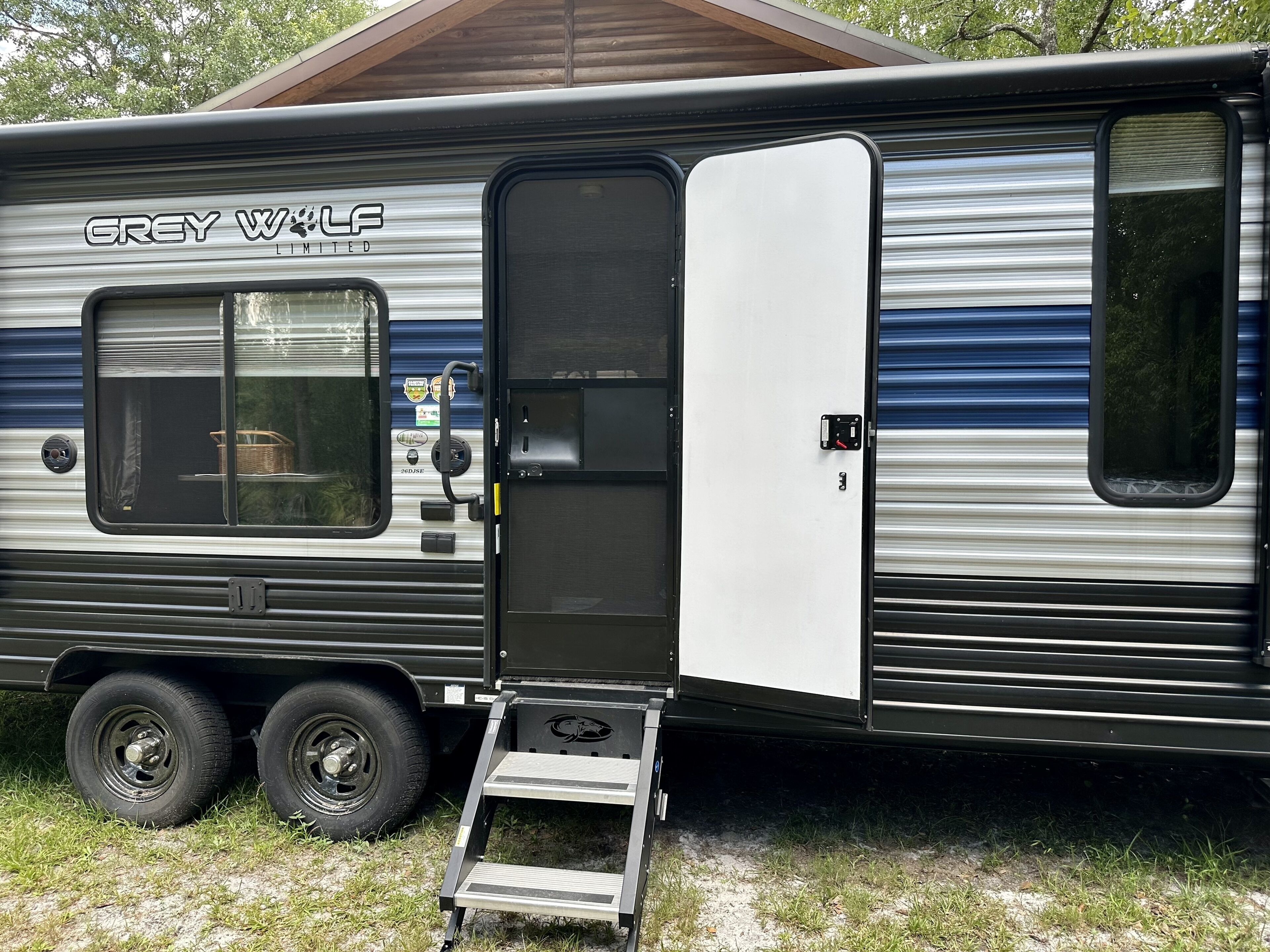 Clean 30’ Travel Trailer on a small 5 acre farm. Bring the kids, room for 7! The property is on a five acre farm in Middleburg Fl. Middleburg is between Jacksonville Fl. And Gainesville Fl. It is also close to Green cove springs, Jenny Springs and St. Augustine Florida. It is about 1 hr 1/5 minutes from Beaches. Most Grocery and more is 3.5 mls away. Uber, and delivery come out to property. The T...